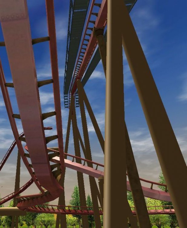 Someone has sent me pictures of the new B&M coaster (have no idea what type it could be). What I examined from the pictures is that there is a vertical loop, a drop that looks around 100 ft, some new type of transitions(I call it shake n bake), and what seems to be a Stengel dive. I guess that the Festival company ordered a new coaster from B&M since the hit Kongamato( http://www.themeparkreview.com/forum/viewtopic.php?t=27369&postdays=0&postorder=asc&highlight=festival&start=10 ) and Mamba vs. Anaconda (http://www.themeparkreview.com/forum/viewtopic.php?t=27369&highlight=festival ) Hopefully someone can get more pictures of the park! Is it me or does that look like a Stengel dive? LOOK AT THAT DROP!! Looks like the ride crosses over itself a few times. Look at the drop and the "shake n bake" transitions.