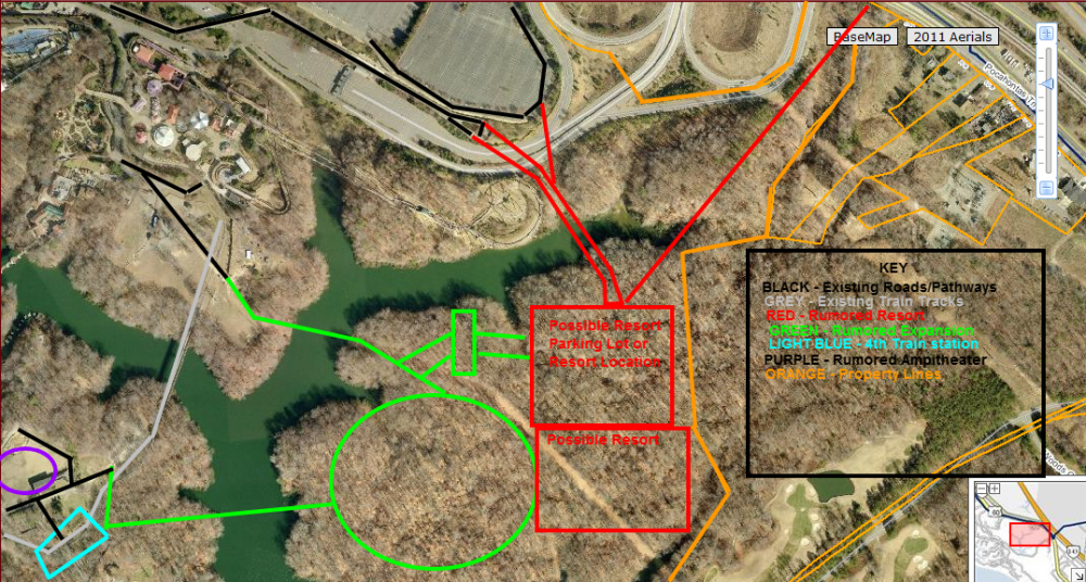 Well I was reading up on some rumors and had a few edited screen shots lying around. Here is what might come within the next few years. If anyone would like to correct some of the drawing so that a more accurate drawing can be done, let me know. I can try to draw it more realistic in a way. This is basically all the rumors I heard wrapped up into a neat photo. This is a more general picture (sorta) of what the last one was. Here is just basically property lines and general areas of what we can see going on.