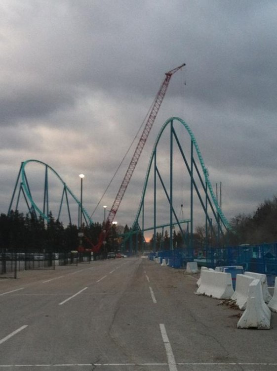 Leviathan is almost done!! Photos courtesy of CW's Facebook page I've said it before and I'll say it again, CW is going to have the most incredible parking lot ever. That is one tall B&M. Station Construction on the last element of Leviathan. It should be done within the next couple weeks! -