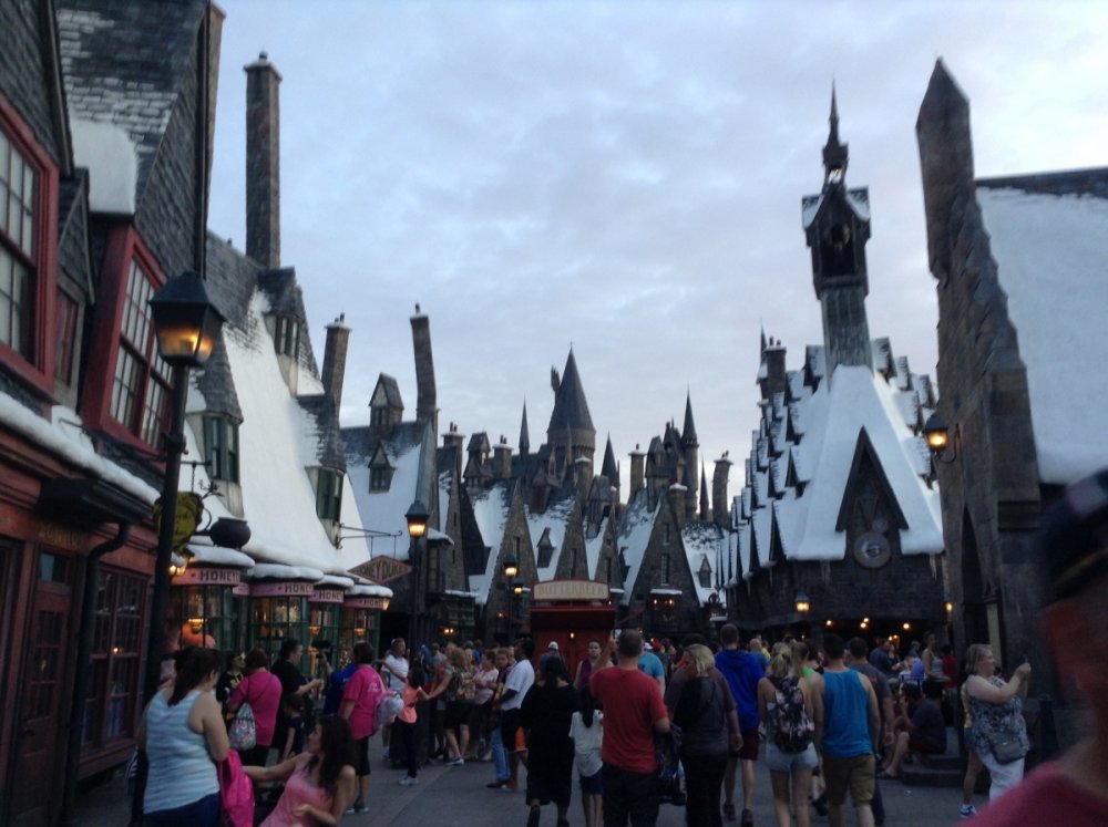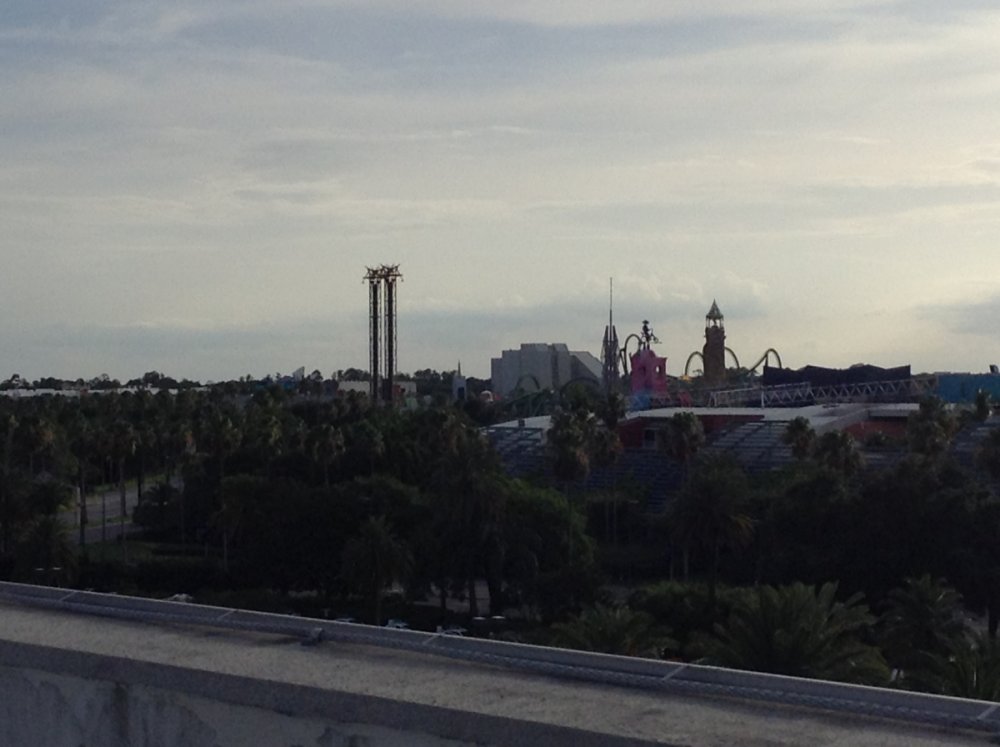 Time for some Day 1 pictures! Here we are at Universal Studios Florida! Looking for that Diagon Alley booty...uh...I mean, almost into Diagon Alley This is basically what a 90-minute line for Despicable Me Minion Mayhem looks like. I have learned my lesson... Snack stand in line for Despicable Me. Because capitalism. Hollywood Rip Ride Rockit is watching you. Platform 9 3/4 is cool! Mandatory Dragon Challenge shot attempt. Sorry, Hulk, but we're heading back to the hotel for now. Great view from the top of the parking garage! (This is where we ended up the 2nd time...yikes! Lots of cars) Fun Spot's skycoaster is supposed to be visible in the center right (I didn't know it was that close to Universal!) Hogsmeade is really well done, as was Diagon Alley (I took DA pictures, but I'm working kinda quickly atm) Spooky nighttime Hogwarts... Dragon Challenge sign at night... I'll close out this Day 1 TR with an IOA lagoon shot (taken from between the Lost Continent and Seuss Landing). Thanks for reading! -