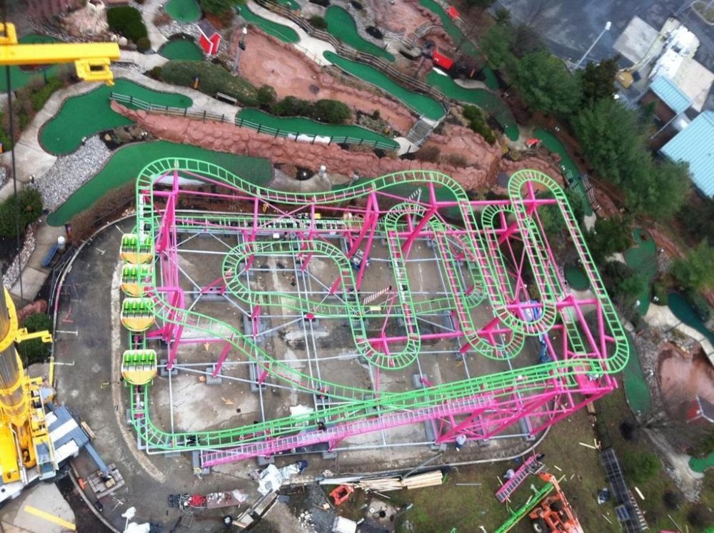 19. Construction on the track is complete. And it looks like this version will have lap bars not OTSRs! Credit: Greatadventurehistory.com
