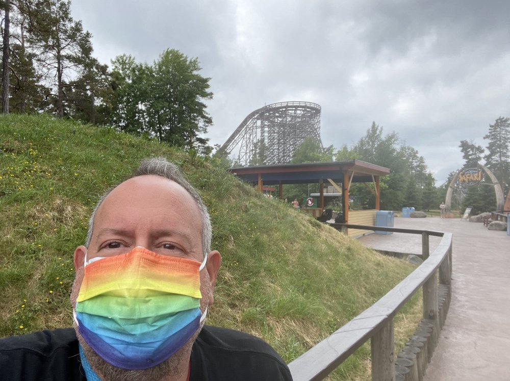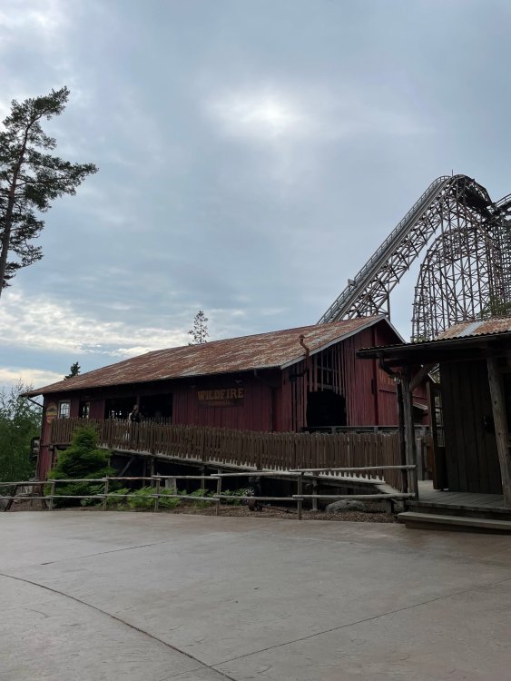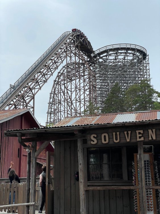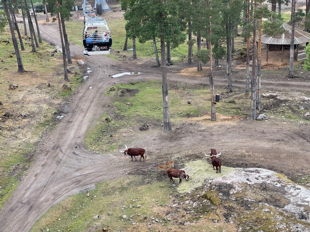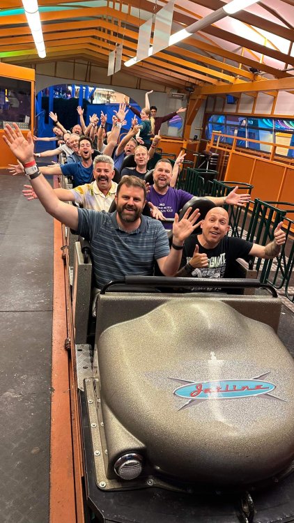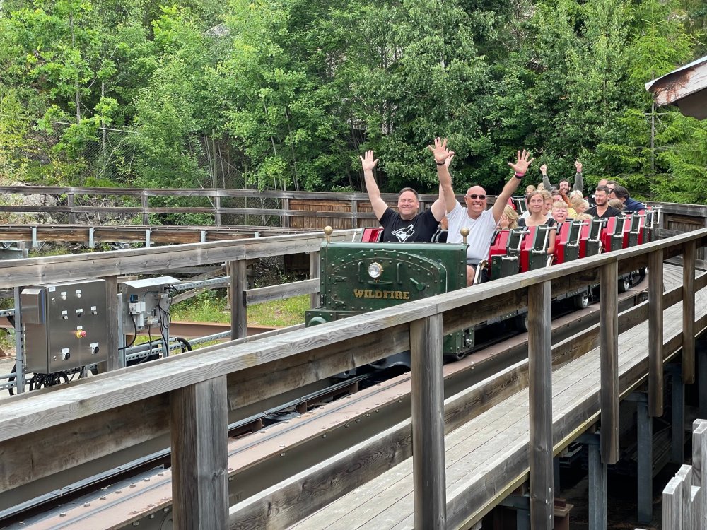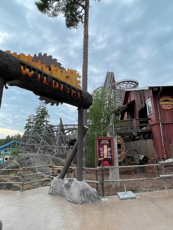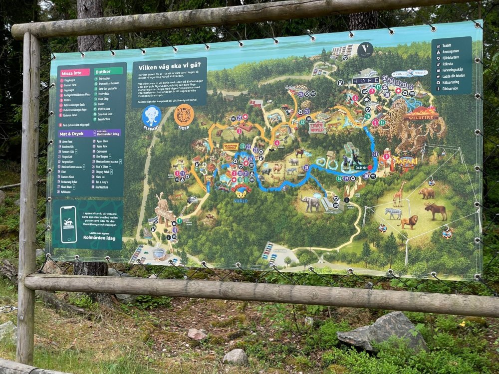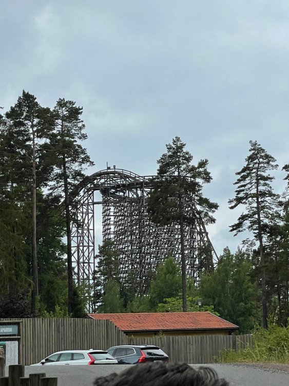 23. Day 17: Monday, June 19th part 1 (of 2) - Kolmården - and the insane amazement of Wildfire! getting up this morning, I was feeling much better, but still pretty congested. I realized there is something in the air in Sweeden that was trying to kill me (and several others, who were also having extreme allergic reactions). as today was going to be another full day spent out, basically, in the woods? I not only drugged the hell out of myself, but decided to wear a facemask today to see if it helped (it actually DID help quite a bit, tho I still hacked and coughed thruout the day - tho nowhere near as much as I had the prior day). anyways. . onto the bus and headed out to Kolmården - a huge zoo, likely best known by coaster fans for the amazing RMC coaster, Widfire. the Country continues to be absolutely gorgeous, even tho it was a bit overcast today. passing by the main parking lot for Kolmården. . . .it was already starting to fill up, but as the zoo is SO big, it never really felt crowded. in fact, the zoo is SO big, we were directed around back to the 2ndary parking lot, and allowed to enter thru that back gate. this way we were much closer to the "rides" portion of the zoo, than if we had started at the actual front gates. (very hilly, and quite the walk, really, so it was greatly appreciated!) I spot Wildfire thru the trees! Park Map from where we actually entered. . we were in the lot on the right - that you can see the path they let us use, that walks into the back of the park. a better look at Wildfire's lift and turnaround before drop, from inside the zoo grounds. my masked self - since outdoors. on the right is the entrance to the zoo's famous "safari" gondola ride. and that's where we were going to head to first. I believe the zoo had already opened (hence the family ahead of us in this pic). . but I was just blown away from the theming over here. VERY much reminded me of a Disney-esque queueline. this is a fairly long - if recalling correctly, it was about 25 minutes - lovely gondola ride that covers the large area in the zoo that I guess would be called the Serengeti if were at Animal Kingdom or BGT parks. Lots of interacting animals - tho several predators too, in sectioned off areas, and the gondola "tracks" criss cross each other several times. so it's a long ride, and really does give some incredible views. and it has narration in 3 languages, so you can get descriptions of the animals as you pass over those areas. starting off with Wildfire, as you leave the station. the group I rode with: me, Doug, Hans, Ryan, David, and Hawk. I mean. . . just stunning views from the Gondolas Bears attempting to sun themselves on this overcast day zebras! yeah. . these folks are in their own area. . . tho this early in the morning, most were sleeping. but good lord, what an amazing view you get from the Gondola! as we were crossing over the "track". .snapped this pic to show some of the criss crossing the ride does. you get a bit high up in some spots too. could be a postcard. amazing that it's just a pic on an iPhone and coming back into the station. we were headed to Wildfire, but first, I believe, it was almost lunch time, and the Park guide wanted to bring us down to eat, before we did any further things. so we passed by Wildfire for the moment, and headed down to the food area, that's over by the "big" rides - the park also has a very large "kids rides" area. I don't think we had the "Mexican". . . I didn't' take a pic, but I THINK it was burgers? But this Mexican pirate amused me, so snapped a pic of the sign. the view while we ate. one of the two other Roller Coasters in the park, a Vekoma Junior coaster. (the other being a Zierer kiddie coaster) themed to a Dolphin! so cute. and then we headed over to Wildfire, to check it out, and get some rides. loved the theming in the station. no axes allowed? Noted! lovely train design, tho it has those RMC restraints that I just don't really care for (I always feel so uneasy in these restraints). LtR: Didier, Eric, Shane, Jon whee!! Jason and Big Mike in front row! but they had a surprise for us, if anyone was interested (we were!). . we got to go into the Maintenance and get up close and personal with the ride and trains! so cool! and the ride watches you thru the windows in the workshop. . . wonder what THIS does? (and yes, jokey picture taken with permission to touch the sledge hammer) the coaster's layout on the board in the Maint. shed. the group on the shed tour. . . we really did get to get really up close to the ride, while it was operating! I mean. . really close! getting a few more rides in before moving on. . . here's more of the TPR group enjoying Wildfire. and this is Tomas, who was the main guide walking us around Kolmården today, and showing us the zoo's shining gems. they had another surprise for us - if we were interested - we could go under the Gondola ride and see the Maint. area for that if we wanted. So we headed over that way to be continued. . . .