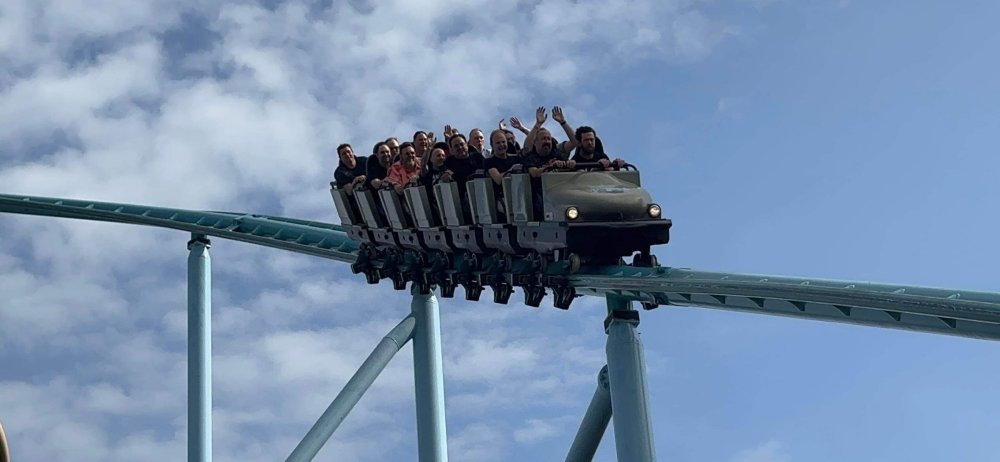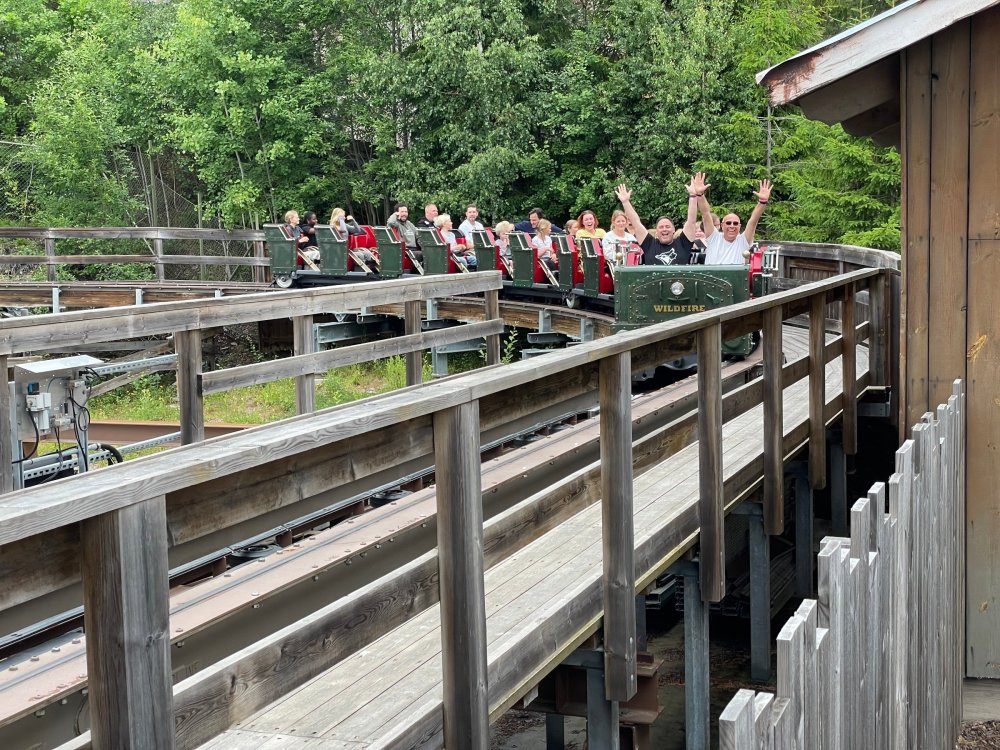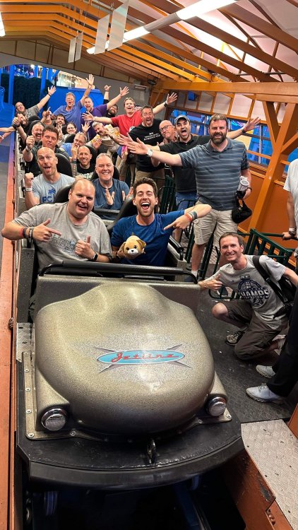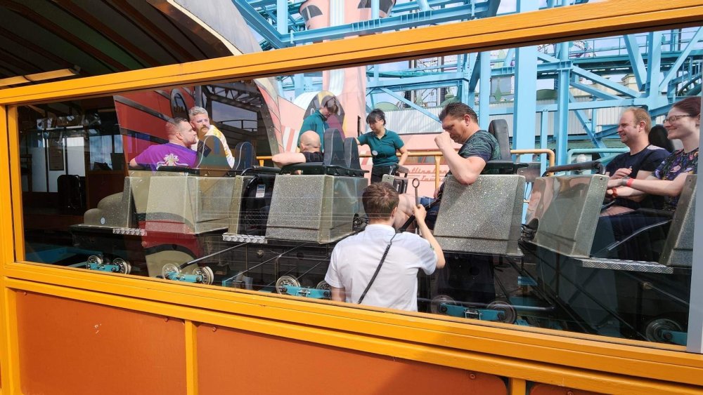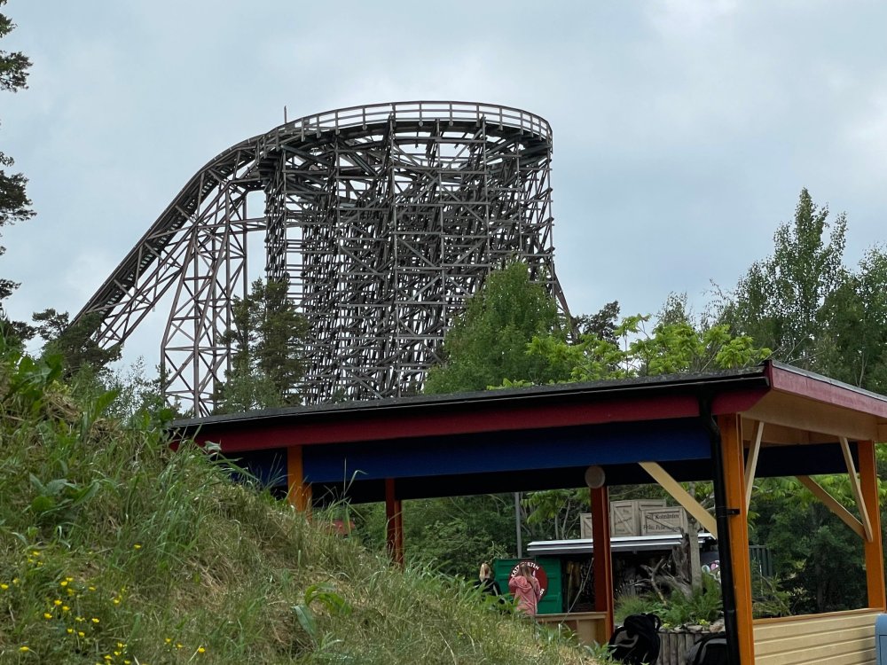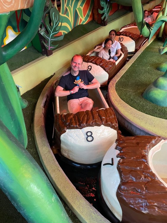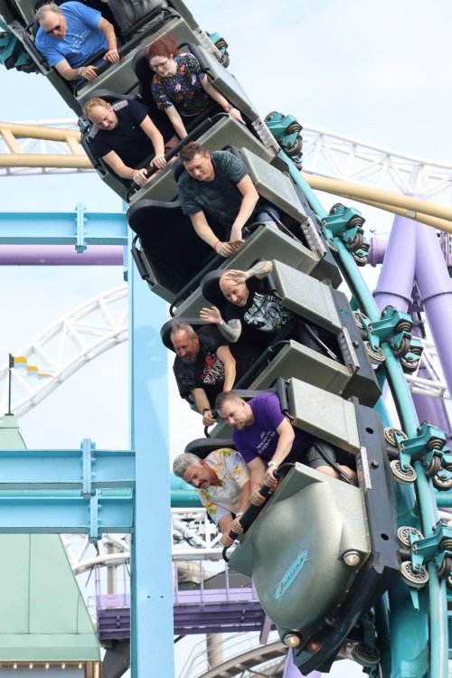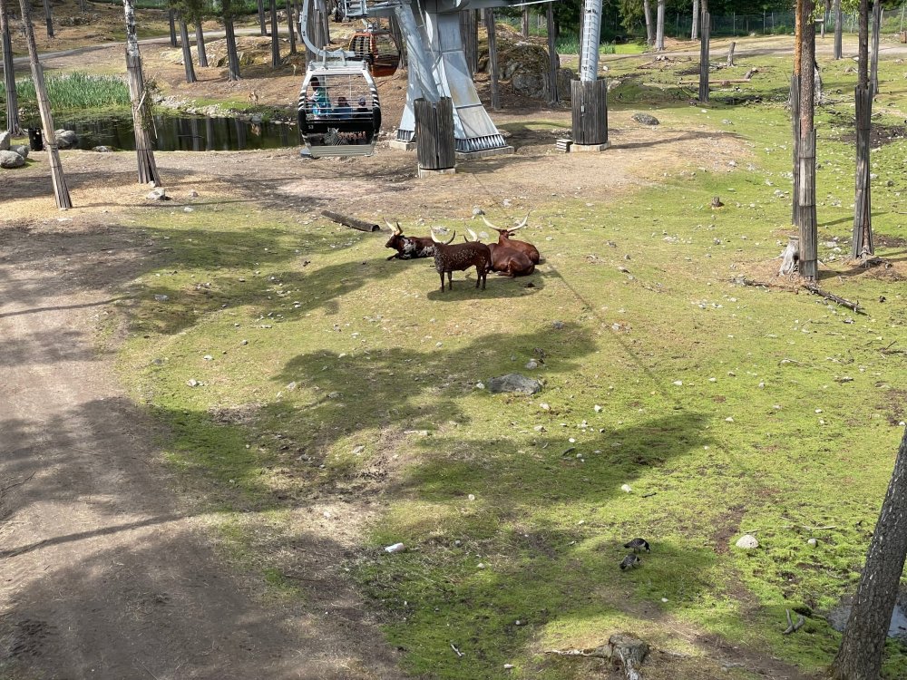 23. Day 17: Monday, June 19th part 1 (of 2) - Kolmården - and the insane amazement of Wildfire! getting up this morning, I was feeling much better, but still pretty congested. I realized there is something in the air in Sweeden that was trying to kill me (and several others, who were also having extreme allergic reactions). as today was going to be another full day spent out, basically, in the woods? I not only drugged the hell out of myself, but decided to wear a facemask today to see if it helped (it actually DID help quite a bit, tho I still hacked and coughed thruout the day - tho nowhere near as much as I had the prior day). anyways. . onto the bus and headed out to Kolmården - a huge zoo, likely best known by coaster fans for the amazing RMC coaster, Widfire. the Country continues to be absolutely gorgeous, even tho it was a bit overcast today. passing by the main parking lot for Kolmården. . . .it was already starting to fill up, but as the zoo is SO big, it never really felt crowded. in fact, the zoo is SO big, we were directed around back to the 2ndary parking lot, and allowed to enter thru that back gate. this way we were much closer to the "rides" portion of the zoo, than if we had started at the actual front gates. (very hilly, and quite the walk, really, so it was greatly appreciated!) I spot Wildfire thru the trees! Park Map from where we actually entered. . we were in the lot on the right - that you can see the path they let us use, that walks into the back of the park. a better look at Wildfire's lift and turnaround before drop, from inside the zoo grounds. my masked self - since outdoors. on the right is the entrance to the zoo's famous "safari" gondola ride. and that's where we were going to head to first. I believe the zoo had already opened (hence the family ahead of us in this pic). . but I was just blown away from the theming over here. VERY much reminded me of a Disney-esque queueline. this is a fairly long - if recalling correctly, it was about 25 minutes - lovely gondola ride that covers the large area in the zoo that I guess would be called the Serengeti if were at Animal Kingdom or BGT parks. Lots of interacting animals - tho several predators too, in sectioned off areas, and the gondola "tracks" criss cross each other several times. so it's a long ride, and really does give some incredible views. and it has narration in 3 languages, so you can get descriptions of the animals as you pass over those areas. starting off with Wildfire, as you leave the station. the group I rode with: me, Doug, Hans, Ryan, David, and Hawk. I mean. . . just stunning views from the Gondolas Bears attempting to sun themselves on this overcast day zebras! yeah. . these folks are in their own area. . . tho this early in the morning, most were sleeping. but good lord, what an amazing view you get from the Gondola! as we were crossing over the "track". .snapped this pic to show some of the criss crossing the ride does. you get a bit high up in some spots too. could be a postcard. amazing that it's just a pic on an iPhone and coming back into the station. we were headed to Wildfire, but first, I believe, it was almost lunch time, and the Park guide wanted to bring us down to eat, before we did any further things. so we passed by Wildfire for the moment, and headed down to the food area, that's over by the "big" rides - the park also has a very large "kids rides" area. I don't think we had the "Mexican". . . I didn't' take a pic, but I THINK it was burgers? But this Mexican pirate amused me, so snapped a pic of the sign. the view while we ate. one of the two other Roller Coasters in the park, a Vekoma Junior coaster. (the other being a Zierer kiddie coaster) themed to a Dolphin! so cute. and then we headed over to Wildfire, to check it out, and get some rides. loved the theming in the station. no axes allowed? Noted! lovely train design, tho it has those RMC restraints that I just don't really care for (I always feel so uneasy in these restraints). LtR: Didier, Eric, Shane, Jon whee!! Jason and Big Mike in front row! but they had a surprise for us, if anyone was interested (we were!). . we got to go into the Maintenance and get up close and personal with the ride and trains! so cool! and the ride watches you thru the windows in the workshop. . . wonder what THIS does? (and yes, jokey picture taken with permission to touch the sledge hammer) the coaster's layout on the board in the Maint. shed. the group on the shed tour. . . we really did get to get really up close to the ride, while it was operating! I mean. . really close! getting a few more rides in before moving on. . . here's more of the TPR group enjoying Wildfire. and this is Tomas, who was the main guide walking us around Kolmården today, and showing us the zoo's shining gems. they had another surprise for us - if we were interested - we could go under the Gondola ride and see the Maint. area for that if we wanted. So we headed over that way to be continued. . . .