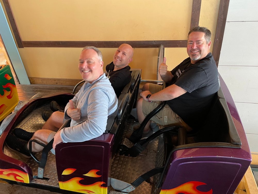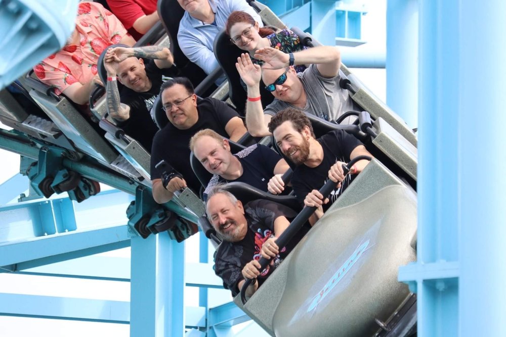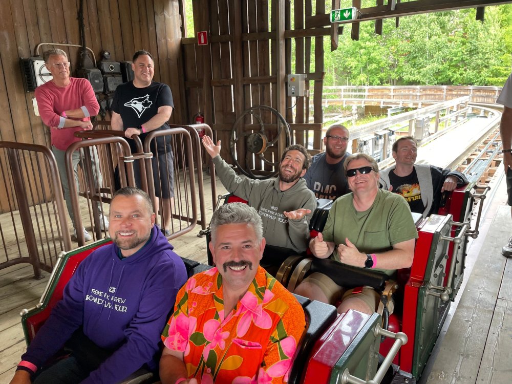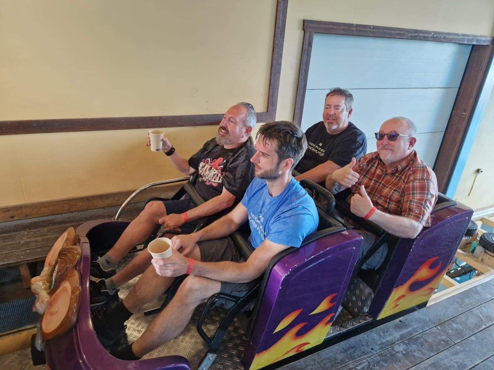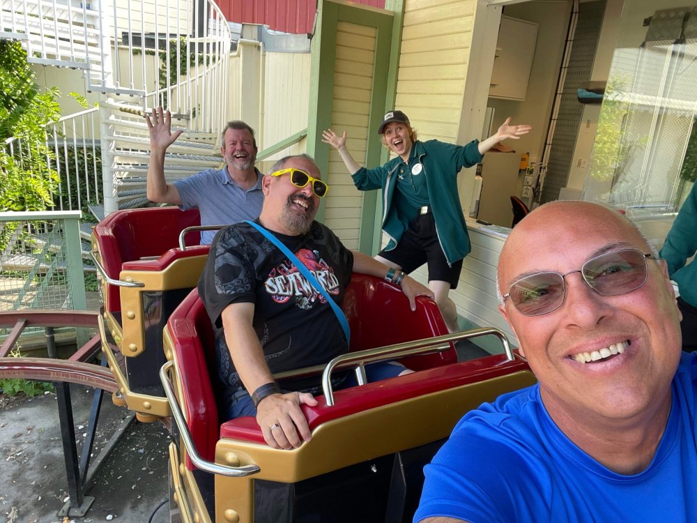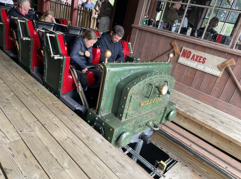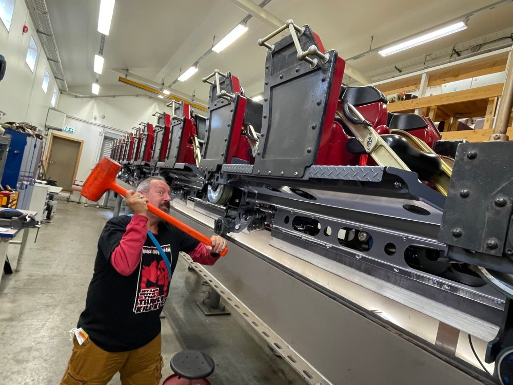 23. Day 17: Monday, June 19th part 1 (of 2) - Kolmården - and the insane amazement of Wildfire! getting up this morning, I was feeling much better, but still pretty congested. I realized there is something in the air in Sweeden that was trying to kill me (and several others, who were also having extreme allergic reactions). as today was going to be another full day spent out, basically, in the woods? I not only drugged the hell out of myself, but decided to wear a facemask today to see if it helped (it actually DID help quite a bit, tho I still hacked and coughed thruout the day - tho nowhere near as much as I had the prior day). anyways. . onto the bus and headed out to Kolmården - a huge zoo, likely best known by coaster fans for the amazing RMC coaster, Widfire. the Country continues to be absolutely gorgeous, even tho it was a bit overcast today. passing by the main parking lot for Kolmården. . . .it was already starting to fill up, but as the zoo is SO big, it never really felt crowded. in fact, the zoo is SO big, we were directed around back to the 2ndary parking lot, and allowed to enter thru that back gate. this way we were much closer to the "rides" portion of the zoo, than if we had started at the actual front gates. (very hilly, and quite the walk, really, so it was greatly appreciated!) I spot Wildfire thru the trees! Park Map from where we actually entered. . we were in the lot on the right - that you can see the path they let us use, that walks into the back of the park. a better look at Wildfire's lift and turnaround before drop, from inside the zoo grounds. my masked self - since outdoors. on the right is the entrance to the zoo's famous "safari" gondola ride. and that's where we were going to head to first. I believe the zoo had already opened (hence the family ahead of us in this pic). . but I was just blown away from the theming over here. VERY much reminded me of a Disney-esque queueline. this is a fairly long - if recalling correctly, it was about 25 minutes - lovely gondola ride that covers the large area in the zoo that I guess would be called the Serengeti if were at Animal Kingdom or BGT parks. Lots of interacting animals - tho several predators too, in sectioned off areas, and the gondola "tracks" criss cross each other several times. so it's a long ride, and really does give some incredible views. and it has narration in 3 languages, so you can get descriptions of the animals as you pass over those areas. starting off with Wildfire, as you leave the station. the group I rode with: me, Doug, Hans, Ryan, David, and Hawk. I mean. . . just stunning views from the Gondolas Bears attempting to sun themselves on this overcast day zebras! yeah. . these folks are in their own area. . . tho this early in the morning, most were sleeping. but good lord, what an amazing view you get from the Gondola! as we were crossing over the "track". .snapped this pic to show some of the criss crossing the ride does. you get a bit high up in some spots too. could be a postcard. amazing that it's just a pic on an iPhone and coming back into the station. we were headed to Wildfire, but first, I believe, it was almost lunch time, and the Park guide wanted to bring us down to eat, before we did any further things. so we passed by Wildfire for the moment, and headed down to the food area, that's over by the "big" rides - the park also has a very large "kids rides" area. I don't think we had the "Mexican". . . I didn't' take a pic, but I THINK it was burgers? But this Mexican pirate amused me, so snapped a pic of the sign. the view while we ate. one of the two other Roller Coasters in the park, a Vekoma Junior coaster. (the other being a Zierer kiddie coaster) themed to a Dolphin! so cute. and then we headed over to Wildfire, to check it out, and get some rides. loved the theming in the station. no axes allowed? Noted! lovely train design, tho it has those RMC restraints that I just don't really care for (I always feel so uneasy in these restraints). LtR: Didier, Eric, Shane, Jon whee!! Jason and Big Mike in front row! but they had a surprise for us, if anyone was interested (we were!). . we got to go into the Maintenance and get up close and personal with the ride and trains! so cool! and the ride watches you thru the windows in the workshop. . . wonder what THIS does? (and yes, jokey picture taken with permission to touch the sledge hammer) the coaster's layout on the board in the Maint. shed. the group on the shed tour. . . we really did get to get really up close to the ride, while it was operating! I mean. . really close! getting a few more rides in before moving on. . . here's more of the TPR group enjoying Wildfire. and this is Tomas, who was the main guide walking us around Kolmården today, and showing us the zoo's shining gems. they had another surprise for us - if we were interested - we could go under the Gondola ride and see the Maint. area for that if we wanted. So we headed over that way to be continued. . . .