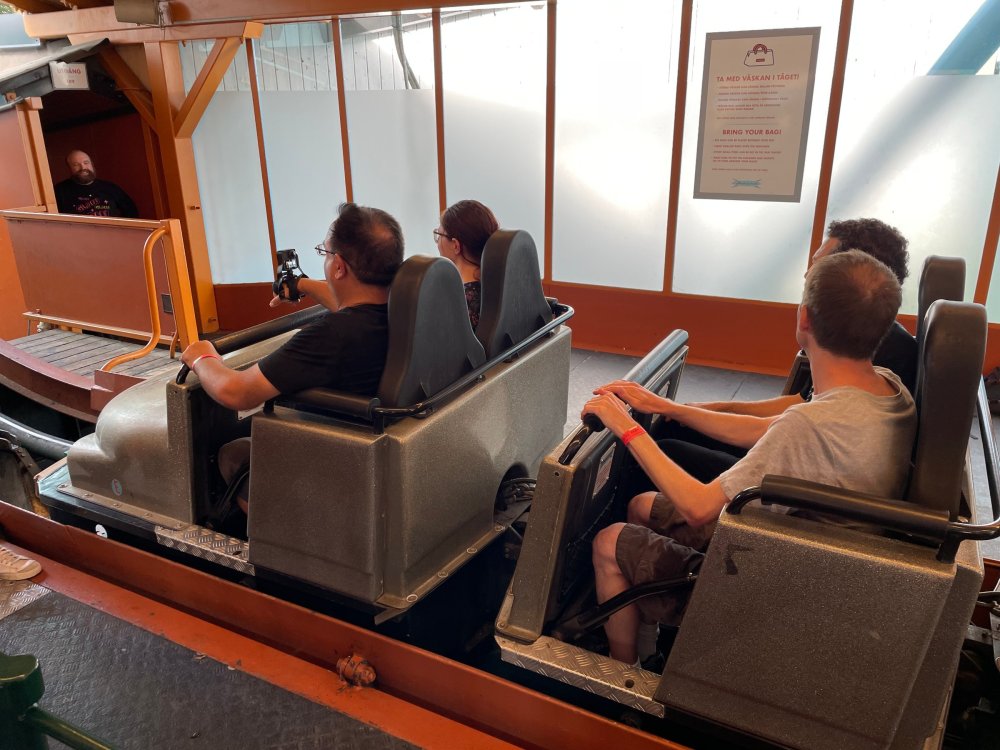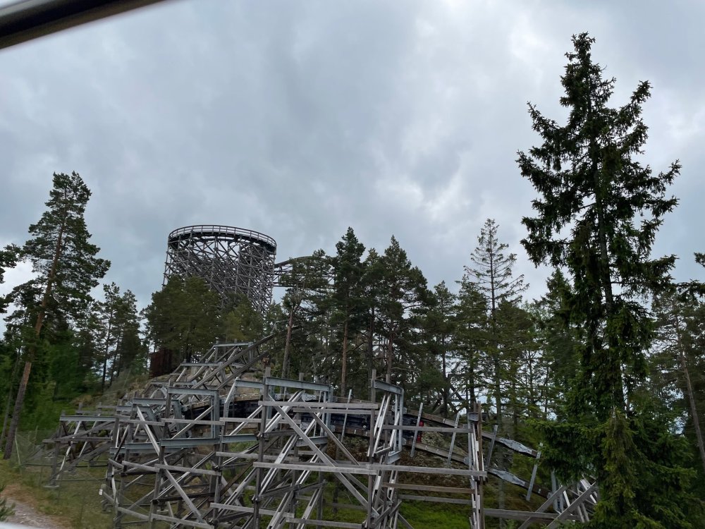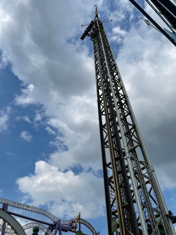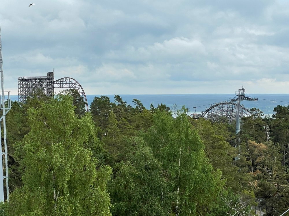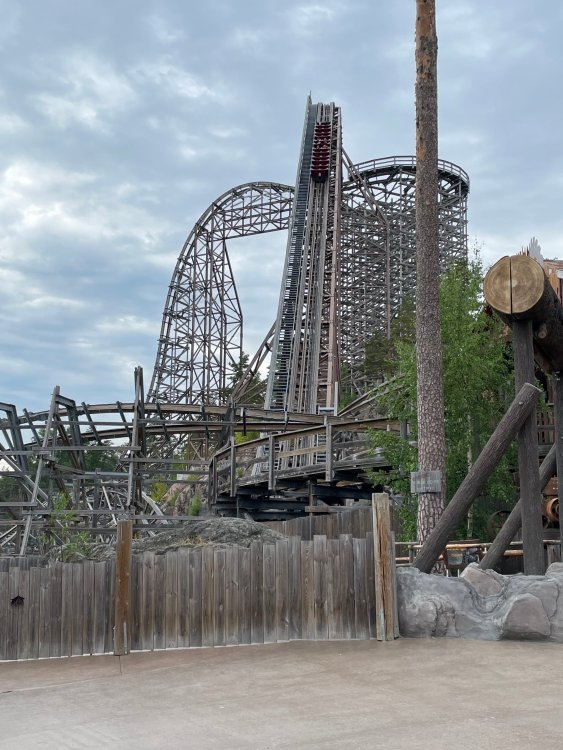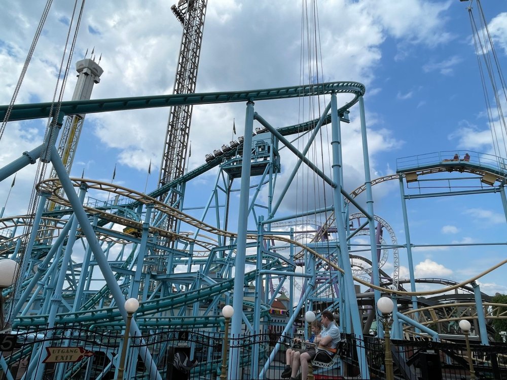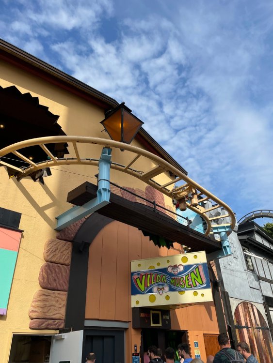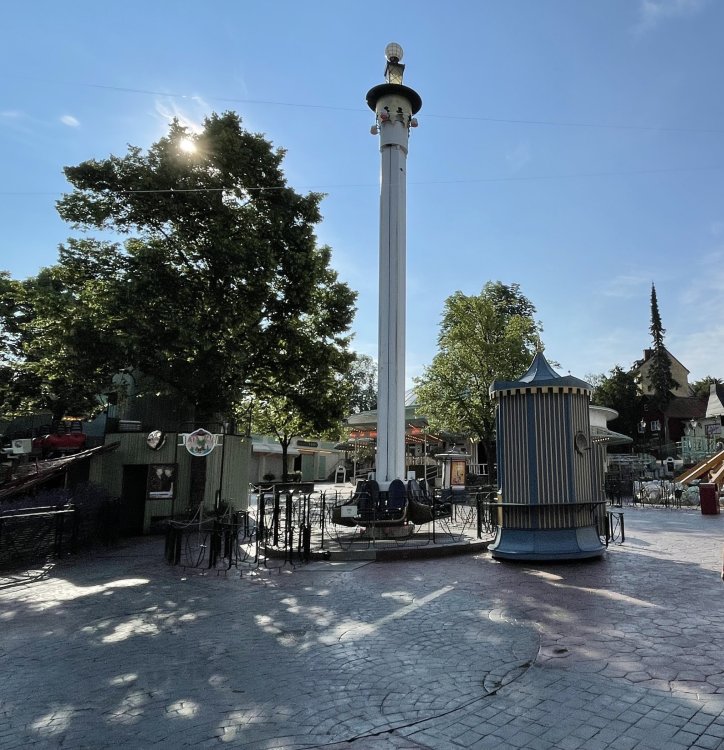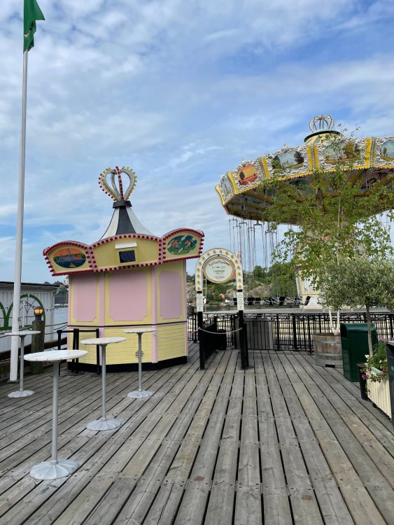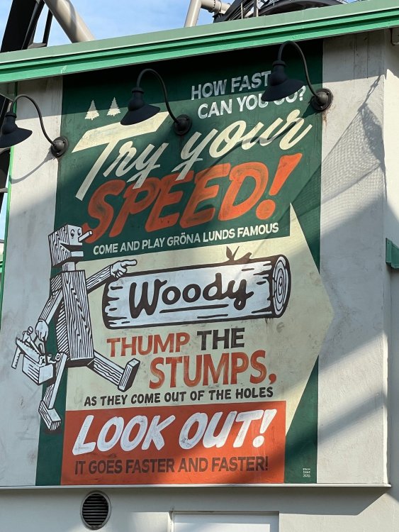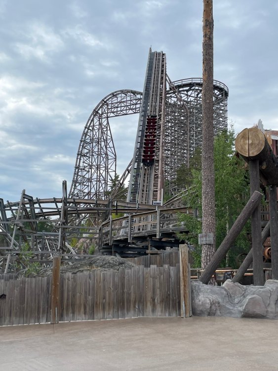 11. Day 18: Tuesday, June 20th part 3 (of 3) - back to finish off the night at the fantastic Grona Lund On the way back in, stopping to snap a pic of the park map. it LOOKS way smaller than it is, because things are just piled up on top of each other. the big green area in the bottom right, is the parking lot the park announced plans in 2023 to expand into. of course, my first stop on the way in was the Carousel. . . Big Mike had other plans tho, he was missing the kiddie credit, "Tuff-Tuff TÃ¥get" (Choo-Choo Train). So while he went to do that. . . Didier and I rode the Carousel. my happy place. his too, apparently for such a small carousel, it's just lovely, and appears hand painted. after my Carousel ride, I went over to the coaster to get proof of Big Mike riding it, in talking to the ride op - who was a total hoot! - she said it's a ride that's way more fun than it looks, as the sharp turns give a "whip" effect. She encouraged us all to ride it. sooooooo. . . (and she was right, it was way more fun that I had looked. and she let us ring the bell as we exited the station). back over to Vilda Musen for a "water free" ride, and we bumped into Hans and Matthew walking along the outside of the park, to get a different view of Twister and a crane across the lake, painted like a Giraffe. for some reason. Sweden! by going around the outside, we were gonna end up in the "haunted" section. . . and had also bumped into Andrew, sMisty, and Erik. . so we all headed that way together. that's Kvasten ahead of us, the Vekoma suspended coaster. whee. . . in the SPOOKY section now.. had to stop for a photo op, tho apparently we were boiling nothing for dinner. the flying carpet ride (not operating today) is over here for some reason. . . maybe they are tying in the Genie in the center of it with the spook/magic vibe of the area? Gotta ride Blue Train. . this thing is SO messed up. insanely silly, and with some needless nudity, and scary pop ups. . I adored it. rode this sucker at least 4 times on our trip. the name is brilliant. it's BLUE. . and it's a Train. see???? ooo. .scary! that creature has got "lady parts" !!! Scary!!!! so silly, and so much fun. every park should have a ride like this. and Grona Lund has several! the Starflyer doing it's thing from underneath Kvasten. we were in line for the very well done walk thru Haunt. I do believe that this is an upcharge attraction, but Elissa had arranged for us to all get admission (hence most of the group showing up here at a certain time). they send you thru in groups of 6-8, and said pictures were ok, as long as it didn't hold up the flow. it's got an outdoor section. . that's a group going thru the house up there on the balcony. fly, bird, fly !!!! now that bird knows what Fabio felt like, I suppose. my group's turn. . . howdy! ready to be a scared. . . nice mix of props, and live actors in here. great effect. . . choose your door carefully! he's coming to get you, Barbara. . . time for a birds eye view of the park on the starflyer. they are VERY serious about no loose objects on this ride. so only got pics from the queue, and before the ride started (with permission) it really is in the middle of everything. . surrounded by Coaster track on all sides that's Icarus doing it's thing back there. . Jetstream ,the Bobsled, AND Insane, all with cars on the tracks in one pic. that's a huge win for me, as I usually end up with no trains on the tracks hard to see in this pic, but Icarus has now tilted at the top, and the riders are hanging face down. a stage for musical performances. . . but we next headed over to the dual drop tower: Frit Fall & Tilt Hans & Matthew (and a very intense man who was wondering why I was taking his picture) chose to ride the "tilt" seated sides. while Big Mike and I (and a terrified girl), chose the stand up "Fritt Fall" side. it truly IS rather terrifying. and of course they have a camera on this side to capture it. I bought a magnet version, that came with a digital copy. glad I did it, but never again. walk around entertainment as well in this park. Not a LOT of it, but we were there on a weekday. in addition to lunch, snack, and dinner coupons, the park had gone all out and also gave us booklets of game coupons. the games were mostly hard, but there were some easier ones, and I think most everyone won some sort of prize. while they played that ping-pong game, I went into the bathroom next to it. . .and made a discovery. down a dark, bricked pathway/tunnel. . . there's this. just lovely. and when you go to wash your hands? yup. . a haunted toidy! gah! different mirrors have different creatures. . . LOL I had waited long enough, I was ready for Ikaros - the face first drop tower. again, some lovely art deco designs all around it. all the way up to the top. . . then, tilt forward. . so you will be hurtling face first towards the ground! gahhhhhhhh. . . . .it truly is a terrifying experience. and I absolutely LOVED it. we got some ERT on it at the end of the night - along with the operator making us sing ABBA and other disco songs as we ascended - and I think I rode every cycle I was able to get in on. scary, but THAT good. and you get pretty close to the ground before the seats swing back out to "normal" position even tho I know I'm a klutz, and the funhouse is a disaster waiting to happen for klutz'. . .I went ahead and did it. it's a really good funhouse. .and really ways to hurt oneself. I didn't get a pic of the entrance, but it's a "moving" ladder, that you have to climb up. . potential for injury right from the start! but it's full of whimsical, and fun obstacles. . that one really can't go around. you MUST go thru. bouncing walkways. . pitch black infinity rooms. . . truly confusing mirror mazes. . . yeah, all in one funhouse! and this is how you exit (the only option). . . you get a mat. sit on the mat, on the platform. . and the platform tilts, and shoots your ass down the slide! um.. . . . whee ? the view from t