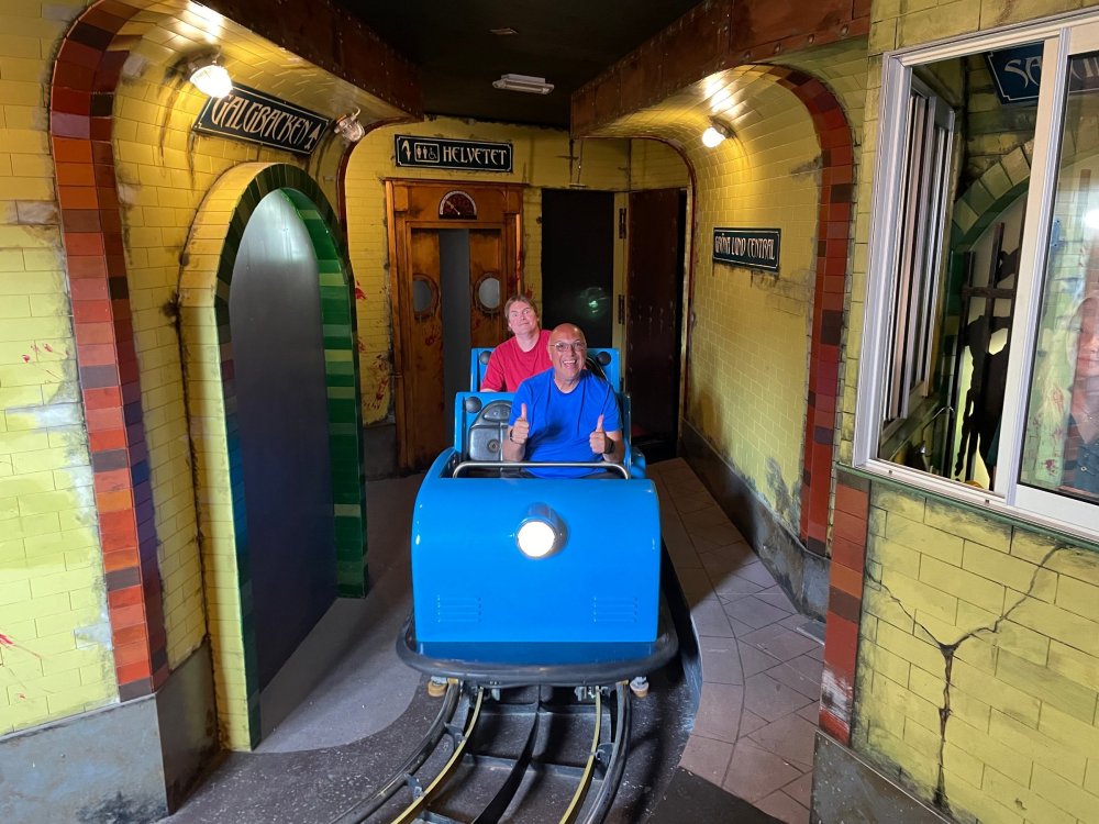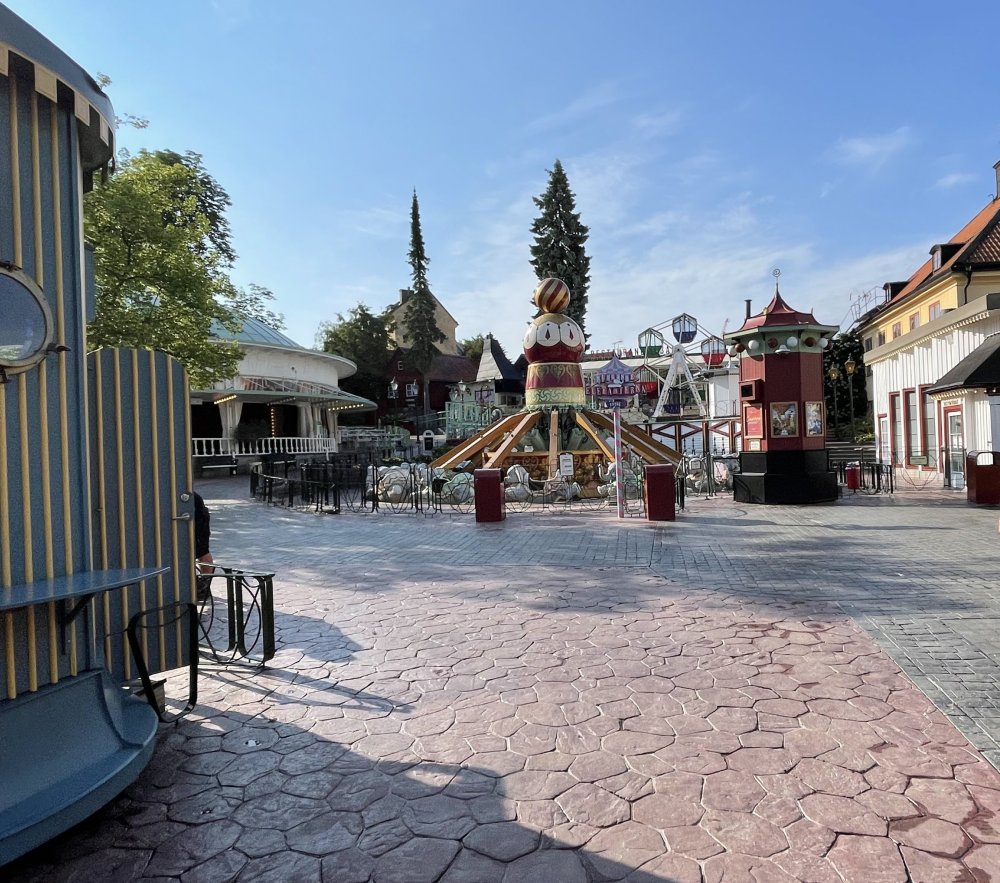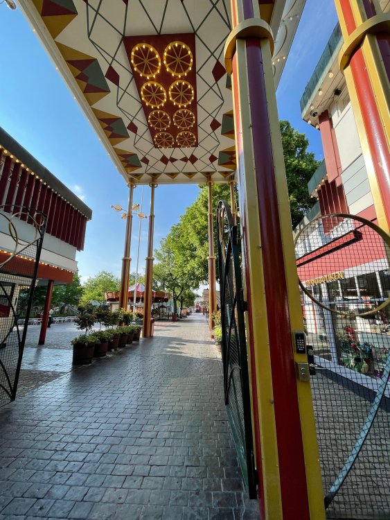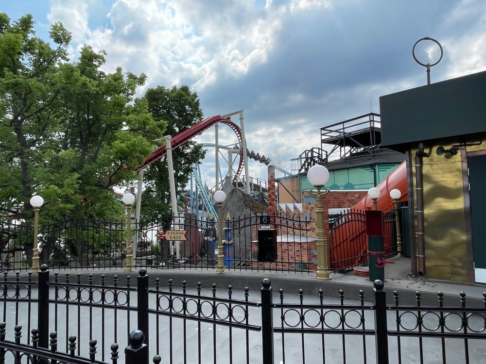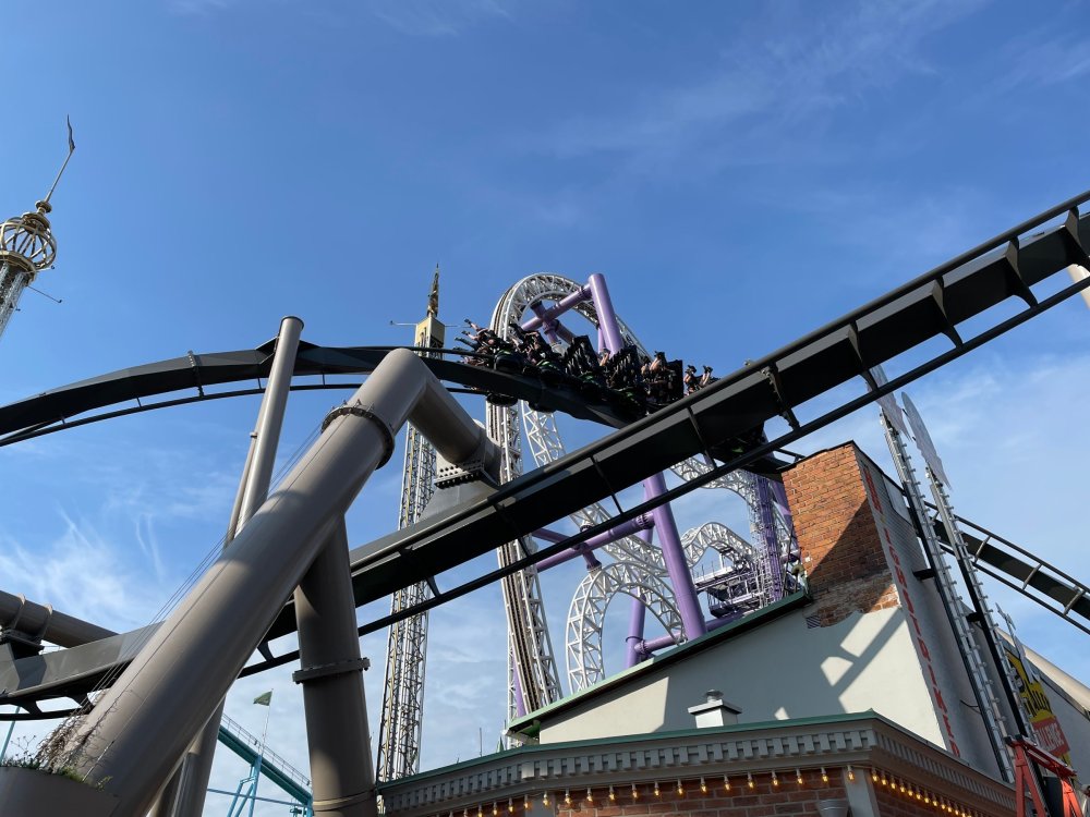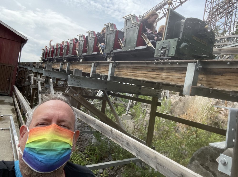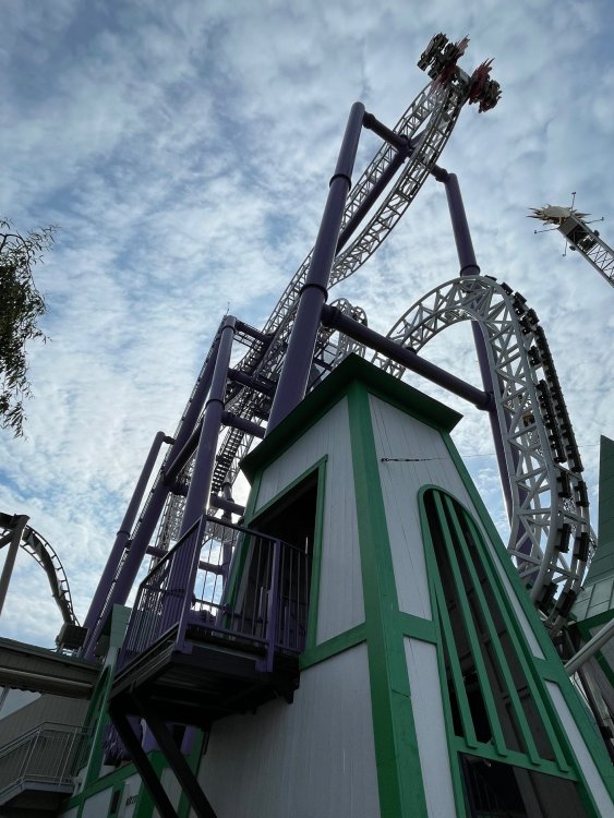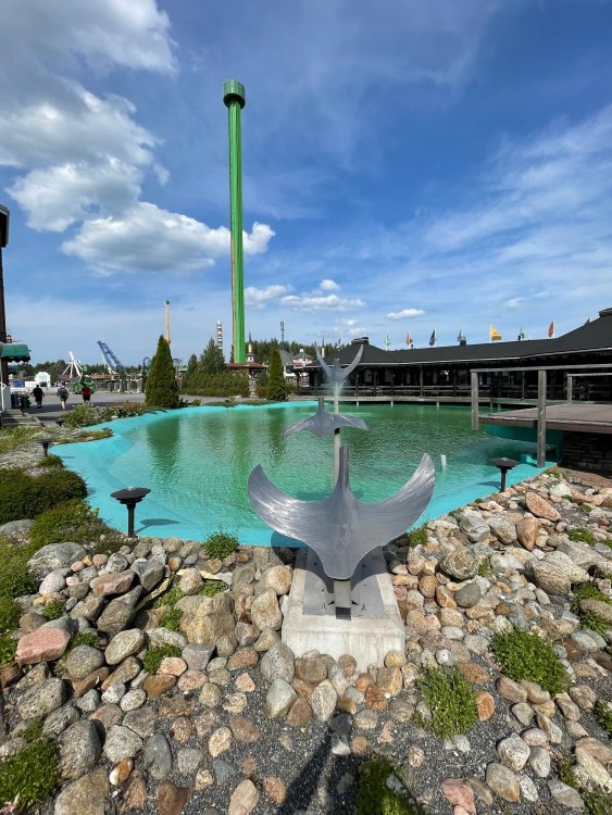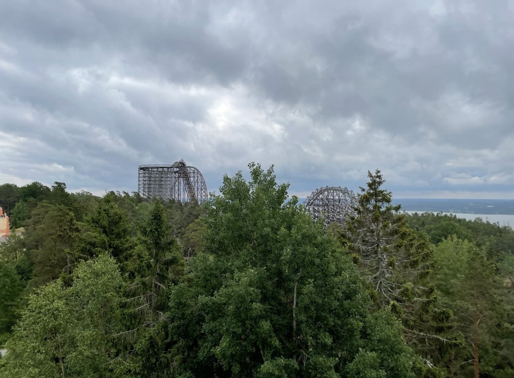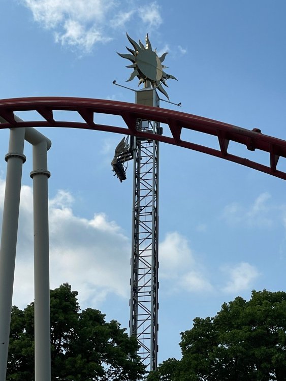 11. Day 18: Tuesday, June 20th part 3 (of 3) - back to finish off the night at the fantastic Grona Lund On the way back in, stopping to snap a pic of the park map. it LOOKS way smaller than it is, because things are just piled up on top of each other. the big green area in the bottom right, is the parking lot the park announced plans in 2023 to expand into. of course, my first stop on the way in was the Carousel. . . Big Mike had other plans tho, he was missing the kiddie credit, "Tuff-Tuff TÃ¥get" (Choo-Choo Train). So while he went to do that. . . Didier and I rode the Carousel. my happy place. his too, apparently for such a small carousel, it's just lovely, and appears hand painted. after my Carousel ride, I went over to the coaster to get proof of Big Mike riding it, in talking to the ride op - who was a total hoot! - she said it's a ride that's way more fun than it looks, as the sharp turns give a "whip" effect. She encouraged us all to ride it. sooooooo. . . (and she was right, it was way more fun that I had looked. and she let us ring the bell as we exited the station). back over to Vilda Musen for a "water free" ride, and we bumped into Hans and Matthew walking along the outside of the park, to get a different view of Twister and a crane across the lake, painted like a Giraffe. for some reason. Sweden! by going around the outside, we were gonna end up in the "haunted" section. . . and had also bumped into Andrew, sMisty, and Erik. . so we all headed that way together. that's Kvasten ahead of us, the Vekoma suspended coaster. whee. . . in the SPOOKY section now.. had to stop for a photo op, tho apparently we were boiling nothing for dinner. the flying carpet ride (not operating today) is over here for some reason. . . maybe they are tying in the Genie in the center of it with the spook/magic vibe of the area? Gotta ride Blue Train. . this thing is SO messed up. insanely silly, and with some needless nudity, and scary pop ups. . I adored it. rode this sucker at least 4 times on our trip. the name is brilliant. it's BLUE. . and it's a Train. see???? ooo. .scary! that creature has got "lady parts" !!! Scary!!!! so silly, and so much fun. every park should have a ride like this. and Grona Lund has several! the Starflyer doing it's thing from underneath Kvasten. we were in line for the very well done walk thru Haunt. I do believe that this is an upcharge attraction, but Elissa had arranged for us to all get admission (hence most of the group showing up here at a certain time). they send you thru in groups of 6-8, and said pictures were ok, as long as it didn't hold up the flow. it's got an outdoor section. . that's a group going thru the house up there on the balcony. fly, bird, fly !!!! now that bird knows what Fabio felt like, I suppose. my group's turn. . . howdy! ready to be a scared. . . nice mix of props, and live actors in here. great effect. . . choose your door carefully! he's coming to get you, Barbara. . . time for a birds eye view of the park on the starflyer. they are VERY serious about no loose objects on this ride. so only got pics from the queue, and before the ride started (with permission) it really is in the middle of everything. . surrounded by Coaster track on all sides that's Icarus doing it's thing back there. . Jetstream ,the Bobsled, AND Insane, all with cars on the tracks in one pic. that's a huge win for me, as I usually end up with no trains on the tracks hard to see in this pic, but Icarus has now tilted at the top, and the riders are hanging face down. a stage for musical performances. . . but we next headed over to the dual drop tower: Frit Fall & Tilt Hans & Matthew (and a very intense man who was wondering why I was taking his picture) chose to ride the "tilt" seated sides. while Big Mike and I (and a terrified girl), chose the stand up "Fritt Fall" side. it truly IS rather terrifying. and of course they have a camera on this side to capture it. I bought a magnet version, that came with a digital copy. glad I did it, but never again. walk around entertainment as well in this park. Not a LOT of it, but we were there on a weekday. in addition to lunch, snack, and dinner coupons, the park had gone all out and also gave us booklets of game coupons. the games were mostly hard, but there were some easier ones, and I think most everyone won some sort of prize. while they played that ping-pong game, I went into the bathroom next to it. . .and made a discovery. down a dark, bricked pathway/tunnel. . . there's this. just lovely. and when you go to wash your hands? yup. . a haunted toidy! gah! different mirrors have different creatures. . . LOL I had waited long enough, I was ready for Ikaros - the face first drop tower. again, some lovely art deco designs all around it. all the way up to the top. . . then, tilt forward. . so you will be hurtling face first towards the ground! gahhhhhhhh. . . . .it truly is a terrifying experience. and I absolutely LOVED it. we got some ERT on it at the end of the night - along with the operator making us sing ABBA and other disco songs as we ascended - and I think I rode every cycle I was able to get in on. scary, but THAT good. and you get pretty close to the ground before the seats swing back out to "normal" position even tho I know I'm a klutz, and the funhouse is a disaster waiting to happen for klutz'. . .I went ahead and did it. it's a really good funhouse. .and really ways to hurt oneself. I didn't get a pic of the entrance, but it's a "moving" ladder, that you have to climb up. . potential for injury right from the start! but it's full of whimsical, and fun obstacles. . that one really can't go around. you MUST go thru. bouncing walkways. . pitch black infinity rooms. . . truly confusing mirror mazes. . . yeah, all in one funhouse! and this is how you exit (the only option). . . you get a mat. sit on the mat, on the platform. . and the platform tilts, and shoots your ass down the slide! um.. . . . whee ? the view from t