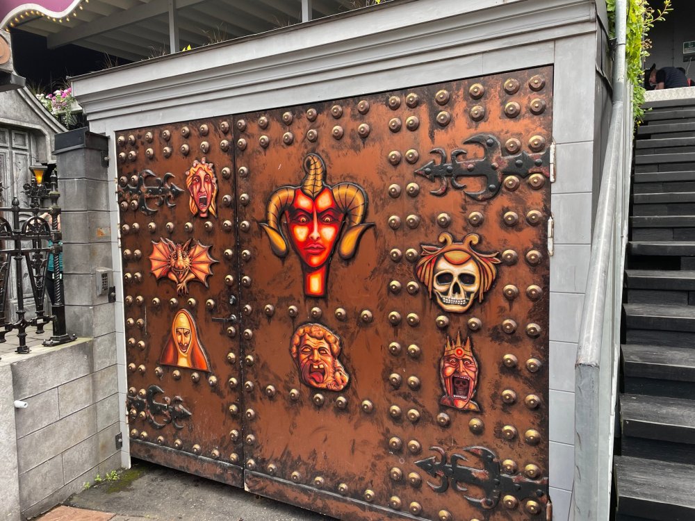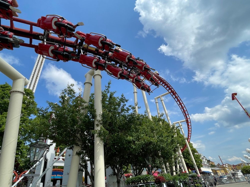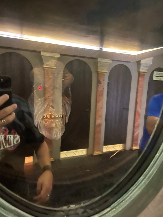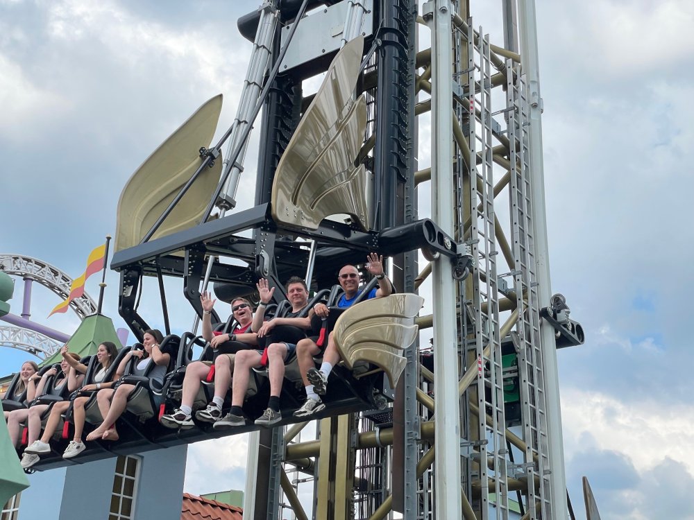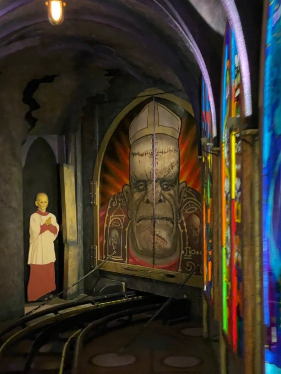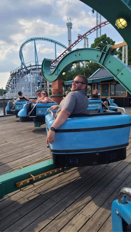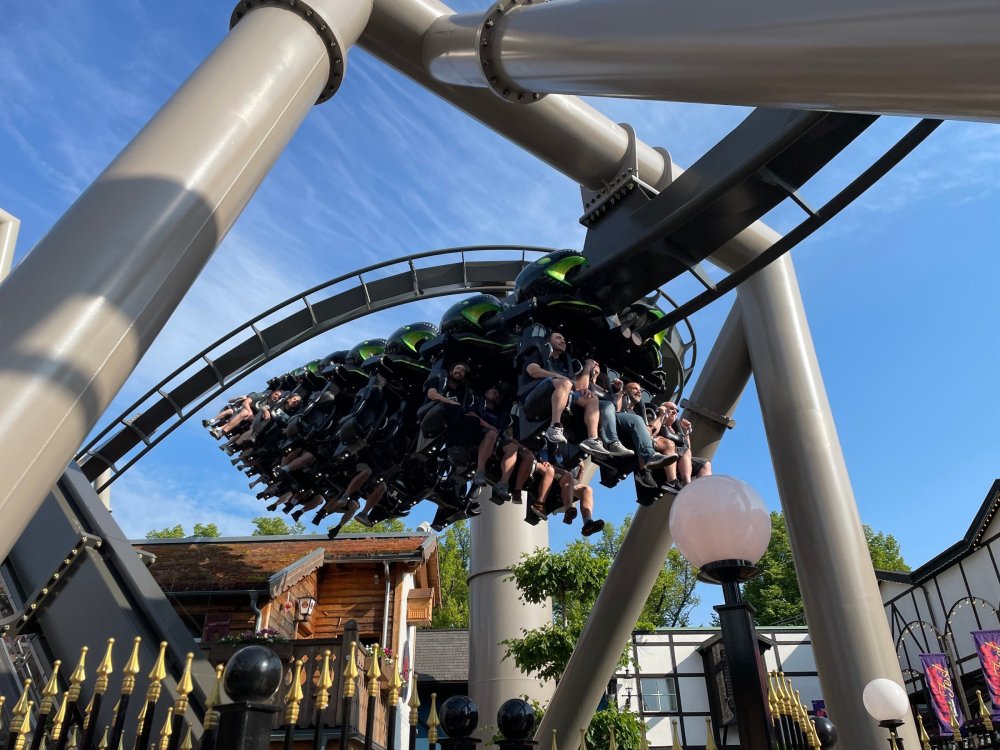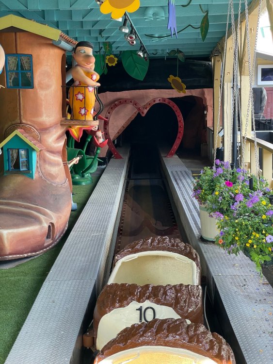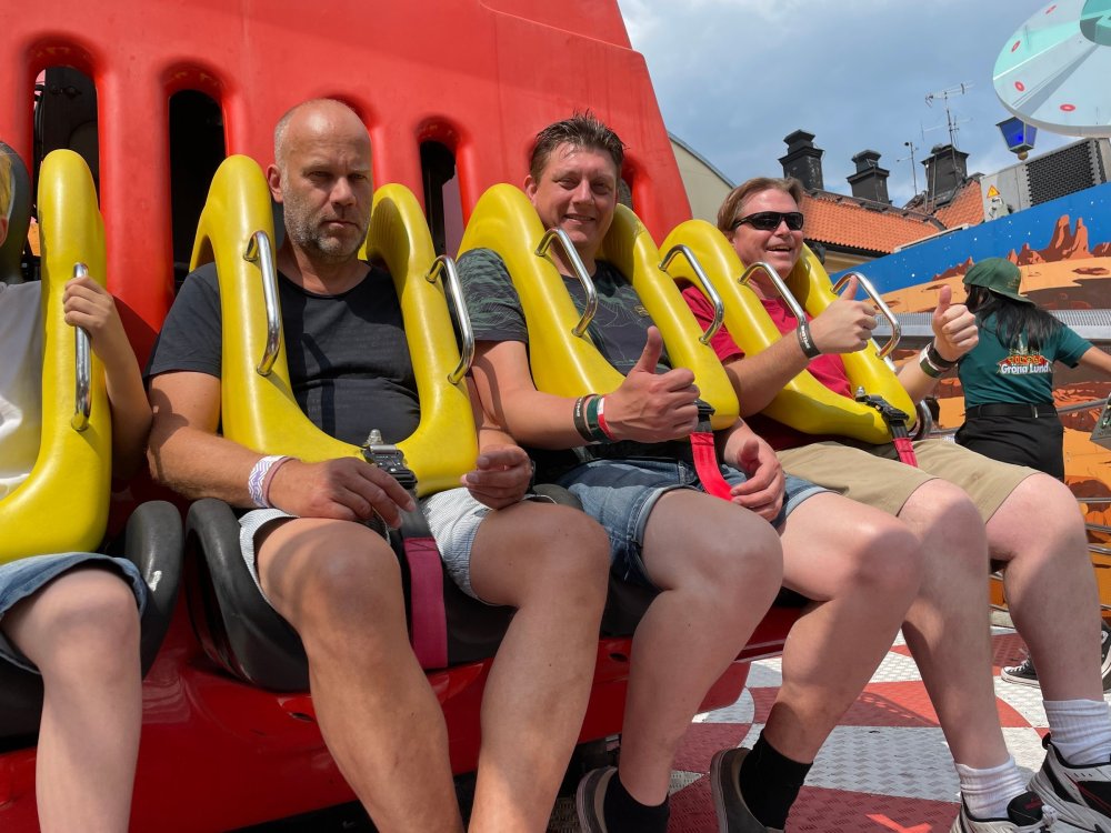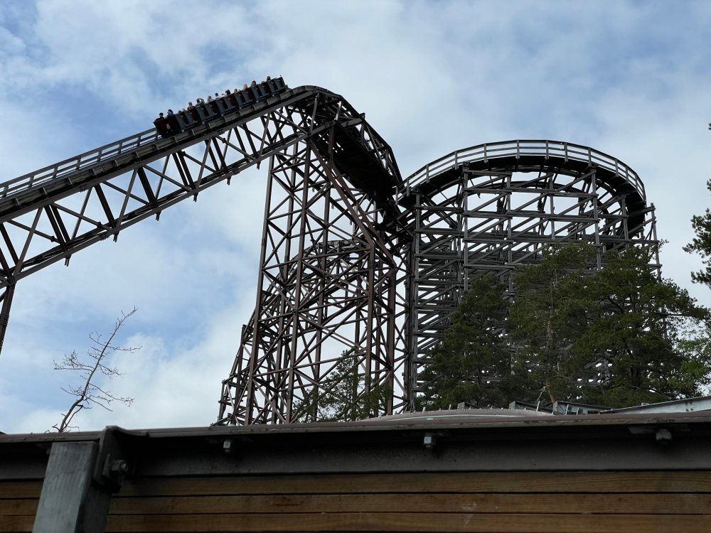 11. Day 18: Tuesday, June 20th part 3 (of 3) - back to finish off the night at the fantastic Grona Lund On the way back in, stopping to snap a pic of the park map. it LOOKS way smaller than it is, because things are just piled up on top of each other. the big green area in the bottom right, is the parking lot the park announced plans in 2023 to expand into. of course, my first stop on the way in was the Carousel. . . Big Mike had other plans tho, he was missing the kiddie credit, "Tuff-Tuff TÃ¥get" (Choo-Choo Train). So while he went to do that. . . Didier and I rode the Carousel. my happy place. his too, apparently for such a small carousel, it's just lovely, and appears hand painted. after my Carousel ride, I went over to the coaster to get proof of Big Mike riding it, in talking to the ride op - who was a total hoot! - she said it's a ride that's way more fun than it looks, as the sharp turns give a "whip" effect. She encouraged us all to ride it. sooooooo. . . (and she was right, it was way more fun that I had looked. and she let us ring the bell as we exited the station). back over to Vilda Musen for a "water free" ride, and we bumped into Hans and Matthew walking along the outside of the park, to get a different view of Twister and a crane across the lake, painted like a Giraffe. for some reason. Sweden! by going around the outside, we were gonna end up in the "haunted" section. . . and had also bumped into Andrew, sMisty, and Erik. . so we all headed that way together. that's Kvasten ahead of us, the Vekoma suspended coaster. whee. . . in the SPOOKY section now.. had to stop for a photo op, tho apparently we were boiling nothing for dinner. the flying carpet ride (not operating today) is over here for some reason. . . maybe they are tying in the Genie in the center of it with the spook/magic vibe of the area? Gotta ride Blue Train. . this thing is SO messed up. insanely silly, and with some needless nudity, and scary pop ups. . I adored it. rode this sucker at least 4 times on our trip. the name is brilliant. it's BLUE. . and it's a Train. see???? ooo. .scary! that creature has got "lady parts" !!! Scary!!!! so silly, and so much fun. every park should have a ride like this. and Grona Lund has several! the Starflyer doing it's thing from underneath Kvasten. we were in line for the very well done walk thru Haunt. I do believe that this is an upcharge attraction, but Elissa had arranged for us to all get admission (hence most of the group showing up here at a certain time). they send you thru in groups of 6-8, and said pictures were ok, as long as it didn't hold up the flow. it's got an outdoor section. . that's a group going thru the house up there on the balcony. fly, bird, fly !!!! now that bird knows what Fabio felt like, I suppose. my group's turn. . . howdy! ready to be a scared. . . nice mix of props, and live actors in here. great effect. . . choose your door carefully! he's coming to get you, Barbara. . . time for a birds eye view of the park on the starflyer. they are VERY serious about no loose objects on this ride. so only got pics from the queue, and before the ride started (with permission) it really is in the middle of everything. . surrounded by Coaster track on all sides that's Icarus doing it's thing back there. . Jetstream ,the Bobsled, AND Insane, all with cars on the tracks in one pic. that's a huge win for me, as I usually end up with no trains on the tracks hard to see in this pic, but Icarus has now tilted at the top, and the riders are hanging face down. a stage for musical performances. . . but we next headed over to the dual drop tower: Frit Fall & Tilt Hans & Matthew (and a very intense man who was wondering why I was taking his picture) chose to ride the "tilt" seated sides. while Big Mike and I (and a terrified girl), chose the stand up "Fritt Fall" side. it truly IS rather terrifying. and of course they have a camera on this side to capture it. I bought a magnet version, that came with a digital copy. glad I did it, but never again. walk around entertainment as well in this park. Not a LOT of it, but we were there on a weekday. in addition to lunch, snack, and dinner coupons, the park had gone all out and also gave us booklets of game coupons. the games were mostly hard, but there were some easier ones, and I think most everyone won some sort of prize. while they played that ping-pong game, I went into the bathroom next to it. . .and made a discovery. down a dark, bricked pathway/tunnel. . . there's this. just lovely. and when you go to wash your hands? yup. . a haunted toidy! gah! different mirrors have different creatures. . . LOL I had waited long enough, I was ready for Ikaros - the face first drop tower. again, some lovely art deco designs all around it. all the way up to the top. . . then, tilt forward. . so you will be hurtling face first towards the ground! gahhhhhhhh. . . . .it truly is a terrifying experience. and I absolutely LOVED it. we got some ERT on it at the end of the night - along with the operator making us sing ABBA and other disco songs as we ascended - and I think I rode every cycle I was able to get in on. scary, but THAT good. and you get pretty close to the ground before the seats swing back out to "normal" position even tho I know I'm a klutz, and the funhouse is a disaster waiting to happen for klutz'. . .I went ahead and did it. it's a really good funhouse. .and really ways to hurt oneself. I didn't get a pic of the entrance, but it's a "moving" ladder, that you have to climb up. . potential for injury right from the start! but it's full of whimsical, and fun obstacles. . that one really can't go around. you MUST go thru. bouncing walkways. . pitch black infinity rooms. . . truly confusing mirror mazes. . . yeah, all in one funhouse! and this is how you exit (the only option). . . you get a mat. sit on the mat, on the platform. . and the platform tilts, and shoots your ass down the slide! um.. . . . whee ? the view from t