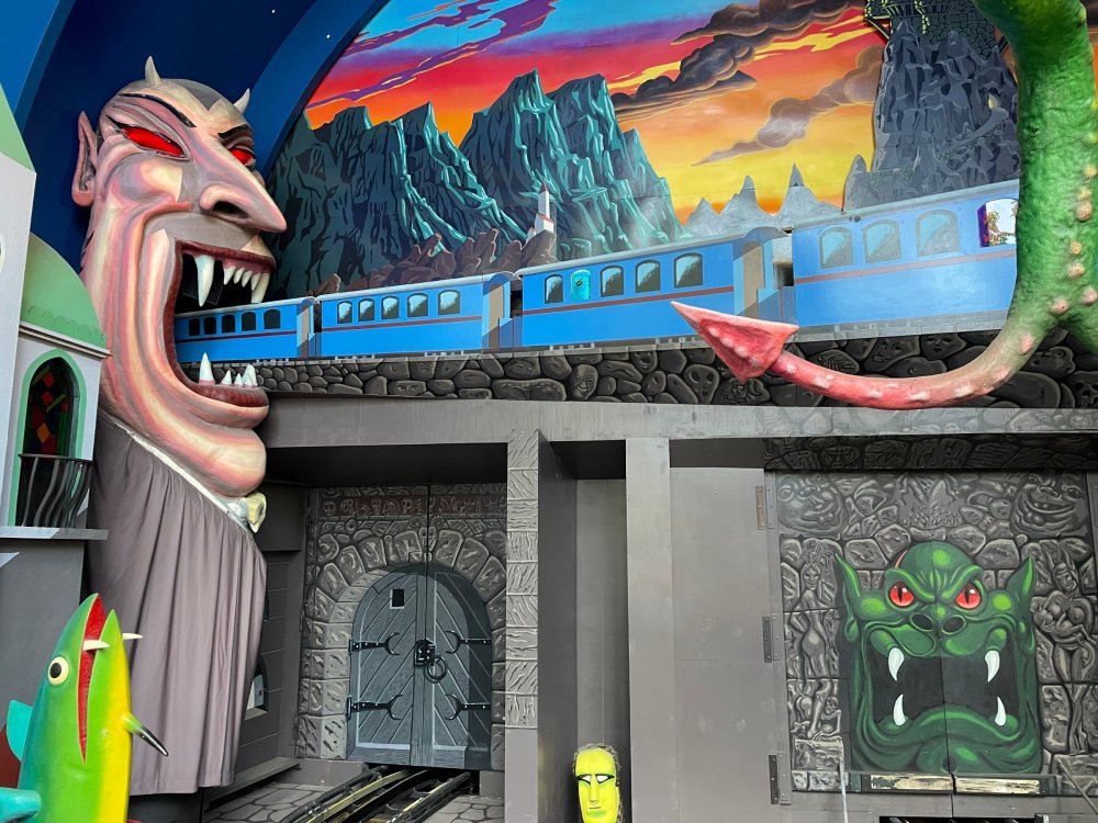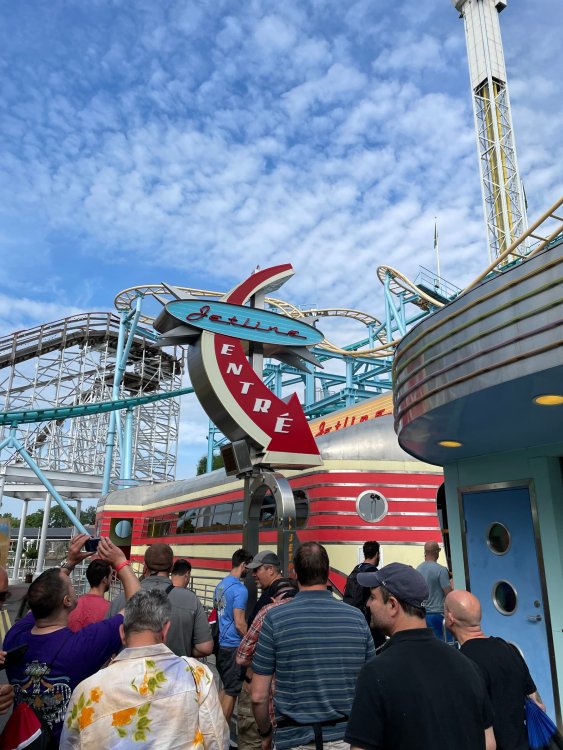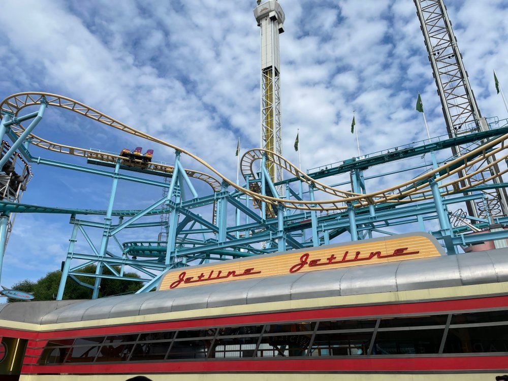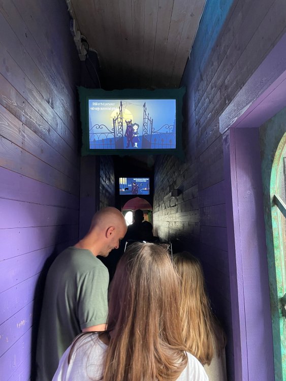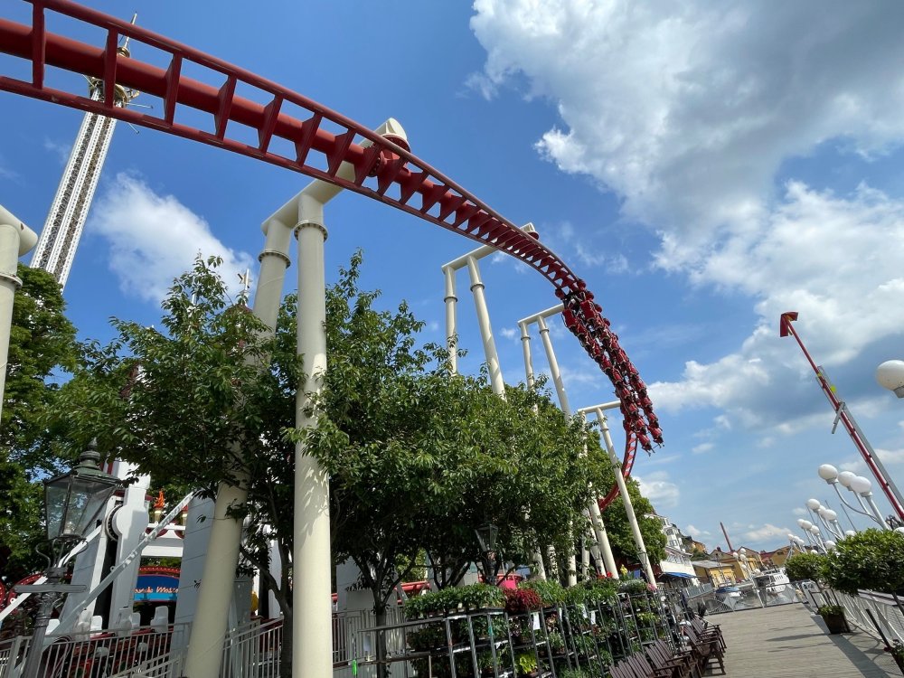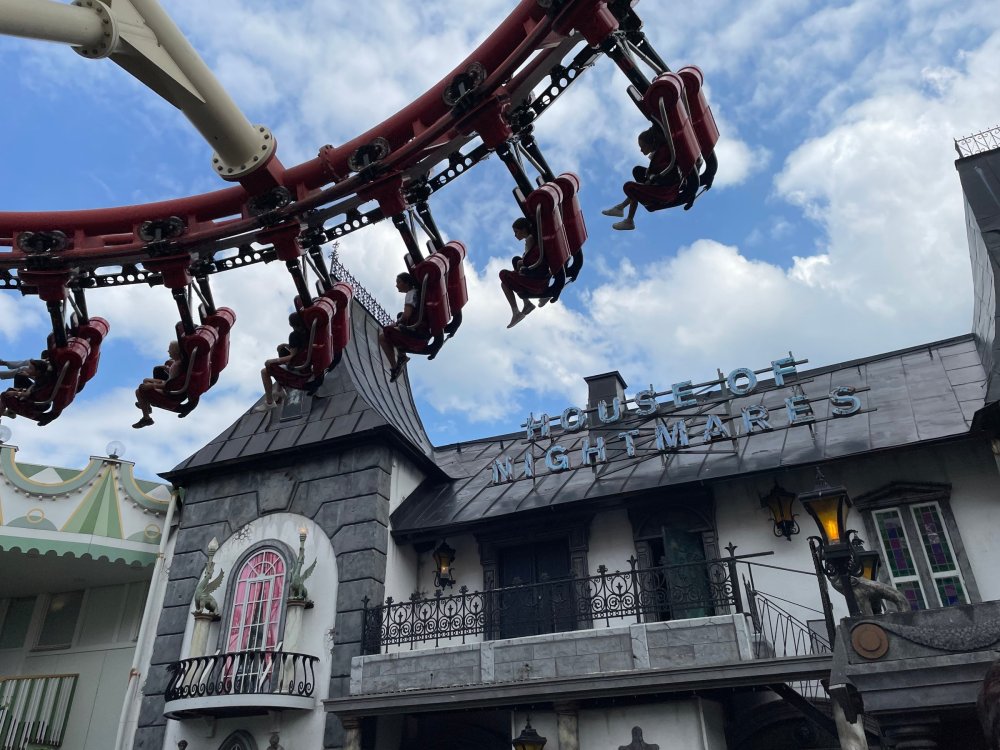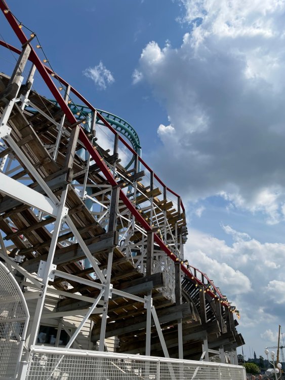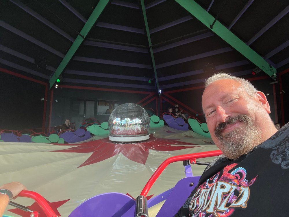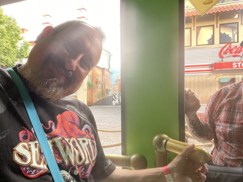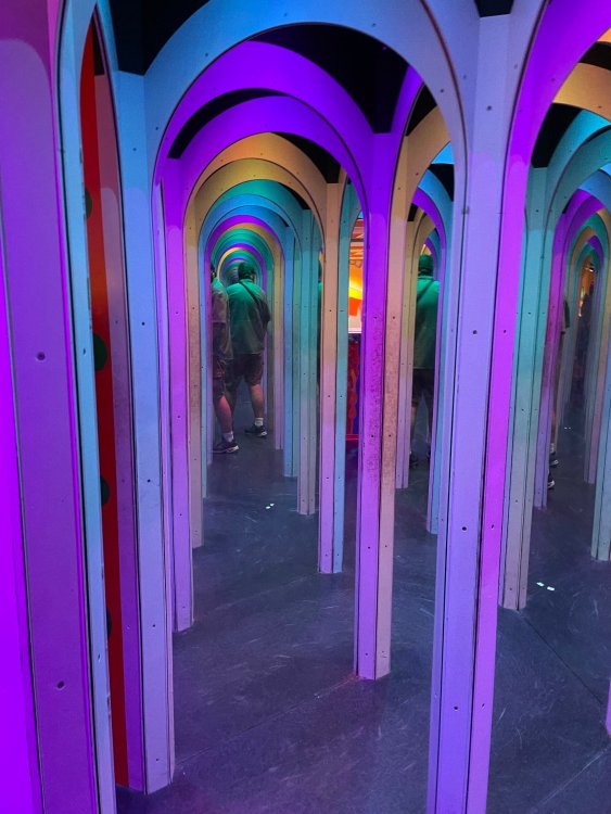 11. Day 18: Tuesday, June 20th part 3 (of 3) - back to finish off the night at the fantastic Grona Lund On the way back in, stopping to snap a pic of the park map. it LOOKS way smaller than it is, because things are just piled up on top of each other. the big green area in the bottom right, is the parking lot the park announced plans in 2023 to expand into. of course, my first stop on the way in was the Carousel. . . Big Mike had other plans tho, he was missing the kiddie credit, "Tuff-Tuff TÃ¥get" (Choo-Choo Train). So while he went to do that. . . Didier and I rode the Carousel. my happy place. his too, apparently for such a small carousel, it's just lovely, and appears hand painted. after my Carousel ride, I went over to the coaster to get proof of Big Mike riding it, in talking to the ride op - who was a total hoot! - she said it's a ride that's way more fun than it looks, as the sharp turns give a "whip" effect. She encouraged us all to ride it. sooooooo. . . (and she was right, it was way more fun that I had looked. and she let us ring the bell as we exited the station). back over to Vilda Musen for a "water free" ride, and we bumped into Hans and Matthew walking along the outside of the park, to get a different view of Twister and a crane across the lake, painted like a Giraffe. for some reason. Sweden! by going around the outside, we were gonna end up in the "haunted" section. . . and had also bumped into Andrew, sMisty, and Erik. . so we all headed that way together. that's Kvasten ahead of us, the Vekoma suspended coaster. whee. . . in the SPOOKY section now.. had to stop for a photo op, tho apparently we were boiling nothing for dinner. the flying carpet ride (not operating today) is over here for some reason. . . maybe they are tying in the Genie in the center of it with the spook/magic vibe of the area? Gotta ride Blue Train. . this thing is SO messed up. insanely silly, and with some needless nudity, and scary pop ups. . I adored it. rode this sucker at least 4 times on our trip. the name is brilliant. it's BLUE. . and it's a Train. see???? ooo. .scary! that creature has got "lady parts" !!! Scary!!!! so silly, and so much fun. every park should have a ride like this. and Grona Lund has several! the Starflyer doing it's thing from underneath Kvasten. we were in line for the very well done walk thru Haunt. I do believe that this is an upcharge attraction, but Elissa had arranged for us to all get admission (hence most of the group showing up here at a certain time). they send you thru in groups of 6-8, and said pictures were ok, as long as it didn't hold up the flow. it's got an outdoor section. . that's a group going thru the house up there on the balcony. fly, bird, fly !!!! now that bird knows what Fabio felt like, I suppose. my group's turn. . . howdy! ready to be a scared. . . nice mix of props, and live actors in here. great effect. . . choose your door carefully! he's coming to get you, Barbara. . . time for a birds eye view of the park on the starflyer. they are VERY serious about no loose objects on this ride. so only got pics from the queue, and before the ride started (with permission) it really is in the middle of everything. . surrounded by Coaster track on all sides that's Icarus doing it's thing back there. . Jetstream ,the Bobsled, AND Insane, all with cars on the tracks in one pic. that's a huge win for me, as I usually end up with no trains on the tracks hard to see in this pic, but Icarus has now tilted at the top, and the riders are hanging face down. a stage for musical performances. . . but we next headed over to the dual drop tower: Frit Fall & Tilt Hans & Matthew (and a very intense man who was wondering why I was taking his picture) chose to ride the "tilt" seated sides. while Big Mike and I (and a terrified girl), chose the stand up "Fritt Fall" side. it truly IS rather terrifying. and of course they have a camera on this side to capture it. I bought a magnet version, that came with a digital copy. glad I did it, but never again. walk around entertainment as well in this park. Not a LOT of it, but we were there on a weekday. in addition to lunch, snack, and dinner coupons, the park had gone all out and also gave us booklets of game coupons. the games were mostly hard, but there were some easier ones, and I think most everyone won some sort of prize. while they played that ping-pong game, I went into the bathroom next to it. . .and made a discovery. down a dark, bricked pathway/tunnel. . . there's this. just lovely. and when you go to wash your hands? yup. . a haunted toidy! gah! different mirrors have different creatures. . . LOL I had waited long enough, I was ready for Ikaros - the face first drop tower. again, some lovely art deco designs all around it. all the way up to the top. . . then, tilt forward. . so you will be hurtling face first towards the ground! gahhhhhhhh. . . . .it truly is a terrifying experience. and I absolutely LOVED it. we got some ERT on it at the end of the night - along with the operator making us sing ABBA and other disco songs as we ascended - and I think I rode every cycle I was able to get in on. scary, but THAT good. and you get pretty close to the ground before the seats swing back out to "normal" position even tho I know I'm a klutz, and the funhouse is a disaster waiting to happen for klutz'. . .I went ahead and did it. it's a really good funhouse. .and really ways to hurt oneself. I didn't get a pic of the entrance, but it's a "moving" ladder, that you have to climb up. . potential for injury right from the start! but it's full of whimsical, and fun obstacles. . that one really can't go around. you MUST go thru. bouncing walkways. . pitch black infinity rooms. . . truly confusing mirror mazes. . . yeah, all in one funhouse! and this is how you exit (the only option). . . you get a mat. sit on the mat, on the platform. . and the platform tilts, and shoots your ass down the slide! um.. . . . whee ? the view from t