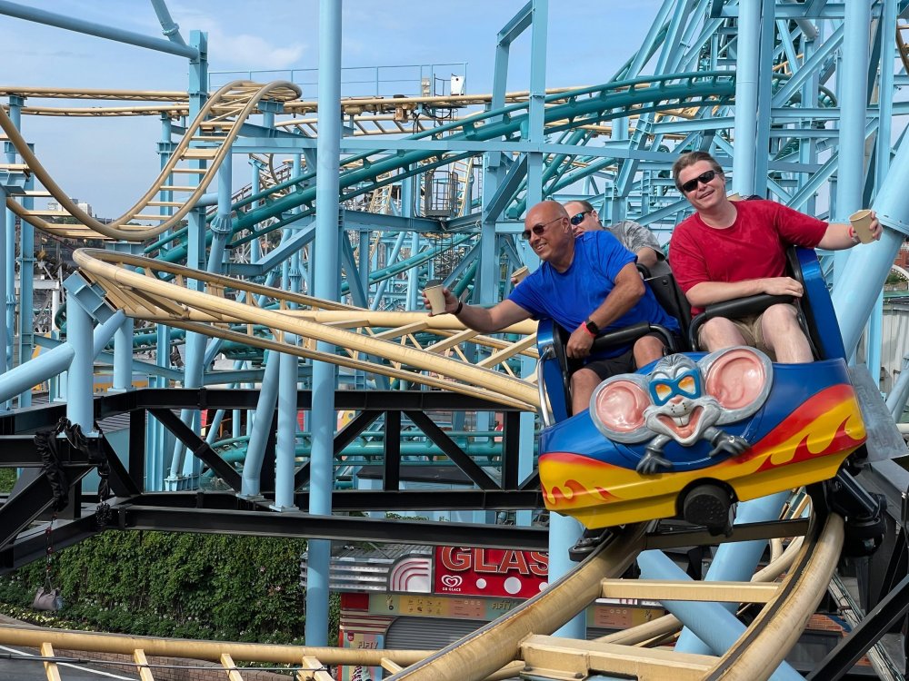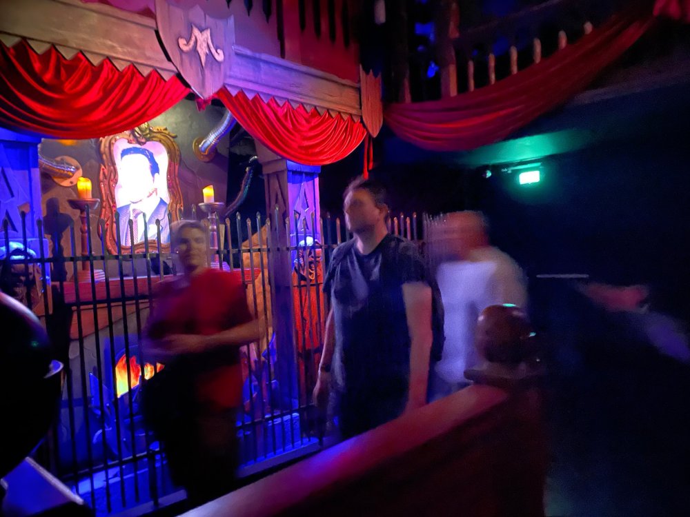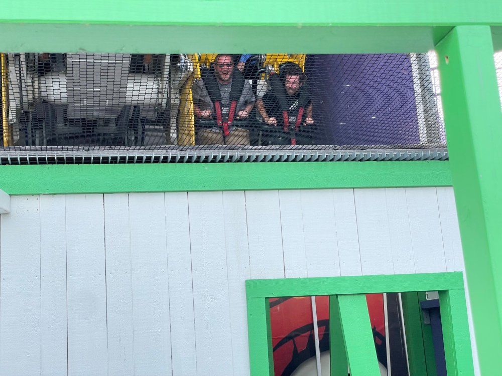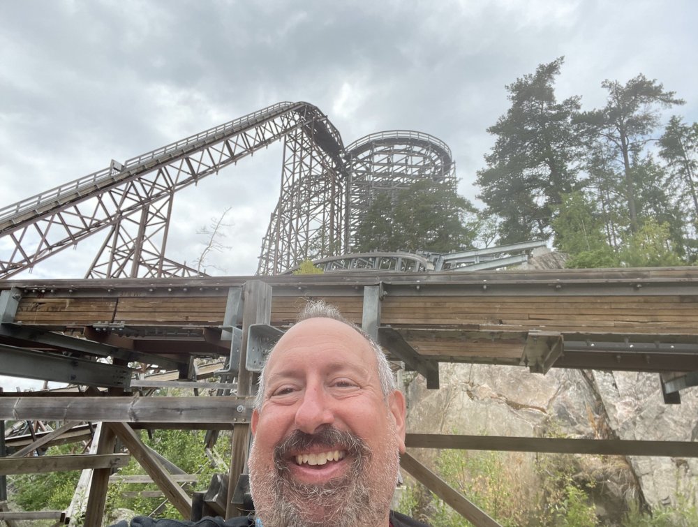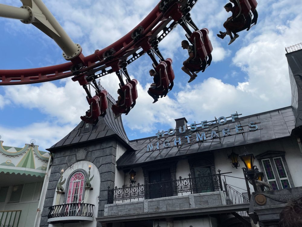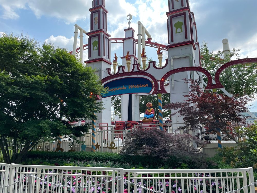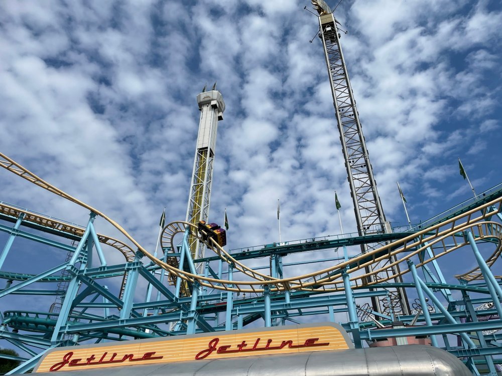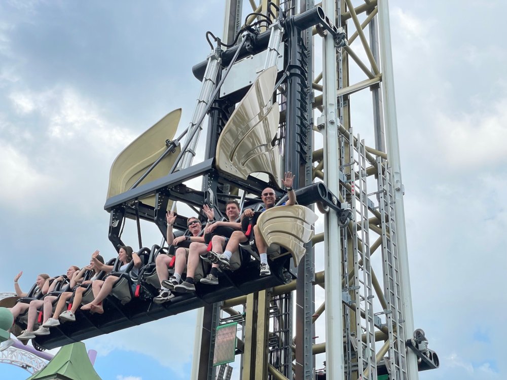 11. Day 18: Tuesday, June 20th part 3 (of 3) - back to finish off the night at the fantastic Grona Lund On the way back in, stopping to snap a pic of the park map. it LOOKS way smaller than it is, because things are just piled up on top of each other. the big green area in the bottom right, is the parking lot the park announced plans in 2023 to expand into. of course, my first stop on the way in was the Carousel. . . Big Mike had other plans tho, he was missing the kiddie credit, "Tuff-Tuff TÃ¥get" (Choo-Choo Train). So while he went to do that. . . Didier and I rode the Carousel. my happy place. his too, apparently for such a small carousel, it's just lovely, and appears hand painted. after my Carousel ride, I went over to the coaster to get proof of Big Mike riding it, in talking to the ride op - who was a total hoot! - she said it's a ride that's way more fun than it looks, as the sharp turns give a "whip" effect. She encouraged us all to ride it. sooooooo. . . (and she was right, it was way more fun that I had looked. and she let us ring the bell as we exited the station). back over to Vilda Musen for a "water free" ride, and we bumped into Hans and Matthew walking along the outside of the park, to get a different view of Twister and a crane across the lake, painted like a Giraffe. for some reason. Sweden! by going around the outside, we were gonna end up in the "haunted" section. . . and had also bumped into Andrew, sMisty, and Erik. . so we all headed that way together. that's Kvasten ahead of us, the Vekoma suspended coaster. whee. . . in the SPOOKY section now.. had to stop for a photo op, tho apparently we were boiling nothing for dinner. the flying carpet ride (not operating today) is over here for some reason. . . maybe they are tying in the Genie in the center of it with the spook/magic vibe of the area? Gotta ride Blue Train. . this thing is SO messed up. insanely silly, and with some needless nudity, and scary pop ups. . I adored it. rode this sucker at least 4 times on our trip. the name is brilliant. it's BLUE. . and it's a Train. see???? ooo. .scary! that creature has got "lady parts" !!! Scary!!!! so silly, and so much fun. every park should have a ride like this. and Grona Lund has several! the Starflyer doing it's thing from underneath Kvasten. we were in line for the very well done walk thru Haunt. I do believe that this is an upcharge attraction, but Elissa had arranged for us to all get admission (hence most of the group showing up here at a certain time). they send you thru in groups of 6-8, and said pictures were ok, as long as it didn't hold up the flow. it's got an outdoor section. . that's a group going thru the house up there on the balcony. fly, bird, fly !!!! now that bird knows what Fabio felt like, I suppose. my group's turn. . . howdy! ready to be a scared. . . nice mix of props, and live actors in here. great effect. . . choose your door carefully! he's coming to get you, Barbara. . . time for a birds eye view of the park on the starflyer. they are VERY serious about no loose objects on this ride. so only got pics from the queue, and before the ride started (with permission) it really is in the middle of everything. . surrounded by Coaster track on all sides that's Icarus doing it's thing back there. . Jetstream ,the Bobsled, AND Insane, all with cars on the tracks in one pic. that's a huge win for me, as I usually end up with no trains on the tracks hard to see in this pic, but Icarus has now tilted at the top, and the riders are hanging face down. a stage for musical performances. . . but we next headed over to the dual drop tower: Frit Fall & Tilt Hans & Matthew (and a very intense man who was wondering why I was taking his picture) chose to ride the "tilt" seated sides. while Big Mike and I (and a terrified girl), chose the stand up "Fritt Fall" side. it truly IS rather terrifying. and of course they have a camera on this side to capture it. I bought a magnet version, that came with a digital copy. glad I did it, but never again. walk around entertainment as well in this park. Not a LOT of it, but we were there on a weekday. in addition to lunch, snack, and dinner coupons, the park had gone all out and also gave us booklets of game coupons. the games were mostly hard, but there were some easier ones, and I think most everyone won some sort of prize. while they played that ping-pong game, I went into the bathroom next to it. . .and made a discovery. down a dark, bricked pathway/tunnel. . . there's this. just lovely. and when you go to wash your hands? yup. . a haunted toidy! gah! different mirrors have different creatures. . . LOL I had waited long enough, I was ready for Ikaros - the face first drop tower. again, some lovely art deco designs all around it. all the way up to the top. . . then, tilt forward. . so you will be hurtling face first towards the ground! gahhhhhhhh. . . . .it truly is a terrifying experience. and I absolutely LOVED it. we got some ERT on it at the end of the night - along with the operator making us sing ABBA and other disco songs as we ascended - and I think I rode every cycle I was able to get in on. scary, but THAT good. and you get pretty close to the ground before the seats swing back out to "normal" position even tho I know I'm a klutz, and the funhouse is a disaster waiting to happen for klutz'. . .I went ahead and did it. it's a really good funhouse. .and really ways to hurt oneself. I didn't get a pic of the entrance, but it's a "moving" ladder, that you have to climb up. . potential for injury right from the start! but it's full of whimsical, and fun obstacles. . that one really can't go around. you MUST go thru. bouncing walkways. . pitch black infinity rooms. . . truly confusing mirror mazes. . . yeah, all in one funhouse! and this is how you exit (the only option). . . you get a mat. sit on the mat, on the platform. . and the platform tilts, and shoots your ass down the slide! um.. . . . whee ? the view from t