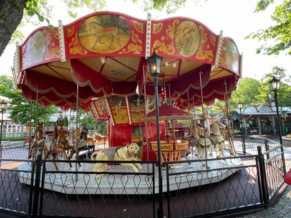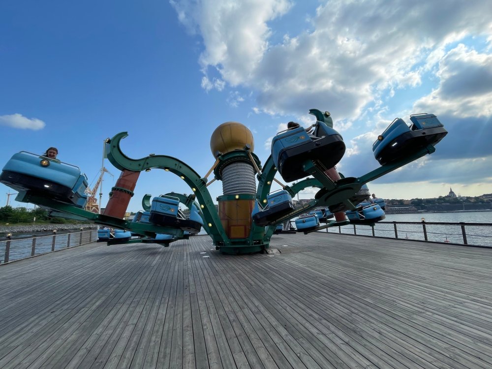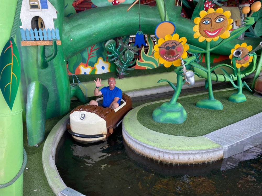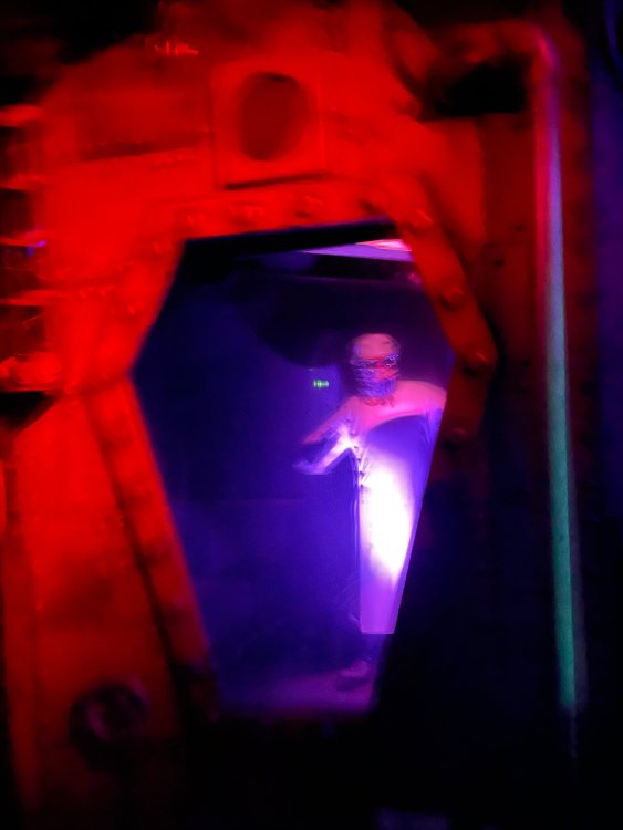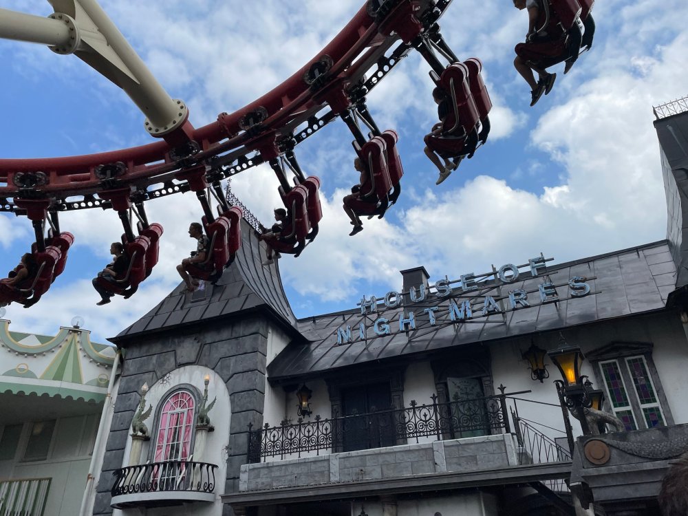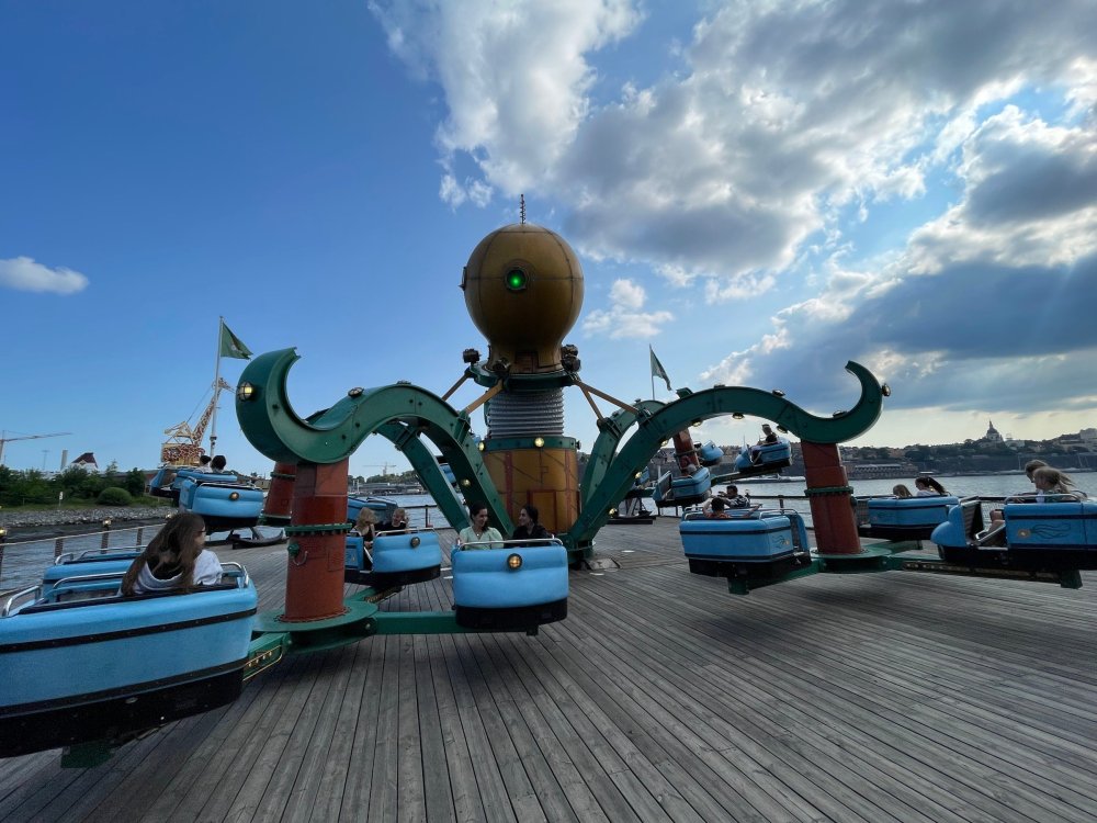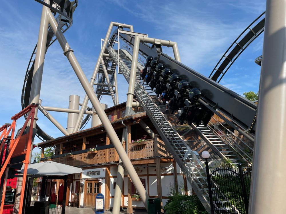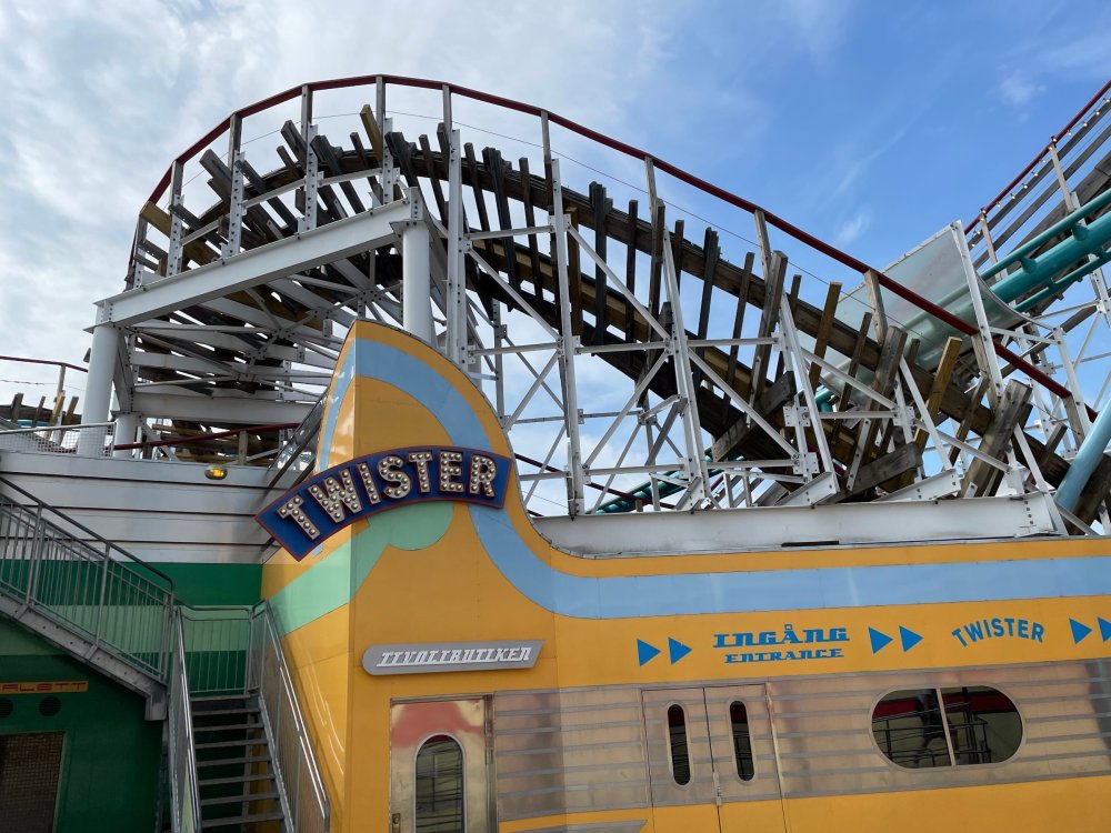11. Day 18: Tuesday, June 20th part 3 (of 3) - back to finish off the night at the fantastic Grona Lund On the way back in, stopping to snap a pic of the park map. it LOOKS way smaller than it is, because things are just piled up on top of each other. the big green area in the bottom right, is the parking lot the park announced plans in 2023 to expand into. of course, my first stop on the way in was the Carousel. . . Big Mike had other plans tho, he was missing the kiddie credit, "Tuff-Tuff TÃ¥get" (Choo-Choo Train). So while he went to do that. . . Didier and I rode the Carousel. my happy place. his too, apparently for such a small carousel, it's just lovely, and appears hand painted. after my Carousel ride, I went over to the coaster to get proof of Big Mike riding it, in talking to the ride op - who was a total hoot! - she said it's a ride that's way more fun than it looks, as the sharp turns give a "whip" effect. She encouraged us all to ride it. sooooooo. . . (and she was right, it was way more fun that I had looked. and she let us ring the bell as we exited the station). back over to Vilda Musen for a "water free" ride, and we bumped into Hans and Matthew walking along the outside of the park, to get a different view of Twister and a crane across the lake, painted like a Giraffe. for some reason. Sweden! by going around the outside, we were gonna end up in the "haunted" section. . . and had also bumped into Andrew, sMisty, and Erik. . so we all headed that way together. that's Kvasten ahead of us, the Vekoma suspended coaster. whee. . . in the SPOOKY section now.. had to stop for a photo op, tho apparently we were boiling nothing for dinner. the flying carpet ride (not operating today) is over here for some reason. . . maybe they are tying in the Genie in the center of it with the spook/magic vibe of the area? Gotta ride Blue Train. . this thing is SO messed up. insanely silly, and with some needless nudity, and scary pop ups. . I adored it. rode this sucker at least 4 times on our trip. the name is brilliant. it's BLUE. . and it's a Train. see???? ooo. .scary! that creature has got "lady parts" !!! Scary!!!! so silly, and so much fun. every park should have a ride like this. and Grona Lund has several! the Starflyer doing it's thing from underneath Kvasten. we were in line for the very well done walk thru Haunt. I do believe that this is an upcharge attraction, but Elissa had arranged for us to all get admission (hence most of the group showing up here at a certain time). they send you thru in groups of 6-8, and said pictures were ok, as long as it didn't hold up the flow. it's got an outdoor section. . that's a group going thru the house up there on the balcony. fly, bird, fly !!!! now that bird knows what Fabio felt like, I suppose. my group's turn. . . howdy! ready to be a scared. . . nice mix of props, and live actors in here. great effect. . . choose your door carefully! he's coming to get you, Barbara. . . time for a birds eye view of the park on the starflyer. they are VERY serious about no loose objects on this ride. so only got pics from the queue, and before the ride started (with permission) it really is in the middle of everything. . surrounded by Coaster track on all sides that's Icarus doing it's thing back there. . Jetstream ,the Bobsled, AND Insane, all with cars on the tracks in one pic. that's a huge win for me, as I usually end up with no trains on the tracks hard to see in this pic, but Icarus has now tilted at the top, and the riders are hanging face down. a stage for musical performances. . . but we next headed over to the dual drop tower: Frit Fall & Tilt Hans & Matthew (and a very intense man who was wondering why I was taking his picture) chose to ride the "tilt" seated sides. while Big Mike and I (and a terrified girl), chose the stand up "Fritt Fall" side. it truly IS rather terrifying. and of course they have a camera on this side to capture it. I bought a magnet version, that came with a digital copy. glad I did it, but never again. walk around entertainment as well in this park. Not a LOT of it, but we were there on a weekday. in addition to lunch, snack, and dinner coupons, the park had gone all out and also gave us booklets of game coupons. the games were mostly hard, but there were some easier ones, and I think most everyone won some sort of prize. while they played that ping-pong game, I went into the bathroom next to it. . .and made a discovery. down a dark, bricked pathway/tunnel. . . there's this. just lovely. and when you go to wash your hands? yup. . a haunted toidy! gah! different mirrors have different creatures. . . LOL I had waited long enough, I was ready for Ikaros - the face first drop tower. again, some lovely art deco designs all around it. all the way up to the top. . . then, tilt forward. . so you will be hurtling face first towards the ground! gahhhhhhhh. . . . .it truly is a terrifying experience. and I absolutely LOVED it. we got some ERT on it at the end of the night - along with the operator making us sing ABBA and other disco songs as we ascended - and I think I rode every cycle I was able to get in on. scary, but THAT good. and you get pretty close to the ground before the seats swing back out to "normal" position even tho I know I'm a klutz, and the funhouse is a disaster waiting to happen for klutz'. . .I went ahead and did it. it's a really good funhouse. .and really ways to hurt oneself. I didn't get a pic of the entrance, but it's a "moving" ladder, that you have to climb up. . potential for injury right from the start! but it's full of whimsical, and fun obstacles. . that one really can't go around. you MUST go thru. bouncing walkways. . pitch black infinity rooms. . . truly confusing mirror mazes. . . yeah, all in one funhouse! and this is how you exit (the only option). . . you get a mat. sit on the mat, on the platform. . and the platform tilts, and shoots your ass down the slide! um.. . . . whee ? the view from t