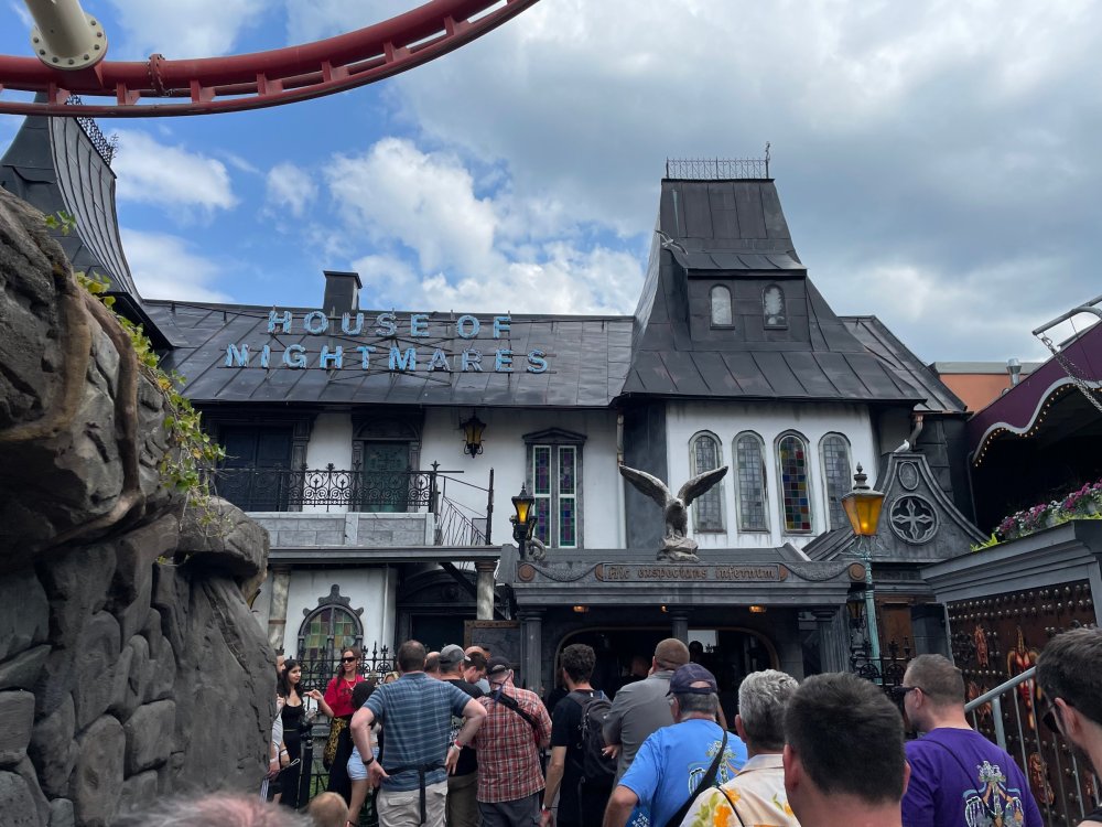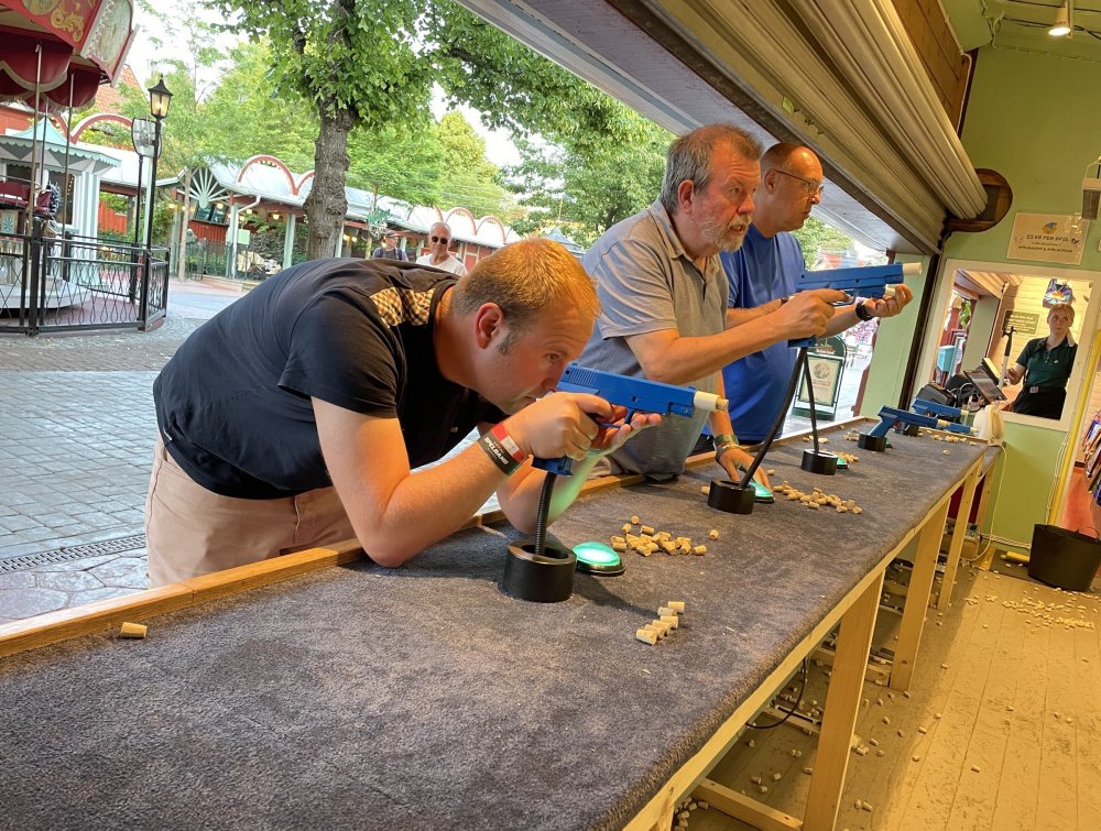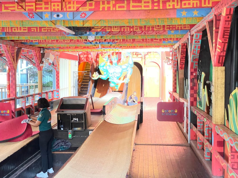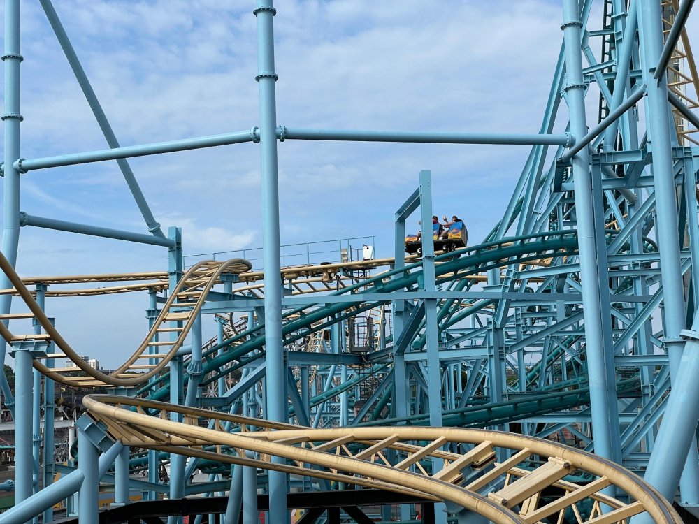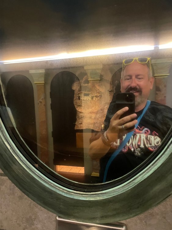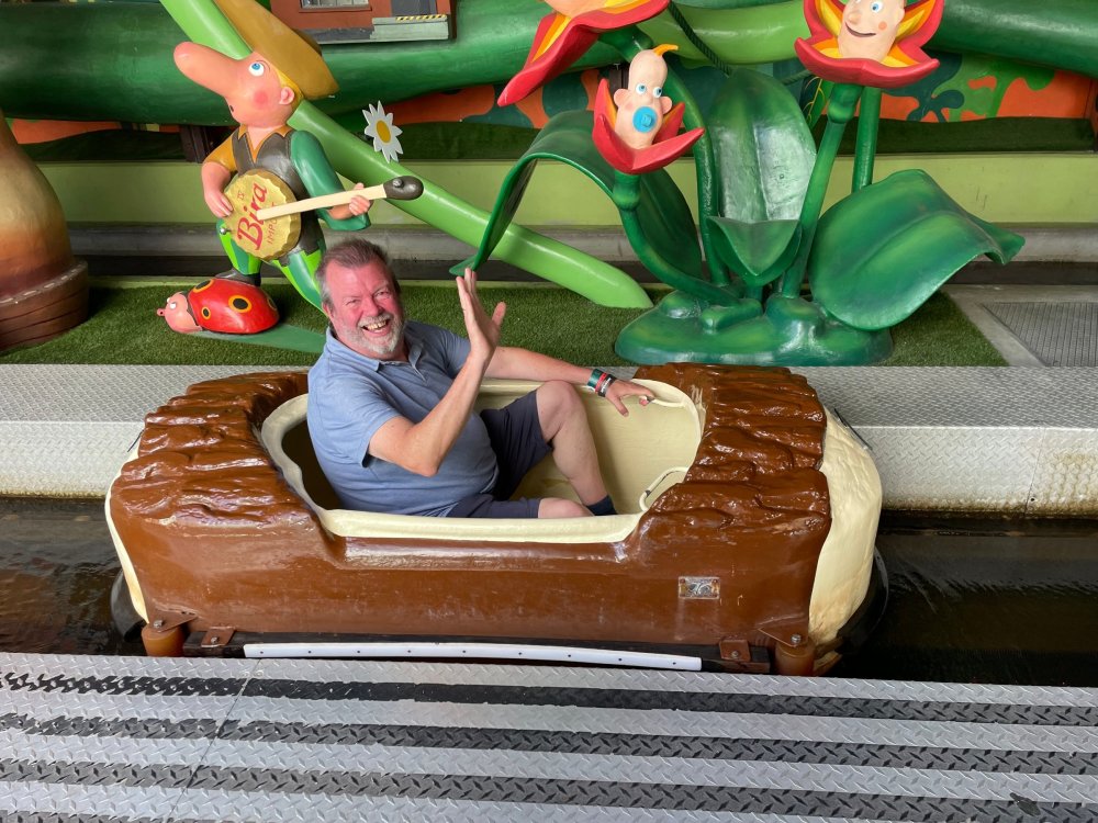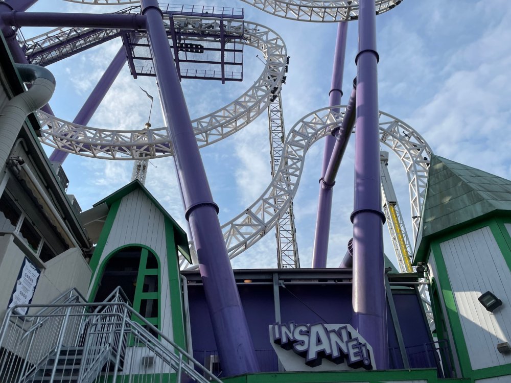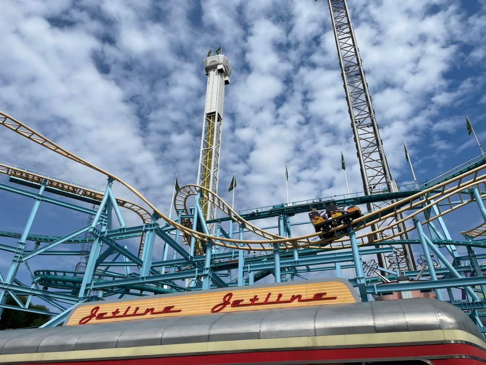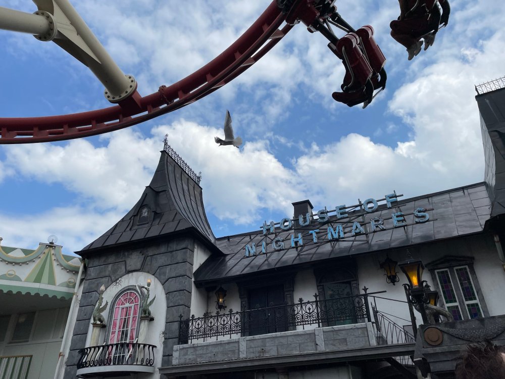 11. Day 18: Tuesday, June 20th part 3 (of 3) - back to finish off the night at the fantastic Grona Lund On the way back in, stopping to snap a pic of the park map. it LOOKS way smaller than it is, because things are just piled up on top of each other. the big green area in the bottom right, is the parking lot the park announced plans in 2023 to expand into. of course, my first stop on the way in was the Carousel. . . Big Mike had other plans tho, he was missing the kiddie credit, "Tuff-Tuff TÃ¥get" (Choo-Choo Train). So while he went to do that. . . Didier and I rode the Carousel. my happy place. his too, apparently for such a small carousel, it's just lovely, and appears hand painted. after my Carousel ride, I went over to the coaster to get proof of Big Mike riding it, in talking to the ride op - who was a total hoot! - she said it's a ride that's way more fun than it looks, as the sharp turns give a "whip" effect. She encouraged us all to ride it. sooooooo. . . (and she was right, it was way more fun that I had looked. and she let us ring the bell as we exited the station). back over to Vilda Musen for a "water free" ride, and we bumped into Hans and Matthew walking along the outside of the park, to get a different view of Twister and a crane across the lake, painted like a Giraffe. for some reason. Sweden! by going around the outside, we were gonna end up in the "haunted" section. . . and had also bumped into Andrew, sMisty, and Erik. . so we all headed that way together. that's Kvasten ahead of us, the Vekoma suspended coaster. whee. . . in the SPOOKY section now.. had to stop for a photo op, tho apparently we were boiling nothing for dinner. the flying carpet ride (not operating today) is over here for some reason. . . maybe they are tying in the Genie in the center of it with the spook/magic vibe of the area? Gotta ride Blue Train. . this thing is SO messed up. insanely silly, and with some needless nudity, and scary pop ups. . I adored it. rode this sucker at least 4 times on our trip. the name is brilliant. it's BLUE. . and it's a Train. see???? ooo. .scary! that creature has got "lady parts" !!! Scary!!!! so silly, and so much fun. every park should have a ride like this. and Grona Lund has several! the Starflyer doing it's thing from underneath Kvasten. we were in line for the very well done walk thru Haunt. I do believe that this is an upcharge attraction, but Elissa had arranged for us to all get admission (hence most of the group showing up here at a certain time). they send you thru in groups of 6-8, and said pictures were ok, as long as it didn't hold up the flow. it's got an outdoor section. . that's a group going thru the house up there on the balcony. fly, bird, fly !!!! now that bird knows what Fabio felt like, I suppose. my group's turn. . . howdy! ready to be a scared. . . nice mix of props, and live actors in here. great effect. . . choose your door carefully! he's coming to get you, Barbara. . . time for a birds eye view of the park on the starflyer. they are VERY serious about no loose objects on this ride. so only got pics from the queue, and before the ride started (with permission) it really is in the middle of everything. . surrounded by Coaster track on all sides that's Icarus doing it's thing back there. . Jetstream ,the Bobsled, AND Insane, all with cars on the tracks in one pic. that's a huge win for me, as I usually end up with no trains on the tracks hard to see in this pic, but Icarus has now tilted at the top, and the riders are hanging face down. a stage for musical performances. . . but we next headed over to the dual drop tower: Frit Fall & Tilt Hans & Matthew (and a very intense man who was wondering why I was taking his picture) chose to ride the "tilt" seated sides. while Big Mike and I (and a terrified girl), chose the stand up "Fritt Fall" side. it truly IS rather terrifying. and of course they have a camera on this side to capture it. I bought a magnet version, that came with a digital copy. glad I did it, but never again. walk around entertainment as well in this park. Not a LOT of it, but we were there on a weekday. in addition to lunch, snack, and dinner coupons, the park had gone all out and also gave us booklets of game coupons. the games were mostly hard, but there were some easier ones, and I think most everyone won some sort of prize. while they played that ping-pong game, I went into the bathroom next to it. . .and made a discovery. down a dark, bricked pathway/tunnel. . . there's this. just lovely. and when you go to wash your hands? yup. . a haunted toidy! gah! different mirrors have different creatures. . . LOL I had waited long enough, I was ready for Ikaros - the face first drop tower. again, some lovely art deco designs all around it. all the way up to the top. . . then, tilt forward. . so you will be hurtling face first towards the ground! gahhhhhhhh. . . . .it truly is a terrifying experience. and I absolutely LOVED it. we got some ERT on it at the end of the night - along with the operator making us sing ABBA and other disco songs as we ascended - and I think I rode every cycle I was able to get in on. scary, but THAT good. and you get pretty close to the ground before the seats swing back out to "normal" position even tho I know I'm a klutz, and the funhouse is a disaster waiting to happen for klutz'. . .I went ahead and did it. it's a really good funhouse. .and really ways to hurt oneself. I didn't get a pic of the entrance, but it's a "moving" ladder, that you have to climb up. . potential for injury right from the start! but it's full of whimsical, and fun obstacles. . that one really can't go around. you MUST go thru. bouncing walkways. . pitch black infinity rooms. . . truly confusing mirror mazes. . . yeah, all in one funhouse! and this is how you exit (the only option). . . you get a mat. sit on the mat, on the platform. . and the platform tilts, and shoots your ass down the slide! um.. . . . whee ? the view from t