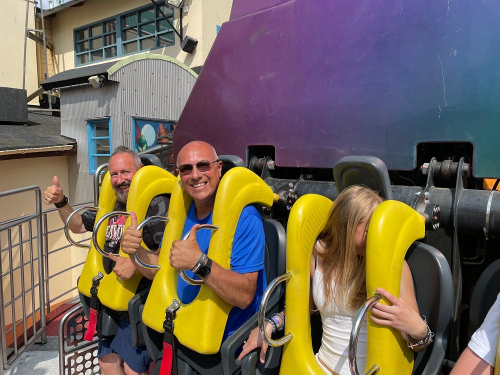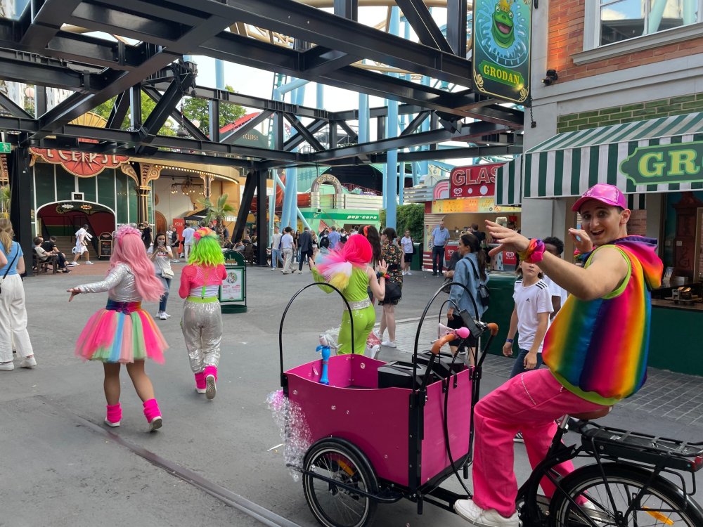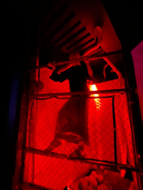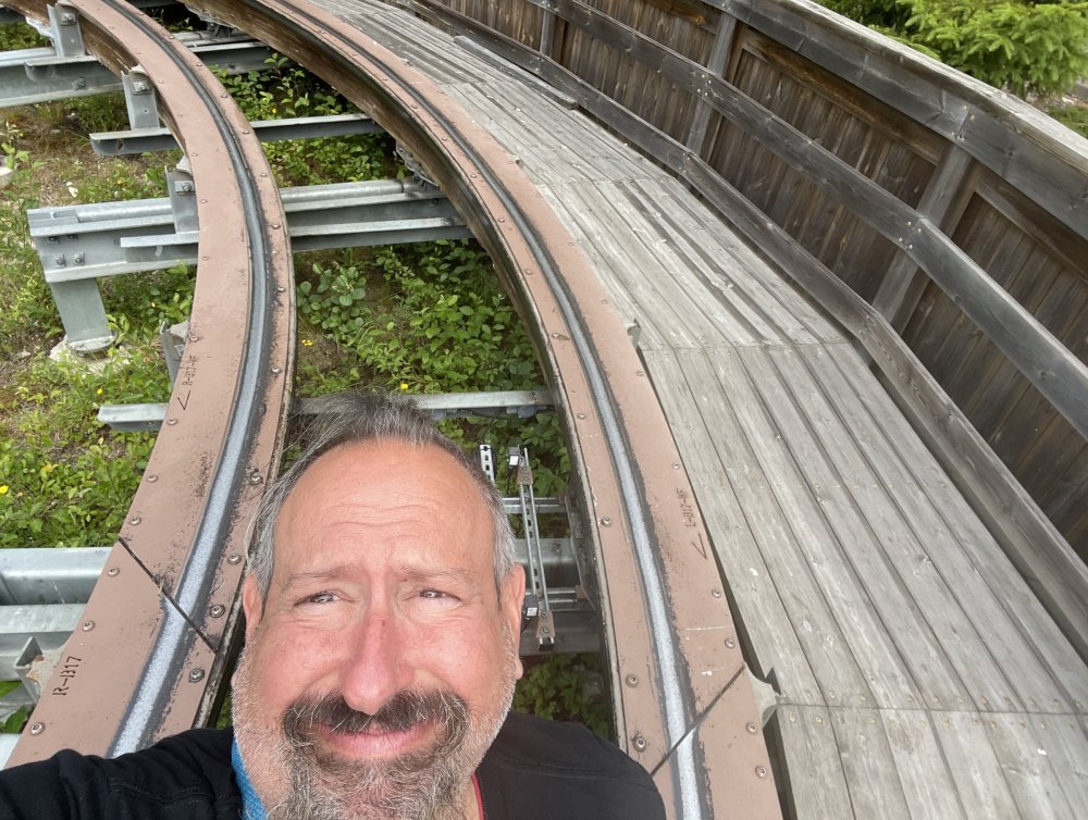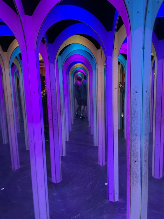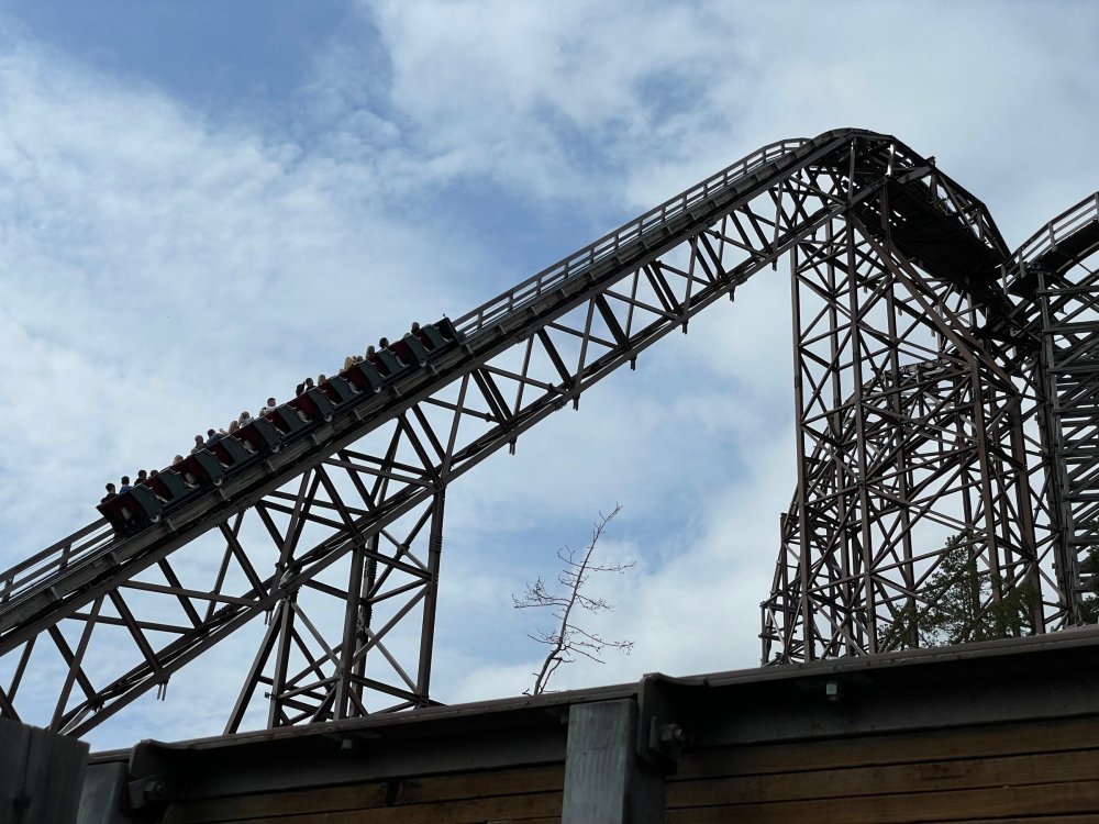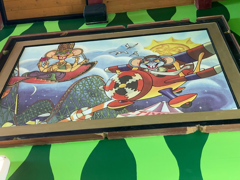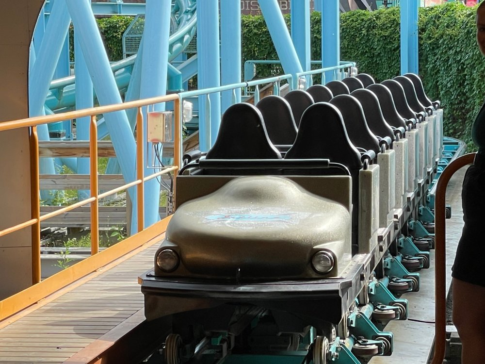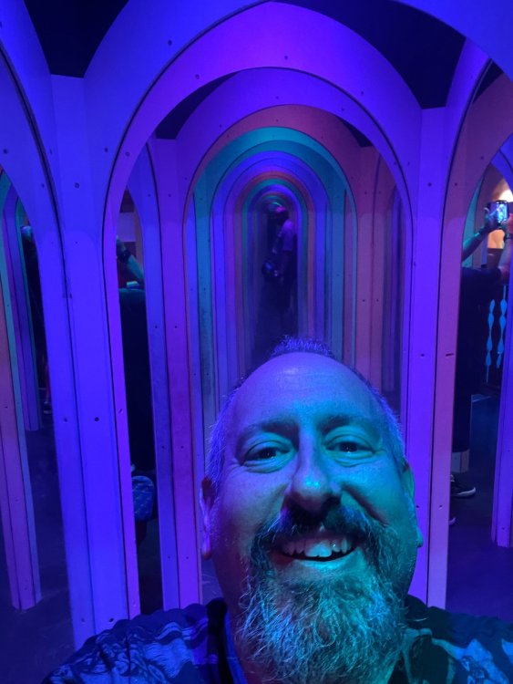 11. Day 18: Tuesday, June 20th part 3 (of 3) - back to finish off the night at the fantastic Grona Lund On the way back in, stopping to snap a pic of the park map. it LOOKS way smaller than it is, because things are just piled up on top of each other. the big green area in the bottom right, is the parking lot the park announced plans in 2023 to expand into. of course, my first stop on the way in was the Carousel. . . Big Mike had other plans tho, he was missing the kiddie credit, "Tuff-Tuff TÃ¥get" (Choo-Choo Train). So while he went to do that. . . Didier and I rode the Carousel. my happy place. his too, apparently for such a small carousel, it's just lovely, and appears hand painted. after my Carousel ride, I went over to the coaster to get proof of Big Mike riding it, in talking to the ride op - who was a total hoot! - she said it's a ride that's way more fun than it looks, as the sharp turns give a "whip" effect. She encouraged us all to ride it. sooooooo. . . (and she was right, it was way more fun that I had looked. and she let us ring the bell as we exited the station). back over to Vilda Musen for a "water free" ride, and we bumped into Hans and Matthew walking along the outside of the park, to get a different view of Twister and a crane across the lake, painted like a Giraffe. for some reason. Sweden! by going around the outside, we were gonna end up in the "haunted" section. . . and had also bumped into Andrew, sMisty, and Erik. . so we all headed that way together. that's Kvasten ahead of us, the Vekoma suspended coaster. whee. . . in the SPOOKY section now.. had to stop for a photo op, tho apparently we were boiling nothing for dinner. the flying carpet ride (not operating today) is over here for some reason. . . maybe they are tying in the Genie in the center of it with the spook/magic vibe of the area? Gotta ride Blue Train. . this thing is SO messed up. insanely silly, and with some needless nudity, and scary pop ups. . I adored it. rode this sucker at least 4 times on our trip. the name is brilliant. it's BLUE. . and it's a Train. see???? ooo. .scary! that creature has got "lady parts" !!! Scary!!!! so silly, and so much fun. every park should have a ride like this. and Grona Lund has several! the Starflyer doing it's thing from underneath Kvasten. we were in line for the very well done walk thru Haunt. I do believe that this is an upcharge attraction, but Elissa had arranged for us to all get admission (hence most of the group showing up here at a certain time). they send you thru in groups of 6-8, and said pictures were ok, as long as it didn't hold up the flow. it's got an outdoor section. . that's a group going thru the house up there on the balcony. fly, bird, fly !!!! now that bird knows what Fabio felt like, I suppose. my group's turn. . . howdy! ready to be a scared. . . nice mix of props, and live actors in here. great effect. . . choose your door carefully! he's coming to get you, Barbara. . . time for a birds eye view of the park on the starflyer. they are VERY serious about no loose objects on this ride. so only got pics from the queue, and before the ride started (with permission) it really is in the middle of everything. . surrounded by Coaster track on all sides that's Icarus doing it's thing back there. . Jetstream ,the Bobsled, AND Insane, all with cars on the tracks in one pic. that's a huge win for me, as I usually end up with no trains on the tracks hard to see in this pic, but Icarus has now tilted at the top, and the riders are hanging face down. a stage for musical performances. . . but we next headed over to the dual drop tower: Frit Fall & Tilt Hans & Matthew (and a very intense man who was wondering why I was taking his picture) chose to ride the "tilt" seated sides. while Big Mike and I (and a terrified girl), chose the stand up "Fritt Fall" side. it truly IS rather terrifying. and of course they have a camera on this side to capture it. I bought a magnet version, that came with a digital copy. glad I did it, but never again. walk around entertainment as well in this park. Not a LOT of it, but we were there on a weekday. in addition to lunch, snack, and dinner coupons, the park had gone all out and also gave us booklets of game coupons. the games were mostly hard, but there were some easier ones, and I think most everyone won some sort of prize. while they played that ping-pong game, I went into the bathroom next to it. . .and made a discovery. down a dark, bricked pathway/tunnel. . . there's this. just lovely. and when you go to wash your hands? yup. . a haunted toidy! gah! different mirrors have different creatures. . . LOL I had waited long enough, I was ready for Ikaros - the face first drop tower. again, some lovely art deco designs all around it. all the way up to the top. . . then, tilt forward. . so you will be hurtling face first towards the ground! gahhhhhhhh. . . . .it truly is a terrifying experience. and I absolutely LOVED it. we got some ERT on it at the end of the night - along with the operator making us sing ABBA and other disco songs as we ascended - and I think I rode every cycle I was able to get in on. scary, but THAT good. and you get pretty close to the ground before the seats swing back out to "normal" position even tho I know I'm a klutz, and the funhouse is a disaster waiting to happen for klutz'. . .I went ahead and did it. it's a really good funhouse. .and really ways to hurt oneself. I didn't get a pic of the entrance, but it's a "moving" ladder, that you have to climb up. . potential for injury right from the start! but it's full of whimsical, and fun obstacles. . that one really can't go around. you MUST go thru. bouncing walkways. . pitch black infinity rooms. . . truly confusing mirror mazes. . . yeah, all in one funhouse! and this is how you exit (the only option). . . you get a mat. sit on the mat, on the platform. . and the platform tilts, and shoots your ass down the slide! um.. . . . whee ? the view from t