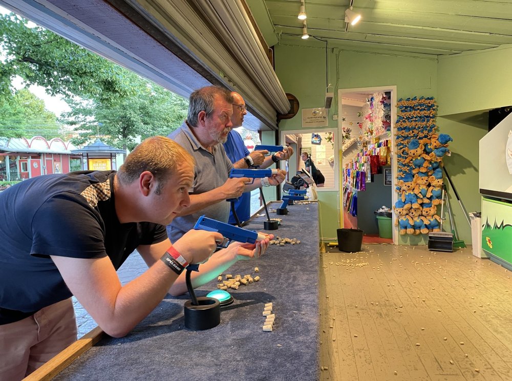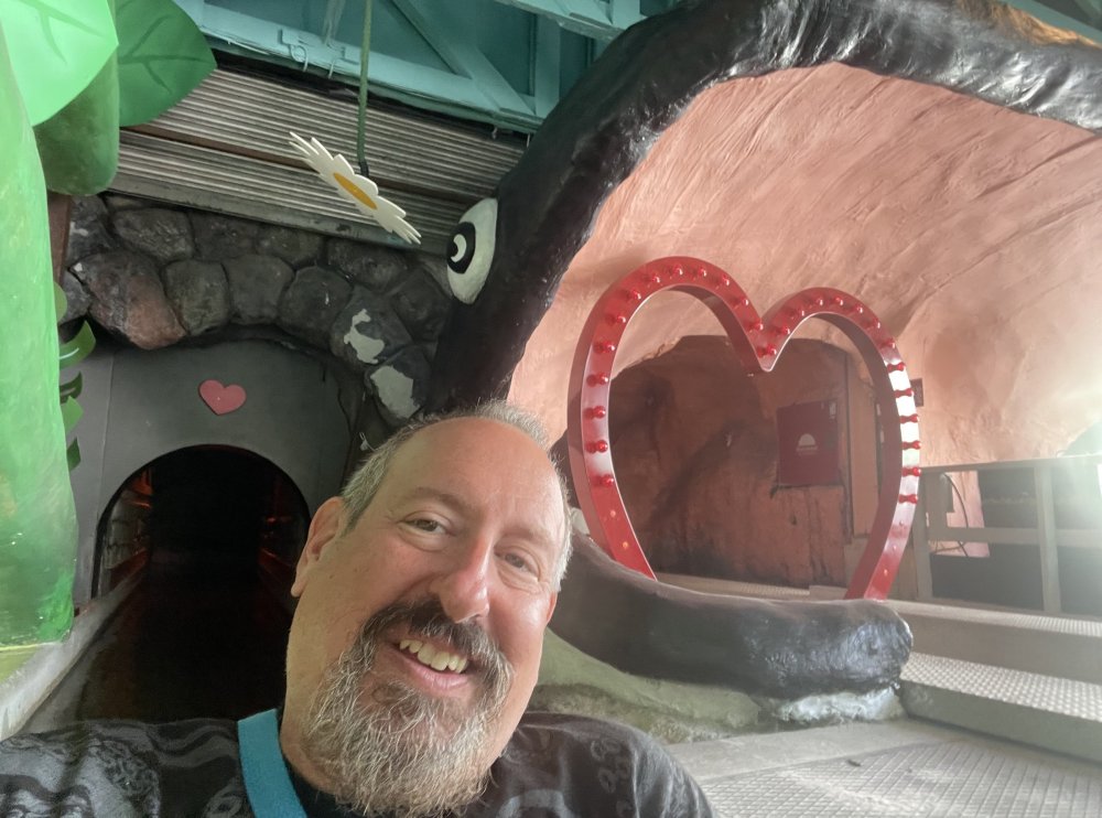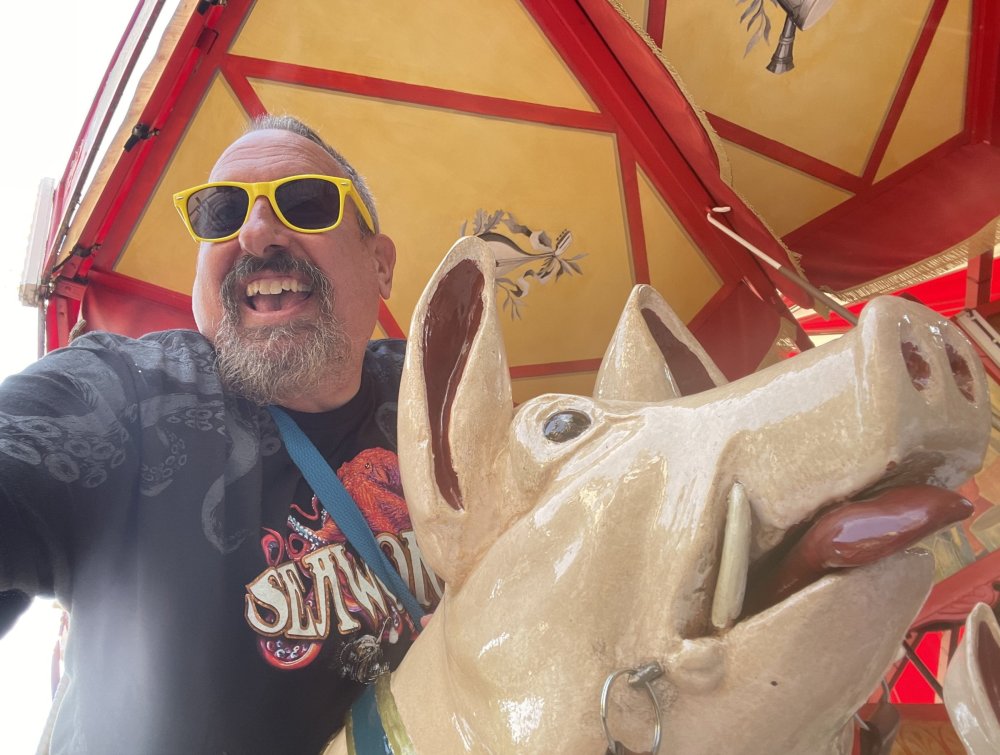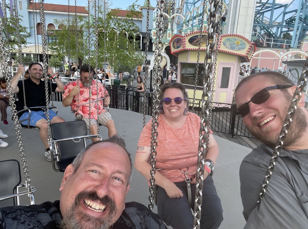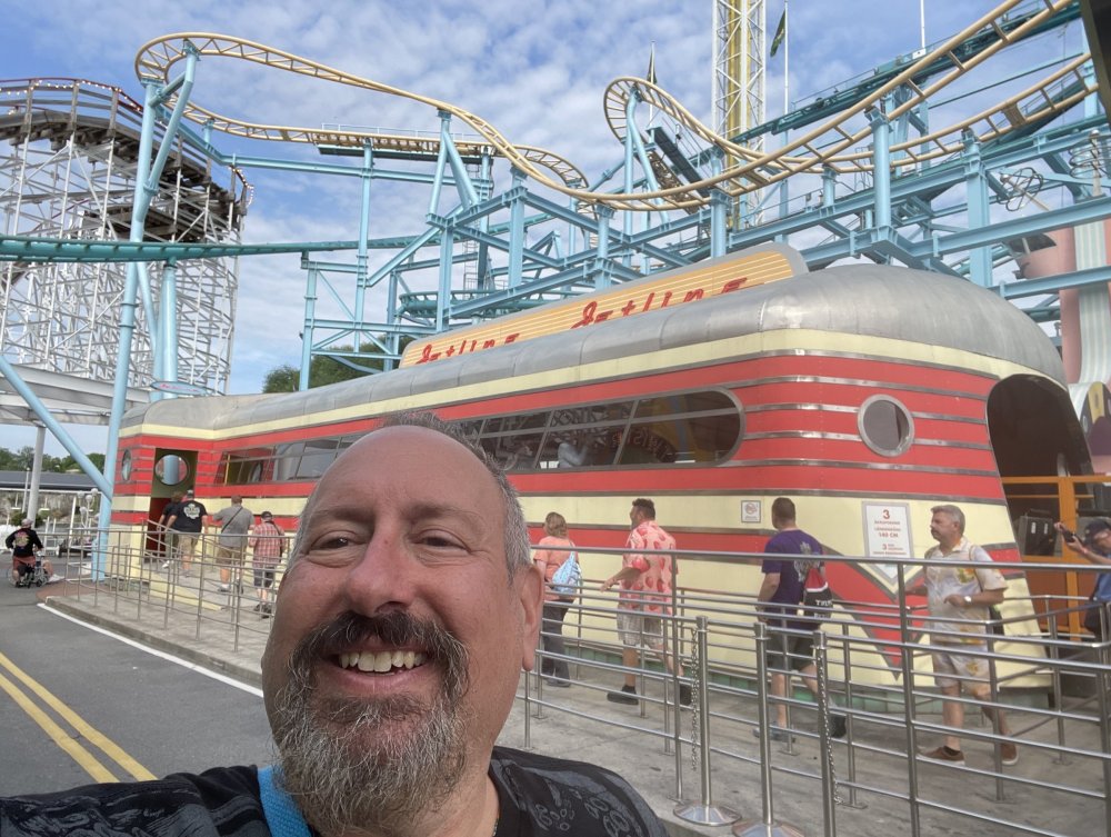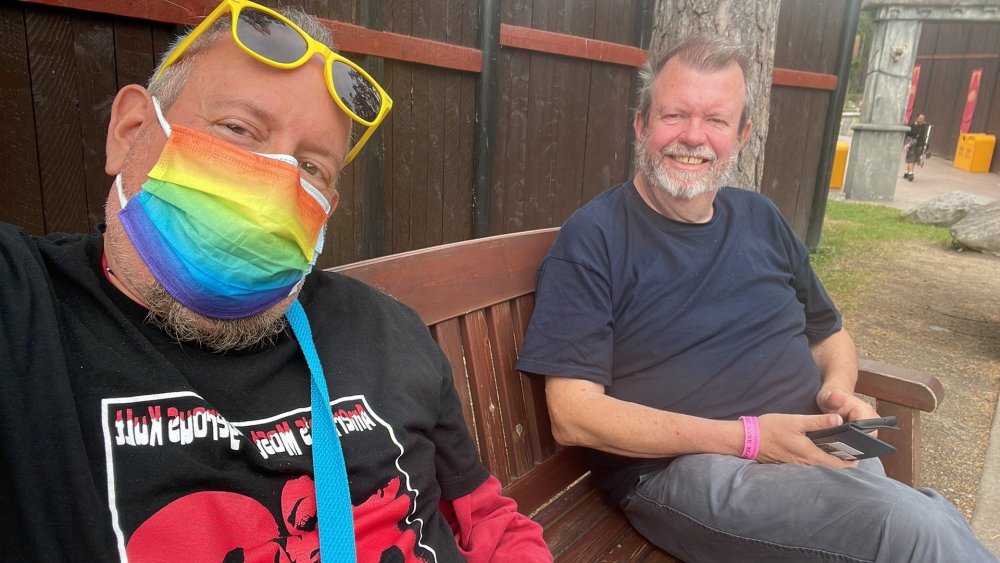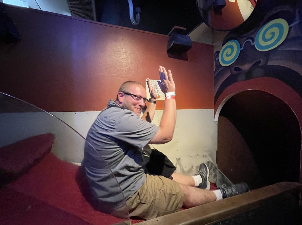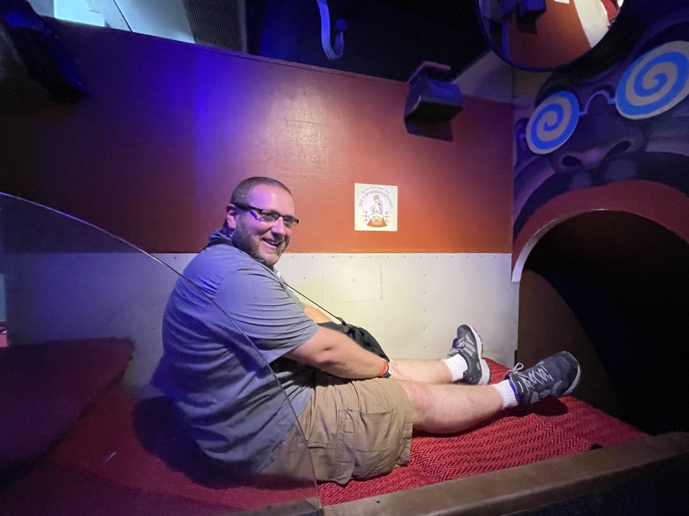 11. Day 18: Tuesday, June 20th part 3 (of 3) - back to finish off the night at the fantastic Grona Lund On the way back in, stopping to snap a pic of the park map. it LOOKS way smaller than it is, because things are just piled up on top of each other. the big green area in the bottom right, is the parking lot the park announced plans in 2023 to expand into. of course, my first stop on the way in was the Carousel. . . Big Mike had other plans tho, he was missing the kiddie credit, "Tuff-Tuff TÃ¥get" (Choo-Choo Train). So while he went to do that. . . Didier and I rode the Carousel. my happy place. his too, apparently for such a small carousel, it's just lovely, and appears hand painted. after my Carousel ride, I went over to the coaster to get proof of Big Mike riding it, in talking to the ride op - who was a total hoot! - she said it's a ride that's way more fun than it looks, as the sharp turns give a "whip" effect. She encouraged us all to ride it. sooooooo. . . (and she was right, it was way more fun that I had looked. and she let us ring the bell as we exited the station). back over to Vilda Musen for a "water free" ride, and we bumped into Hans and Matthew walking along the outside of the park, to get a different view of Twister and a crane across the lake, painted like a Giraffe. for some reason. Sweden! by going around the outside, we were gonna end up in the "haunted" section. . . and had also bumped into Andrew, sMisty, and Erik. . so we all headed that way together. that's Kvasten ahead of us, the Vekoma suspended coaster. whee. . . in the SPOOKY section now.. had to stop for a photo op, tho apparently we were boiling nothing for dinner. the flying carpet ride (not operating today) is over here for some reason. . . maybe they are tying in the Genie in the center of it with the spook/magic vibe of the area? Gotta ride Blue Train. . this thing is SO messed up. insanely silly, and with some needless nudity, and scary pop ups. . I adored it. rode this sucker at least 4 times on our trip. the name is brilliant. it's BLUE. . and it's a Train. see???? ooo. .scary! that creature has got "lady parts" !!! Scary!!!! so silly, and so much fun. every park should have a ride like this. and Grona Lund has several! the Starflyer doing it's thing from underneath Kvasten. we were in line for the very well done walk thru Haunt. I do believe that this is an upcharge attraction, but Elissa had arranged for us to all get admission (hence most of the group showing up here at a certain time). they send you thru in groups of 6-8, and said pictures were ok, as long as it didn't hold up the flow. it's got an outdoor section. . that's a group going thru the house up there on the balcony. fly, bird, fly !!!! now that bird knows what Fabio felt like, I suppose. my group's turn. . . howdy! ready to be a scared. . . nice mix of props, and live actors in here. great effect. . . choose your door carefully! he's coming to get you, Barbara. . . time for a birds eye view of the park on the starflyer. they are VERY serious about no loose objects on this ride. so only got pics from the queue, and before the ride started (with permission) it really is in the middle of everything. . surrounded by Coaster track on all sides that's Icarus doing it's thing back there. . Jetstream ,the Bobsled, AND Insane, all with cars on the tracks in one pic. that's a huge win for me, as I usually end up with no trains on the tracks hard to see in this pic, but Icarus has now tilted at the top, and the riders are hanging face down. a stage for musical performances. . . but we next headed over to the dual drop tower: Frit Fall & Tilt Hans & Matthew (and a very intense man who was wondering why I was taking his picture) chose to ride the "tilt" seated sides. while Big Mike and I (and a terrified girl), chose the stand up "Fritt Fall" side. it truly IS rather terrifying. and of course they have a camera on this side to capture it. I bought a magnet version, that came with a digital copy. glad I did it, but never again. walk around entertainment as well in this park. Not a LOT of it, but we were there on a weekday. in addition to lunch, snack, and dinner coupons, the park had gone all out and also gave us booklets of game coupons. the games were mostly hard, but there were some easier ones, and I think most everyone won some sort of prize. while they played that ping-pong game, I went into the bathroom next to it. . .and made a discovery. down a dark, bricked pathway/tunnel. . . there's this. just lovely. and when you go to wash your hands? yup. . a haunted toidy! gah! different mirrors have different creatures. . . LOL I had waited long enough, I was ready for Ikaros - the face first drop tower. again, some lovely art deco designs all around it. all the way up to the top. . . then, tilt forward. . so you will be hurtling face first towards the ground! gahhhhhhhh. . . . .it truly is a terrifying experience. and I absolutely LOVED it. we got some ERT on it at the end of the night - along with the operator making us sing ABBA and other disco songs as we ascended - and I think I rode every cycle I was able to get in on. scary, but THAT good. and you get pretty close to the ground before the seats swing back out to "normal" position even tho I know I'm a klutz, and the funhouse is a disaster waiting to happen for klutz'. . .I went ahead and did it. it's a really good funhouse. .and really ways to hurt oneself. I didn't get a pic of the entrance, but it's a "moving" ladder, that you have to climb up. . potential for injury right from the start! but it's full of whimsical, and fun obstacles. . that one really can't go around. you MUST go thru. bouncing walkways. . pitch black infinity rooms. . . truly confusing mirror mazes. . . yeah, all in one funhouse! and this is how you exit (the only option). . . you get a mat. sit on the mat, on the platform. . and the platform tilts, and shoots your ass down the slide! um.. . . . whee ? the view from t