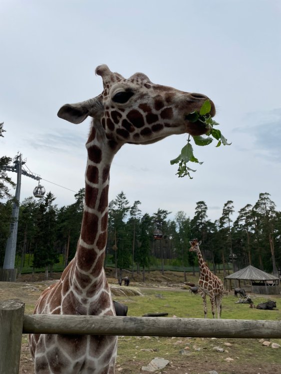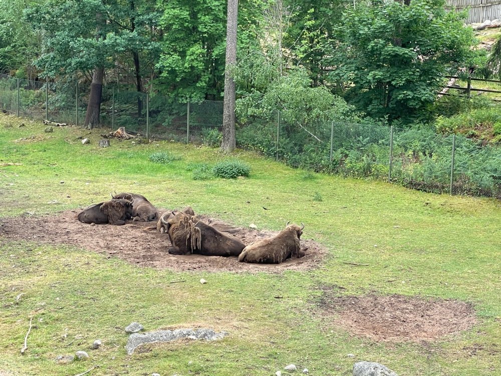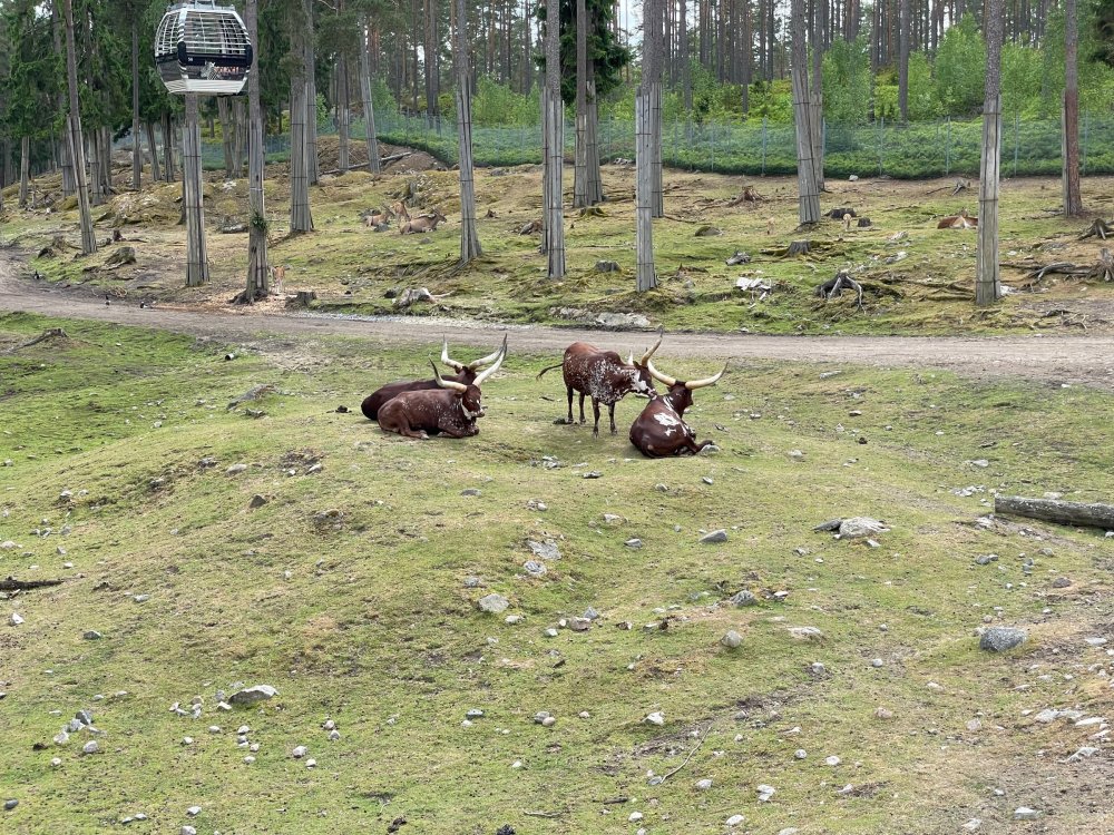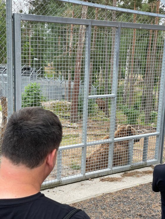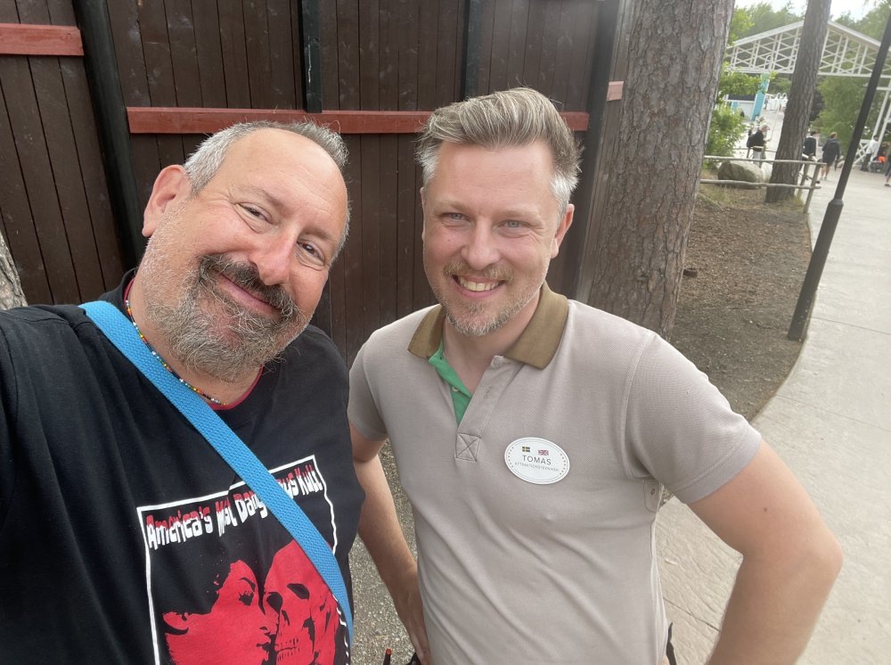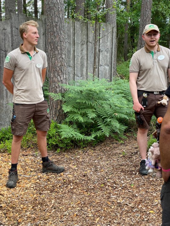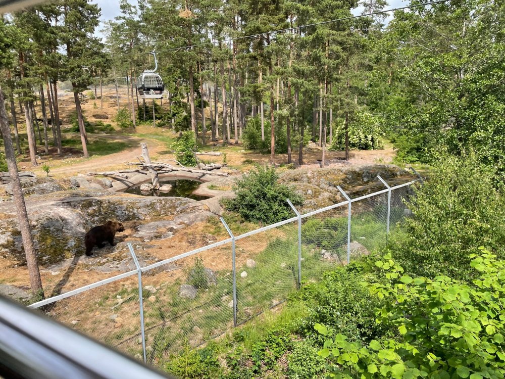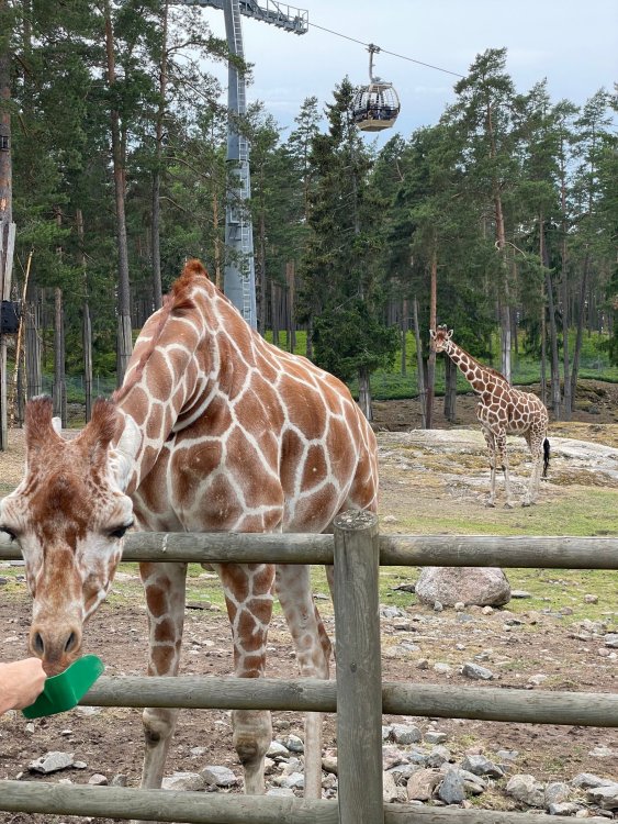 22. Day 17: Monday, June 19th part 2 (of 2) - Kolmården had to be careful, as the ride was in operation. . but we were guided between the moving Gondolas and to the transfer track area. . and it was explained that at the end of each day, this is where the Gondolas go to "sleep". .and they perform maintenance on any needing some TLC. it wasn't a big building, just a small shed. . so I was a little confused. . . until we rounded the corner and saw the massive staircase, that leads to the huge underground area empty, because all the Gondolas are currently on the ride Q&A session down in the underground area. . . they offered anyone who wanted to, could climb up on the walkway into the main control booth and take a look. .. but as I'm not a fan of tiny walkways high off the ground? I opted for another ride on the Safari while many in the group took turns going up to the control room. this time I got my own car, and so was able to move back and forth to get some good pics. my Gondola was Giraffe themed. . again, such a beautiful park/zoo I spy Erik taking a picture in the gondola before me wait. .are those people over there in the distance with the Giraffes? (answer. . yes, those are. . as we were to find out shortly) the Bears were up and about this time. . and using tree as a scratching post. the Lions were also mostly up and prowling around their enclosure on this trip. safari over, we were sent off on our own to enjoy the zoo. . . but first, they wanted to offer us another unique opportunity, if we were interested. passing by the Chimps enclosure. . . where were we going? Safari Camp? yes, you can actually camp out here at the zoo (on the grounds) as an option. well. . hello there! these were our guides at the Safari Camp area. . . where not only can you pay to camp out, in pretty nice tents / campground. . but you also get to get up close and personal with the animals we had seen from the Gondolas. including feeding them. i have an inkling, these Giraffes know that if there are people here? they are gonna get food, as they all came up to the fence right away. Ryan feeding a Giraffe! a baby!!! I fed the baby looking back at the campground (the Giraffes are behind me). . it's a nice set up, and would be fun to spend a night here for nature lovers. our group that fed the Giraffes. seems there's not all of us tho. . . what happened? oh.. we split the group because half went to go see the Bears up close, while we did Giraffes, and then we swapped. dawwwwwww !!!!! yeah. . we didn't go feed this lady. . .LOL. . but we saw her thru the fence watching us. then we headed over to the Bears. . . Kristen told us all kinds of neat facts about Bears, while this guy sat there and ate non stop. (I can relate). hug a tree, save a cowboy.. . or something like that? then we were cut loose to enjoy the rest of the day at the zoo, until it was time to meet up for ERT later on Wildfire. it's a large zoo, with lots of animals, and some really nice enclosures. in particular? the Tiger enclosure really impressed me. perhaps my favorite "warning" sign at Kolmården - as you head down to the "sunken bus" one would think they didn't NEED this sign. . but since they have it? some fool clearly got too close to the bars the tigers are everywhere! every time I thought I had seen them all? I spotted another one. towards the end of the afternoon, it was time to meet back up at Wildfire. Didier and myself enjoying "Bench: the ride" - it's a very large park, with lots of hills. it was a LOT of walking today remaining general public thru the line, and time for ERT for TPR! I really liked this ride, but could only ride it so many times. The forces on this, combined with the restraints? hit me just perfect on my bladder. and literally every time I rode, I had to get off, and run to the toilet to pee. LOL after the 4th time in a row it happened, I started taking breaks between laps but I did ride it, and I loved it, as prooved by Robb's rider cam! all in all, a fantastic day, and the mask I wore most of the day really did seem to help the allergic reaction I was having to whatever is in the air in Sweden's wilderness. after a great and exhausting day, we headed back to the bus for the drive back to Stockholm.