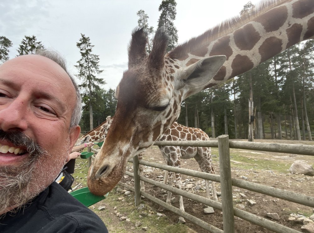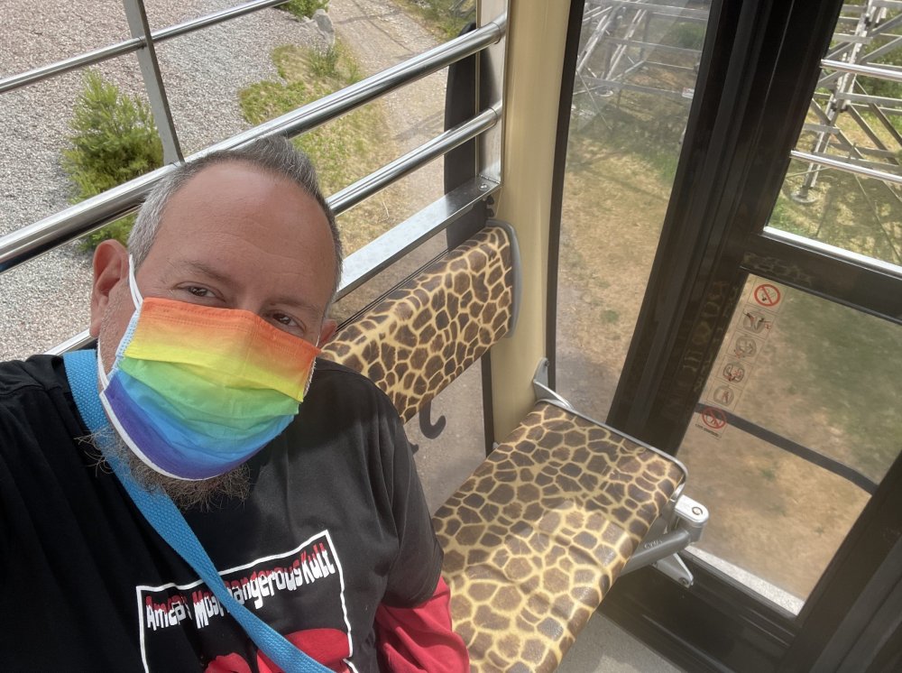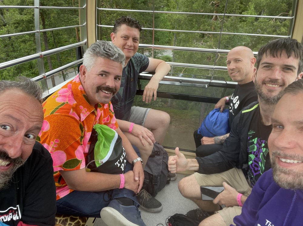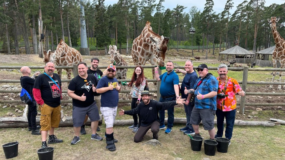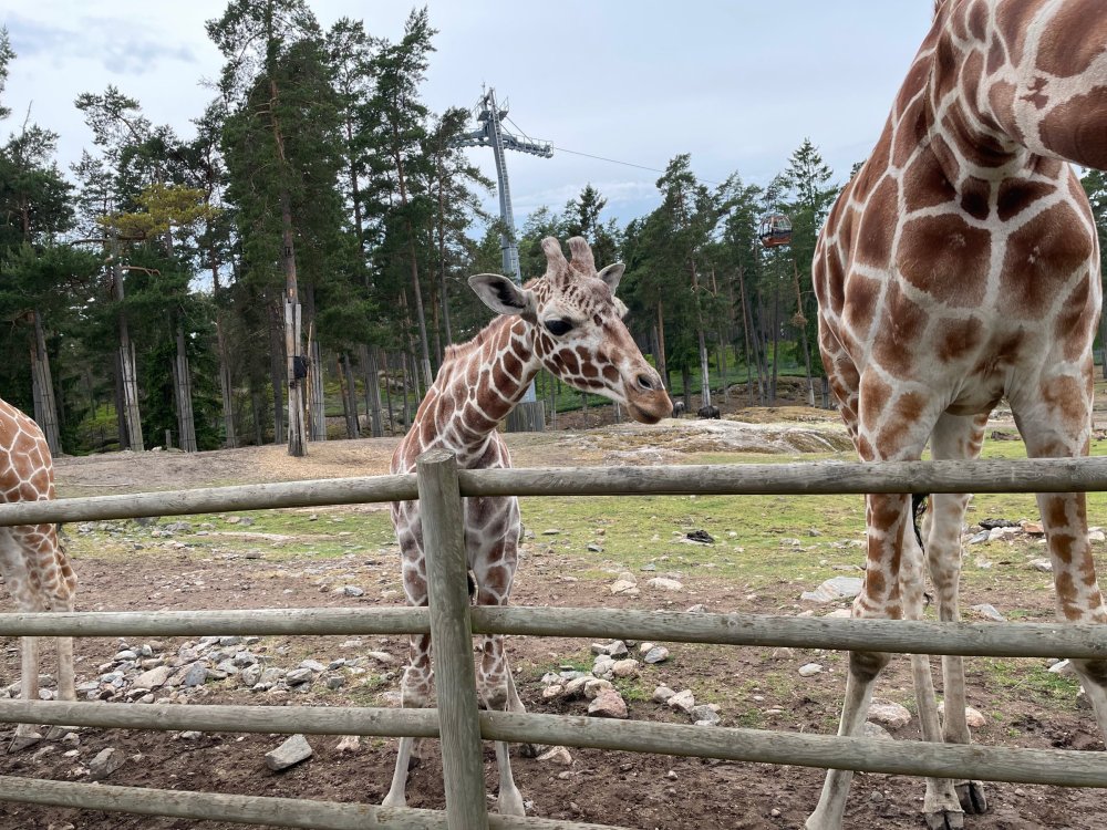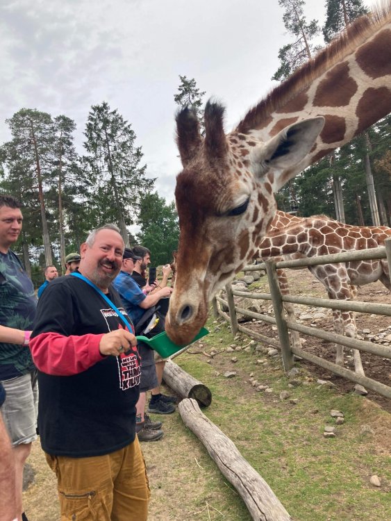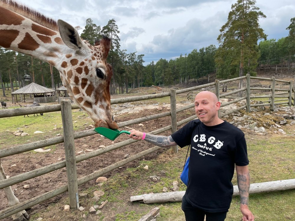 22. Day 17: Monday, June 19th part 2 (of 2) - Kolmården had to be careful, as the ride was in operation. . but we were guided between the moving Gondolas and to the transfer track area. . and it was explained that at the end of each day, this is where the Gondolas go to "sleep". .and they perform maintenance on any needing some TLC. it wasn't a big building, just a small shed. . so I was a little confused. . . until we rounded the corner and saw the massive staircase, that leads to the huge underground area empty, because all the Gondolas are currently on the ride Q&A session down in the underground area. . . they offered anyone who wanted to, could climb up on the walkway into the main control booth and take a look. .. but as I'm not a fan of tiny walkways high off the ground? I opted for another ride on the Safari while many in the group took turns going up to the control room. this time I got my own car, and so was able to move back and forth to get some good pics. my Gondola was Giraffe themed. . again, such a beautiful park/zoo I spy Erik taking a picture in the gondola before me wait. .are those people over there in the distance with the Giraffes? (answer. . yes, those are. . as we were to find out shortly) the Bears were up and about this time. . and using tree as a scratching post. the Lions were also mostly up and prowling around their enclosure on this trip. safari over, we were sent off on our own to enjoy the zoo. . . but first, they wanted to offer us another unique opportunity, if we were interested. passing by the Chimps enclosure. . . where were we going? Safari Camp? yes, you can actually camp out here at the zoo (on the grounds) as an option. well. . hello there! these were our guides at the Safari Camp area. . . where not only can you pay to camp out, in pretty nice tents / campground. . but you also get to get up close and personal with the animals we had seen from the Gondolas. including feeding them. i have an inkling, these Giraffes know that if there are people here? they are gonna get food, as they all came up to the fence right away. Ryan feeding a Giraffe! a baby!!! I fed the baby looking back at the campground (the Giraffes are behind me). . it's a nice set up, and would be fun to spend a night here for nature lovers. our group that fed the Giraffes. seems there's not all of us tho. . . what happened? oh.. we split the group because half went to go see the Bears up close, while we did Giraffes, and then we swapped. dawwwwwww !!!!! yeah. . we didn't go feed this lady. . .LOL. . but we saw her thru the fence watching us. then we headed over to the Bears. . . Kristen told us all kinds of neat facts about Bears, while this guy sat there and ate non stop. (I can relate). hug a tree, save a cowboy.. . or something like that? then we were cut loose to enjoy the rest of the day at the zoo, until it was time to meet up for ERT later on Wildfire. it's a large zoo, with lots of animals, and some really nice enclosures. in particular? the Tiger enclosure really impressed me. perhaps my favorite "warning" sign at Kolmården - as you head down to the "sunken bus" one would think they didn't NEED this sign. . but since they have it? some fool clearly got too close to the bars the tigers are everywhere! every time I thought I had seen them all? I spotted another one. towards the end of the afternoon, it was time to meet back up at Wildfire. Didier and myself enjoying "Bench: the ride" - it's a very large park, with lots of hills. it was a LOT of walking today remaining general public thru the line, and time for ERT for TPR! I really liked this ride, but could only ride it so many times. The forces on this, combined with the restraints? hit me just perfect on my bladder. and literally every time I rode, I had to get off, and run to the toilet to pee. LOL after the 4th time in a row it happened, I started taking breaks between laps but I did ride it, and I loved it, as prooved by Robb's rider cam! all in all, a fantastic day, and the mask I wore most of the day really did seem to help the allergic reaction I was having to whatever is in the air in Sweden's wilderness. after a great and exhausting day, we headed back to the bus for the drive back to Stockholm.