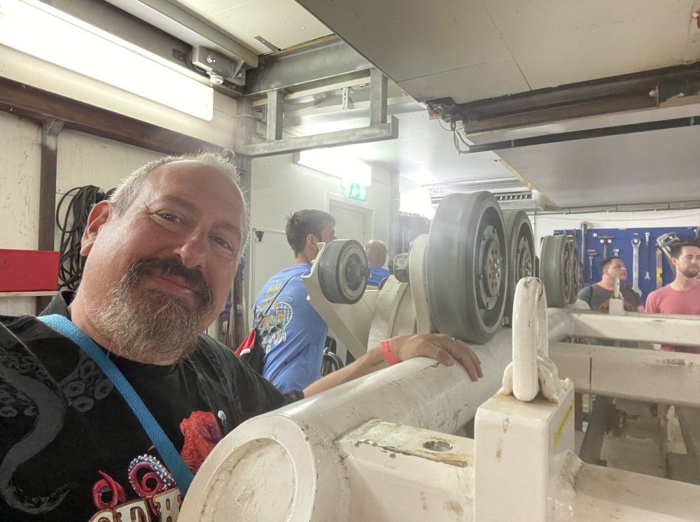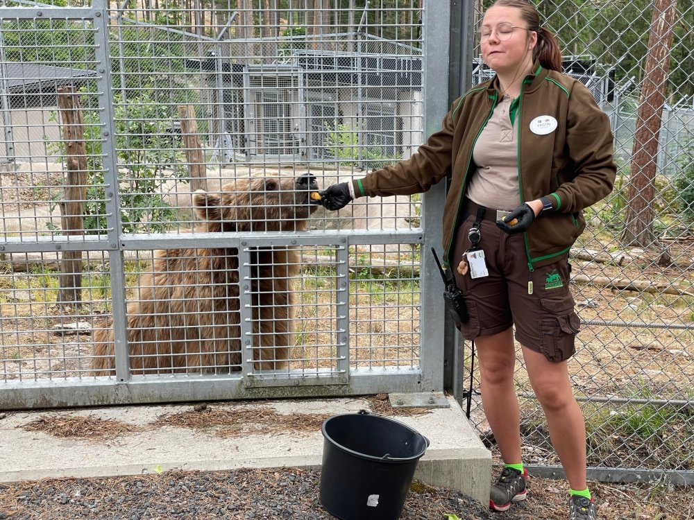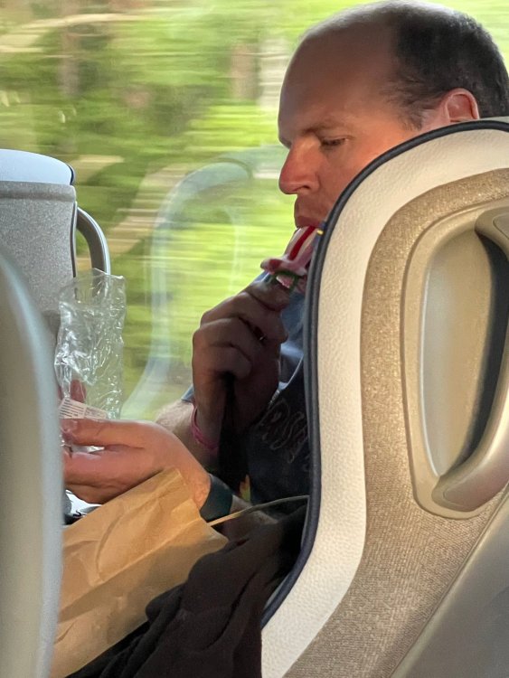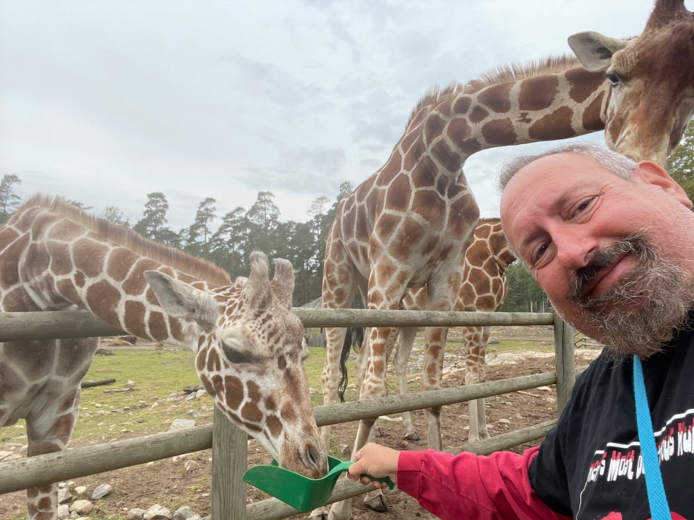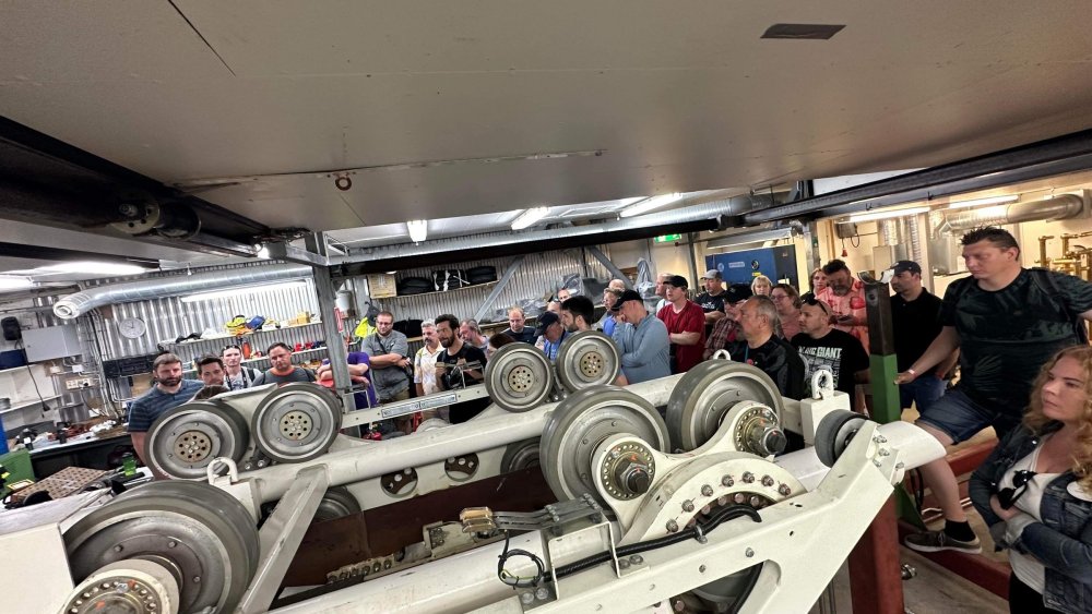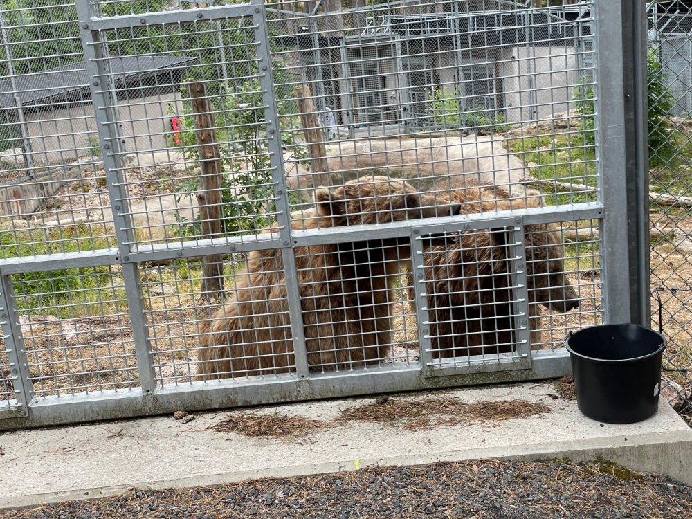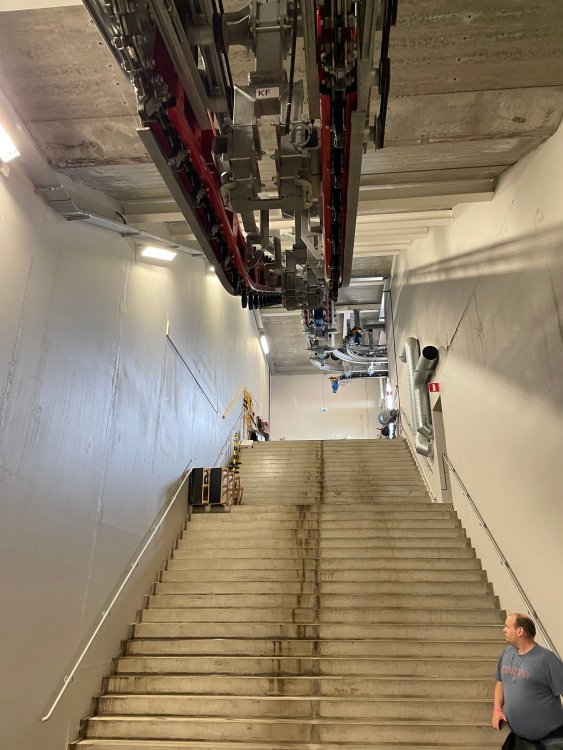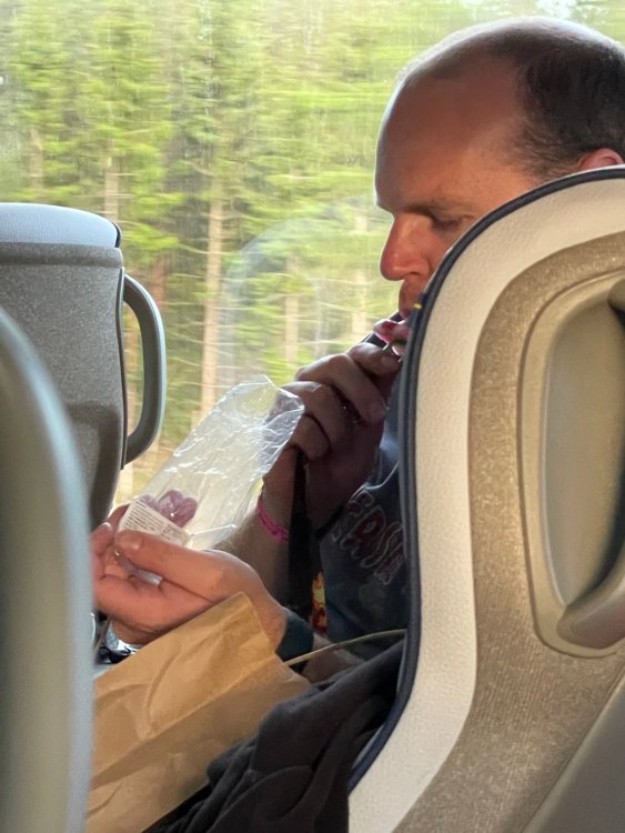 22. Day 17: Monday, June 19th part 2 (of 2) - Kolmården had to be careful, as the ride was in operation. . but we were guided between the moving Gondolas and to the transfer track area. . and it was explained that at the end of each day, this is where the Gondolas go to "sleep". .and they perform maintenance on any needing some TLC. it wasn't a big building, just a small shed. . so I was a little confused. . . until we rounded the corner and saw the massive staircase, that leads to the huge underground area empty, because all the Gondolas are currently on the ride Q&A session down in the underground area. . . they offered anyone who wanted to, could climb up on the walkway into the main control booth and take a look. .. but as I'm not a fan of tiny walkways high off the ground? I opted for another ride on the Safari while many in the group took turns going up to the control room. this time I got my own car, and so was able to move back and forth to get some good pics. my Gondola was Giraffe themed. . again, such a beautiful park/zoo I spy Erik taking a picture in the gondola before me wait. .are those people over there in the distance with the Giraffes? (answer. . yes, those are. . as we were to find out shortly) the Bears were up and about this time. . and using tree as a scratching post. the Lions were also mostly up and prowling around their enclosure on this trip. safari over, we were sent off on our own to enjoy the zoo. . . but first, they wanted to offer us another unique opportunity, if we were interested. passing by the Chimps enclosure. . . where were we going? Safari Camp? yes, you can actually camp out here at the zoo (on the grounds) as an option. well. . hello there! these were our guides at the Safari Camp area. . . where not only can you pay to camp out, in pretty nice tents / campground. . but you also get to get up close and personal with the animals we had seen from the Gondolas. including feeding them. i have an inkling, these Giraffes know that if there are people here? they are gonna get food, as they all came up to the fence right away. Ryan feeding a Giraffe! a baby!!! I fed the baby looking back at the campground (the Giraffes are behind me). . it's a nice set up, and would be fun to spend a night here for nature lovers. our group that fed the Giraffes. seems there's not all of us tho. . . what happened? oh.. we split the group because half went to go see the Bears up close, while we did Giraffes, and then we swapped. dawwwwwww !!!!! yeah. . we didn't go feed this lady. . .LOL. . but we saw her thru the fence watching us. then we headed over to the Bears. . . Kristen told us all kinds of neat facts about Bears, while this guy sat there and ate non stop. (I can relate). hug a tree, save a cowboy.. . or something like that? then we were cut loose to enjoy the rest of the day at the zoo, until it was time to meet up for ERT later on Wildfire. it's a large zoo, with lots of animals, and some really nice enclosures. in particular? the Tiger enclosure really impressed me. perhaps my favorite "warning" sign at Kolmården - as you head down to the "sunken bus" one would think they didn't NEED this sign. . but since they have it? some fool clearly got too close to the bars the tigers are everywhere! every time I thought I had seen them all? I spotted another one. towards the end of the afternoon, it was time to meet back up at Wildfire. Didier and myself enjoying "Bench: the ride" - it's a very large park, with lots of hills. it was a LOT of walking today remaining general public thru the line, and time for ERT for TPR! I really liked this ride, but could only ride it so many times. The forces on this, combined with the restraints? hit me just perfect on my bladder. and literally every time I rode, I had to get off, and run to the toilet to pee. LOL after the 4th time in a row it happened, I started taking breaks between laps but I did ride it, and I loved it, as prooved by Robb's rider cam! all in all, a fantastic day, and the mask I wore most of the day really did seem to help the allergic reaction I was having to whatever is in the air in Sweden's wilderness. after a great and exhausting day, we headed back to the bus for the drive back to Stockholm.