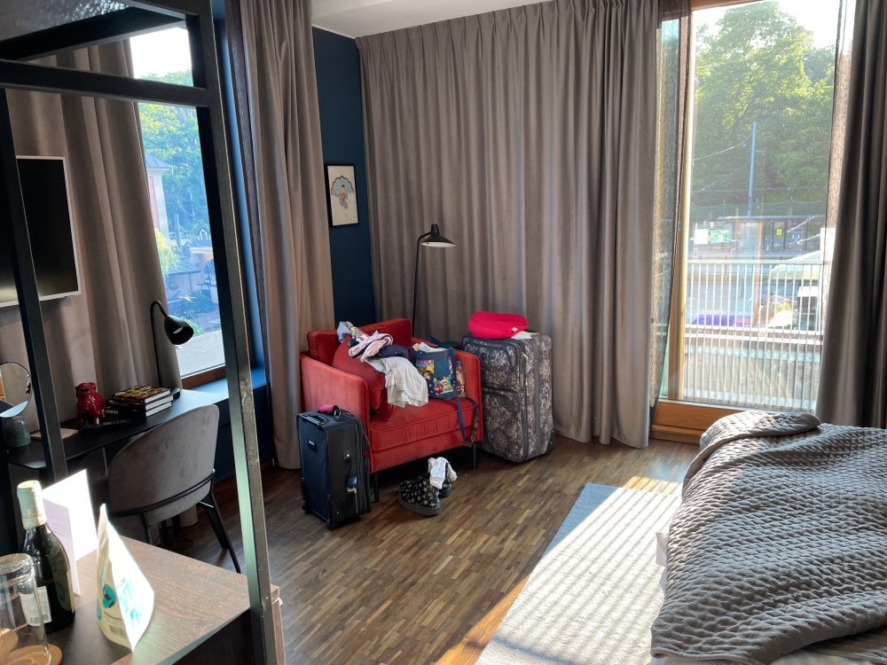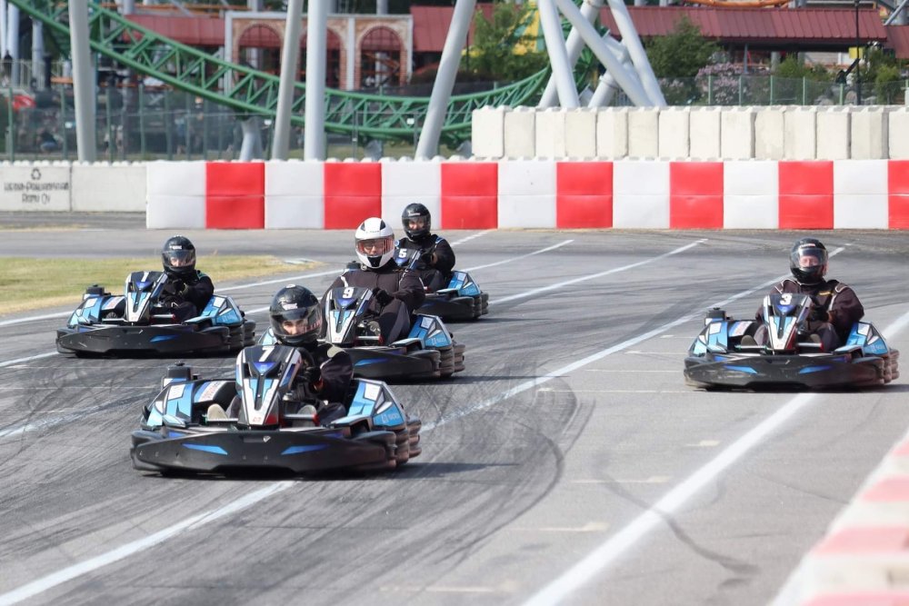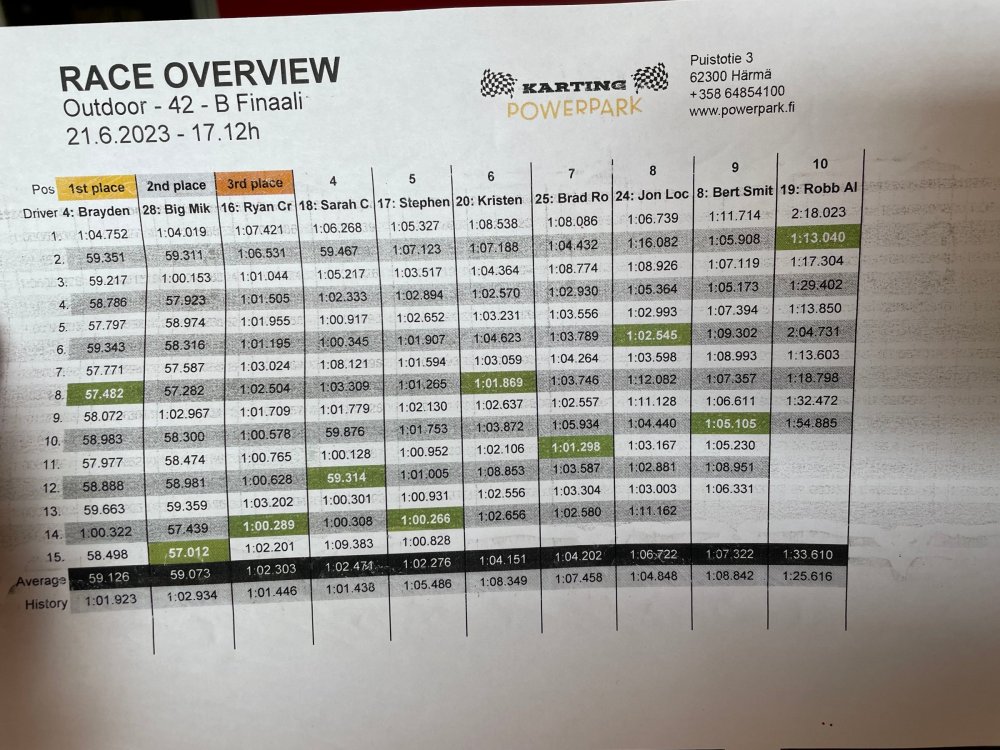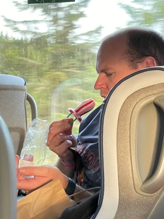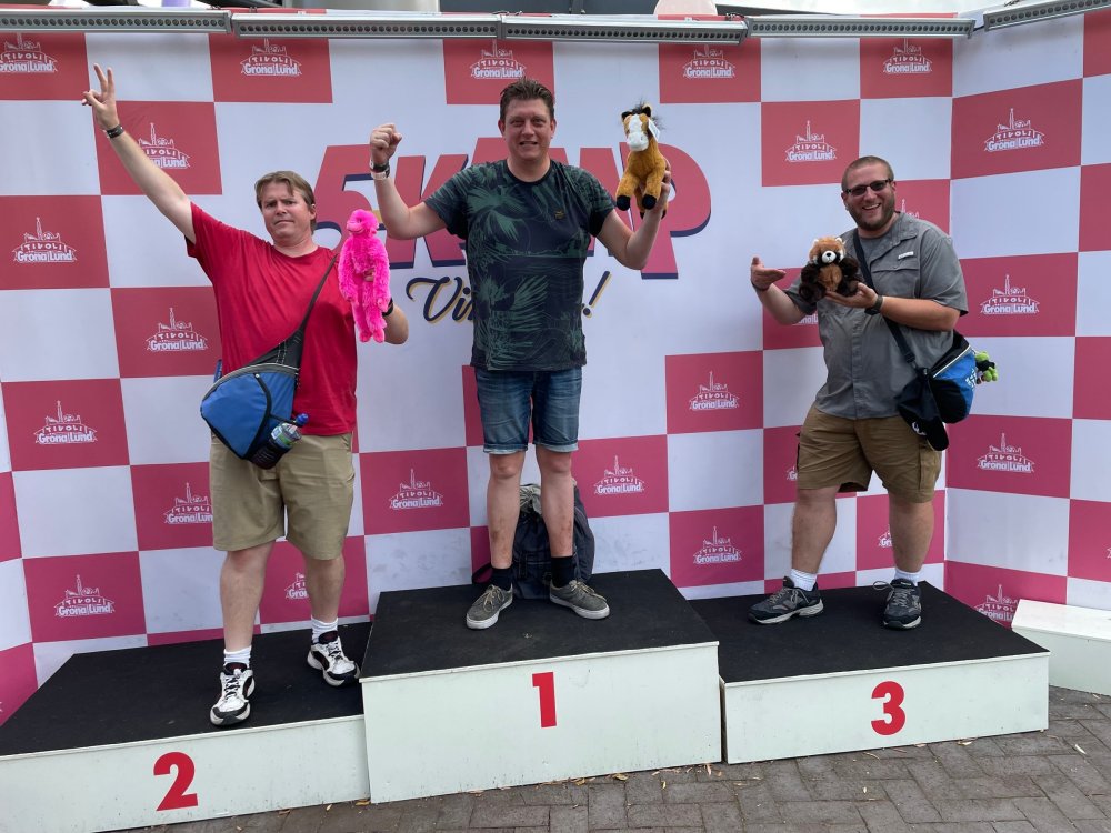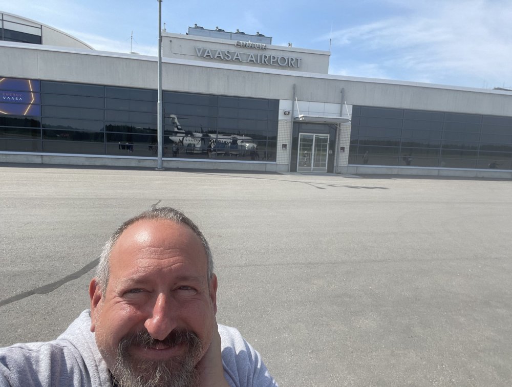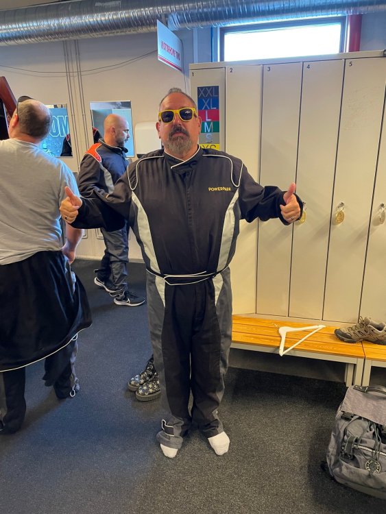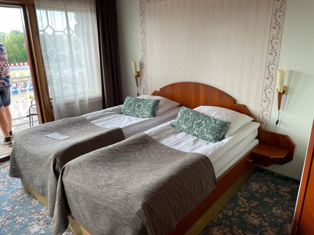 3. Day 19: Wednesday, June 21st - Travel day! From Sweden to Finland, were we were gonna spend a couple of days at the Northernmost Theme Park in the world. And have the TPR Grand Prix! it was sad saying goodbye to Stockholm, as I'd really enjoyed our time here, and what I'd seen of the City. (and I LOVED Grona Lund). but it was time to move on. before heading down to the lobby to meet everyone and head to the airport - we were flying today from Sweden to Finland - I finally DID remember to get a pic of the room at the hotel we stayed at. (this is after Hans and I pushed the beds together. .for our stay we had separated them with the little tables in between). not neat, but at least can see the room pretty good size. but with one of those annoying 1/2 showers, that this American always has trouble figuring out, and get a flood in the bathroom. eventually I'll figure out how to use the hand shower without spraying all over everything. waiting for our bus - we were saying goodbye to Didier today too, as he was leaving us at the airport - one final peek into the coffeshop/cafe connected to the hotel & ABBA museum. I recall this being a good size airport (pretty crowded too) with plenty of shops to explore while waiting for our flight to be called. I knew it was gonna be a small plane, as luggage for carry-on was really restricted. but I was surprised. I think this is the first plane I've ever been in with Propellers. Snug fit. . but we all were on the flight - spaced out here and there in seats thruout the plane. I ended up with a window seat, not my usual choice, but I didn't mind as was interested in looking out the window. ok. .that's gonna freak me out a little. not sure if this is leaving Sweden, or going into Finland. . . .but it sure is pretty. landing in Finland. Can you tell??? this was hysterically a big, one room Airport. with the bag claim and arrival on one side, and the "lobby" for departures on the other. I'm in Finland. yay! no worries about which luggage carousel our bags would be on. . .there was only one. and I think we were the only arriving flight anyways. Our new bus driver was waiting for us, and very quickly we were on our way. the country side in Finland looks a lot like many of the other Scandi Countrysides I'd seen. . and very much like mid America as well. for the most part. some houses stood out. many of them were painted Red with Yellow Door. (I did ask about that, and was told that painting your home Red was a sign of Finnish Pride, as it was reflective of the Copper Mining the area was first known for). the many fields of Finland but then, seemingly in the middle of no where, this appeared on the horizon. The Power Park complex (depending which sign you looked at in the park) all owned by the same folks - including that Road House, the complex contains a theme park, a big event center, a big 5D Cinema, a big Race Track - that can be configured for professional racing, as well as for full size go karts, mini-Golf course, and probably more! the owner collects all kinds of stuff (I didn't go into the Road House during our visit, but those that did have pics of some of the James Bond Movie vehicles from in there). like this plane. just displayed there, for some reason. not sure if it's from a film? but I'd assume it IS, and I should know that? yes, one of the configurations of the Track DOES go around one of the coasters. NEVER in America. and look at the size of those grandstands. . they must draw quite the crowd for some races. on the far right in the back, is our hotel (my room would end up at the farthest right, upper corner - overlooking the turns of the track, and what looked like no-longer-used grandstands). Kinda spooky, but all kinds of weird too. the front of the onsite Hotel. There were other guests here, but mostly it was the TPR group. kinda funky design, and the truck in front says "Power Park" so we're in the right spot. one side of the hotel - there are apparently more buldings around the corner too (near the abandoned grandstands), but they weren't in use, I was told. this hotel (called "Park Hotel" based on the name over the door on this side, has two entrances. . but the lobby is only on the other side, and the two sides connect via the Dining Room - which is only open for Breakfast and Dinner. funky, and I liked that it looked like we were gonna be staying inside a Koo Koo Clock. large Pool (but not for swimming.. tho we did see a drunk guy get naked and jump in on the 2nd night), with Stingray sculptures (for some reason), surrounded by that building that was a sauna/bar/ snacks area. it DID get rowdy at night, even with not many folks in the hotel. I remembered to take a pic of our room as soon as we got in it this time. the "info about the hotel" booklet. our room - with Hans enjoying the balcony the view down from said balcony. . . there were folks racing. we were planned to race tomorrow. the TPR Grand Prix. but the weather forecast wasn't looking great. I was looking forward to a nap before dinner, as it had been a really long day and I was exhausted. (I can't remember why I was so tired. .maybe it was an early morning check out after closing out Grona Lund with ERT and so my adrenaline made it hard to sleep? Or it could have just been the travel day - flights always stress me out a bit). . but when the park worked with Robb & Elissa to let us do our races this afternoon instead of possibly being rained out tomorrow? I got perky again and we all headed over to the Race Track area of Power Park. "Pit Lane Cafe" wasn't crowded at all. . .but the had some snacks to purchase if anyone was hungry, while we filled out all the forms and insurance things before we could race. this..did NOT make me want to eat one of the ice creams. . It's the Leif Garrett Smile and the Ascot/Pink Hanky that does it, I think. . . .LOL I was in Group 2 racing, so I stepped out front to get some pics of the park. I actually rode everything here. . including that Or