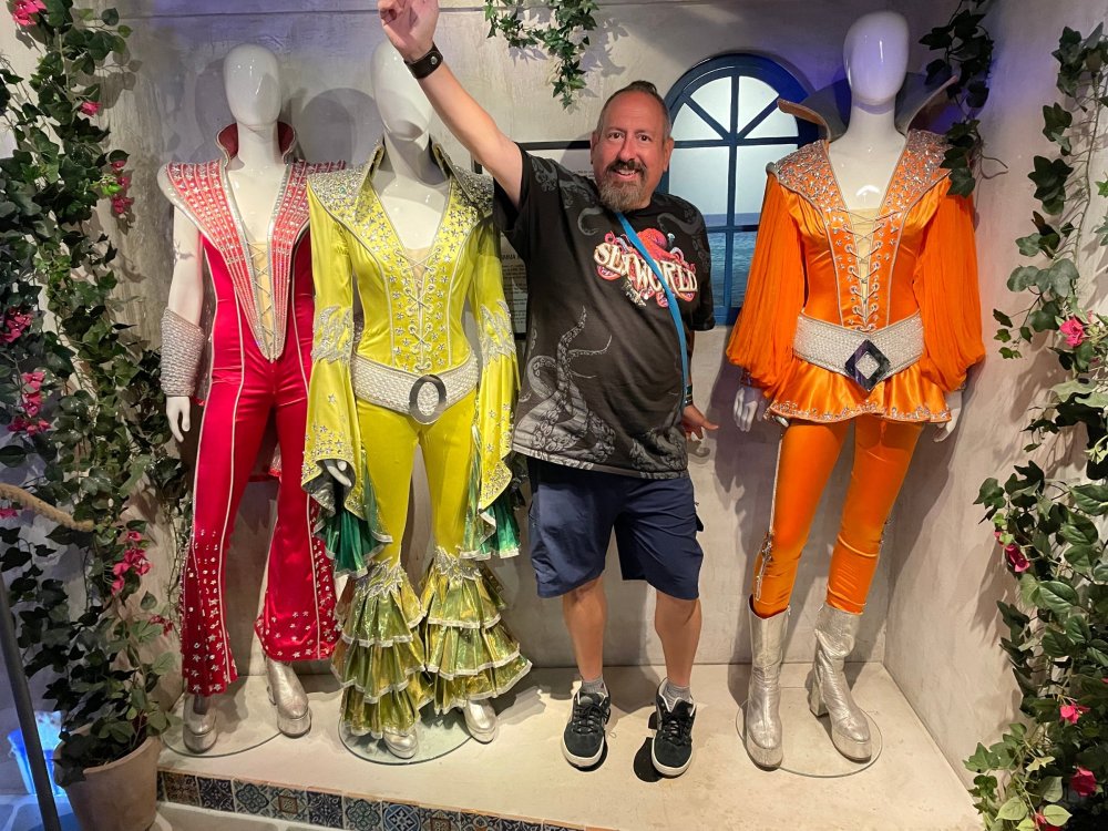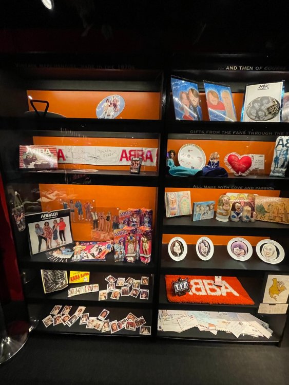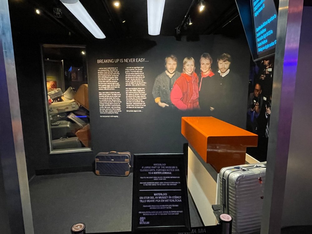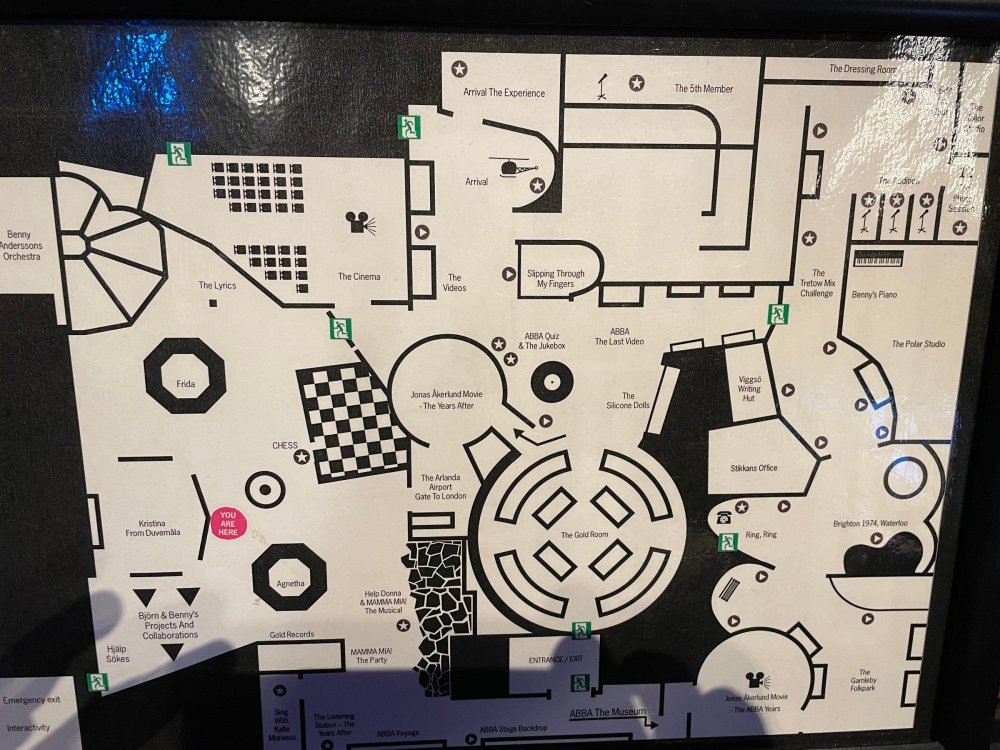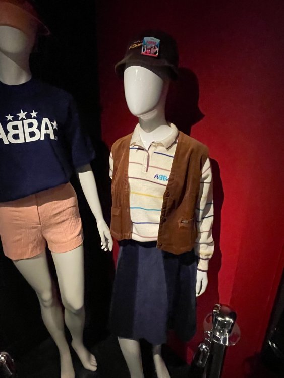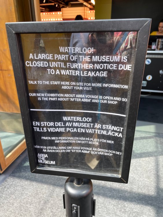 12. Day 18: Tuesday, June 20th part 2 (of 3) - Voulez-Vous; off to the ABBA museum! getting to the front of the museum, we were met with this sign. sadly a pipe had burst overnight and flooded a lot of the museum (kudos to the clever wordplay and how quickly they got the sign up. . .tho it does make me wonder if this happens a lot??). So probably 2/3rds of the Museum were closed to the public, as they did clean up and repairs. as this was our only time to visit - and as they were offering a pretty substantial discount to enter (and I really mainly wanted the gift shop access anyways), we went ahead and decided to do it. Tho with so much closed, what would have taken probably 2-3 hours, only took us about 40 minutes to do. still. . worth it for the ABBA nerd in me. one exhibit hall that was open was the whole section about the VR ABBA "the Voyage" show in England. with lots of props, and info about how they scanned the band members in for the holographic performances. yes, the fashion nerd in me (it's the gay gene) was all verklempt over these. .the sketches and the finished costumes. Then downstairs to the main museum. . tho really all that was open were the final two rooms: the "after ABBA" sections, really. the stage sign from the final tour. . . only half lit, due to the water damage issue that took out power for much of the museum. at least the B is lit. . . B is for Bert! assorted licensed ABBA merch display. and then it was onto the Post-ABBA rooms. . . starting with a photo op from the Land Rover from "Mamma Mia!". . no, really. no other option than to be Benny here. . but oh well. . . wall of gold/platinum records a wedding dress from the film. . scale model of the main film set. . Meryl Streep's ass sat here! it was roped off, but could peek into the prior room of the museum, that was all about the breakup and reason's why. then onward to the separate sections about what each of the members did once the band split. Pretty large, and interactive sections. so this was quite interesting. (tho only one minor mention of the big hit from this show "One Night in Bangkok" which was surprising to me) Agnetha's "Grammi" she won in 92 for a solo album More Mamma Mia! stuff. . including the dress in the poster. the layout of the full museum. . basically only the left 3rd of the map was open. so I didn't get the Arrival Helicopter photo op. oh well. . when I next go back to Grona Lund (and I WILL at some point, I hope), I'll do the rest of the museum. a Potty break before heading back to the park, revealed rock n roll restrooms - themed to the backstage dressing rooms. baby, I'm a STAR! heh. . covid signs.. better than singing Happy Birthday. up into the gift shop. . where I would spend way too much money! But at least could run right upstairs and drop it in the room and not have to carry around the park. not gonna lie. . I TOTALLY wanted this Mumu dress. . but it was silk, and they wanted way too much for it. dressing room, again forcing you to be Bjorn. . . and with a quick stop to the room to drop off purchases, we headed back over to Grona Lund! to be concluded.