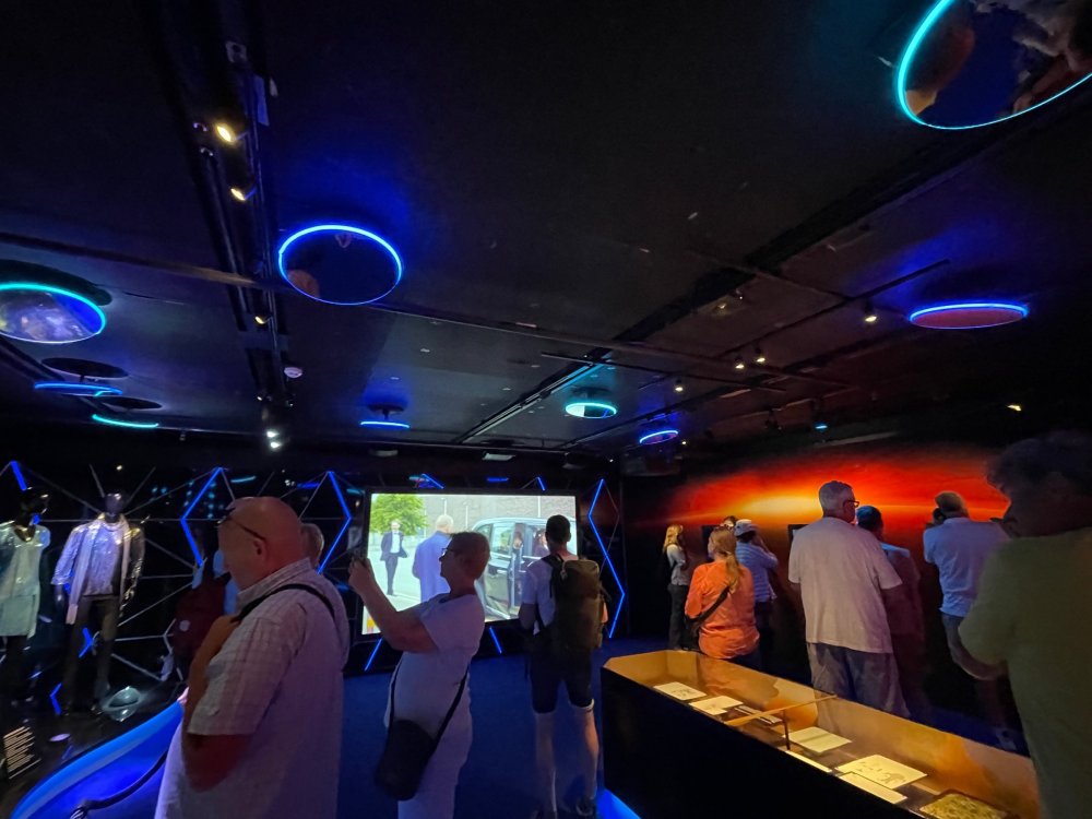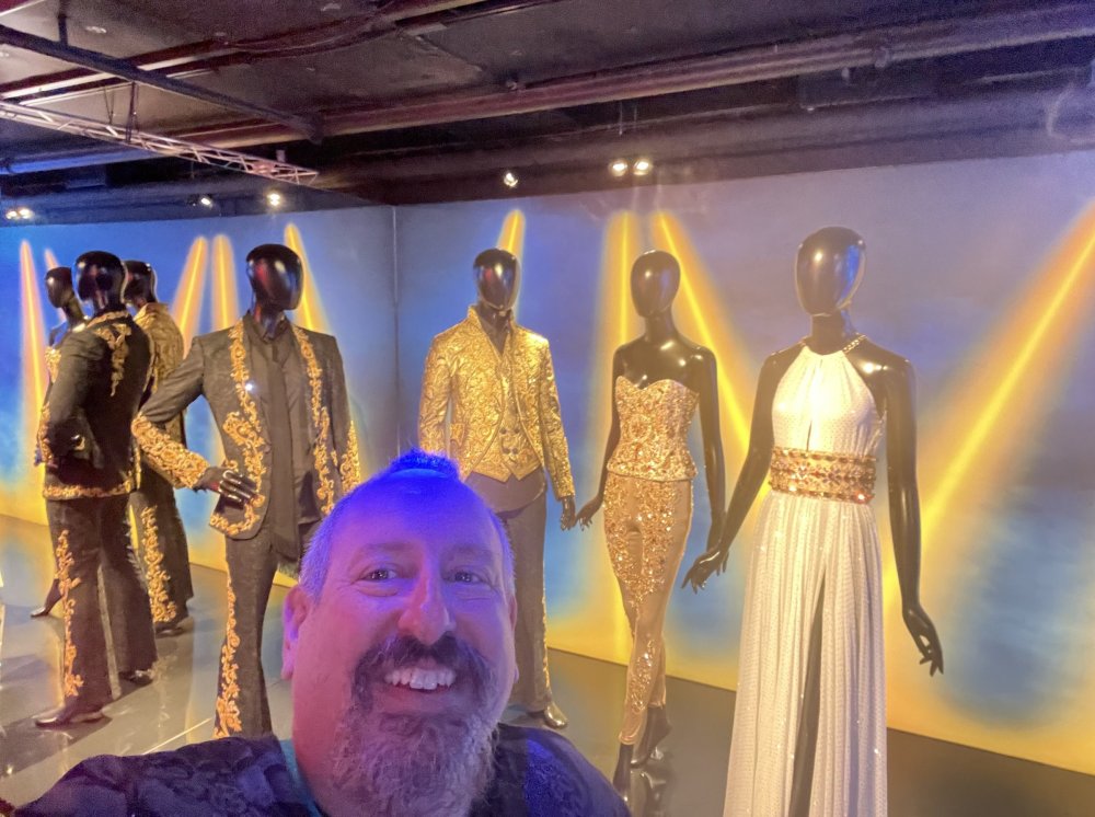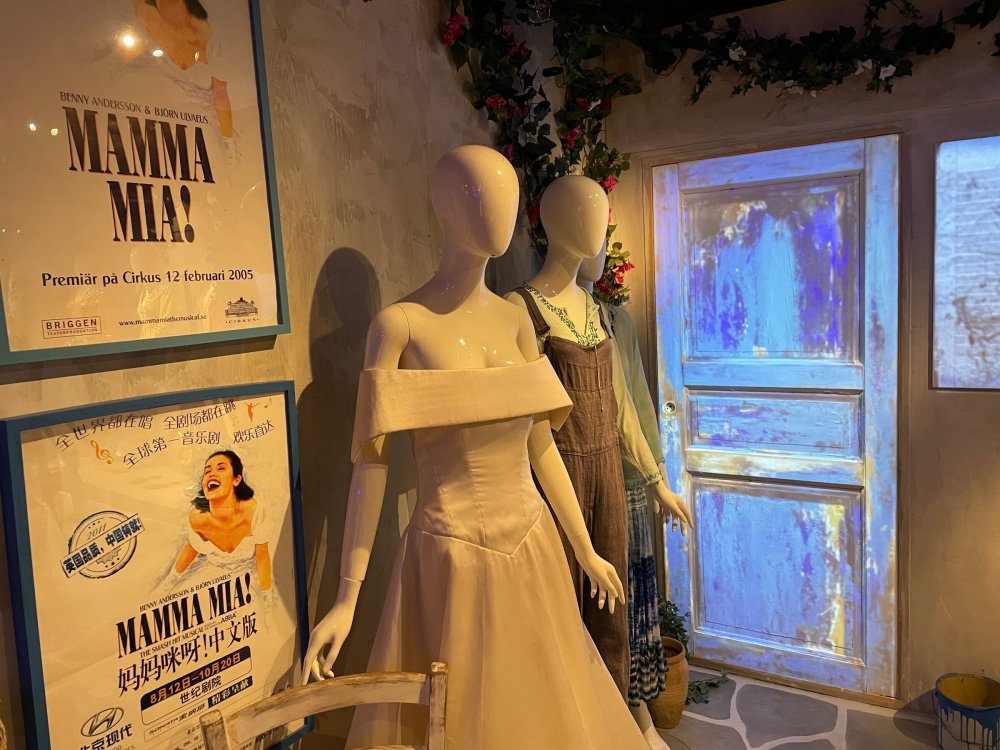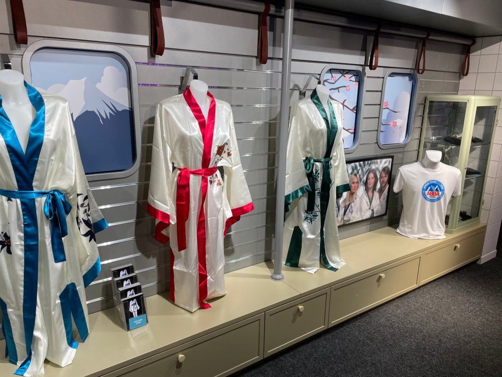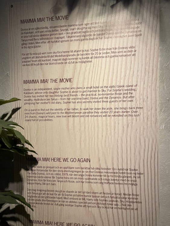 12. Day 18: Tuesday, June 20th part 2 (of 3) - Voulez-Vous; off to the ABBA museum! getting to the front of the museum, we were met with this sign. sadly a pipe had burst overnight and flooded a lot of the museum (kudos to the clever wordplay and how quickly they got the sign up. . .tho it does make me wonder if this happens a lot??). So probably 2/3rds of the Museum were closed to the public, as they did clean up and repairs. as this was our only time to visit - and as they were offering a pretty substantial discount to enter (and I really mainly wanted the gift shop access anyways), we went ahead and decided to do it. Tho with so much closed, what would have taken probably 2-3 hours, only took us about 40 minutes to do. still. . worth it for the ABBA nerd in me. one exhibit hall that was open was the whole section about the VR ABBA "the Voyage" show in England. with lots of props, and info about how they scanned the band members in for the holographic performances. yes, the fashion nerd in me (it's the gay gene) was all verklempt over these. .the sketches and the finished costumes. Then downstairs to the main museum. . tho really all that was open were the final two rooms: the "after ABBA" sections, really. the stage sign from the final tour. . . only half lit, due to the water damage issue that took out power for much of the museum. at least the B is lit. . . B is for Bert! assorted licensed ABBA merch display. and then it was onto the Post-ABBA rooms. . . starting with a photo op from the Land Rover from "Mamma Mia!". . no, really. no other option than to be Benny here. . but oh well. . . wall of gold/platinum records a wedding dress from the film. . scale model of the main film set. . Meryl Streep's ass sat here! it was roped off, but could peek into the prior room of the museum, that was all about the breakup and reason's why. then onward to the separate sections about what each of the members did once the band split. Pretty large, and interactive sections. so this was quite interesting. (tho only one minor mention of the big hit from this show "One Night in Bangkok" which was surprising to me) Agnetha's "Grammi" she won in 92 for a solo album More Mamma Mia! stuff. . including the dress in the poster. the layout of the full museum. . basically only the left 3rd of the map was open. so I didn't get the Arrival Helicopter photo op. oh well. . when I next go back to Grona Lund (and I WILL at some point, I hope), I'll do the rest of the museum. a Potty break before heading back to the park, revealed rock n roll restrooms - themed to the backstage dressing rooms. baby, I'm a STAR! heh. . covid signs.. better than singing Happy Birthday. up into the gift shop. . where I would spend way too much money! But at least could run right upstairs and drop it in the room and not have to carry around the park. not gonna lie. . I TOTALLY wanted this Mumu dress. . but it was silk, and they wanted way too much for it. dressing room, again forcing you to be Bjorn. . . and with a quick stop to the room to drop off purchases, we headed back over to Grona Lund! to be concluded.