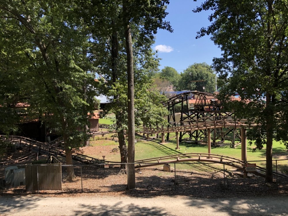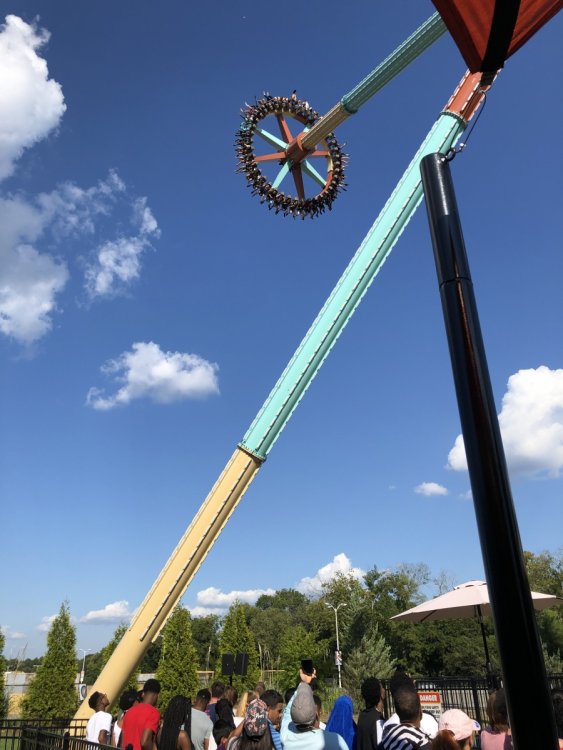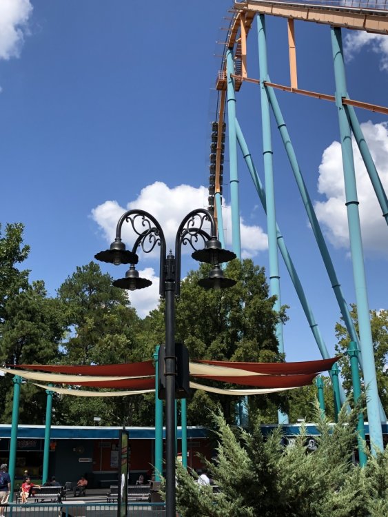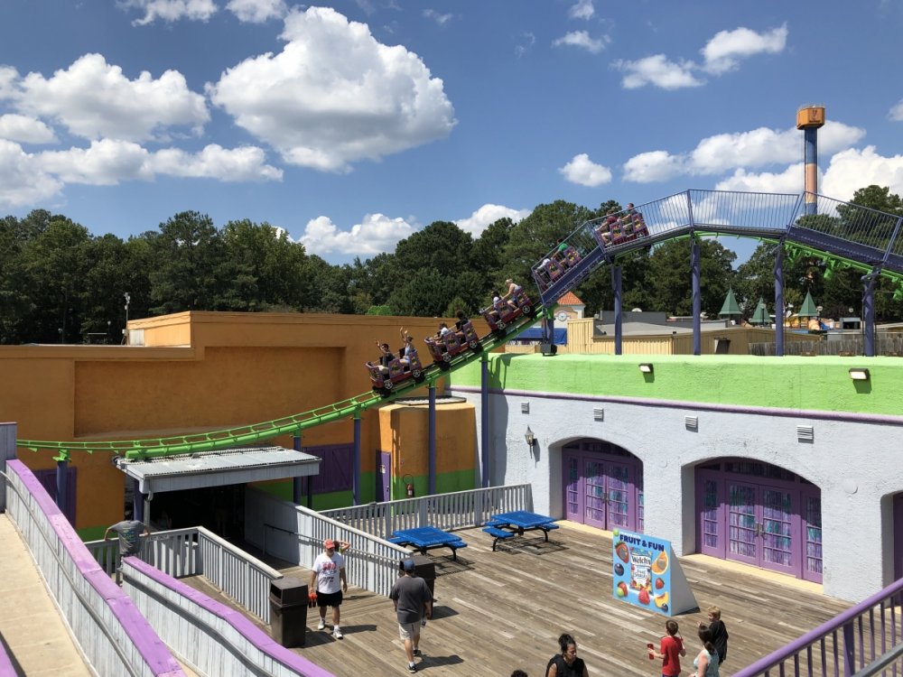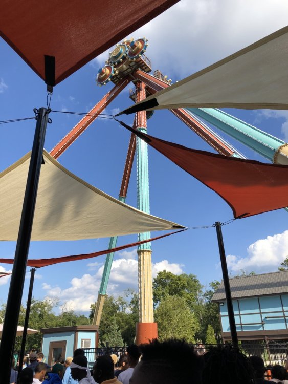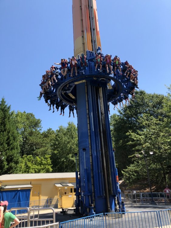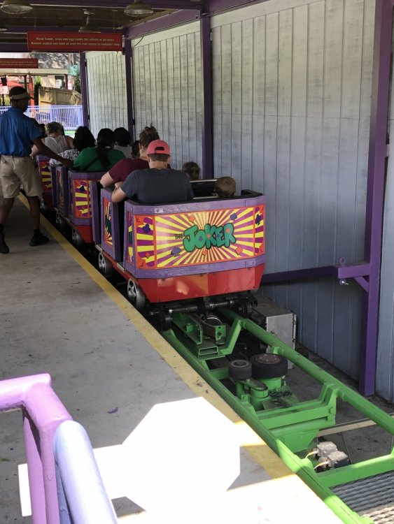 Day 6, Monday. Blowing off con to go to SFOG Monday's at Dragon*con for my friends and I has become a "recovery" day. . we don't really go to panels, but typically just wander the Dealer's room. or visit friends. and we always do a leisurely "fancy" dinner with any friends whom are still around (or are locals) on Monday night. So this year I was determined that I wanted to go to SFOG on Monday, even tho I was expecting it to be packed as it was Labor Day Holiday. I had made plans to go with Lisa and Kayli, tho Lisa had warned me the prior evening that she wasn't sure she'd be up for it. Even tho I went to bed insanely late, I was up pretty early (hungover and puffy. . but up), and I checked with Lisa and she confirmed that they were gonna bail - and wanted to make sure I wasn't mad about it. Travis and Larry were going to a Baseball game and the other folks I had asked to go all begged off as being too hungover (I was too!! but I was determined to ride things I missed on my one prior visit to the park: Joker's Funhouse Coaster, the Train, and Acrophobia). So I wandered to the Hyatt and used one of my contacts at the bell stand to see if they could get a Taxi to match the Uber or Lyft rate that we had looked up (I don't have the apps on my phone, and can't download any without my spouse's permission. . long story, and not worth relaying. . LOL). anyways, it turned out that the cabs were starving for any business, and my bell stand contact not only found a driver that would take me with a flat rate - for the same cost as Uber, but also would give me his card to give me a ride back later as I had dinner plans with my friends that evening. Turned out I was his first ride since 6am, and I thin it was ~9:30 at that point. . So for $30 (including tip), we left from Hyatt and ~20 minutes later, he was dropping me off at the front gate of SFOG - and getting yelled out for letting me out in a "no dropping" zone. I'm here. not feeling great, but here! wOOt wOOt um. . so is everyone else. s'ok, I knew it would be crowded, and had planned to likely pick up Flash Pass. Standing in the line to get in tho, I had plenty of time to watch Twisted Cyclone and Goliath cycling. . so it was a nice distraction. and before I knew it, I was in the park. hmmm. . didn't seem all that crowded here? Everyone was going left for some reason, towards Scorcher and the Log Flume (which ended up having long lines all day, so I skipped both), but going right? was kinda dead. I peeked into Flash Pass, wen walking by. And saw they were charging something like $139 for it that day, so walked out and instead figured I'd take a ride on Twisted Cyclone standby, and see how it goes. the downstairs queue area was only about a 3rd full, and the employee at the entrance told me that meant it was about a 20 minute wait (which proved to be only about 5 minutes longer than it was). so I got in line Pics from the queue line. They were running 2 trains, tho stacking. which meant the line wasn't consistently moving. .but it WAS moving, which was fine with me. and you can get some fantastic pics of the coaster form the stairs going up into the station. Already pretty far up in the line, after only a couple of minutes in. the line looks longer than it is, because the queue lines are so wide. . it really wasn't much of a wait at all. Especially when I got to the top of the stairs and realized there's a single rider line in the station, that's before the front car. I wasn't sure it was open, since no one was in it, but the operator told me it was, and they immediately put me in an open seat a couple of rows back. From the time I hit the station at the top of the stairs until my butt sat in a train? about 20 seconds. all in all, it was only ~20 minutes in line. Fantastic ride too. short, but wonderfully intense, and that wave turn. whee! Acrophobia was cycling, and since that was my main objective? I headed just up that way, planning to go back to get the Flash Pass if I needed it. I had wanted to ride this for years, and had been hugely disappointed it was down on my prior visit. but it was running today, and it almost did live up to the hype I had built up in my head for it. if I hadn't ridden Falcon's Fury, I would have absolutely raved about it. . instead, I just really liked it (the tilt wasn't as extreme as I had been expecting). . but it was really good. and it was almost walk on, since it's a people eater. Really, I think maybe I waited 5 minutes for it? some nice pics of TC and that amazing wave turn from the Acrophobia line, but in this case I was trying to get a picture of the train as it was pulling around. Train! toot toot! wheeeeeeee It was so good, that I rode it twice in a row. but I really needed to pee, so headed to the bathrooms across the way - which turned out to be at the Train Station. and the train was still there and hadn't pulled out yet. so yep. . instead of peeing? I rode the train! hadn't even been in the park an hour yet, and already knocked out two of the 3 things I had wanted to come to SFOG for (and Acrophobia twice!). I was so thrilled to get on the train, and it seemed to be the 1st run of the day as all the seats were still wet from being hosed off before it went into service. as I told the people behind me: "It's magic water, it disappears when you sit down on it" I had been so disappointed I missed the train last time here (and it had been running a funky Engine & 2 passenger car combo too). .so was excited to take a spin around the park. NOTED! This park is absolutely lovely in places (more towards the front end, and by Carousel Hill). This is the Dahlonga (sp?) Mine train. I had ridden it last year, in a wheel seat, I think. .and hadn't cared for it. . but since it seemed to have no line I would give it another try today. Like the one at SFOT, it's mostly "Lift Hill: the Ride". .but it's in a nice setting. even if the old Powersurge is still sitting there next door rotting. looked exactly the same as it h