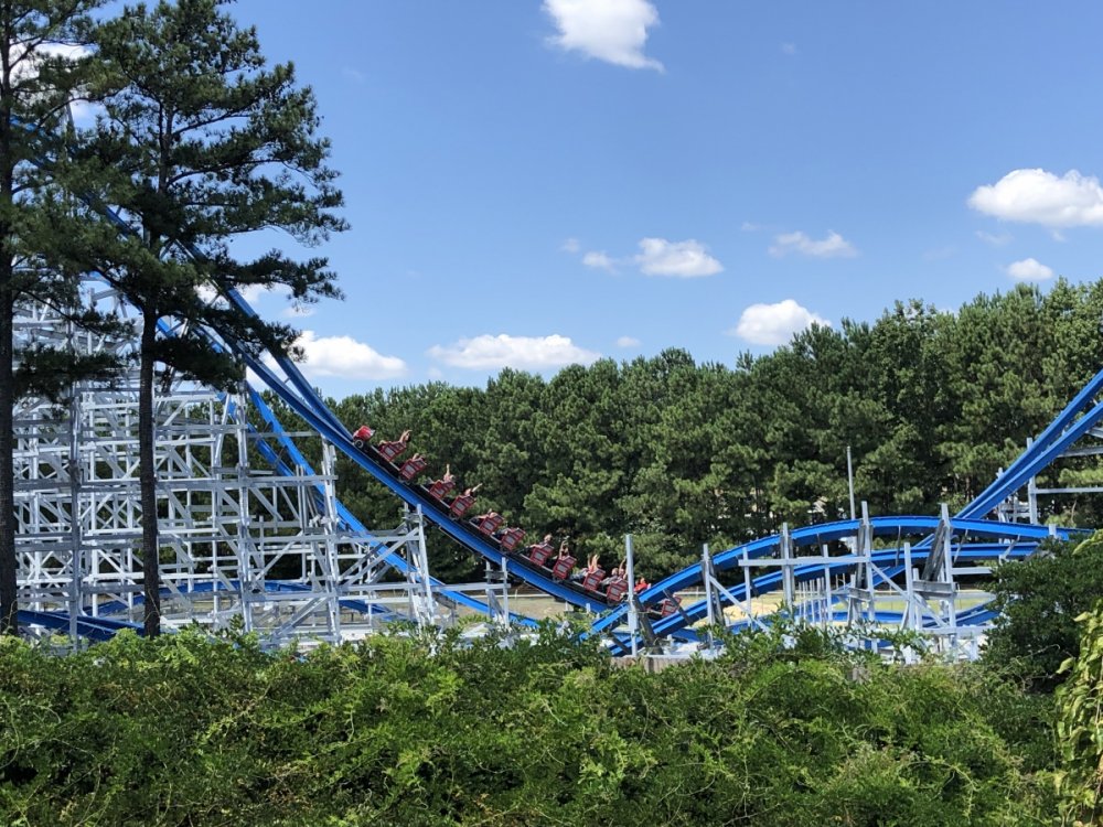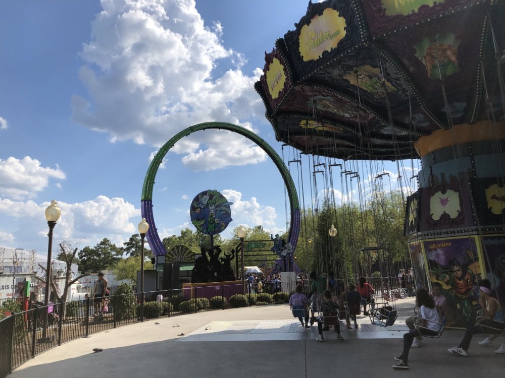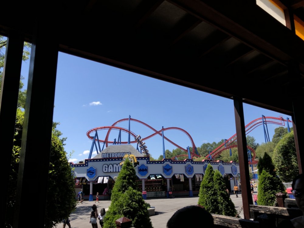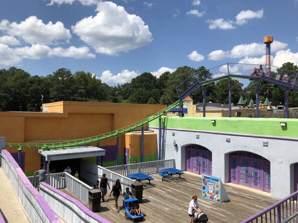 Day 6, Monday. Blowing off con to go to SFOG Monday's at Dragon*con for my friends and I has become a "recovery" day. . we don't really go to panels, but typically just wander the Dealer's room. or visit friends. and we always do a leisurely "fancy" dinner with any friends whom are still around (or are locals) on Monday night. So this year I was determined that I wanted to go to SFOG on Monday, even tho I was expecting it to be packed as it was Labor Day Holiday. I had made plans to go with Lisa and Kayli, tho Lisa had warned me the prior evening that she wasn't sure she'd be up for it. Even tho I went to bed insanely late, I was up pretty early (hungover and puffy. . but up), and I checked with Lisa and she confirmed that they were gonna bail - and wanted to make sure I wasn't mad about it. Travis and Larry were going to a Baseball game and the other folks I had asked to go all begged off as being too hungover (I was too!! but I was determined to ride things I missed on my one prior visit to the park: Joker's Funhouse Coaster, the Train, and Acrophobia). So I wandered to the Hyatt and used one of my contacts at the bell stand to see if they could get a Taxi to match the Uber or Lyft rate that we had looked up (I don't have the apps on my phone, and can't download any without my spouse's permission. . long story, and not worth relaying. . LOL). anyways, it turned out that the cabs were starving for any business, and my bell stand contact not only found a driver that would take me with a flat rate - for the same cost as Uber, but also would give me his card to give me a ride back later as I had dinner plans with my friends that evening. Turned out I was his first ride since 6am, and I thin it was ~9:30 at that point. . So for $30 (including tip), we left from Hyatt and ~20 minutes later, he was dropping me off at the front gate of SFOG - and getting yelled out for letting me out in a "no dropping" zone. I'm here. not feeling great, but here! wOOt wOOt um. . so is everyone else. s'ok, I knew it would be crowded, and had planned to likely pick up Flash Pass. Standing in the line to get in tho, I had plenty of time to watch Twisted Cyclone and Goliath cycling. . so it was a nice distraction. and before I knew it, I was in the park. hmmm. . didn't seem all that crowded here? Everyone was going left for some reason, towards Scorcher and the Log Flume (which ended up having long lines all day, so I skipped both), but going right? was kinda dead. I peeked into Flash Pass, wen walking by. And saw they were charging something like $139 for it that day, so walked out and instead figured I'd take a ride on Twisted Cyclone standby, and see how it goes. the downstairs queue area was only about a 3rd full, and the employee at the entrance told me that meant it was about a 20 minute wait (which proved to be only about 5 minutes longer than it was). so I got in line Pics from the queue line. They were running 2 trains, tho stacking. which meant the line wasn't consistently moving. .but it WAS moving, which was fine with me. and you can get some fantastic pics of the coaster form the stairs going up into the station. Already pretty far up in the line, after only a couple of minutes in. the line looks longer than it is, because the queue lines are so wide. . it really wasn't much of a wait at all. Especially when I got to the top of the stairs and realized there's a single rider line in the station, that's before the front car. I wasn't sure it was open, since no one was in it, but the operator told me it was, and they immediately put me in an open seat a couple of rows back. From the time I hit the station at the top of the stairs until my butt sat in a train? about 20 seconds. all in all, it was only ~20 minutes in line. Fantastic ride too. short, but wonderfully intense, and that wave turn. whee! Acrophobia was cycling, and since that was my main objective? I headed just up that way, planning to go back to get the Flash Pass if I needed it. I had wanted to ride this for years, and had been hugely disappointed it was down on my prior visit. but it was running today, and it almost did live up to the hype I had built up in my head for it. if I hadn't ridden Falcon's Fury, I would have absolutely raved about it. . instead, I just really liked it (the tilt wasn't as extreme as I had been expecting). . but it was really good. and it was almost walk on, since it's a people eater. Really, I think maybe I waited 5 minutes for it? some nice pics of TC and that amazing wave turn from the Acrophobia line, but in this case I was trying to get a picture of the train as it was pulling around. Train! toot toot! wheeeeeeee It was so good, that I rode it twice in a row. but I really needed to pee, so headed to the bathrooms across the way - which turned out to be at the Train Station. and the train was still there and hadn't pulled out yet. so yep. . instead of peeing? I rode the train! hadn't even been in the park an hour yet, and already knocked out two of the 3 things I had wanted to come to SFOG for (and Acrophobia twice!). I was so thrilled to get on the train, and it seemed to be the 1st run of the day as all the seats were still wet from being hosed off before it went into service. as I told the people behind me: "It's magic water, it disappears when you sit down on it" I had been so disappointed I missed the train last time here (and it had been running a funky Engine & 2 passenger car combo too). .so was excited to take a spin around the park. NOTED! This park is absolutely lovely in places (more towards the front end, and by Carousel Hill). This is the Dahlonga (sp?) Mine train. I had ridden it last year, in a wheel seat, I think. .and hadn't cared for it. . but since it seemed to have no line I would give it another try today. Like the one at SFOT, it's mostly "Lift Hill: the Ride". .but it's in a nice setting. even if the old Powersurge is still sitting there next door rotting. looked exactly the same as it h