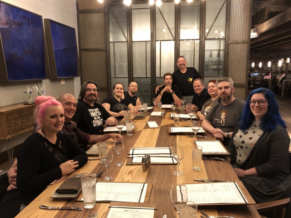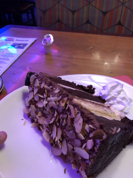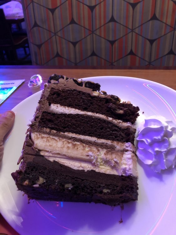 Final wrap up but then I can focus on (maybe) my SFFT visit before my other vacation, or (more likely) Japan, in October, with TPR report dinner at Sear was fantastic, and expensive. . but mostly fantastic. for some reason, I didn't take any pics of the food (LOL). . but I had a 1/2 dozen oysters on half shell for app, then a Tbone Steak with scallops for the main. here's the group shot of my friends that hang around for Monday evening "goodbye" dinner. clockwise from lower left: Sarah, Josh, John, V, Kevin, Travis, Me, Larry, Marcella, Neal, and Brianna. final view out of the hotel room window on Monday night and here I am at the airport, sad that it's over the Brownie Base was a little dry (you can tell that it had been pre-made to have it ready for Con). but I ate most of it anyways. the cheesecake was amazing, and the chocolate cake was smooth and wonderful. sugar bomb, just before bed, after a long day out in the sun, and a full meal of steak and seafood. . . LOL YUM. . but then I decided, that I really, really, wanted another piece of giant cake before I left Atlanta. So I headed over to the 24 hour Metro Diner. . which after Con was basically a walk in, even tho they had blasting loud Karaoke going on in the bar area for like, six people. this is the Volcano Cake: Brownie Base, Cheesecake, chocolate cake, separated by Caramel Butter Cream, with a chocolate Icing. and my Disney Print swag showed up just before I left for Japan, so pics of those in my home flattening them out. how cool are these? Love, Love, LOVE this one tho Magic Kingdom remains my favorite. plan is to get them all matted and framed before the end of the year