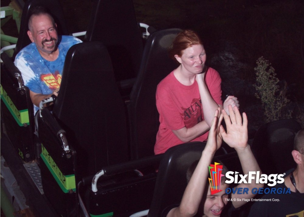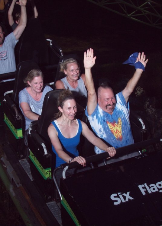 whoops. . forgot to add the onride photos I got (didn't get to pick up the "photog" pics, as the taxi driver was waiting for me. . so couldn't stand in that line). Mindbender front row (once I knew camera was there) Mindbender back row. . no idea the camera was there. the lady in front of me looks like she was posing, but her friends (in the row in front of her) said she didn't and that's just how she rides rollercoasters. . .LOL