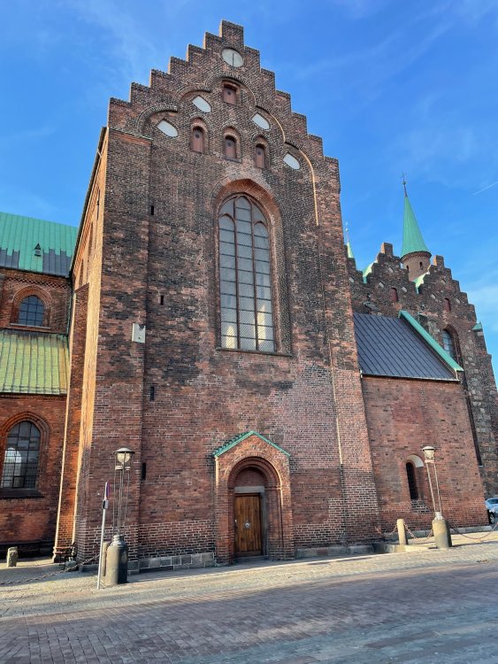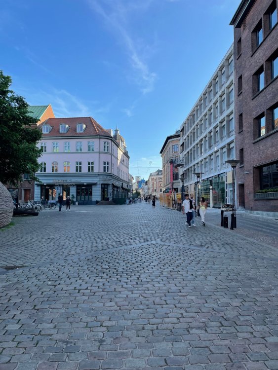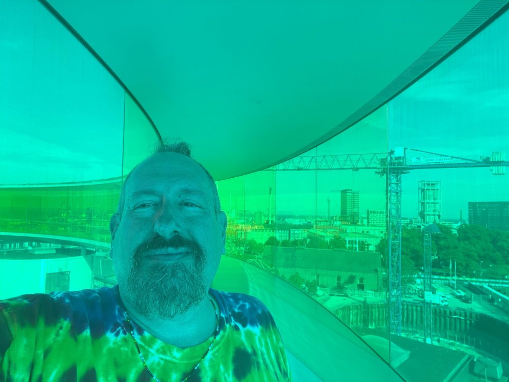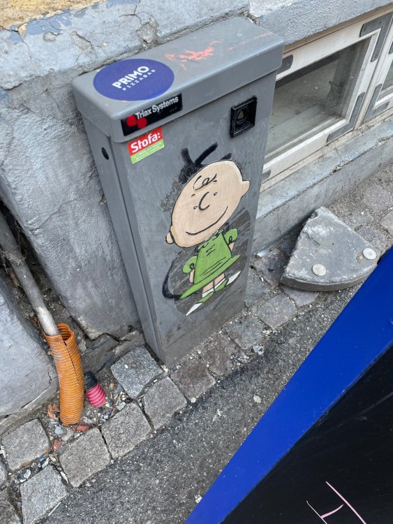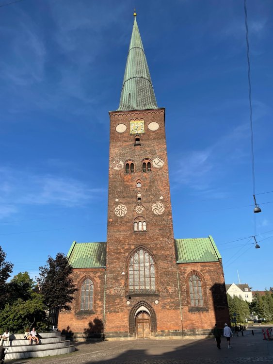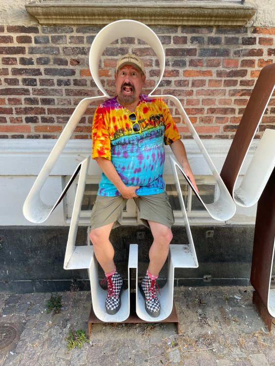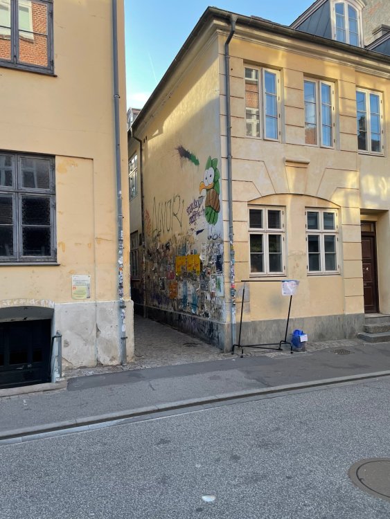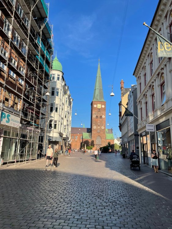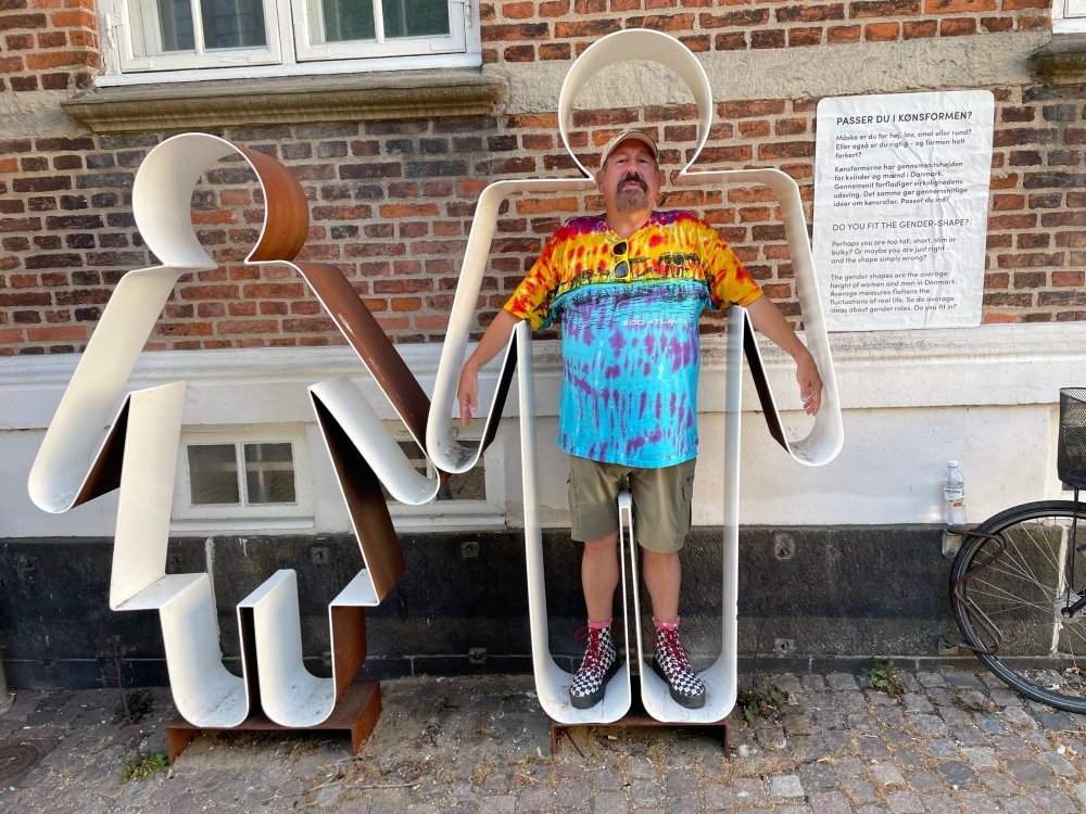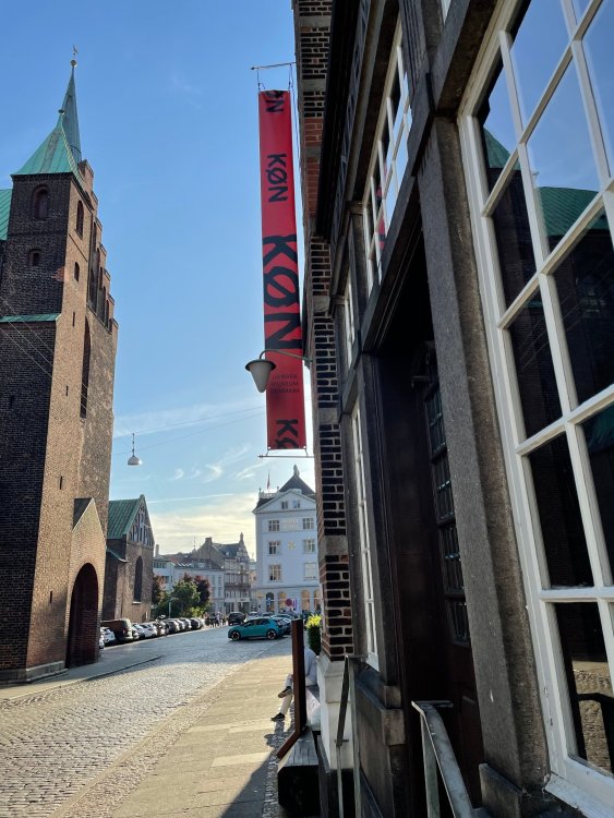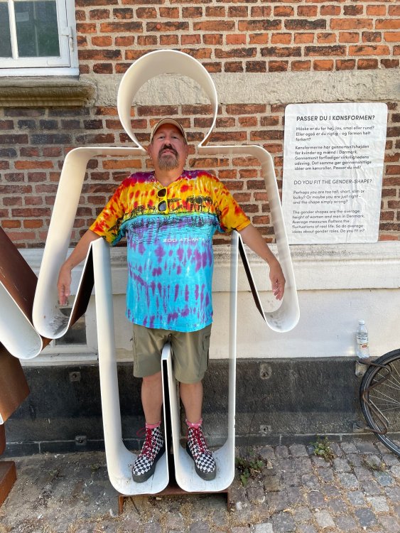 Hawk and Doug had split off to find food, and Big Mike was wandering, so I headed down to 3 where there was a lecture about LGBTQ (didn't stay to listen to it, but there were some exhibits on the topic sprinkled around this floor. the exhibits on floor 1 are exhibitions from the artist: Annette Messager - called "Desirs desordonnes" (Disordered desires) creepy! in the trip chat, some of the others had posted not to miss the basement because it was very strange (I think perhaps that was Andy or Steve). . and I had thought they were talking about this exhibit, which was rather Fv@ked up. . . imagine my surprise when I went down to the zero level for a winding batch of rooms in a Permanent Installation that would give Meow Wolf a run for it's money! very retro room. . a fully stocked dorm/apartment. . . complete with a stocked mini-mart and down another hallway, this creepy very Japanese room. . that had a perpetual rainstorm going on. . .complete with lightning, rain falling on the windows, and dripping water into buckets. So freaking cool. and an endless stairwell. . .reflecting into infinity. another retro room.. . complete with accessories one could interact with. and a room that just had a giant, glowing, vibrator in the center of it. which, honestly, was a bit mesmerizing! a quick perusal of the gift shop. . where I picked up this magnet: and then we were on our way. I stopped and asked a guard the directions to Aarhus Domkirke (the well known Cathedral), and she assured us it's an easy walk, up some of the beautiful canals. . . so with her directions, big Mike and I headed out on foot to check out the Cathedral (and the close to it Viking Museum, and Museum of Gender - if either were still open). to her credit, it WAS a lovely walk. . and past the university and entertainment area. . . so lots and lots of folks out and about (we even passed Doug & Hawk eating in a cafe and said hello as we walked by) so many interesting stores here! ' is it a clothing store? or a shoe store? or a nudist colony money laundering front? I'm confused! around the corner was the Cathedral. . . it really is beautiful. . especially in the late afternoon. didn't stick around to take too many pics of this statue, as behind it, there were probably 5 guys pissing on those trees. so . . yeah. . .kept to this side of the statue a look around the "square" where the Cathedral is in the center. . I thought this was the Viking Museum. . . sadly was closed (they closed at 6 I think).. but looking at the pics, perhaps it's a theater? they seem to be advertising some shows (King Lear) the Gender Studies museum was also closed. . but they had this interactive display out front encouraging you to see if you fit in the gender shape. for "Male". . check! for Female: Also "Check". . if I tuck shame they were closed, but we decided to wander up the side streets to the port area, and just enjoy the scenery. Charlie Brown in Lucy's dress. . . awesome! a big building by the port. . perhaps an amphitheater for music/shows? and I had seen this graffiti on flyers around town. . . so I think it might be a well known one (or artist). . but it was kinda neat, so snapped a pic of it. and at this point, my feet were hurting. . so I said to Big Mike, "I'm gonna flag down a cab, and cab it back to the hotel". . . so we did, and had a nice driver who told us all about the city while taking us back to the zleep in. . . where I crashed hard from a full day. but was excited, as tomorrow was Djurs Sommerland. . . a park I had very much been looking forwards to. I was worried I wouldn't be able to sleep due to the excitement, but I was out immediately (and probably kept AJ up with snoring, since I was so exhausted). hope you've enjoyed this update!