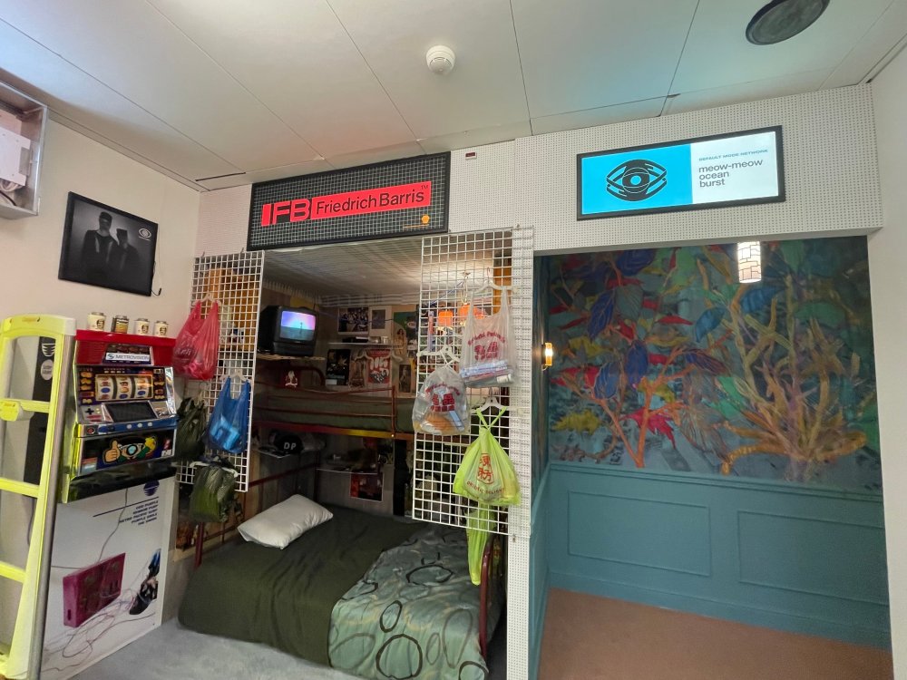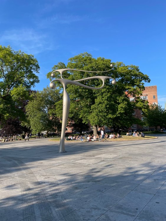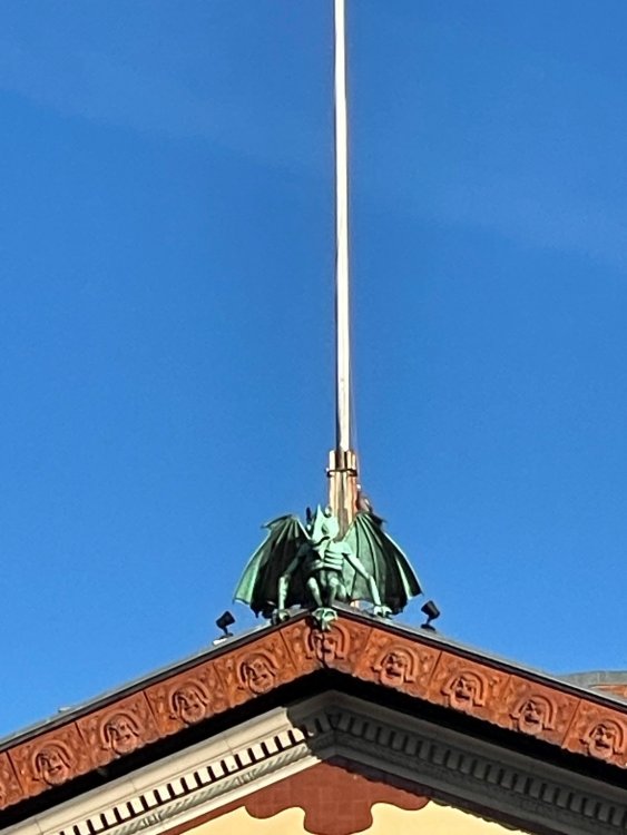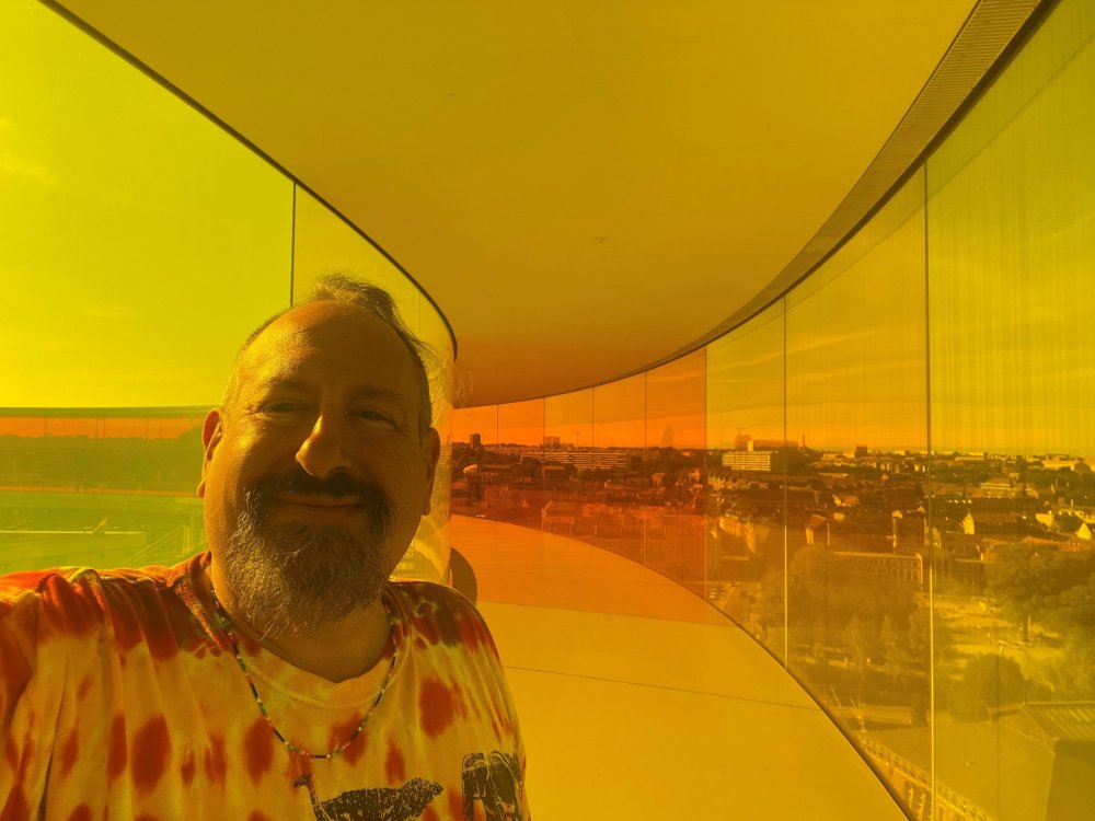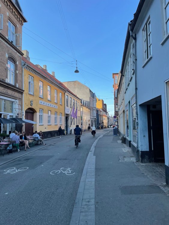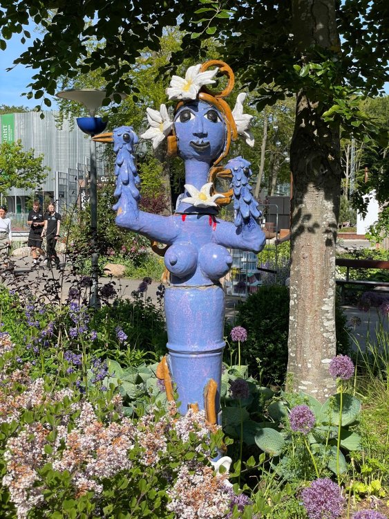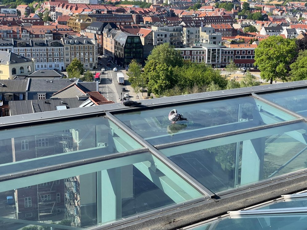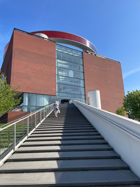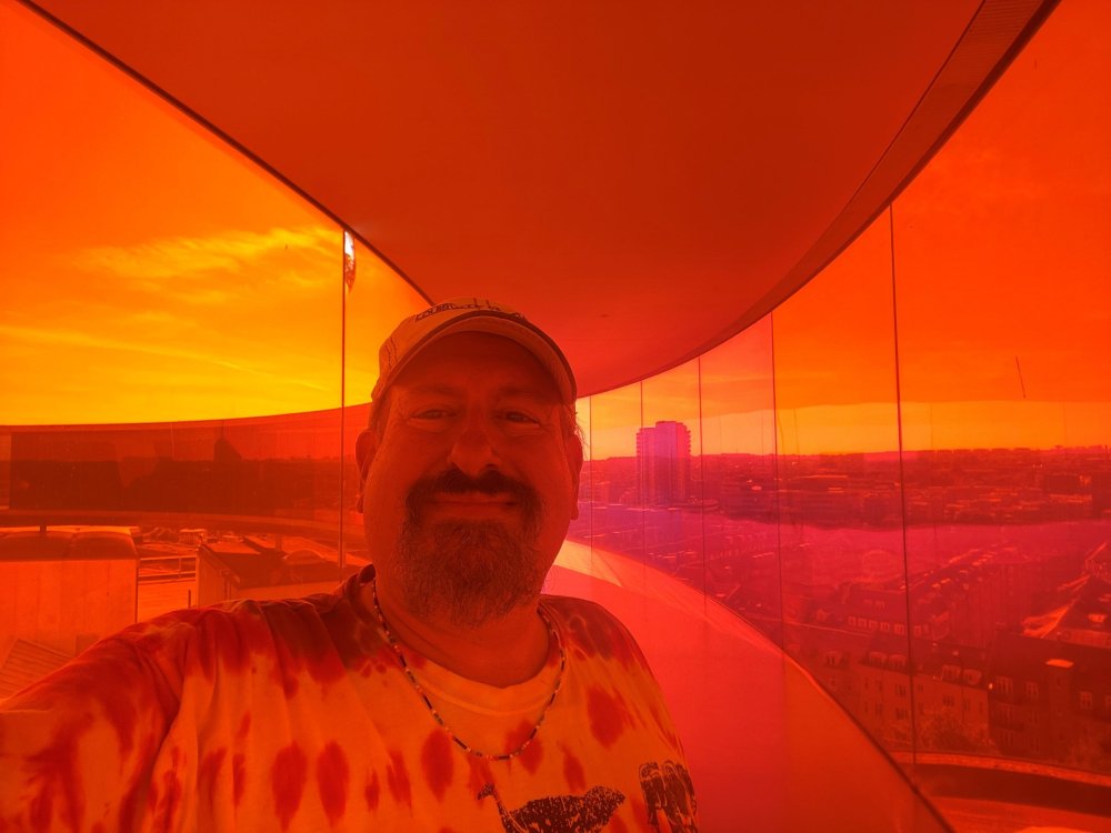 Hawk and Doug had split off to find food, and Big Mike was wandering, so I headed down to 3 where there was a lecture about LGBTQ (didn't stay to listen to it, but there were some exhibits on the topic sprinkled around this floor. the exhibits on floor 1 are exhibitions from the artist: Annette Messager - called "Desirs desordonnes" (Disordered desires) creepy! in the trip chat, some of the others had posted not to miss the basement because it was very strange (I think perhaps that was Andy or Steve). . and I had thought they were talking about this exhibit, which was rather Fv@ked up. . . imagine my surprise when I went down to the zero level for a winding batch of rooms in a Permanent Installation that would give Meow Wolf a run for it's money! very retro room. . a fully stocked dorm/apartment. . . complete with a stocked mini-mart and down another hallway, this creepy very Japanese room. . that had a perpetual rainstorm going on. . .complete with lightning, rain falling on the windows, and dripping water into buckets. So freaking cool. and an endless stairwell. . .reflecting into infinity. another retro room.. . complete with accessories one could interact with. and a room that just had a giant, glowing, vibrator in the center of it. which, honestly, was a bit mesmerizing! a quick perusal of the gift shop. . where I picked up this magnet: and then we were on our way. I stopped and asked a guard the directions to Aarhus Domkirke (the well known Cathedral), and she assured us it's an easy walk, up some of the beautiful canals. . . so with her directions, big Mike and I headed out on foot to check out the Cathedral (and the close to it Viking Museum, and Museum of Gender - if either were still open). to her credit, it WAS a lovely walk. . and past the university and entertainment area. . . so lots and lots of folks out and about (we even passed Doug & Hawk eating in a cafe and said hello as we walked by) so many interesting stores here! ' is it a clothing store? or a shoe store? or a nudist colony money laundering front? I'm confused! around the corner was the Cathedral. . . it really is beautiful. . especially in the late afternoon. didn't stick around to take too many pics of this statue, as behind it, there were probably 5 guys pissing on those trees. so . . yeah. . .kept to this side of the statue a look around the "square" where the Cathedral is in the center. . I thought this was the Viking Museum. . . sadly was closed (they closed at 6 I think).. but looking at the pics, perhaps it's a theater? they seem to be advertising some shows (King Lear) the Gender Studies museum was also closed. . but they had this interactive display out front encouraging you to see if you fit in the gender shape. for "Male". . check! for Female: Also "Check". . if I tuck shame they were closed, but we decided to wander up the side streets to the port area, and just enjoy the scenery. Charlie Brown in Lucy's dress. . . awesome! a big building by the port. . perhaps an amphitheater for music/shows? and I had seen this graffiti on flyers around town. . . so I think it might be a well known one (or artist). . but it was kinda neat, so snapped a pic of it. and at this point, my feet were hurting. . so I said to Big Mike, "I'm gonna flag down a cab, and cab it back to the hotel". . . so we did, and had a nice driver who told us all about the city while taking us back to the zleep in. . . where I crashed hard from a full day. but was excited, as tomorrow was Djurs Sommerland. . . a park I had very much been looking forwards to. I was worried I wouldn't be able to sleep due to the excitement, but I was out immediately (and probably kept AJ up with snoring, since I was so exhausted). hope you've enjoyed this update!