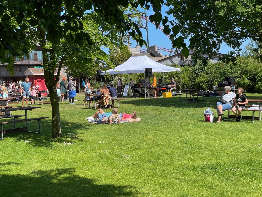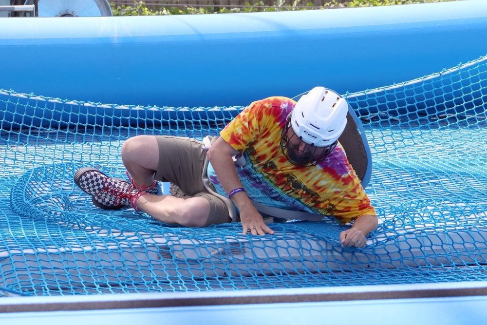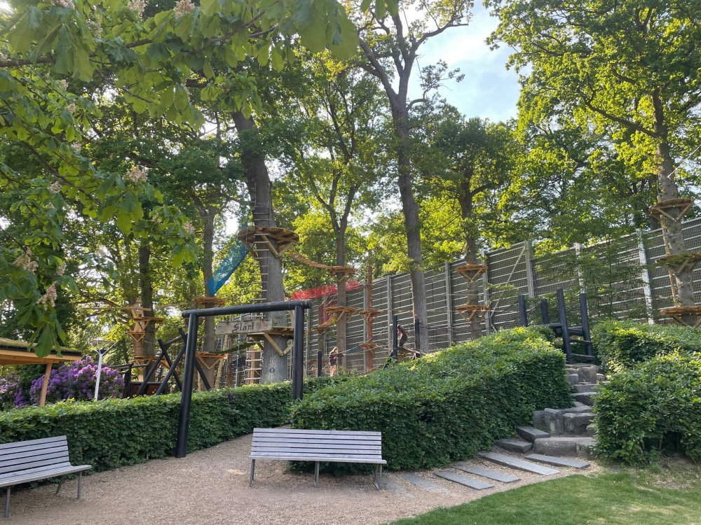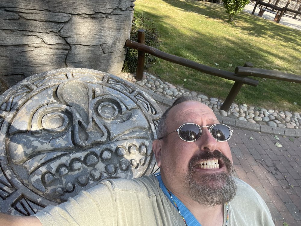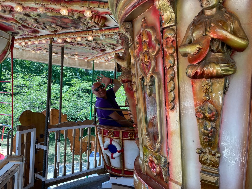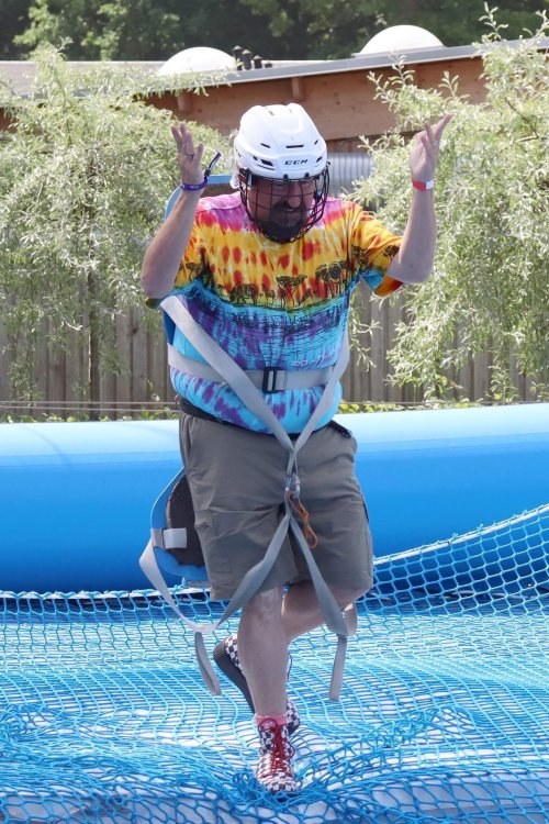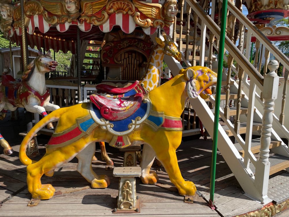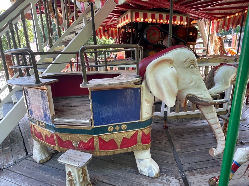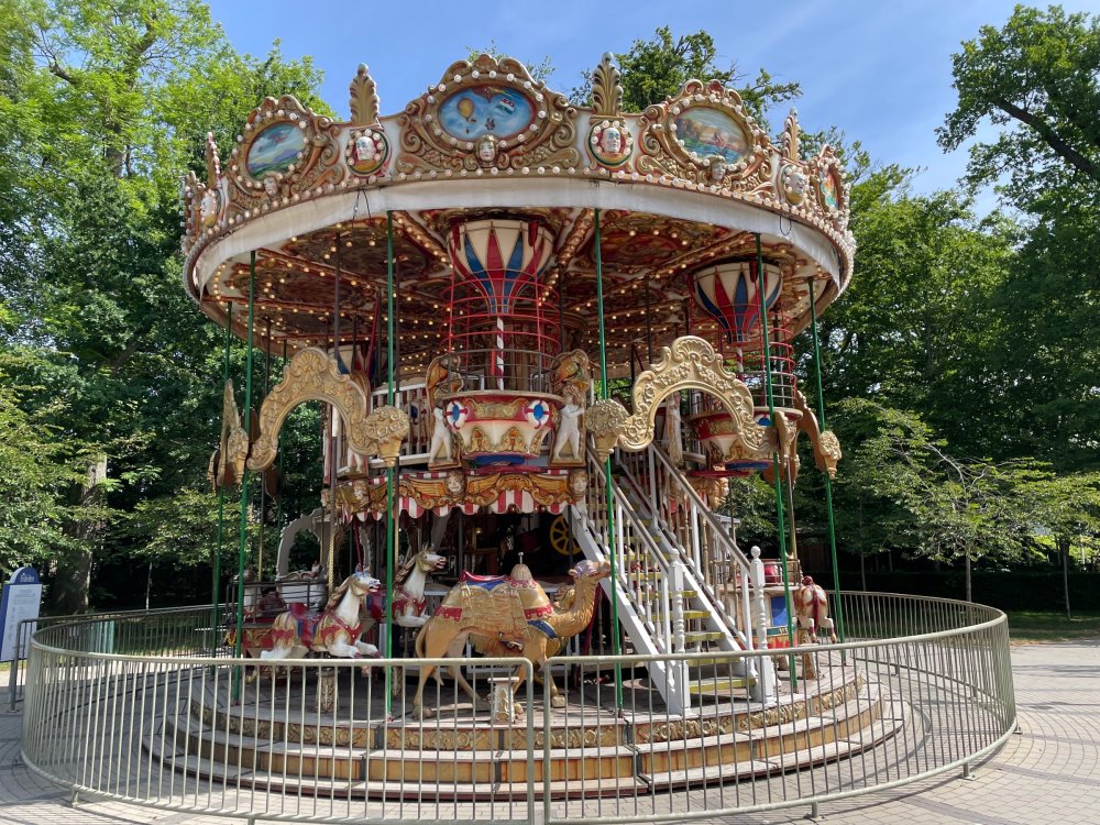 Day 8: Sat, June 10th part 2 (of 2): Djurs Sommerland we headed over to "Vikingeland" section of the park, for the next coaster on our hitlist: Thor's Hammer - a Gerstlauer Bobsled coaster some nice ride theming here, but this was one of the sections where the operators were wearing kahkis (I was hoping for heavy fur vests. . LOL) Don't forget. . Thor died on the cross for you. . . or something. .what do I know? I'm Jewish | as mentioned. . great theming thruout the park. . . even if the trains scream "traveling carnival" (and you can catch the bottom half of an operator's Viking Khakis in this pic) a really fun bobsled tho. . with some of it over the water - and thru a house! in the lake there on the left, one can go around the island in either a canoe or a paddle boat. it was hilarious, because they apparently just put the people in them and let them go - regardless if they know how to paddle (or steer). there was a canoe with four little kids in it, stuck on this turn here for a good 15 minutes as we watched them panic and try to paddle with their hands to move (someone finally came along in a boat and helped them) a self operating "pulley" ride that are "poles with helmets on them". . that's ALL they are. get your minds out of the gutter! here's the station where you can get either a canoe or paddleboat. Didier and I sat on a bench and watched as brave folks decided they wanted to paddle the lake. no shade, but I think David paddled for all. . . it wasn't quite time for lunch yet, so we passed back thru DinosaurLand (where lunch was to be) hence another pic of the Disc-O (the park also has a decent sized waterpark area called "VandLand". . but I'm not sure if any of the folks on the trip went to the waterpark here) and back into Westernland. .the theming on the outside of the Bumper Cars building I didn't actually look at them to see if the cars themselves were themed to Buffalo or not.. .but thought it was rather cool that the kiddie version is in the same building as the adult version. not a Bumper Cars rider. . but a Pony Espressen? Yes please! whee! the park also has a wave swinger called "Wild West Carousel". . . I don't typically ride these, but this one ran forwards, and then backwards, which looked like a unique ride experience (and it was). oh, it also shoots water up at you to try and get you wet. heading back for lunch, some I was with wanted to ride the Disc-O. these always make me a bit nauseous, and I certainly didn't want that right before lunch. .so I passed. tho managed to get pics of them on it. Can you tell which pic is before they noticed me with the phone up, and which is after? Lunch was a PACKED Pizza buffet. I recall it had some really weird stuff on it - such as corn pizza ?? but it certainly wasn't the worst pizza I had, and I recall enjoying it. the table I saw with. at first I thought I had misfiled this, as I don't recall them having one of these (at all). . but I see the dino in the background, so it must still be at Djurs Sommerland, and I just don't remember. this style of ride seems to have gotten popular tho, as I saw it at many parks in Scandinavia on this trip. Universal Denmark? after eating way too much pizza (as you can probably tell from the belly in this pic), needed something calming. So I suggested we ride the train. it's not a full size train like you'd see in USA.. but similar to a lot of the trains in the parks I'd been to in Europe. a lovely route, and gave a great view of the park. Thor's Hammer Juvelen Piraten playground full of ways to injure oneself. . . more playgrounds and trampolines. all really full too! Jonathan and David were eager to try out the King of the Mountain and made it up easily. I watched. oh. .there was plenty to look at. . . . while they attempted to make a hospital visit in a foreign country. . . yeah. . getting up was easy. do you want me to call the fire department to get down now? all played out, we headed into the "kiddie" area, which did have some adult rides. we were ready to ride: Vilde Hønsejagt (the wild chicken hunt) - another Zierer family coaster with lots of chicken theming. . and a fox at the front of the train trying to eat said chicken (I think?) hey. . TPR folks here too! Howdy! Pic courtesy of Didier I believe this was absolutely adorable. . a frog hopper, but themed to pigs in slop. I didn't ride it, but I really wanted to just to say I did I DID ride the classic carousel type ride tho (of course). . with Big Mike and Jonathan and I can't recall if we rode the tractors or not, but I think we did ride a couple of things over here in this section. a wet/dry slide. . . for some reason called Speedy Gonzales. . .hmmmmm. . there was a band playing music, that some folks were hanging out listening to. and we headed over to the one big section of the park we hadn't been in yet: Piratland this was a kiddie flume ride, Piratefisken, but it looked like there were adults riding with their kids, so got in line to ask. gaaa. . . lots of photo ops where you can get bitten here and a great view of Skatteøen (Treasure Island), the park's Mack Water Coaster from the kiddie flume queue the "boats" (or more realistically, barrels) are tiny, but after bonding with the operator over ABBA (I caught him singing along to "gimme gimme gimme" and joined in with him), he said OF COURSE you can ride, and let us each take a barrel. Said operator. . in a section that is participating in "full immersive costume" he he even let me hold his sword (get your mind out of the gutter!!) for a pic and them offered to take a pic of those of us who were riding before sending us on our way. . . whee!!! (pic courtesy of Andy, I think?) no. . I'm not embarrassed at all. . this was a fun flume! and got me a bit wet too. they also have this really weird "Sword ride over here called Sablen (the Saber) that's kind of a drop ride, but it also sways back and forth kinda like a topple tower. regardless, we got on it and it kinda broke, and we 