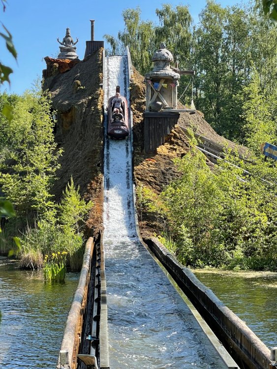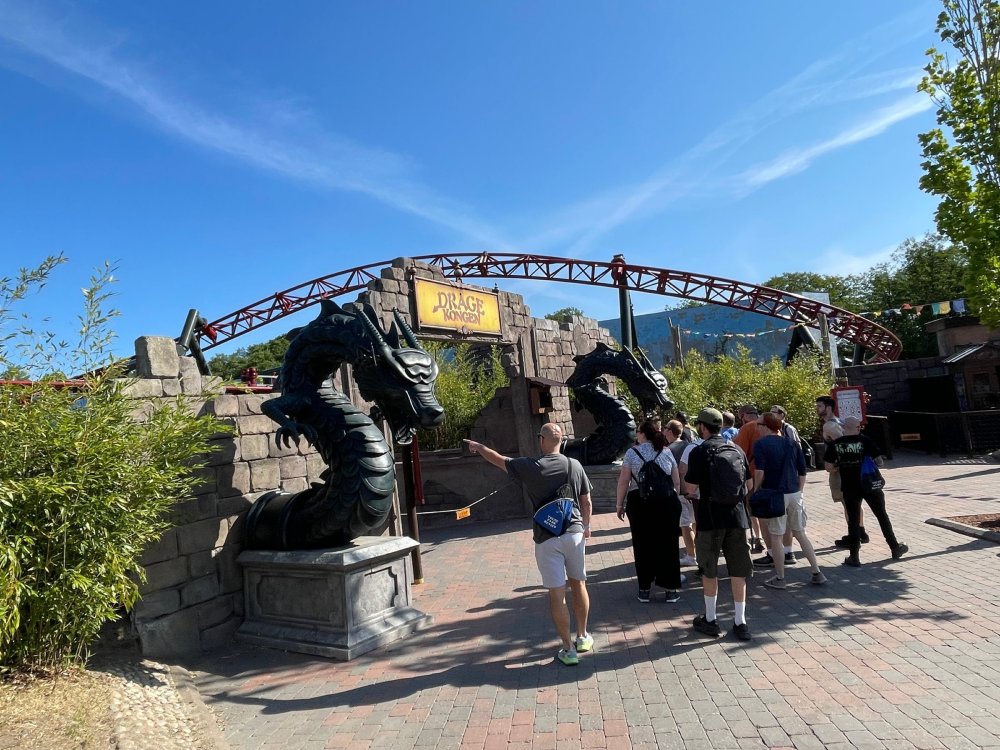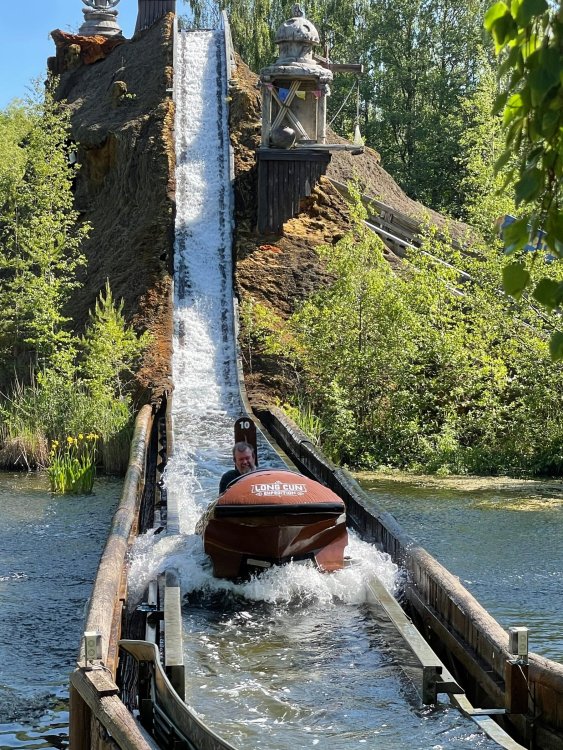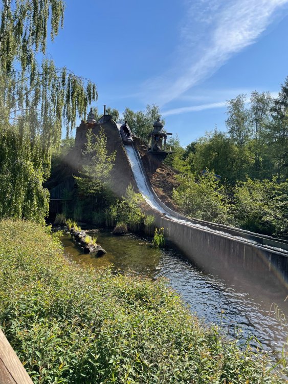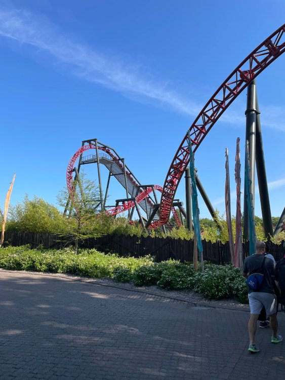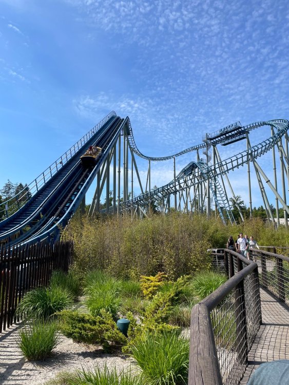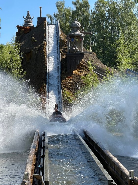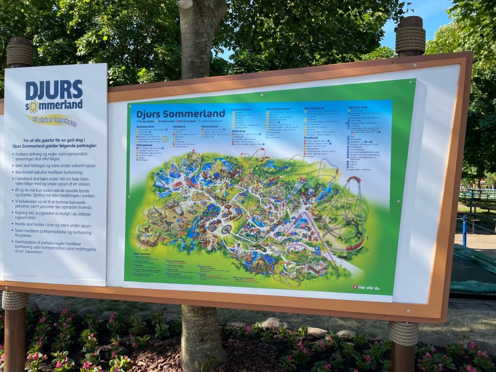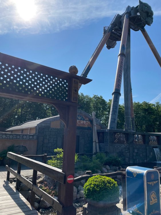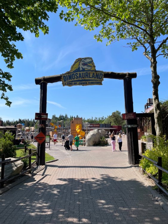 Day 8: Sat, June 10th part 1 (of 2): Djurs Sommerland Elissa had mentioned this one was among her favorite parks, and I totally understand! a wonderful combination of park, playground, and Amusement park, I absolutely loved this park (and the next Sommerland, Farup, we went to the next day for similar reasons) It really did feel a bit like we were out in the Countryside in Denmark. . but before I knew it, we were turning off the main road into Djurs Sommerland parking lot. walking up to the main gate from the lot we parked in, really felt like we were at Summer Camp group photo before we start off our day (courtesy of Robb) soon enough we were met by the park rep, and they brought us in for a walk back to the first of two coasters we were going to have ERT on before the park opened: Juvelen the park is just beautiful. . and i was very impressed with the theming in and around the kids area (or at least one of them - where many kids rides were centered) Park Map large open areas of park, for picnics, and yes, those are all trampolines! dozens of them all over this park. I believe this coaster we passed is Vilde Hønsejagt (Wild Chicken Hunt). . one of a couple of Junior/kiddie coasters in the park. and before we knew it (tho it was a bit of a walk - this is a very large park), we were standing in "MexicoLand" in front of Juvelen (Jewel) my impression of the logo. . . LOL for some reason, I don't seem to have ANY pics of this coaster itself - hopefully either Chuck or Erik got some of the ride itself - which is an Intamin multi-launch "straddle" coaster, where you're riding on 4x4's low and fast to the ground. it also had a pre-ride / dark ride show section before the first launch with some tribal chiefs sending you off on the search thru the jungle for the jewel (if I'm remembering correctly). I rode this multiple times during ERT this morning, but don't think I ever went back to ride it again - regardless of how good it was, as there is just too much to do at this park to do a lot of re-rides during the day. That might be why I never got a pic of the coaster itself? anyways. .here's a jewel from the queue line. . and the group picture (courtesy of Robb - tho yay, he's in this one, so the park rep must have taken it) before we moved on to the next coaster. before we headed across the park for the other morning ride, I snapped a pic of this "flying carpet" type flat in front of Juvelen I didn't ride this today, because - yes, those "idols" on the sides? got everyone wet! ah. .here, in this pic you can see SOME of Juvelen's green track. .. walking back across the park to the "Wild Asia" section. . . snapping pics as we walked. that's the giant pendulum type ride that replaced the Topple Tower this park used to have.. it's HUGE. . . Never in America. . no crossing arms, just a sign noting to look out for the train. this is where we were headed in "Wild Asia": DrageKongen (Dragon King), and Intamin suspended coaster tons of really cool theming over here in this section of the park. on the right here, is another Junior/Kiddie coaster, Jungle Rally (a Zierer) even the queue line here in the "Wild Asia" is heavily themed. . a fun ride, but not the most exciting in the park. I did enjoy it tho, and rode it a couple of times. a "Crazy Bus" type ride with Asian theming. . our two morning ERTs done, we were about to get cut loose in the park, when the rep offered to walk us over to "TIgeren" - the giant pendulum for a couple of rides if we wanted. of course! so most of us went to ride it - while the "non swinging/spinning" ride folks watched or took pics. the detailed theming continued over here, and I loved it. these pics are courtesy of Elissa (who stood under one side of the pendulum and took pictures straight up, while the group rode twice) man. .the arc of this is REALLY extreme. . nearly upside-down! LOVED this. on our 2nd cycle, the park had been opened, and so there were park guests joining us on the ride. cut loose to enjoy the park until lunch time, a good chunk of folks headed right next door to the log flume, called "Long Cun Expedition" oh. . did I mention I have a VERY juvenile sense of humor? tee-hee. Caroline & Barry Myself & Big Mike Daniel, Barry & Collin Didier - who was driving the TPR bus. . he had a blast too! Andy & Steve these pics, I think are courtesy of AJ ? (really appreciate that he captured these, it's great) the group I was walking around with then headed back a little bit to get a ride on Jungle Rally. . and found some other happy TPR-ers had also made that call hey. . no judgement! we rode it too since we were already "moist" from the flume - well. . most of us were. . .we decided to go ahead and ride the park's rapids ride, which is located in "WesternLand" not too wet for a rapids ride, but pretty heavily themed which was adorable.. little playgrounds litter this park too. . . the loading station is full of "animatronics" . . .so it's sorta a "dark ride" ? and they wore cute little "western" outfits. . . .(the staff styling was a little weird. .some sections of the park? the uniforms fit that section and were full on "costume". . but in other parts? the employees wore khakis and polos. . as noted, it was a little weird. Maybe in the middle of switching things up). he was thrilled I asked if I could take a pic of his outfit a bit young, but wow, look at the size of that gun!. . .LOL he was having a blast staying in "western" character. . .made the interaction with him so much more fun than just "how many?" and being seated. um. . ok. . only slightly ethnically insensitive. . . (and from what I understand, a pretty big improvement over some of the attractions that used to be in the park section called "AfricaLand") as you can tell. . we had fun riding . . staying in WesternLand. .they have this little set up where you can buy supplies, and either buy bread balls or makings of a Smore, and sit on the little horses around the campfire and cook them! We made note of this