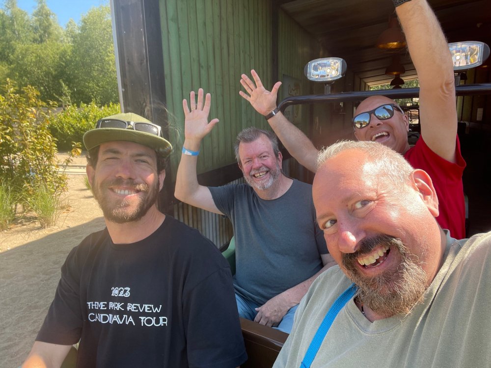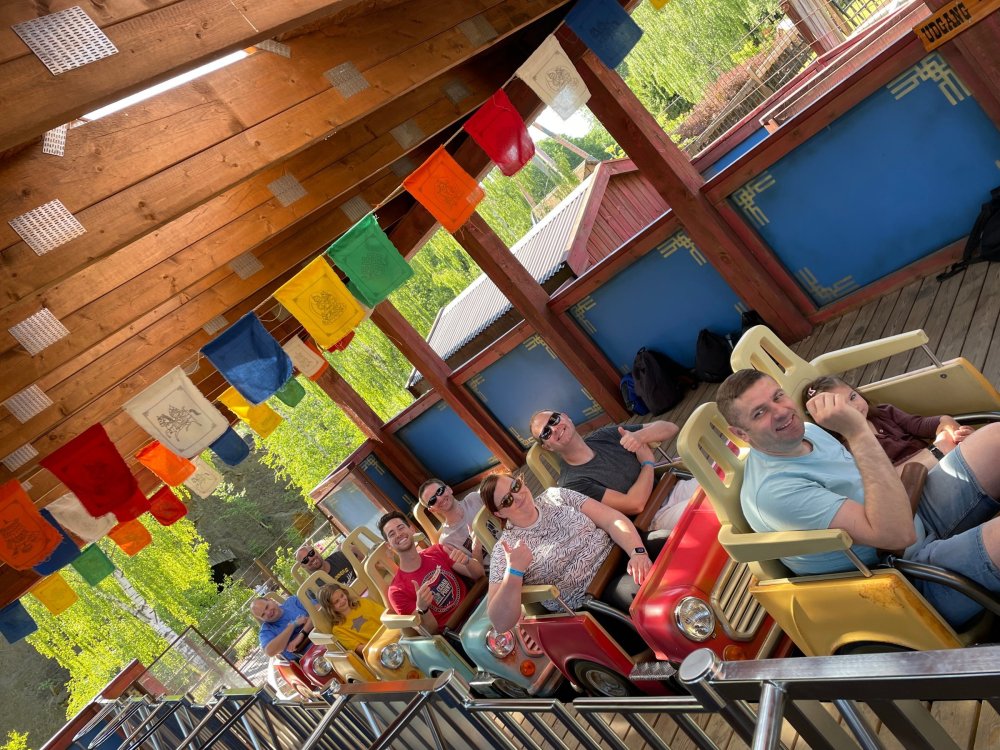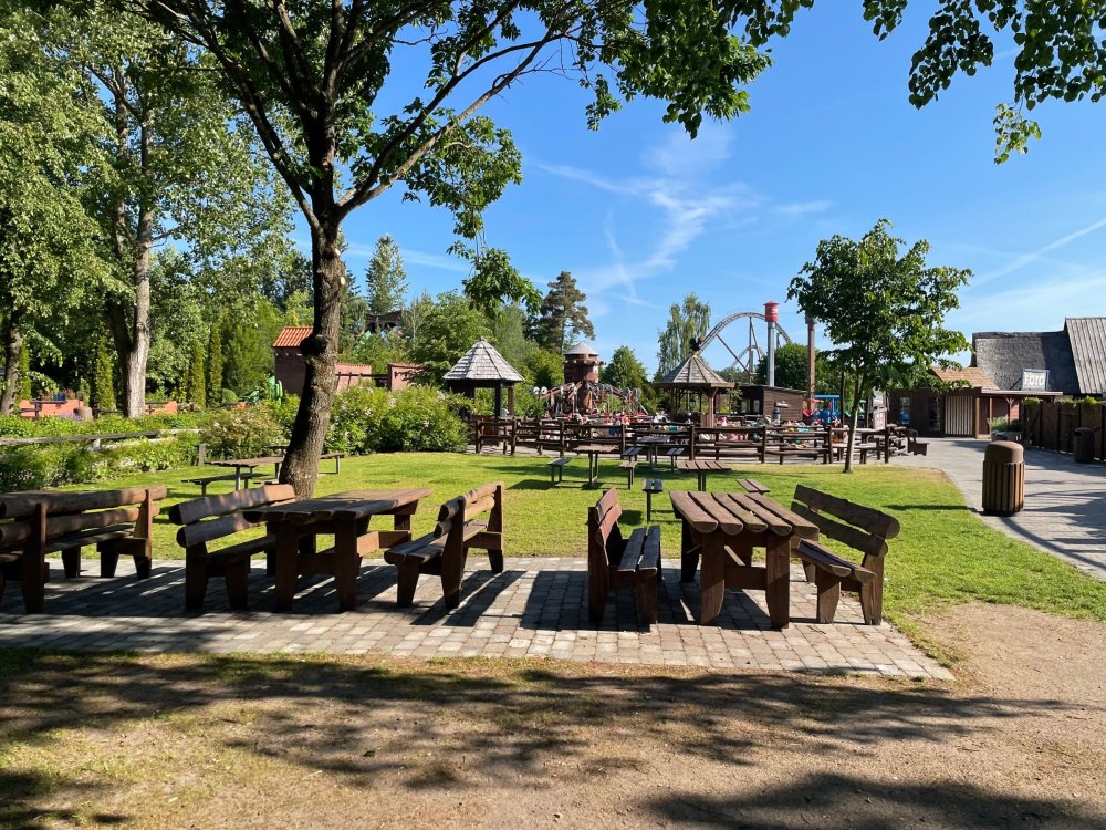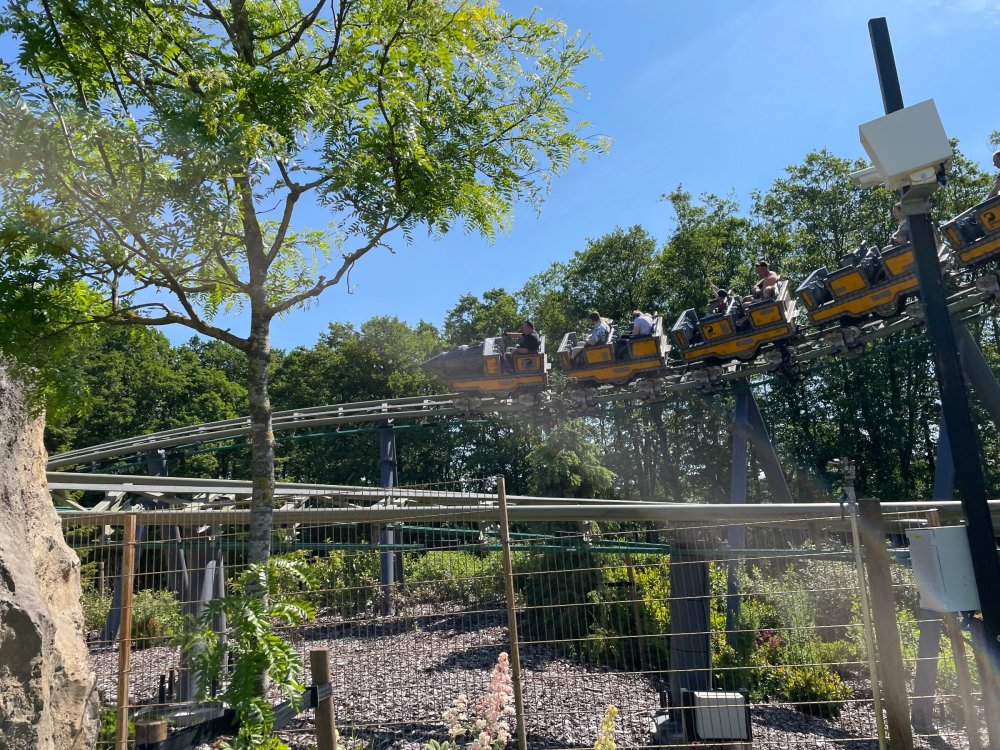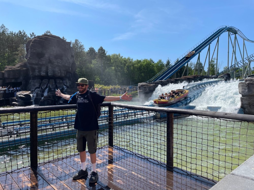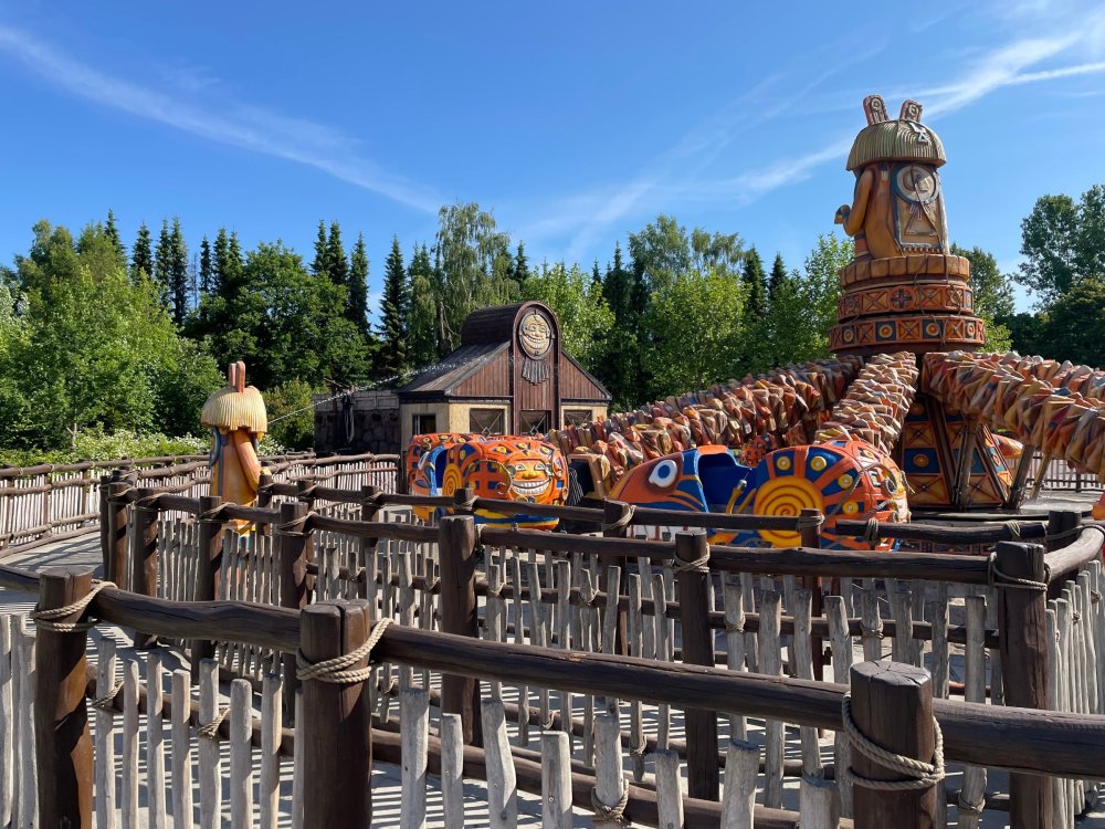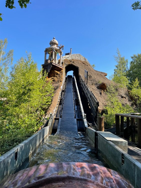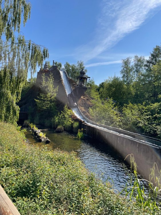 Day 8: Sat, June 10th part 1 (of 2): Djurs Sommerland Elissa had mentioned this one was among her favorite parks, and I totally understand! a wonderful combination of park, playground, and Amusement park, I absolutely loved this park (and the next Sommerland, Farup, we went to the next day for similar reasons) It really did feel a bit like we were out in the Countryside in Denmark. . but before I knew it, we were turning off the main road into Djurs Sommerland parking lot. walking up to the main gate from the lot we parked in, really felt like we were at Summer Camp group photo before we start off our day (courtesy of Robb) soon enough we were met by the park rep, and they brought us in for a walk back to the first of two coasters we were going to have ERT on before the park opened: Juvelen the park is just beautiful. . and i was very impressed with the theming in and around the kids area (or at least one of them - where many kids rides were centered) Park Map large open areas of park, for picnics, and yes, those are all trampolines! dozens of them all over this park. I believe this coaster we passed is Vilde Hønsejagt (Wild Chicken Hunt). . one of a couple of Junior/kiddie coasters in the park. and before we knew it (tho it was a bit of a walk - this is a very large park), we were standing in "MexicoLand" in front of Juvelen (Jewel) my impression of the logo. . . LOL for some reason, I don't seem to have ANY pics of this coaster itself - hopefully either Chuck or Erik got some of the ride itself - which is an Intamin multi-launch "straddle" coaster, where you're riding on 4x4's low and fast to the ground. it also had a pre-ride / dark ride show section before the first launch with some tribal chiefs sending you off on the search thru the jungle for the jewel (if I'm remembering correctly). I rode this multiple times during ERT this morning, but don't think I ever went back to ride it again - regardless of how good it was, as there is just too much to do at this park to do a lot of re-rides during the day. That might be why I never got a pic of the coaster itself? anyways. .here's a jewel from the queue line. . and the group picture (courtesy of Robb - tho yay, he's in this one, so the park rep must have taken it) before we moved on to the next coaster. before we headed across the park for the other morning ride, I snapped a pic of this "flying carpet" type flat in front of Juvelen I didn't ride this today, because - yes, those "idols" on the sides? got everyone wet! ah. .here, in this pic you can see SOME of Juvelen's green track. .. walking back across the park to the "Wild Asia" section. . . snapping pics as we walked. that's the giant pendulum type ride that replaced the Topple Tower this park used to have.. it's HUGE. . . Never in America. . no crossing arms, just a sign noting to look out for the train. this is where we were headed in "Wild Asia": DrageKongen (Dragon King), and Intamin suspended coaster tons of really cool theming over here in this section of the park. on the right here, is another Junior/Kiddie coaster, Jungle Rally (a Zierer) even the queue line here in the "Wild Asia" is heavily themed. . a fun ride, but not the most exciting in the park. I did enjoy it tho, and rode it a couple of times. a "Crazy Bus" type ride with Asian theming. . our two morning ERTs done, we were about to get cut loose in the park, when the rep offered to walk us over to "TIgeren" - the giant pendulum for a couple of rides if we wanted. of course! so most of us went to ride it - while the "non swinging/spinning" ride folks watched or took pics. the detailed theming continued over here, and I loved it. these pics are courtesy of Elissa (who stood under one side of the pendulum and took pictures straight up, while the group rode twice) man. .the arc of this is REALLY extreme. . nearly upside-down! LOVED this. on our 2nd cycle, the park had been opened, and so there were park guests joining us on the ride. cut loose to enjoy the park until lunch time, a good chunk of folks headed right next door to the log flume, called "Long Cun Expedition" oh. . did I mention I have a VERY juvenile sense of humor? tee-hee. Caroline & Barry Myself & Big Mike Daniel, Barry & Collin Didier - who was driving the TPR bus. . he had a blast too! Andy & Steve these pics, I think are courtesy of AJ ? (really appreciate that he captured these, it's great) the group I was walking around with then headed back a little bit to get a ride on Jungle Rally. . and found some other happy TPR-ers had also made that call hey. . no judgement! we rode it too since we were already "moist" from the flume - well. . most of us were. . .we decided to go ahead and ride the park's rapids ride, which is located in "WesternLand" not too wet for a rapids ride, but pretty heavily themed which was adorable.. little playgrounds litter this park too. . . the loading station is full of "animatronics" . . .so it's sorta a "dark ride" ? and they wore cute little "western" outfits. . . .(the staff styling was a little weird. .some sections of the park? the uniforms fit that section and were full on "costume". . but in other parts? the employees wore khakis and polos. . as noted, it was a little weird. Maybe in the middle of switching things up). he was thrilled I asked if I could take a pic of his outfit a bit young, but wow, look at the size of that gun!. . .LOL he was having a blast staying in "western" character. . .made the interaction with him so much more fun than just "how many?" and being seated. um. . ok. . only slightly ethnically insensitive. . . (and from what I understand, a pretty big improvement over some of the attractions that used to be in the park section called "AfricaLand") as you can tell. . we had fun riding . . staying in WesternLand. .they have this little set up where you can buy supplies, and either buy bread balls or makings of a Smore, and sit on the little horses around the campfire and cook them! We made note of this
