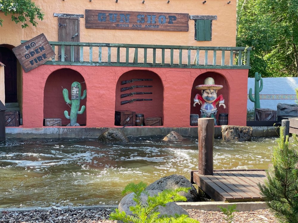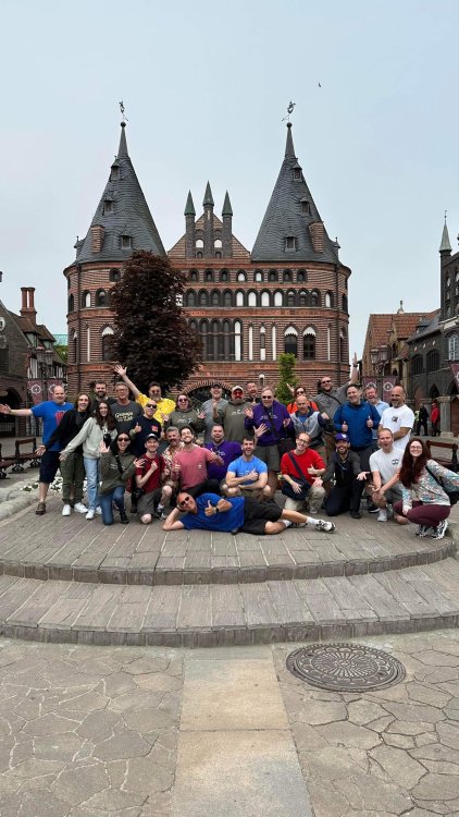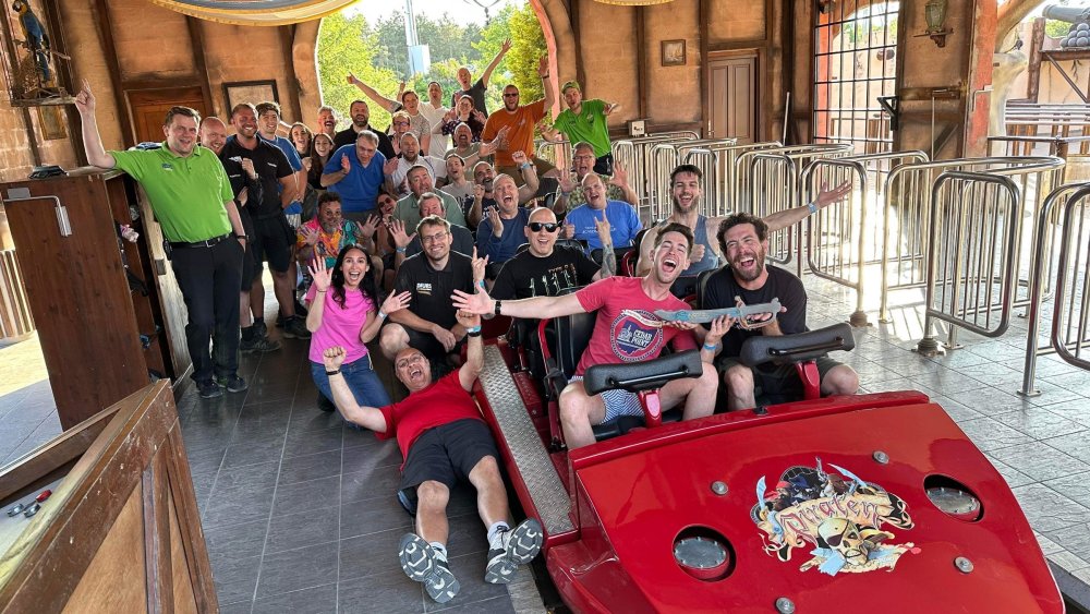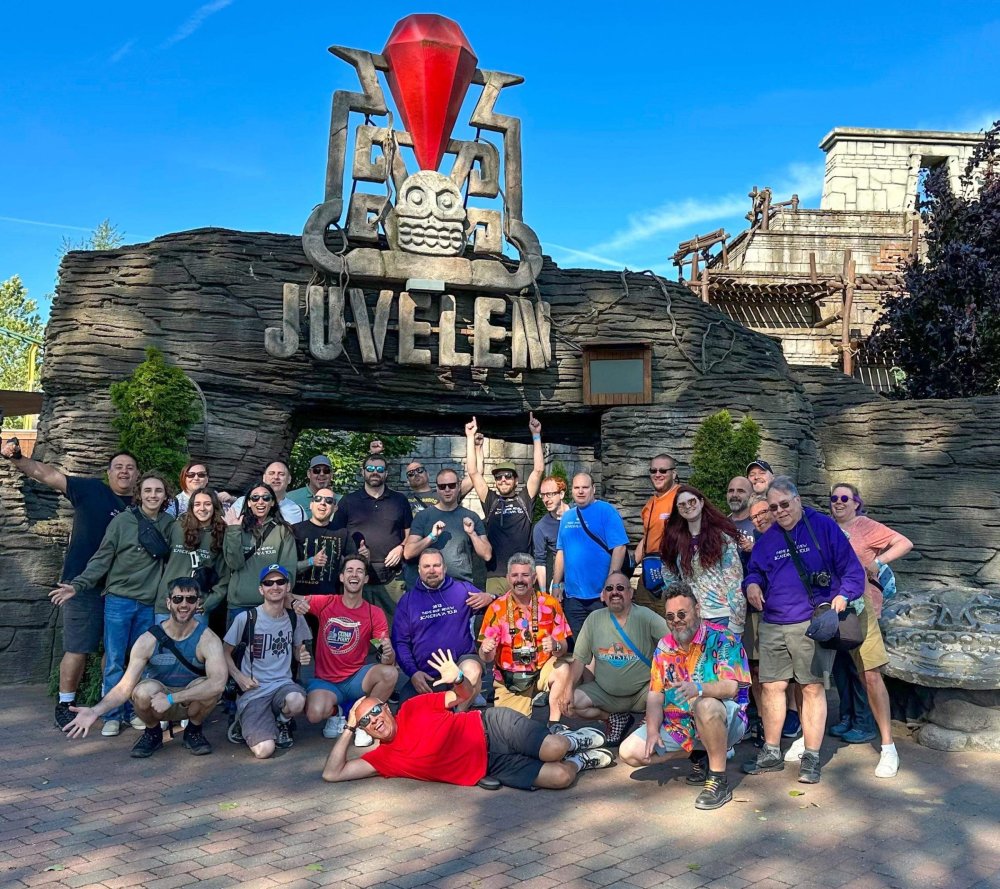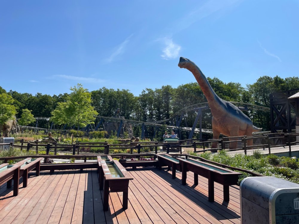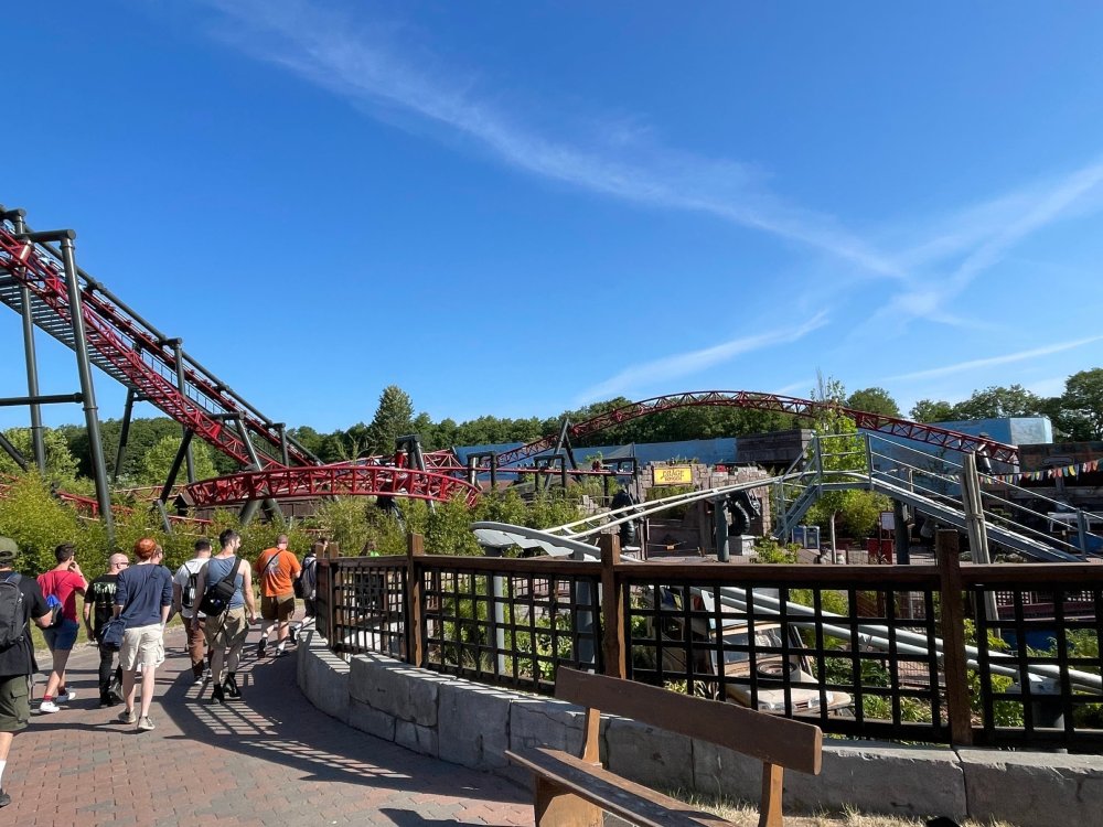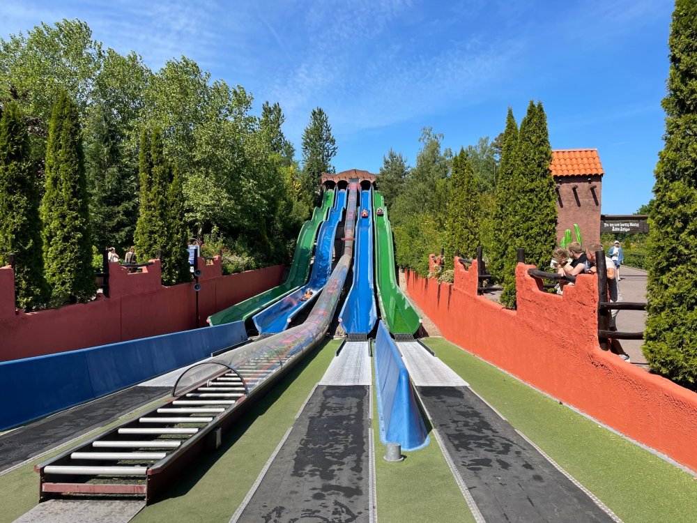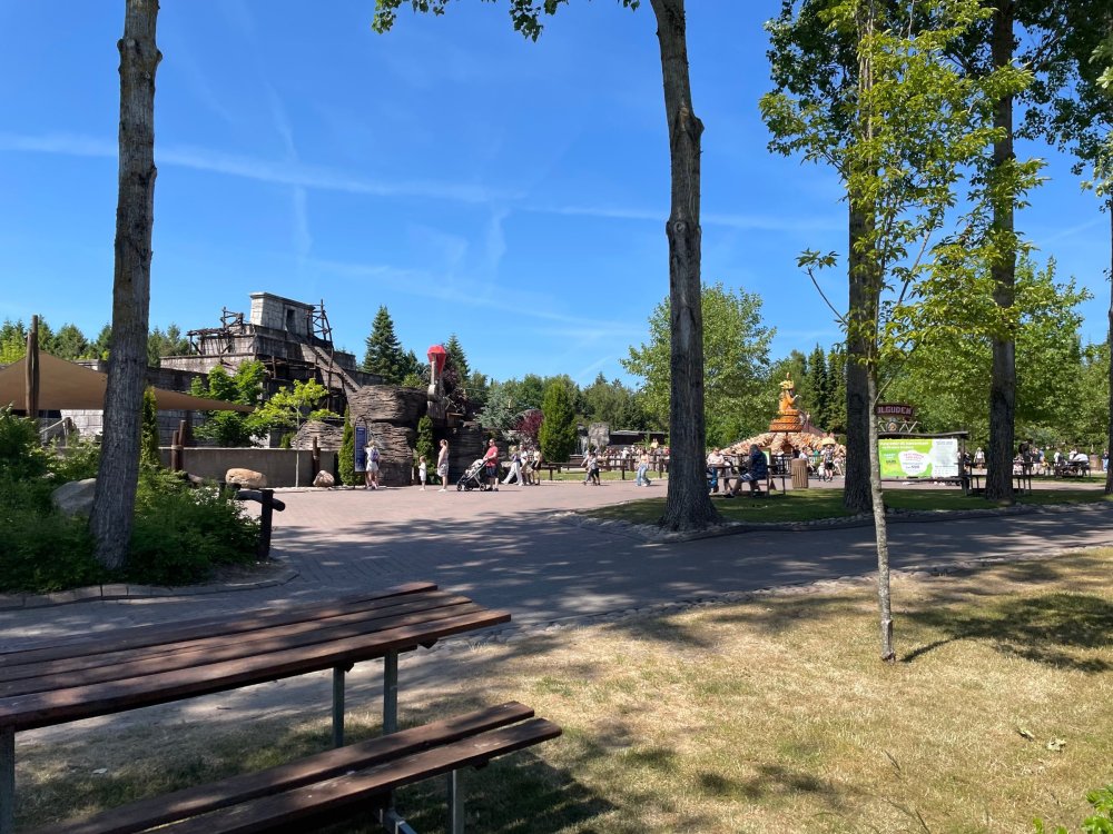 Day 8: Sat, June 10th part 1 (of 2): Djurs Sommerland Elissa had mentioned this one was among her favorite parks, and I totally understand! a wonderful combination of park, playground, and Amusement park, I absolutely loved this park (and the next Sommerland, Farup, we went to the next day for similar reasons) It really did feel a bit like we were out in the Countryside in Denmark. . but before I knew it, we were turning off the main road into Djurs Sommerland parking lot. walking up to the main gate from the lot we parked in, really felt like we were at Summer Camp group photo before we start off our day (courtesy of Robb) soon enough we were met by the park rep, and they brought us in for a walk back to the first of two coasters we were going to have ERT on before the park opened: Juvelen the park is just beautiful. . and i was very impressed with the theming in and around the kids area (or at least one of them - where many kids rides were centered) Park Map large open areas of park, for picnics, and yes, those are all trampolines! dozens of them all over this park. I believe this coaster we passed is Vilde Hønsejagt (Wild Chicken Hunt). . one of a couple of Junior/kiddie coasters in the park. and before we knew it (tho it was a bit of a walk - this is a very large park), we were standing in "MexicoLand" in front of Juvelen (Jewel) my impression of the logo. . . LOL for some reason, I don't seem to have ANY pics of this coaster itself - hopefully either Chuck or Erik got some of the ride itself - which is an Intamin multi-launch "straddle" coaster, where you're riding on 4x4's low and fast to the ground. it also had a pre-ride / dark ride show section before the first launch with some tribal chiefs sending you off on the search thru the jungle for the jewel (if I'm remembering correctly). I rode this multiple times during ERT this morning, but don't think I ever went back to ride it again - regardless of how good it was, as there is just too much to do at this park to do a lot of re-rides during the day. That might be why I never got a pic of the coaster itself? anyways. .here's a jewel from the queue line. . and the group picture (courtesy of Robb - tho yay, he's in this one, so the park rep must have taken it) before we moved on to the next coaster. before we headed across the park for the other morning ride, I snapped a pic of this "flying carpet" type flat in front of Juvelen I didn't ride this today, because - yes, those "idols" on the sides? got everyone wet! ah. .here, in this pic you can see SOME of Juvelen's green track. .. walking back across the park to the "Wild Asia" section. . . snapping pics as we walked. that's the giant pendulum type ride that replaced the Topple Tower this park used to have.. it's HUGE. . . Never in America. . no crossing arms, just a sign noting to look out for the train. this is where we were headed in "Wild Asia": DrageKongen (Dragon King), and Intamin suspended coaster tons of really cool theming over here in this section of the park. on the right here, is another Junior/Kiddie coaster, Jungle Rally (a Zierer) even the queue line here in the "Wild Asia" is heavily themed. . a fun ride, but not the most exciting in the park. I did enjoy it tho, and rode it a couple of times. a "Crazy Bus" type ride with Asian theming. . our two morning ERTs done, we were about to get cut loose in the park, when the rep offered to walk us over to "TIgeren" - the giant pendulum for a couple of rides if we wanted. of course! so most of us went to ride it - while the "non swinging/spinning" ride folks watched or took pics. the detailed theming continued over here, and I loved it. these pics are courtesy of Elissa (who stood under one side of the pendulum and took pictures straight up, while the group rode twice) man. .the arc of this is REALLY extreme. . nearly upside-down! LOVED this. on our 2nd cycle, the park had been opened, and so there were park guests joining us on the ride. cut loose to enjoy the park until lunch time, a good chunk of folks headed right next door to the log flume, called "Long Cun Expedition" oh. . did I mention I have a VERY juvenile sense of humor? tee-hee. Caroline & Barry Myself & Big Mike Daniel, Barry & Collin Didier - who was driving the TPR bus. . he had a blast too! Andy & Steve these pics, I think are courtesy of AJ ? (really appreciate that he captured these, it's great) the group I was walking around with then headed back a little bit to get a ride on Jungle Rally. . and found some other happy TPR-ers had also made that call hey. . no judgement! we rode it too since we were already "moist" from the flume - well. . most of us were. . .we decided to go ahead and ride the park's rapids ride, which is located in "WesternLand" not too wet for a rapids ride, but pretty heavily themed which was adorable.. little playgrounds litter this park too. . . the loading station is full of "animatronics" . . .so it's sorta a "dark ride" ? and they wore cute little "western" outfits. . . .(the staff styling was a little weird. .some sections of the park? the uniforms fit that section and were full on "costume". . but in other parts? the employees wore khakis and polos. . as noted, it was a little weird. Maybe in the middle of switching things up). he was thrilled I asked if I could take a pic of his outfit a bit young, but wow, look at the size of that gun!. . .LOL he was having a blast staying in "western" character. . .made the interaction with him so much more fun than just "how many?" and being seated. um. . ok. . only slightly ethnically insensitive. . . (and from what I understand, a pretty big improvement over some of the attractions that used to be in the park section called "AfricaLand") as you can tell. . we had fun riding . . staying in WesternLand. .they have this little set up where you can buy supplies, and either buy bread balls or makings of a Smore, and sit on the little horses around the campfire and cook them! We made note of this