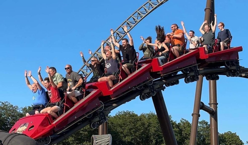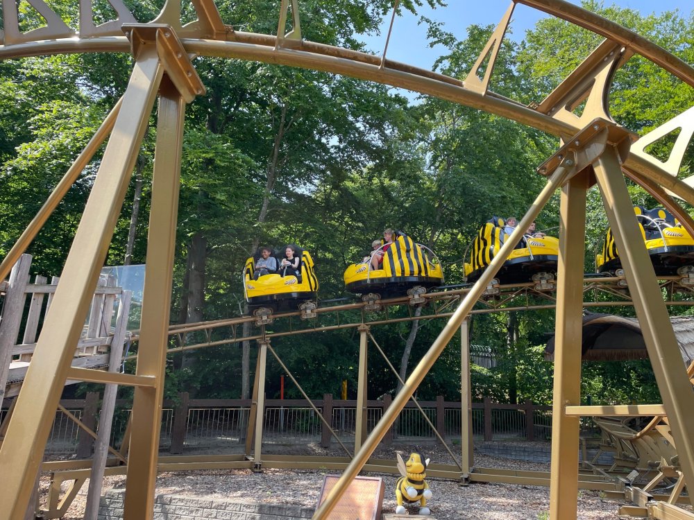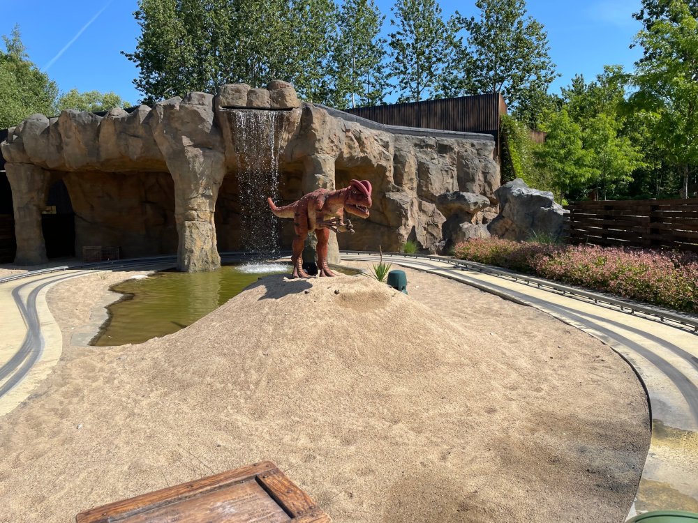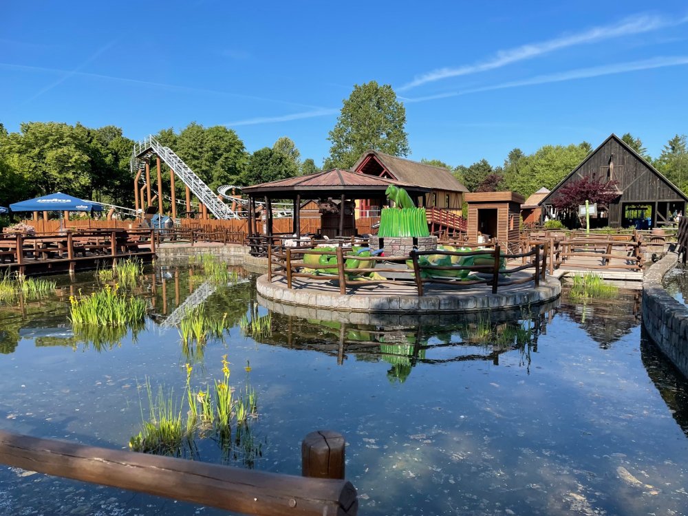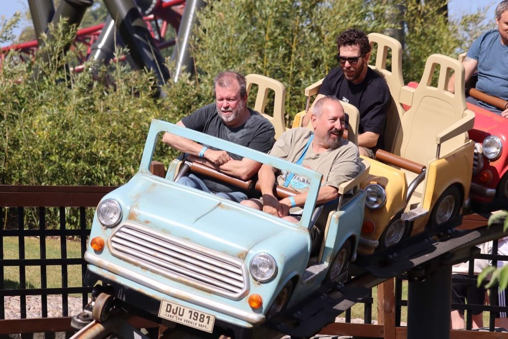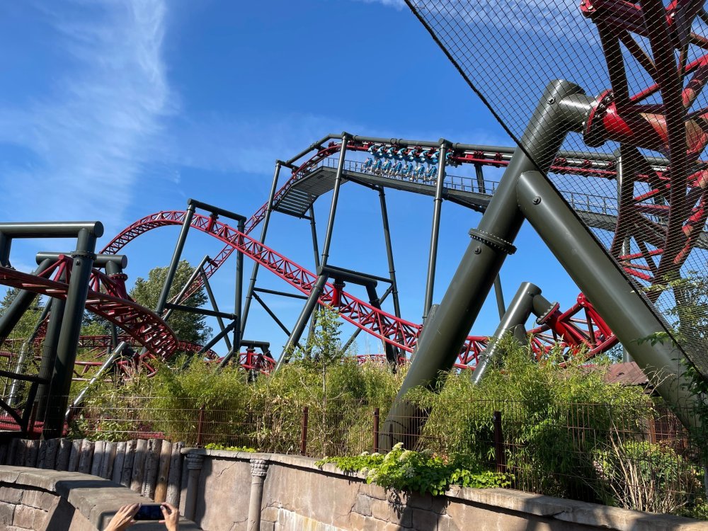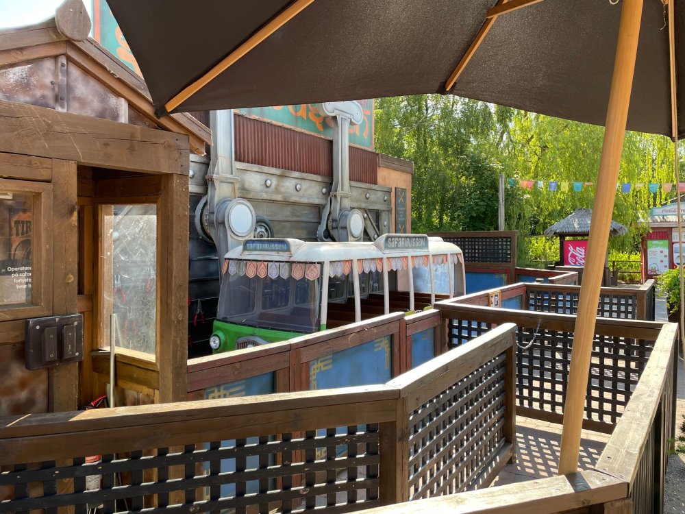 Day 8: Sat, June 10th part 1 (of 2): Djurs Sommerland Elissa had mentioned this one was among her favorite parks, and I totally understand! a wonderful combination of park, playground, and Amusement park, I absolutely loved this park (and the next Sommerland, Farup, we went to the next day for similar reasons) It really did feel a bit like we were out in the Countryside in Denmark. . but before I knew it, we were turning off the main road into Djurs Sommerland parking lot. walking up to the main gate from the lot we parked in, really felt like we were at Summer Camp group photo before we start off our day (courtesy of Robb) soon enough we were met by the park rep, and they brought us in for a walk back to the first of two coasters we were going to have ERT on before the park opened: Juvelen the park is just beautiful. . and i was very impressed with the theming in and around the kids area (or at least one of them - where many kids rides were centered) Park Map large open areas of park, for picnics, and yes, those are all trampolines! dozens of them all over this park. I believe this coaster we passed is Vilde Hønsejagt (Wild Chicken Hunt). . one of a couple of Junior/kiddie coasters in the park. and before we knew it (tho it was a bit of a walk - this is a very large park), we were standing in "MexicoLand" in front of Juvelen (Jewel) my impression of the logo. . . LOL for some reason, I don't seem to have ANY pics of this coaster itself - hopefully either Chuck or Erik got some of the ride itself - which is an Intamin multi-launch "straddle" coaster, where you're riding on 4x4's low and fast to the ground. it also had a pre-ride / dark ride show section before the first launch with some tribal chiefs sending you off on the search thru the jungle for the jewel (if I'm remembering correctly). I rode this multiple times during ERT this morning, but don't think I ever went back to ride it again - regardless of how good it was, as there is just too much to do at this park to do a lot of re-rides during the day. That might be why I never got a pic of the coaster itself? anyways. .here's a jewel from the queue line. . and the group picture (courtesy of Robb - tho yay, he's in this one, so the park rep must have taken it) before we moved on to the next coaster. before we headed across the park for the other morning ride, I snapped a pic of this "flying carpet" type flat in front of Juvelen I didn't ride this today, because - yes, those "idols" on the sides? got everyone wet! ah. .here, in this pic you can see SOME of Juvelen's green track. .. walking back across the park to the "Wild Asia" section. . . snapping pics as we walked. that's the giant pendulum type ride that replaced the Topple Tower this park used to have.. it's HUGE. . . Never in America. . no crossing arms, just a sign noting to look out for the train. this is where we were headed in "Wild Asia": DrageKongen (Dragon King), and Intamin suspended coaster tons of really cool theming over here in this section of the park. on the right here, is another Junior/Kiddie coaster, Jungle Rally (a Zierer) even the queue line here in the "Wild Asia" is heavily themed. . a fun ride, but not the most exciting in the park. I did enjoy it tho, and rode it a couple of times. a "Crazy Bus" type ride with Asian theming. . our two morning ERTs done, we were about to get cut loose in the park, when the rep offered to walk us over to "TIgeren" - the giant pendulum for a couple of rides if we wanted. of course! so most of us went to ride it - while the "non swinging/spinning" ride folks watched or took pics. the detailed theming continued over here, and I loved it. these pics are courtesy of Elissa (who stood under one side of the pendulum and took pictures straight up, while the group rode twice) man. .the arc of this is REALLY extreme. . nearly upside-down! LOVED this. on our 2nd cycle, the park had been opened, and so there were park guests joining us on the ride. cut loose to enjoy the park until lunch time, a good chunk of folks headed right next door to the log flume, called "Long Cun Expedition" oh. . did I mention I have a VERY juvenile sense of humor? tee-hee. Caroline & Barry Myself & Big Mike Daniel, Barry & Collin Didier - who was driving the TPR bus. . he had a blast too! Andy & Steve these pics, I think are courtesy of AJ ? (really appreciate that he captured these, it's great) the group I was walking around with then headed back a little bit to get a ride on Jungle Rally. . and found some other happy TPR-ers had also made that call hey. . no judgement! we rode it too since we were already "moist" from the flume - well. . most of us were. . .we decided to go ahead and ride the park's rapids ride, which is located in "WesternLand" not too wet for a rapids ride, but pretty heavily themed which was adorable.. little playgrounds litter this park too. . . the loading station is full of "animatronics" . . .so it's sorta a "dark ride" ? and they wore cute little "western" outfits. . . .(the staff styling was a little weird. .some sections of the park? the uniforms fit that section and were full on "costume". . but in other parts? the employees wore khakis and polos. . as noted, it was a little weird. Maybe in the middle of switching things up). he was thrilled I asked if I could take a pic of his outfit a bit young, but wow, look at the size of that gun!. . .LOL he was having a blast staying in "western" character. . .made the interaction with him so much more fun than just "how many?" and being seated. um. . ok. . only slightly ethnically insensitive. . . (and from what I understand, a pretty big improvement over some of the attractions that used to be in the park section called "AfricaLand") as you can tell. . we had fun riding . . staying in WesternLand. .they have this little set up where you can buy supplies, and either buy bread balls or makings of a Smore, and sit on the little horses around the campfire and cook them! We made note of this