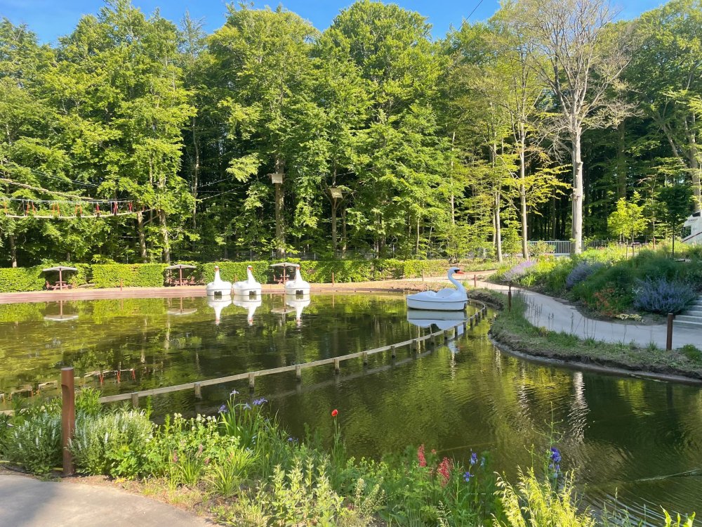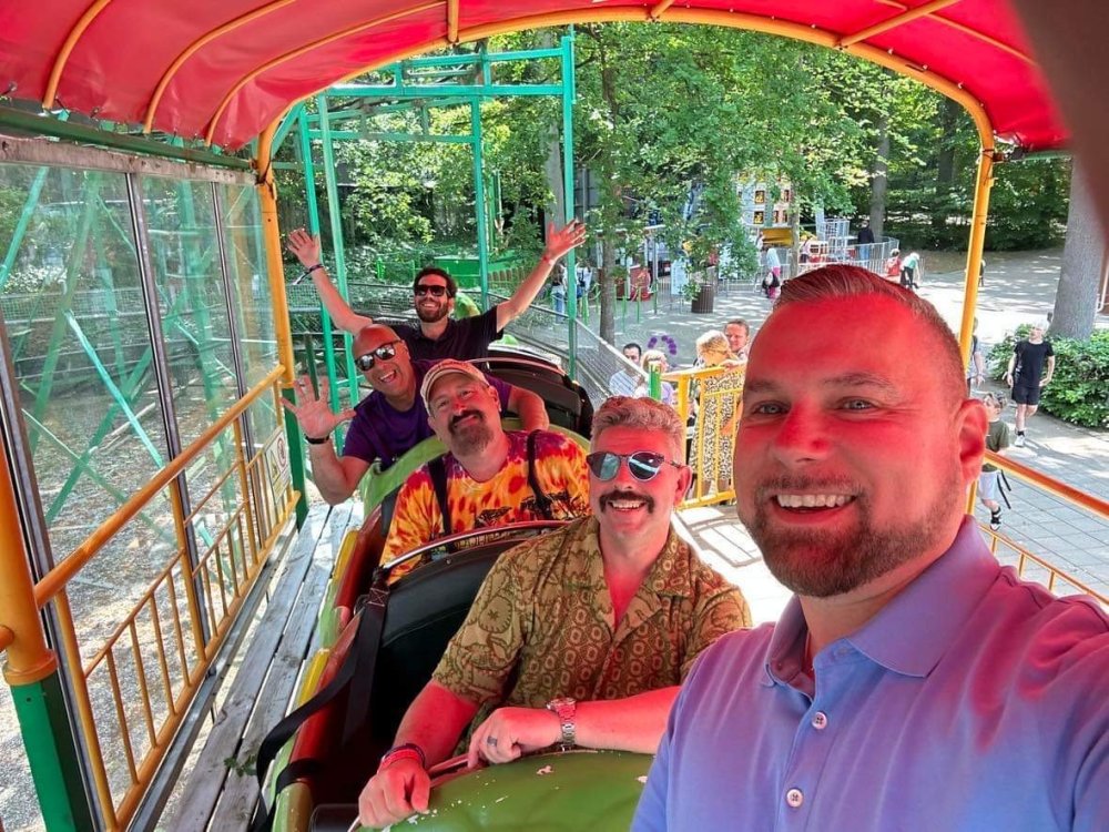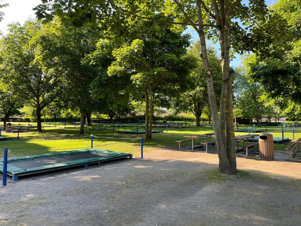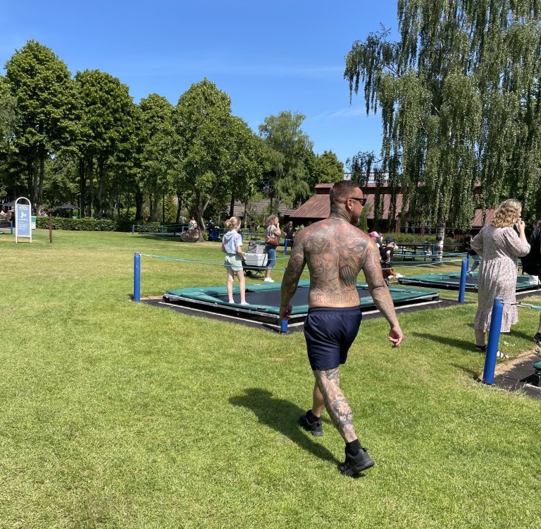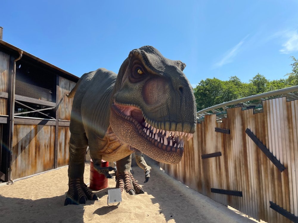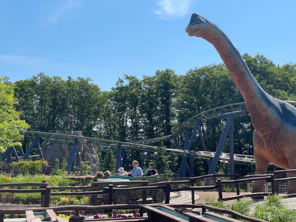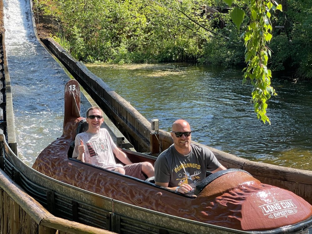 Day 8: Sat, June 10th part 1 (of 2): Djurs Sommerland Elissa had mentioned this one was among her favorite parks, and I totally understand! a wonderful combination of park, playground, and Amusement park, I absolutely loved this park (and the next Sommerland, Farup, we went to the next day for similar reasons) It really did feel a bit like we were out in the Countryside in Denmark. . but before I knew it, we were turning off the main road into Djurs Sommerland parking lot. walking up to the main gate from the lot we parked in, really felt like we were at Summer Camp group photo before we start off our day (courtesy of Robb) soon enough we were met by the park rep, and they brought us in for a walk back to the first of two coasters we were going to have ERT on before the park opened: Juvelen the park is just beautiful. . and i was very impressed with the theming in and around the kids area (or at least one of them - where many kids rides were centered) Park Map large open areas of park, for picnics, and yes, those are all trampolines! dozens of them all over this park. I believe this coaster we passed is Vilde Hønsejagt (Wild Chicken Hunt). . one of a couple of Junior/kiddie coasters in the park. and before we knew it (tho it was a bit of a walk - this is a very large park), we were standing in "MexicoLand" in front of Juvelen (Jewel) my impression of the logo. . . LOL for some reason, I don't seem to have ANY pics of this coaster itself - hopefully either Chuck or Erik got some of the ride itself - which is an Intamin multi-launch "straddle" coaster, where you're riding on 4x4's low and fast to the ground. it also had a pre-ride / dark ride show section before the first launch with some tribal chiefs sending you off on the search thru the jungle for the jewel (if I'm remembering correctly). I rode this multiple times during ERT this morning, but don't think I ever went back to ride it again - regardless of how good it was, as there is just too much to do at this park to do a lot of re-rides during the day. That might be why I never got a pic of the coaster itself? anyways. .here's a jewel from the queue line. . and the group picture (courtesy of Robb - tho yay, he's in this one, so the park rep must have taken it) before we moved on to the next coaster. before we headed across the park for the other morning ride, I snapped a pic of this "flying carpet" type flat in front of Juvelen I didn't ride this today, because - yes, those "idols" on the sides? got everyone wet! ah. .here, in this pic you can see SOME of Juvelen's green track. .. walking back across the park to the "Wild Asia" section. . . snapping pics as we walked. that's the giant pendulum type ride that replaced the Topple Tower this park used to have.. it's HUGE. . . Never in America. . no crossing arms, just a sign noting to look out for the train. this is where we were headed in "Wild Asia": DrageKongen (Dragon King), and Intamin suspended coaster tons of really cool theming over here in this section of the park. on the right here, is another Junior/Kiddie coaster, Jungle Rally (a Zierer) even the queue line here in the "Wild Asia" is heavily themed. . a fun ride, but not the most exciting in the park. I did enjoy it tho, and rode it a couple of times. a "Crazy Bus" type ride with Asian theming. . our two morning ERTs done, we were about to get cut loose in the park, when the rep offered to walk us over to "TIgeren" - the giant pendulum for a couple of rides if we wanted. of course! so most of us went to ride it - while the "non swinging/spinning" ride folks watched or took pics. the detailed theming continued over here, and I loved it. these pics are courtesy of Elissa (who stood under one side of the pendulum and took pictures straight up, while the group rode twice) man. .the arc of this is REALLY extreme. . nearly upside-down! LOVED this. on our 2nd cycle, the park had been opened, and so there were park guests joining us on the ride. cut loose to enjoy the park until lunch time, a good chunk of folks headed right next door to the log flume, called "Long Cun Expedition" oh. . did I mention I have a VERY juvenile sense of humor? tee-hee. Caroline & Barry Myself & Big Mike Daniel, Barry & Collin Didier - who was driving the TPR bus. . he had a blast too! Andy & Steve these pics, I think are courtesy of AJ ? (really appreciate that he captured these, it's great) the group I was walking around with then headed back a little bit to get a ride on Jungle Rally. . and found some other happy TPR-ers had also made that call hey. . no judgement! we rode it too since we were already "moist" from the flume - well. . most of us were. . .we decided to go ahead and ride the park's rapids ride, which is located in "WesternLand" not too wet for a rapids ride, but pretty heavily themed which was adorable.. little playgrounds litter this park too. . . the loading station is full of "animatronics" . . .so it's sorta a "dark ride" ? and they wore cute little "western" outfits. . . .(the staff styling was a little weird. .some sections of the park? the uniforms fit that section and were full on "costume". . but in other parts? the employees wore khakis and polos. . as noted, it was a little weird. Maybe in the middle of switching things up). he was thrilled I asked if I could take a pic of his outfit a bit young, but wow, look at the size of that gun!. . .LOL he was having a blast staying in "western" character. . .made the interaction with him so much more fun than just "how many?" and being seated. um. . ok. . only slightly ethnically insensitive. . . (and from what I understand, a pretty big improvement over some of the attractions that used to be in the park section called "AfricaLand") as you can tell. . we had fun riding . . staying in WesternLand. .they have this little set up where you can buy supplies, and either buy bread balls or makings of a Smore, and sit on the little horses around the campfire and cook them! We made note of this