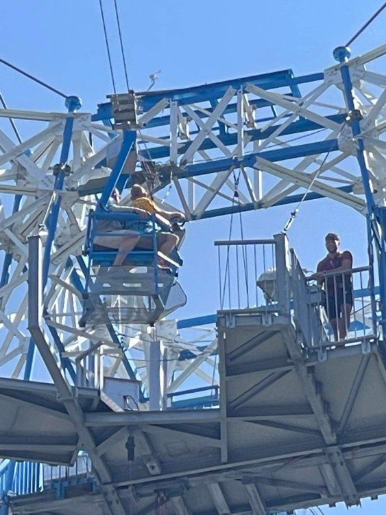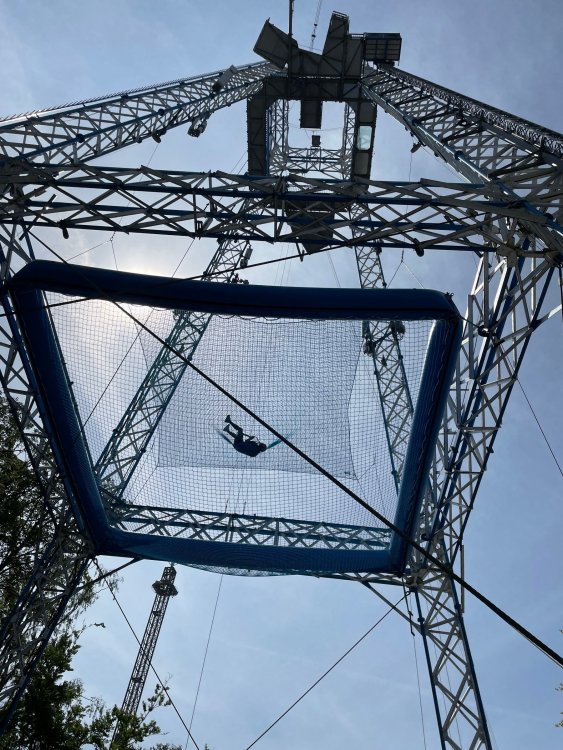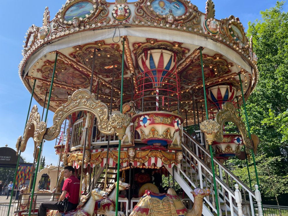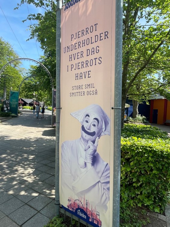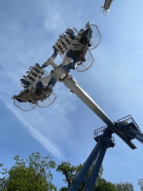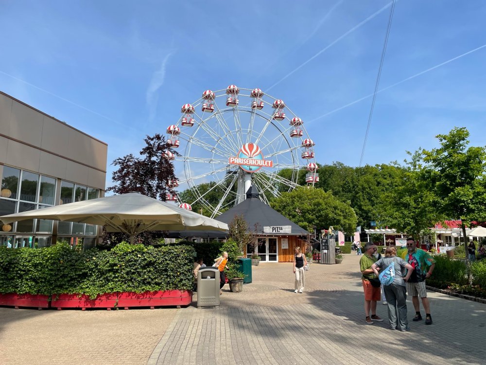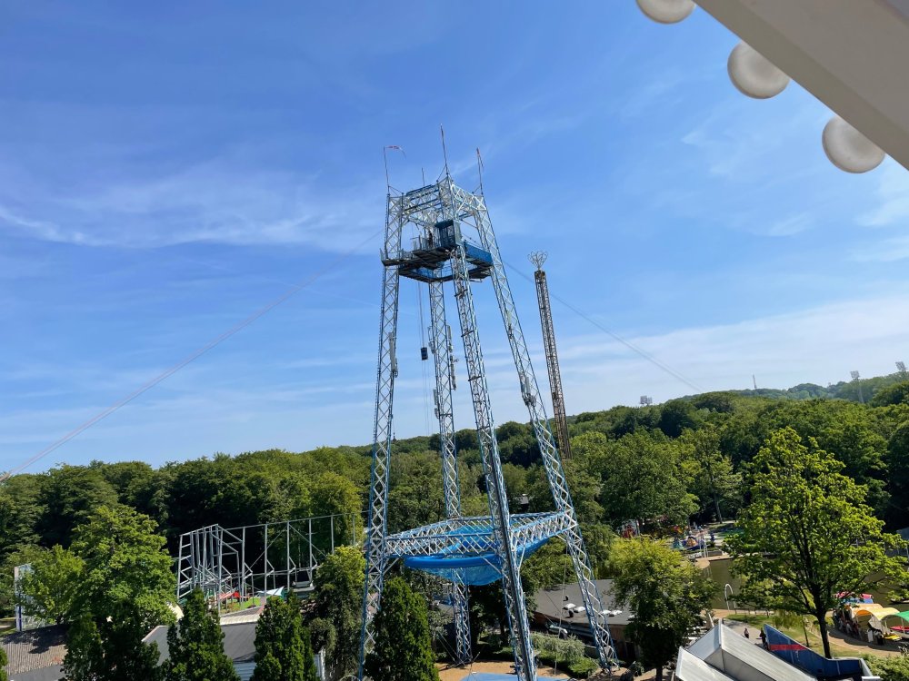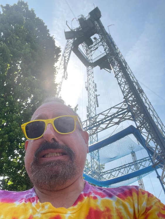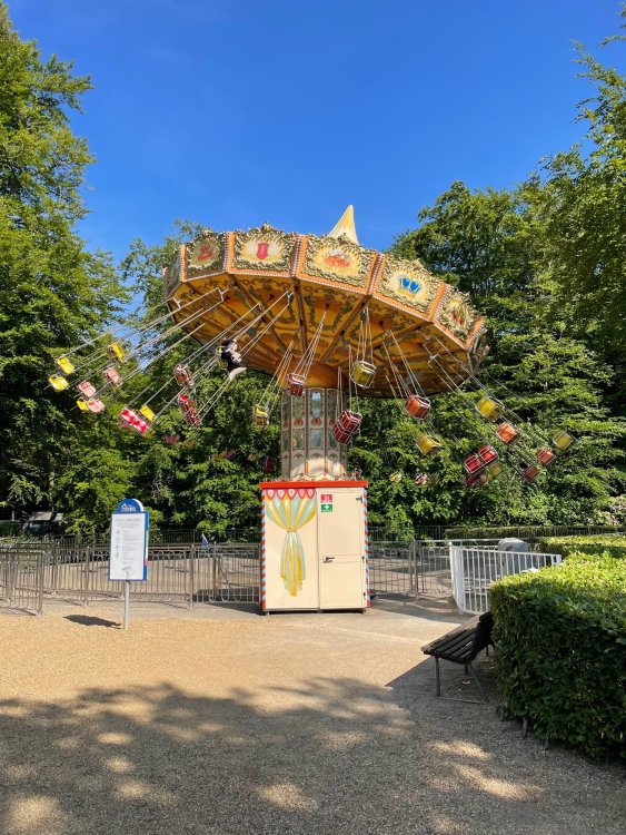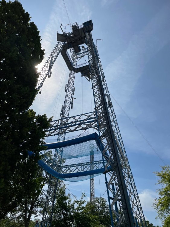 Day 7, June 9th part 1: Tivoli Friheden. getting up early, I took advantage of the nearby Starbucks machine in the gas station and walked over to get coffee, snapping a pic of the front of our hotel. (it looks like an office building outside too. . . . I liked it, very no frills, but comfortable) ok.. NOW I'm ready for the day. I was psyching myself up. why? you'll see. very quiet in the morning in Arhus . . with a lovely church closeby - tho the one time I tried to go take some pics of it, as Big Mike and I got closer to it, we discovered that there was a Casket being unloaded and seemed tacky to take pics during a funeral. (I think I might have some closer shots of it on another day tho). walking back to the Hotel, to get ready for the bus this morning. . we were headed to a smaller park today, Tivoli Friheden, in Arhus Denmark. the "big" reason we were coming here? that tower in the background of the prior pic, and this one below. the last operating SCAD tower in the world. SCAD = Suspended Catch Air Device Tower. and I'm terrified of Heights. yeah. hence the need for coffee this morning. for a smaller park, they do have a lot of rides, tho other than the SCAD tower, nothing really "extreme". . more family thrill stuff. very cute logo tho. Us, along with some school kids (I think?) got entry early and we headed directly for the tower. passing a very nice two tier carousel and a decent ferris wheel. for some reason the Pizza place (called PIT.sa - yeah. .I dunno, but it works, LOL) had Carousel Horses on it's sign. Wasn't super crowded when we went there to eat lunch later. A surprise, as the park was full of school kids. but it made for a nice quiet meal later. Standing at the base of the tower, I started to have some doubts. not everyone was going to ride it.. so there was no shame in backing out. But I had PROMISED myself that I was going to do things I'd be scared to do. My spouse dying suddenly showed me life is short, and there are no guarantees. . so I was determined to ride it - if I could. you see, they have a weight limit - minimum AND a maximum. and they put you on a scale to make sure you fall in that range. I had an out if I was too heavy. . but I actually was a good amount below the top weight. . so I was gonna force myself. tho probably shouldn't have watched the first couple of folks go. . . . when it was my turn, we got suited up - complete with a hard "shell" attached to our backs. here's Steve and I. . . yeah. . look how "confident" I am. (think these pics are courtesy of AJ ?) then they put you into a tiny elevator, and bring you all the way up to the top. here's Jon watching us up there.. he stayed on the ground. smart man. thanks to Elissa (this video) and Robb (the next video). . . my turn is documented from the bottom of the tower, and the top. yes. . I'm quiet. I honestly, was too terrified to scream. I think some folks lost money, if they bet I was gonna be loud. VNSD3606.MOV GEGI8065.MOV but I did it.. my legs were shaky, but I managed to "gracefully" get out of the net at the bottom. and was shocked that I did it. and then immediately broke down crying the moment I had all the gear off. . . . yeah. but I DID it! once i got myself all composed again? I rewarded myself with Ice Cream while watching everyone else who wanted to go, take a turn (the elevator only carries 5-6 people at a time, so it was small groups). and then we were given lunch vouchers, and let loose to do what we wished in the park. as not a huge park, with no really extreme coasters, it was an excellent opportunity to spend just half a day here, and then take in some local sights/museums. . as there are lovely canals and architecture here in the city. this is one of the 3 coasters in the park: Tyfonen - a spinning wild mouse. (or is it called Spiseriet ? I didn't see the Tyfonen naming on the outside of this ride) (the park used to have a Suspended looping coaster - extreme - but after some injuries / deaths, the park removed it last year. . tho the ride pad is still there, now with some "jumping" playground stuff there. and they did just announce a decent sized new coaster will be coming in 2024. . I'd assume in that spot) Here's Jonathan, myself and Ian after we finished spinning. . pic, I think, courtesy of Jon? you are EVIL. . I did you once. . never again. . . . well. . not in the same way, I guess. . . Somehow I didn't get a pic of the outside of this ride, but it just cracked me up. at one point it clearly was a haunted house ride thru. then they apparently decided to make it like Resident Evil with Zombies among the haunted house. . oh, and make it a shooting ride. in 3D - which didn't work that well (think un-maintained Six Flags Level). I mean, if you're going to SHOOT, might as well be fully immersive and make the riders cops. well. . we can slap "Police" on the side of the ride vehicle.. that makes it fully immersive, right? it was so hysterically awful. . with the vast majority of the 4 3D screens being blurry messes, even with the glasses on - that made everything else so dark, so the remaining practical effects that were NOT part of the shooting became really hard to see. and for some reason the "scorboard" at the load station, not at the exit. very pointless. . but funny to ride (once) for the "what the F did I just ride?" quality. I mean. . look at the front of that vehicle. It's a POLICE CAR, I tell ya!!! this is another of the rides I forced myself to get on. . I was terrified of it, and this is really the only other "thrill ride" in the park. heck..it's in the park logo, showing it going almost upside-down with free spinning seats. But I took a deep breath and got on it. and it ran a SUPER gentle program. these pics are really as high as it went, and the seats did not free spin (I asked the op about it when he was uncuffing us, and he said the seats hadn't flipped in a while, they stopped doing that). I have to wonder if it ran a more gentle program because of all the kids