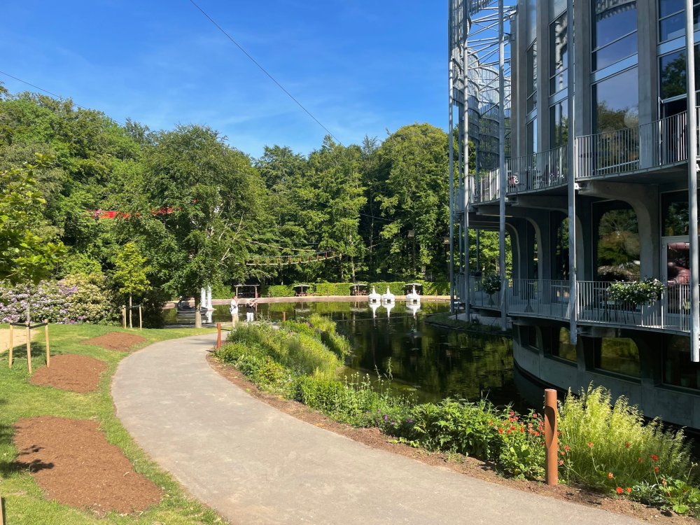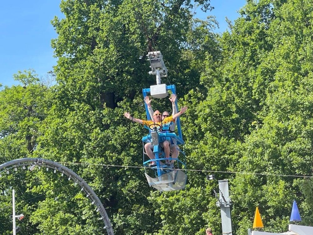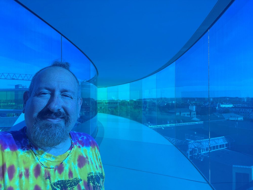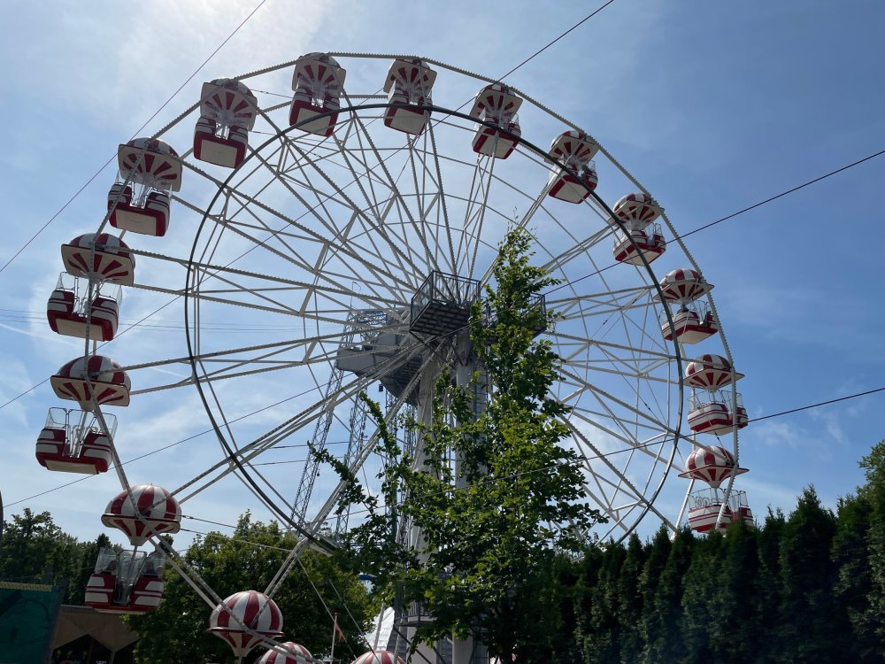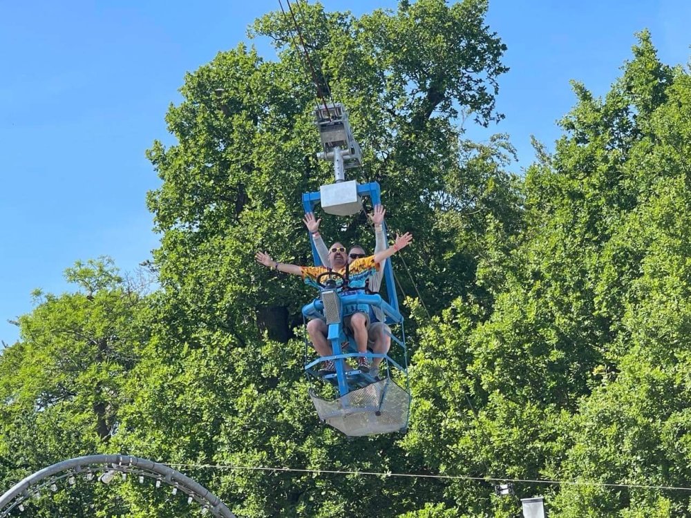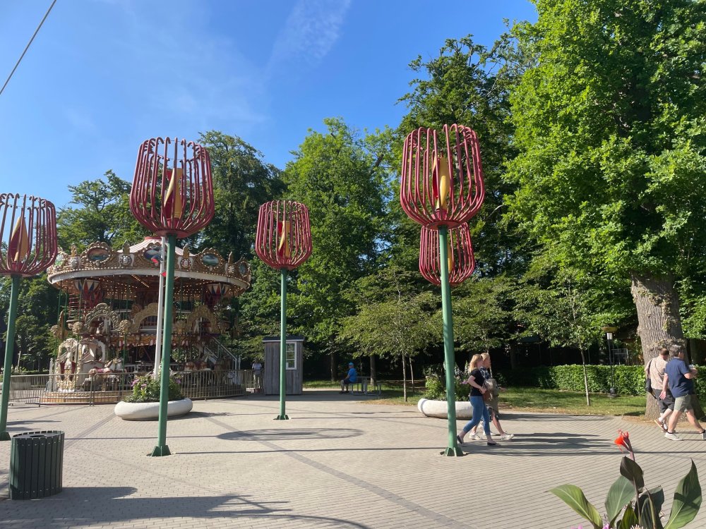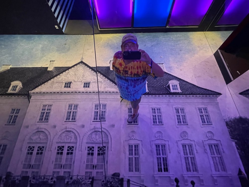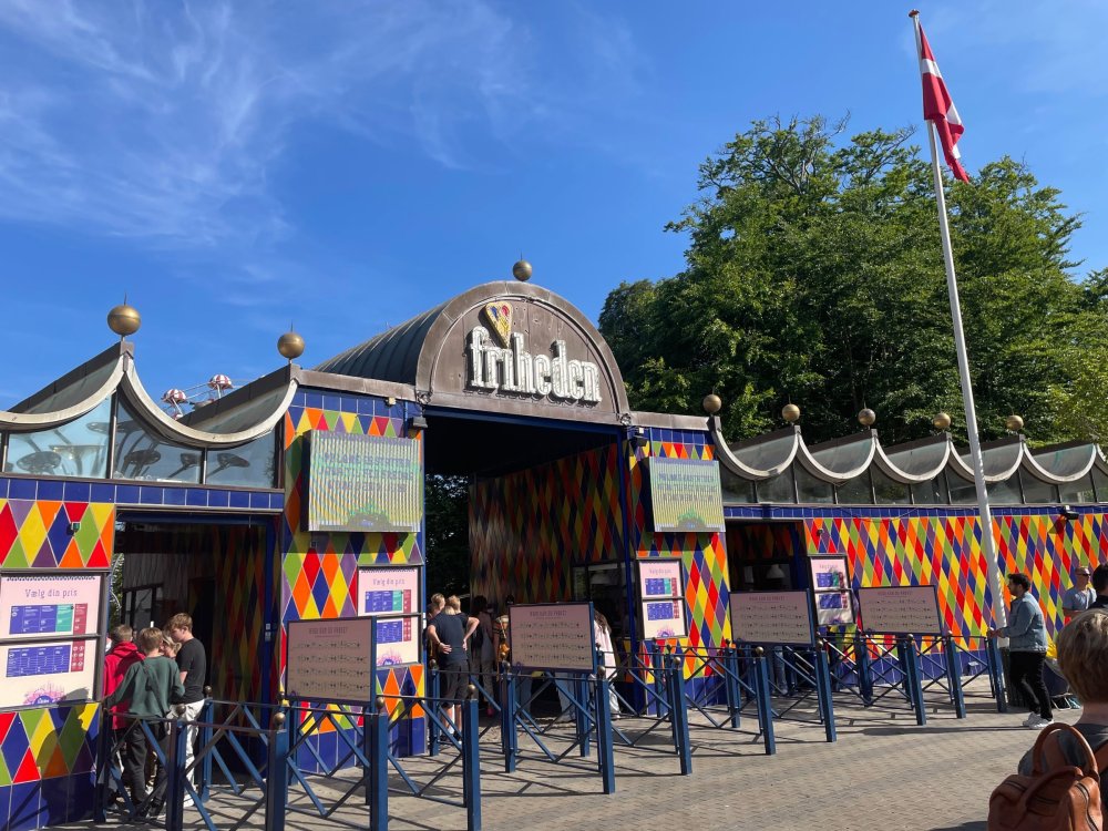 Day 7, June 9th part 1: Tivoli Friheden. getting up early, I took advantage of the nearby Starbucks machine in the gas station and walked over to get coffee, snapping a pic of the front of our hotel. (it looks like an office building outside too. . . . I liked it, very no frills, but comfortable) ok.. NOW I'm ready for the day. I was psyching myself up. why? you'll see. very quiet in the morning in Arhus . . with a lovely church closeby - tho the one time I tried to go take some pics of it, as Big Mike and I got closer to it, we discovered that there was a Casket being unloaded and seemed tacky to take pics during a funeral. (I think I might have some closer shots of it on another day tho). walking back to the Hotel, to get ready for the bus this morning. . we were headed to a smaller park today, Tivoli Friheden, in Arhus Denmark. the "big" reason we were coming here? that tower in the background of the prior pic, and this one below. the last operating SCAD tower in the world. SCAD = Suspended Catch Air Device Tower. and I'm terrified of Heights. yeah. hence the need for coffee this morning. for a smaller park, they do have a lot of rides, tho other than the SCAD tower, nothing really "extreme". . more family thrill stuff. very cute logo tho. Us, along with some school kids (I think?) got entry early and we headed directly for the tower. passing a very nice two tier carousel and a decent ferris wheel. for some reason the Pizza place (called PIT.sa - yeah. .I dunno, but it works, LOL) had Carousel Horses on it's sign. Wasn't super crowded when we went there to eat lunch later. A surprise, as the park was full of school kids. but it made for a nice quiet meal later. Standing at the base of the tower, I started to have some doubts. not everyone was going to ride it.. so there was no shame in backing out. But I had PROMISED myself that I was going to do things I'd be scared to do. My spouse dying suddenly showed me life is short, and there are no guarantees. . so I was determined to ride it - if I could. you see, they have a weight limit - minimum AND a maximum. and they put you on a scale to make sure you fall in that range. I had an out if I was too heavy. . but I actually was a good amount below the top weight. . so I was gonna force myself. tho probably shouldn't have watched the first couple of folks go. . . . when it was my turn, we got suited up - complete with a hard "shell" attached to our backs. here's Steve and I. . . yeah. . look how "confident" I am. (think these pics are courtesy of AJ ?) then they put you into a tiny elevator, and bring you all the way up to the top. here's Jon watching us up there.. he stayed on the ground. smart man. thanks to Elissa (this video) and Robb (the next video). . . my turn is documented from the bottom of the tower, and the top. yes. . I'm quiet. I honestly, was too terrified to scream. I think some folks lost money, if they bet I was gonna be loud. VNSD3606.MOV GEGI8065.MOV but I did it.. my legs were shaky, but I managed to "gracefully" get out of the net at the bottom. and was shocked that I did it. and then immediately broke down crying the moment I had all the gear off. . . . yeah. but I DID it! once i got myself all composed again? I rewarded myself with Ice Cream while watching everyone else who wanted to go, take a turn (the elevator only carries 5-6 people at a time, so it was small groups). and then we were given lunch vouchers, and let loose to do what we wished in the park. as not a huge park, with no really extreme coasters, it was an excellent opportunity to spend just half a day here, and then take in some local sights/museums. . as there are lovely canals and architecture here in the city. this is one of the 3 coasters in the park: Tyfonen - a spinning wild mouse. (or is it called Spiseriet ? I didn't see the Tyfonen naming on the outside of this ride) (the park used to have a Suspended looping coaster - extreme - but after some injuries / deaths, the park removed it last year. . tho the ride pad is still there, now with some "jumping" playground stuff there. and they did just announce a decent sized new coaster will be coming in 2024. . I'd assume in that spot) Here's Jonathan, myself and Ian after we finished spinning. . pic, I think, courtesy of Jon? you are EVIL. . I did you once. . never again. . . . well. . not in the same way, I guess. . . Somehow I didn't get a pic of the outside of this ride, but it just cracked me up. at one point it clearly was a haunted house ride thru. then they apparently decided to make it like Resident Evil with Zombies among the haunted house. . oh, and make it a shooting ride. in 3D - which didn't work that well (think un-maintained Six Flags Level). I mean, if you're going to SHOOT, might as well be fully immersive and make the riders cops. well. . we can slap "Police" on the side of the ride vehicle.. that makes it fully immersive, right? it was so hysterically awful. . with the vast majority of the 4 3D screens being blurry messes, even with the glasses on - that made everything else so dark, so the remaining practical effects that were NOT part of the shooting became really hard to see. and for some reason the "scorboard" at the load station, not at the exit. very pointless. . but funny to ride (once) for the "what the F did I just ride?" quality. I mean. . look at the front of that vehicle. It's a POLICE CAR, I tell ya!!! this is another of the rides I forced myself to get on. . I was terrified of it, and this is really the only other "thrill ride" in the park. heck..it's in the park logo, showing it going almost upside-down with free spinning seats. But I took a deep breath and got on it. and it ran a SUPER gentle program. these pics are really as high as it went, and the seats did not free spin (I asked the op about it when he was uncuffing us, and he said the seats hadn't flipped in a while, they stopped doing that). I have to wonder if it ran a more gentle program because of all the kids