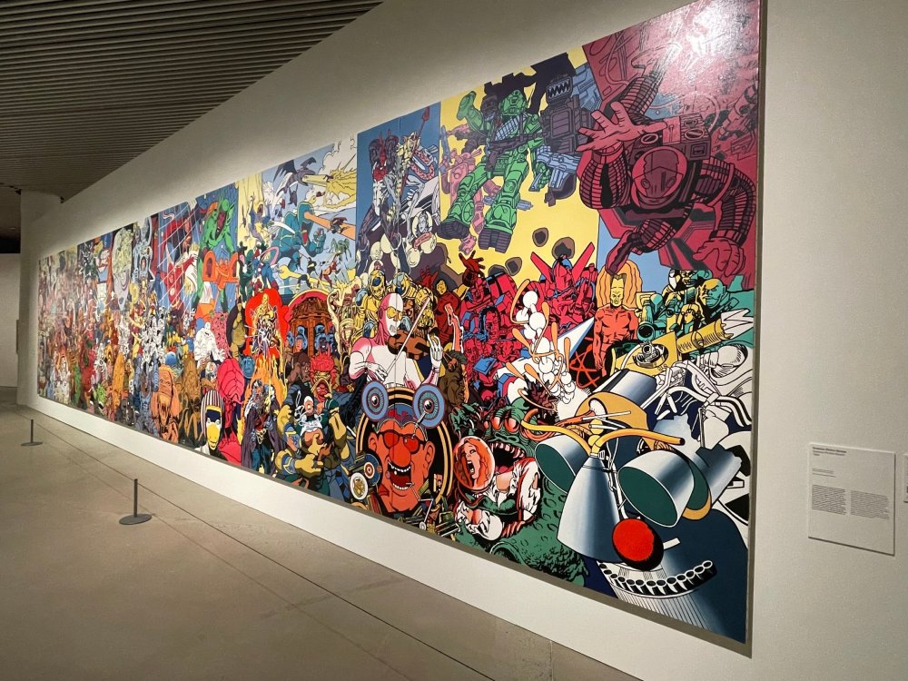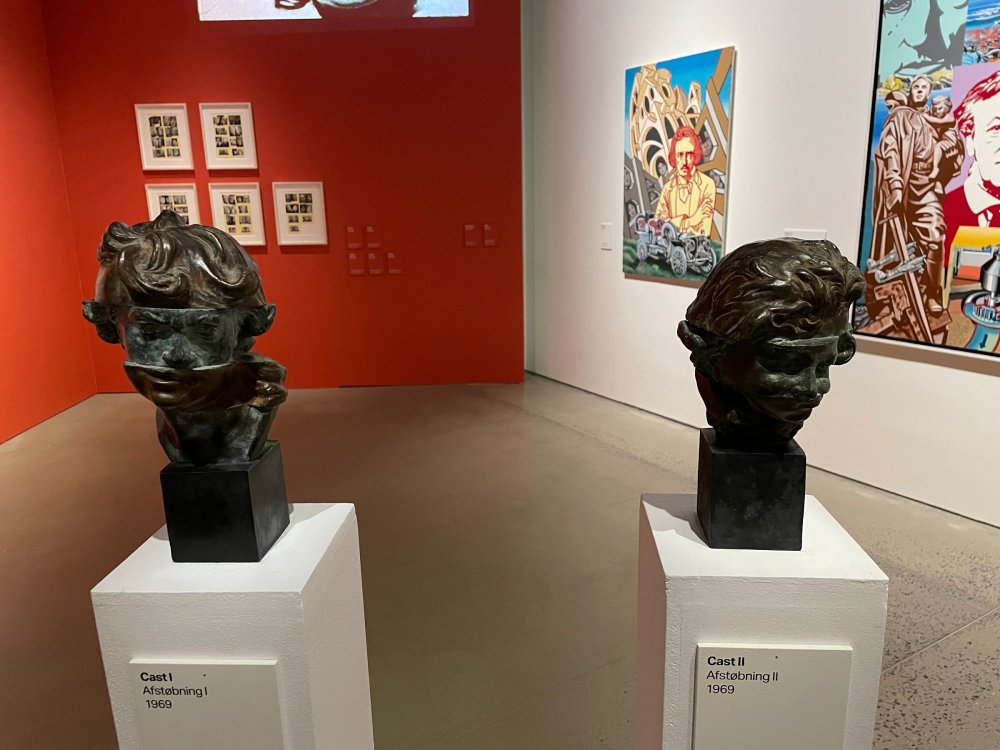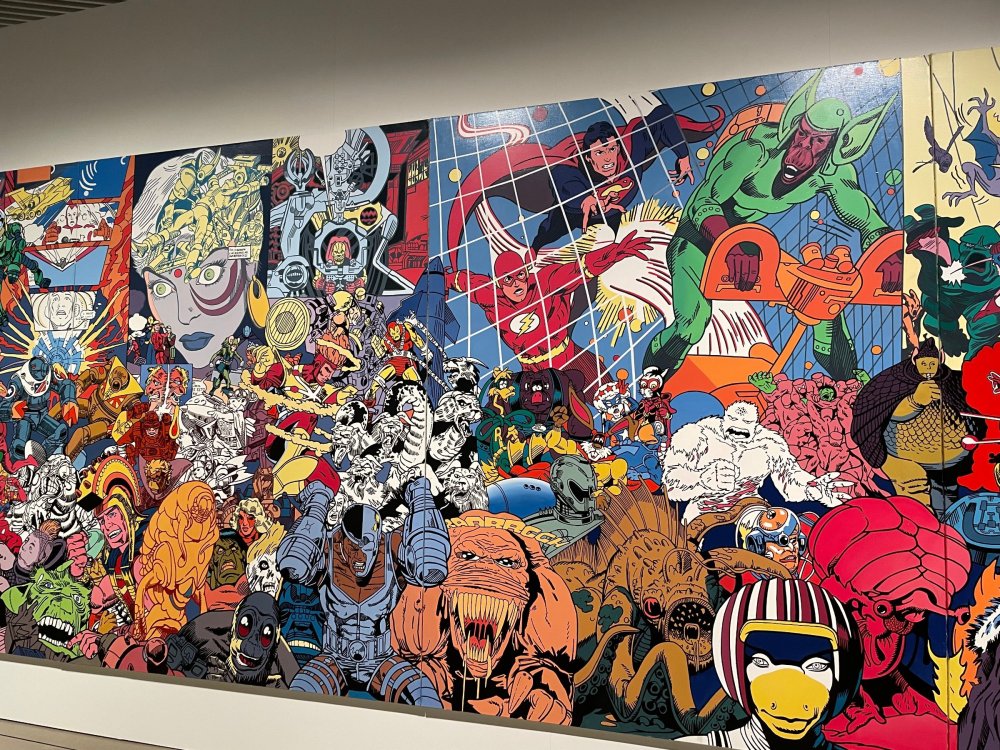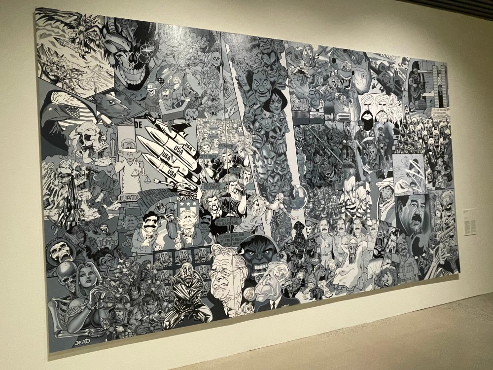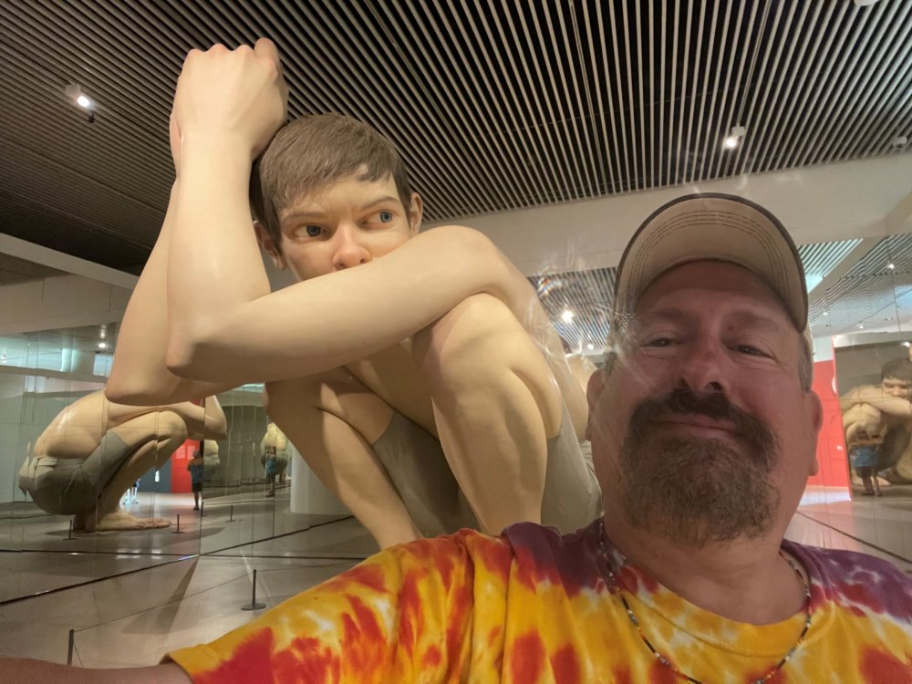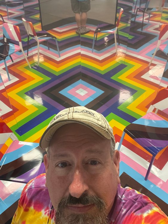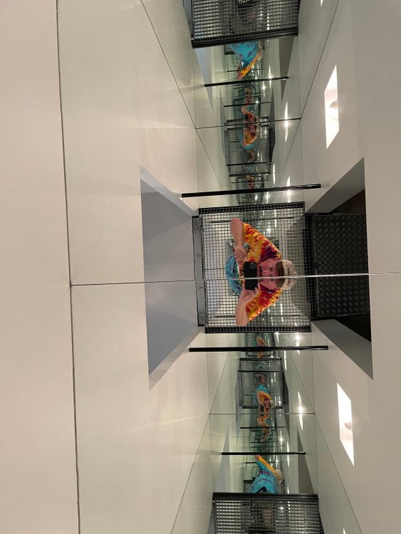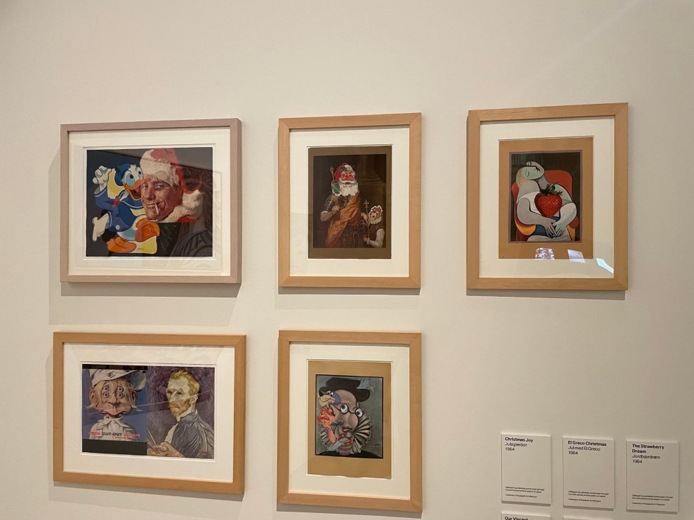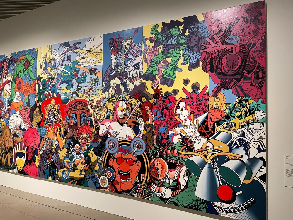 Day 7, June 9th part 2 (of 3): afternoon/evening: How about some Culture? the group I had ended up closing out Tivoli Friedhen with wasn't he only group that also wanted to check out some of the stuff in Aarhus - in particular the ARoS Aarhus Art Museum (which was open until 9pm). but i think we might be the only group that looked at a map, said "nope, that's too far to walk" and Uber-ed it not exactly sure what this building was across the street from the museum, but I thought the architecture was interesting, and so snapped a couple of pics. here is the main entrance to ARoS. . . with a glimpse of the permanent installation on the roof, that made this a "must stop" when I was in town: "Your Rainbow Panorama" by Danish-Icelandic artist Olafur Eliasson. once up the long steps into the main entrance to the museum, one is greeted by this stunning circular staircase - very reminiscent of the Guggenheim in Manhattan. I didn't check, but would venture a guess that this museum is by the same designer. In addition to the "rainbow bridge" installation, what sold the museum for me, was this special exhibit that took the entire 5th floor. basically Propaganda Images as seen thru the lens of Pop Art. as a huge fan of Pop Art, I was very excited for this (and as a comics fan, seeing characters I know in the art is a huge burst of excitement). but first we were headed to the roof (at the recommendation of the security guard by the elevator, who VERY RIGHTLY pointed out that the "Your Rainbow Panorama" gets very humid as it absorbs the sun, so do that one first and then enjoy the rest of the cooler museum. up on the top floor, this installation is very, very cool. it's a 150 metre long circular walkway that gives fantastic views of the city, thru panels that are shaded in the colors of the rainbow. looking out thru the one clear panel, at the walkway around the roof. this is construction for a new wing of the museum. . I believe they said it's going to be a planetarium. this pic is courtesy of Andy - who had walked to the museum with his group and was out on the roof itself taking pictures of the city and the port. He saw me in the exhibit and waved and took a pic it really was rather hot in the artwork, so I stepped down to the roof, proper, to get some pics of the city. and some birds, just hanging out. it really is a lovely city. . with lots and lots of really neat architecture. I really love how with the correct angle of the sun, the rainbow from the installation shows up on the surrounding buildings. floor 10 done, we went to Floor 8, for the "Human Nature" works from the museum collection: very very interesting. . a tree made from leaves pressed between panes of glass then hung as a mobile. that this neon is in a museum made me giggle. . .I think most everyone snapped a pic of this. we then headed down to floor 6, titled "Far From Home II" more works from the museum collection - including the piece that the museum is most well known for: Boy - by Australian artist Ron Mueck this is a huge, and VERY realistic sculpture, and has an entire space (mirrored) in the gallery to itself. down on this floor was more my type of "pop art" stuff, and I started taking more pictures - tho not as many as I'd take of the actual Propoganda as Pop Art on level 5 regardless, I didn't understand this one at all. . but I found it beautiful and disturbing at the same time. and I just adored this 5 pic sculpture progression of "Melt" they even had one piece of Proper "Pop Art" on display up here, using Jack Kirby Panels from Captain America. not quite as successful as what Lichetenstein was doing with the comic panels. . but I do like it. . . then going down to the main Exhibit I was interested in, the very first thing greeted by is a huge canvas titled "Fucky-Strike Bureau of propoganda". .and I already knew I was gonna love this exhibit, and spend more time here than Doug, Hawk, or Big Mike cared to (I was correct. . eventually Doug and Hawk split off to get food and Big Mike hung in there with me to finish the museum and do a few other things). this multimedia piece against stark walls, in a dead end - was very much like watching a classic Nine Inch Nails video. fantastic. . as a temporary exhibition they didn't really have any magnets avail with these (only some prints). lucky me, as I saved a ton of $$. (no wall space for prints unless I simply MUST have them. . and was able to pass on these, as much a I loved some of them) hey. . I recognize that Chipmunk with Santa! seriously. . all of these are just amazing. (and full of easter eggs for a comic book/ comic strip nerd like myself) this was one of my favorite pieces, mixing war with the Kama Sutra. . . I have the original pic, but for sharing here, I've edited. HUGE multi panel mural. . featuring many comic book character likenesses blended in I'll say again. . luckily I dont' have much wall space (and wasn't gonna spend a bunch of $$ on prints to schlep around for the rest of the trip). . so I just enjoyed here and took lots of pics heavy R. Crumb influence/borrowing in these. . . even the Powerpuff Girls showed up! to be concluded. . .