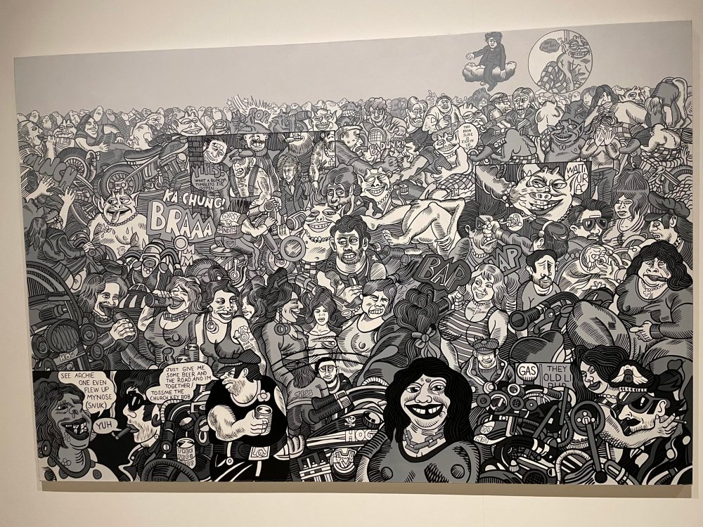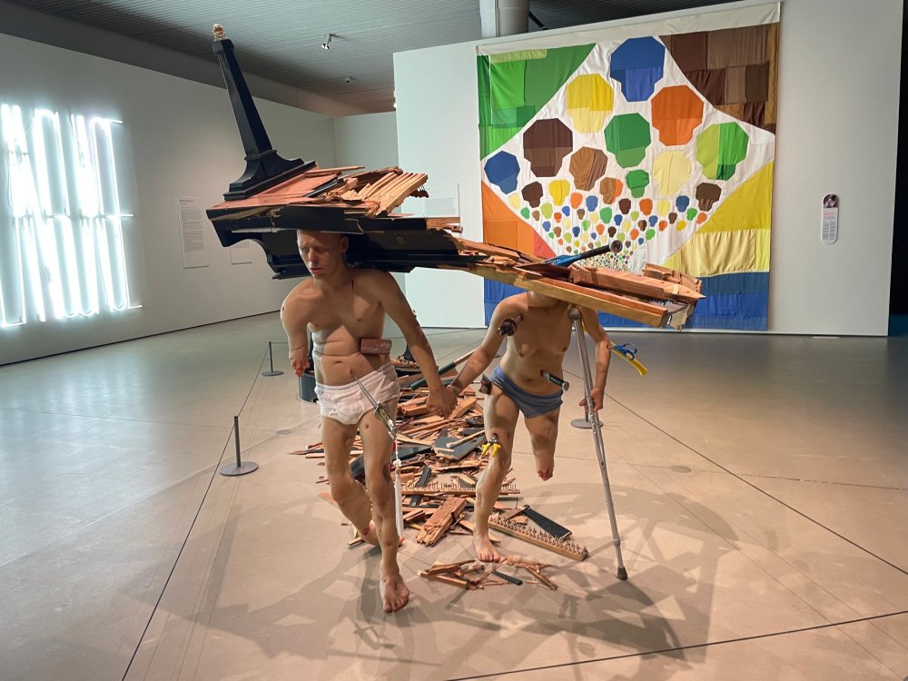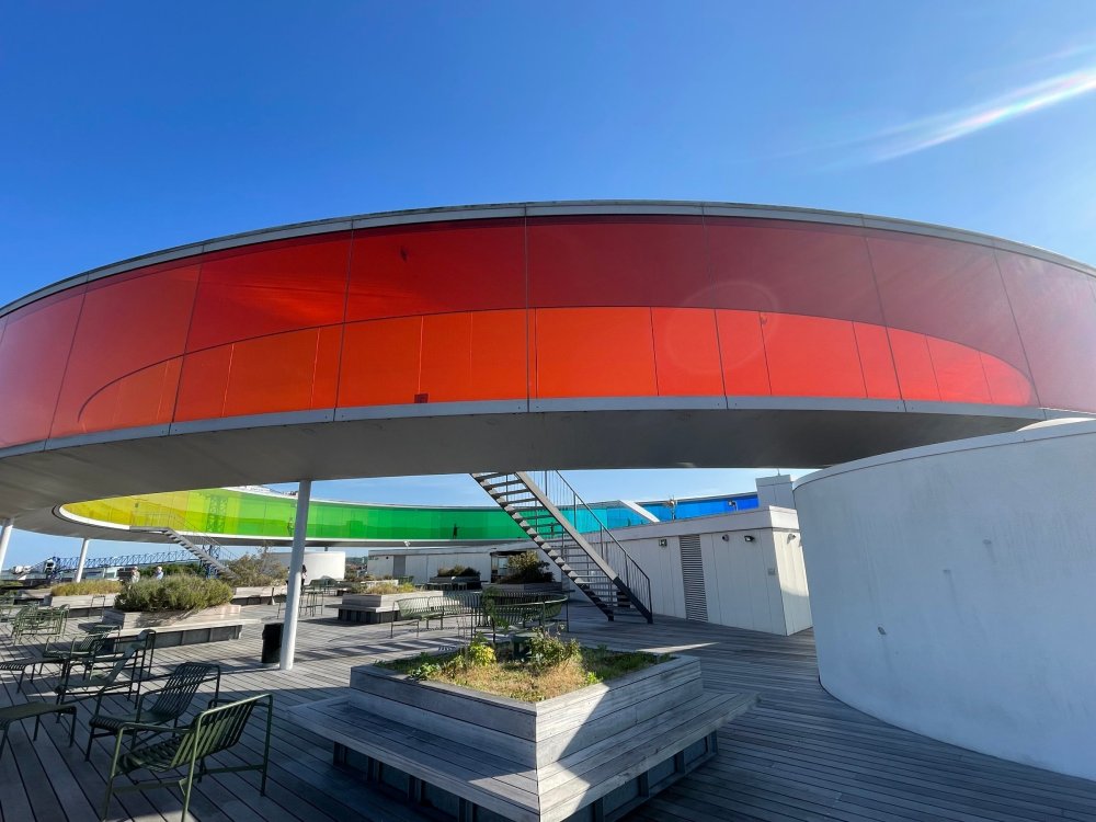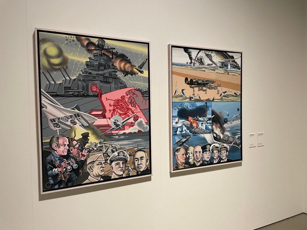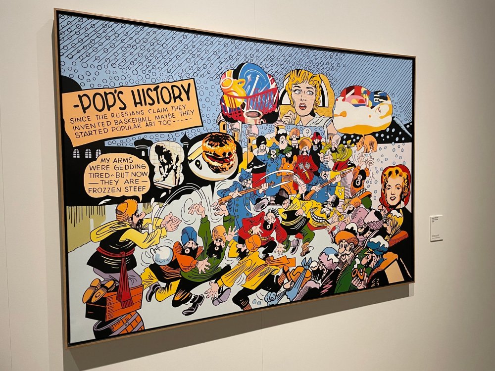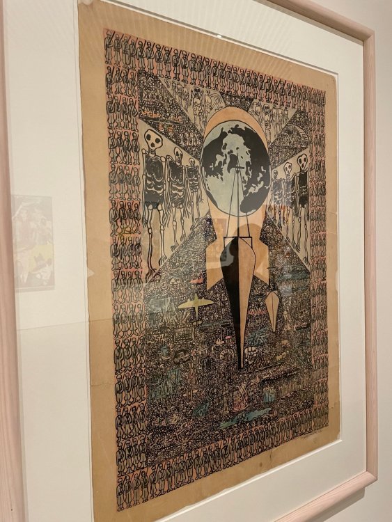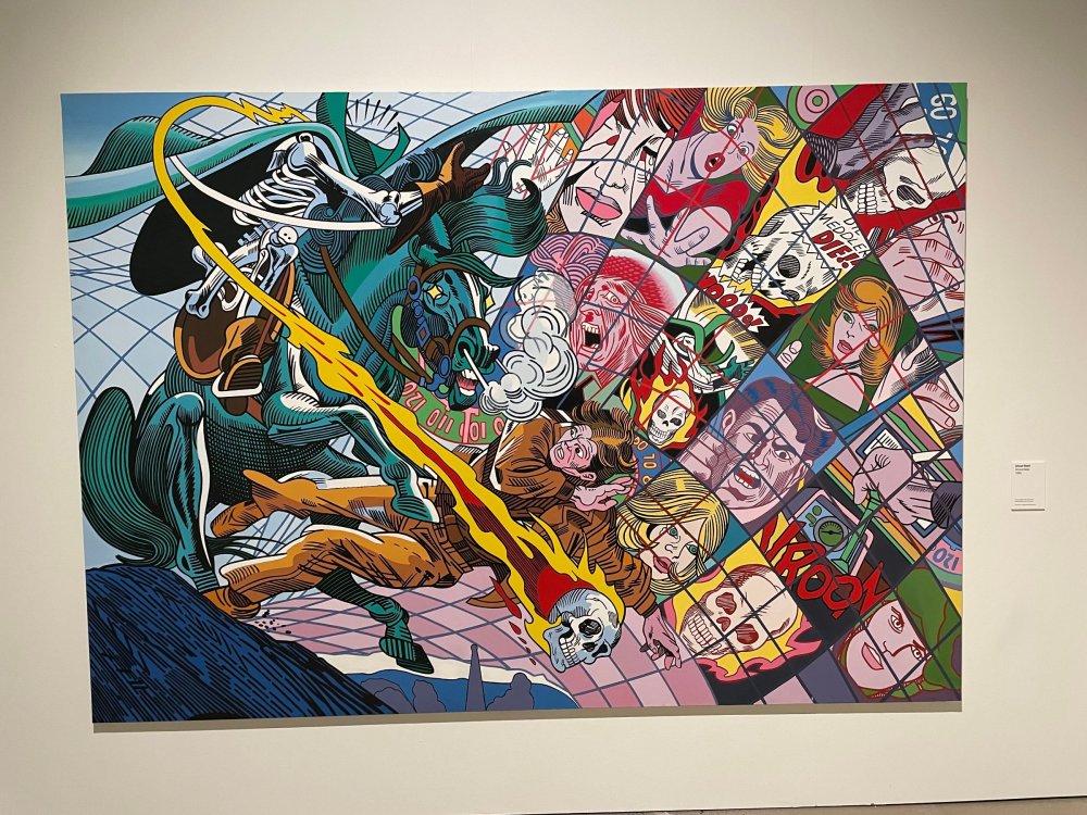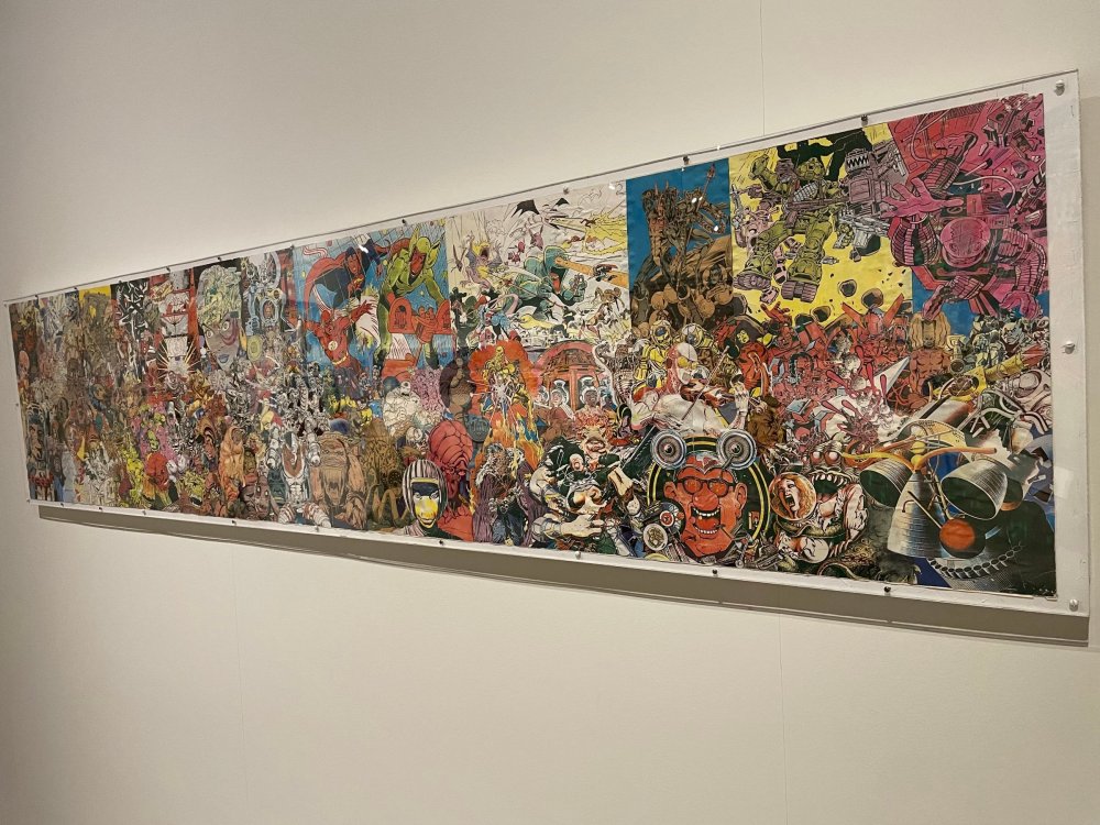 Day 7, June 9th part 2 (of 3): afternoon/evening: How about some Culture? the group I had ended up closing out Tivoli Friedhen with wasn't he only group that also wanted to check out some of the stuff in Aarhus - in particular the ARoS Aarhus Art Museum (which was open until 9pm). but i think we might be the only group that looked at a map, said "nope, that's too far to walk" and Uber-ed it not exactly sure what this building was across the street from the museum, but I thought the architecture was interesting, and so snapped a couple of pics. here is the main entrance to ARoS. . . with a glimpse of the permanent installation on the roof, that made this a "must stop" when I was in town: "Your Rainbow Panorama" by Danish-Icelandic artist Olafur Eliasson. once up the long steps into the main entrance to the museum, one is greeted by this stunning circular staircase - very reminiscent of the Guggenheim in Manhattan. I didn't check, but would venture a guess that this museum is by the same designer. In addition to the "rainbow bridge" installation, what sold the museum for me, was this special exhibit that took the entire 5th floor. basically Propaganda Images as seen thru the lens of Pop Art. as a huge fan of Pop Art, I was very excited for this (and as a comics fan, seeing characters I know in the art is a huge burst of excitement). but first we were headed to the roof (at the recommendation of the security guard by the elevator, who VERY RIGHTLY pointed out that the "Your Rainbow Panorama" gets very humid as it absorbs the sun, so do that one first and then enjoy the rest of the cooler museum. up on the top floor, this installation is very, very cool. it's a 150 metre long circular walkway that gives fantastic views of the city, thru panels that are shaded in the colors of the rainbow. looking out thru the one clear panel, at the walkway around the roof. this is construction for a new wing of the museum. . I believe they said it's going to be a planetarium. this pic is courtesy of Andy - who had walked to the museum with his group and was out on the roof itself taking pictures of the city and the port. He saw me in the exhibit and waved and took a pic it really was rather hot in the artwork, so I stepped down to the roof, proper, to get some pics of the city. and some birds, just hanging out. it really is a lovely city. . with lots and lots of really neat architecture. I really love how with the correct angle of the sun, the rainbow from the installation shows up on the surrounding buildings. floor 10 done, we went to Floor 8, for the "Human Nature" works from the museum collection: very very interesting. . a tree made from leaves pressed between panes of glass then hung as a mobile. that this neon is in a museum made me giggle. . .I think most everyone snapped a pic of this. we then headed down to floor 6, titled "Far From Home II" more works from the museum collection - including the piece that the museum is most well known for: Boy - by Australian artist Ron Mueck this is a huge, and VERY realistic sculpture, and has an entire space (mirrored) in the gallery to itself. down on this floor was more my type of "pop art" stuff, and I started taking more pictures - tho not as many as I'd take of the actual Propoganda as Pop Art on level 5 regardless, I didn't understand this one at all. . but I found it beautiful and disturbing at the same time. and I just adored this 5 pic sculpture progression of "Melt" they even had one piece of Proper "Pop Art" on display up here, using Jack Kirby Panels from Captain America. not quite as successful as what Lichetenstein was doing with the comic panels. . but I do like it. . . then going down to the main Exhibit I was interested in, the very first thing greeted by is a huge canvas titled "Fucky-Strike Bureau of propoganda". .and I already knew I was gonna love this exhibit, and spend more time here than Doug, Hawk, or Big Mike cared to (I was correct. . eventually Doug and Hawk split off to get food and Big Mike hung in there with me to finish the museum and do a few other things). this multimedia piece against stark walls, in a dead end - was very much like watching a classic Nine Inch Nails video. fantastic. . as a temporary exhibition they didn't really have any magnets avail with these (only some prints). lucky me, as I saved a ton of $$. (no wall space for prints unless I simply MUST have them. . and was able to pass on these, as much a I loved some of them) hey. . I recognize that Chipmunk with Santa! seriously. . all of these are just amazing. (and full of easter eggs for a comic book/ comic strip nerd like myself) this was one of my favorite pieces, mixing war with the Kama Sutra. . . I have the original pic, but for sharing here, I've edited. HUGE multi panel mural. . featuring many comic book character likenesses blended in I'll say again. . luckily I dont' have much wall space (and wasn't gonna spend a bunch of $$ on prints to schlep around for the rest of the trip). . so I just enjoyed here and took lots of pics heavy R. Crumb influence/borrowing in these. . . even the Powerpuff Girls showed up! to be concluded. . .