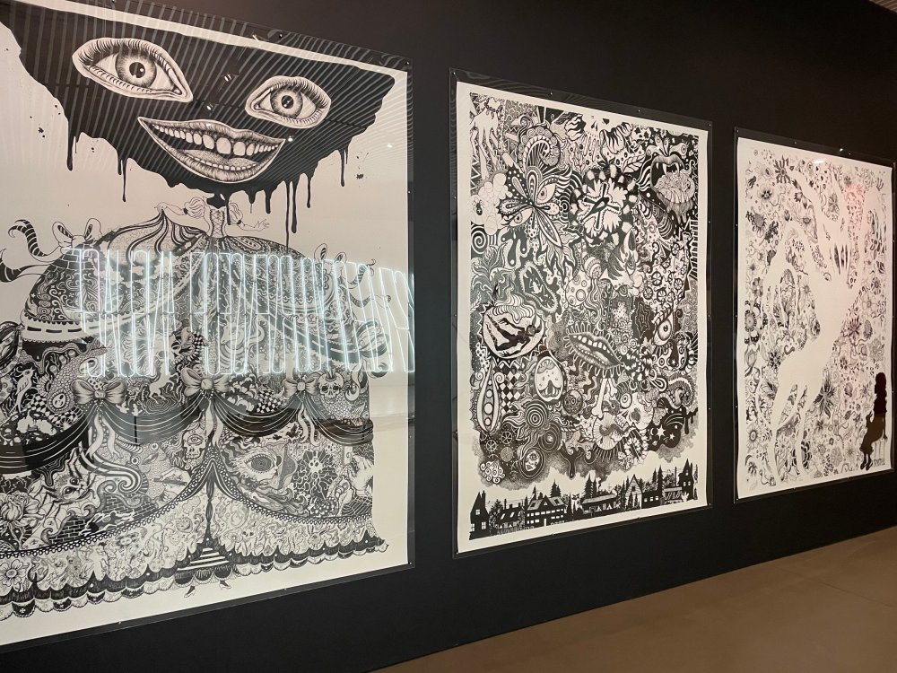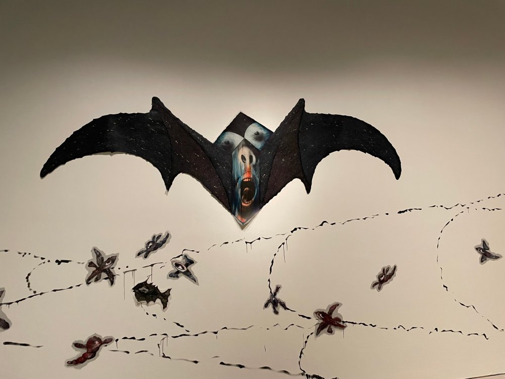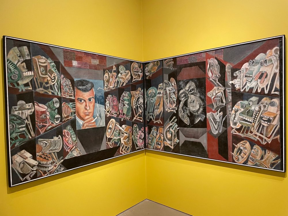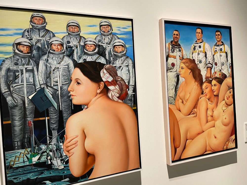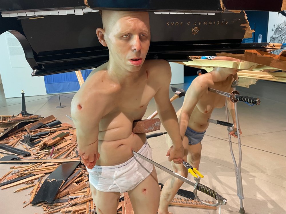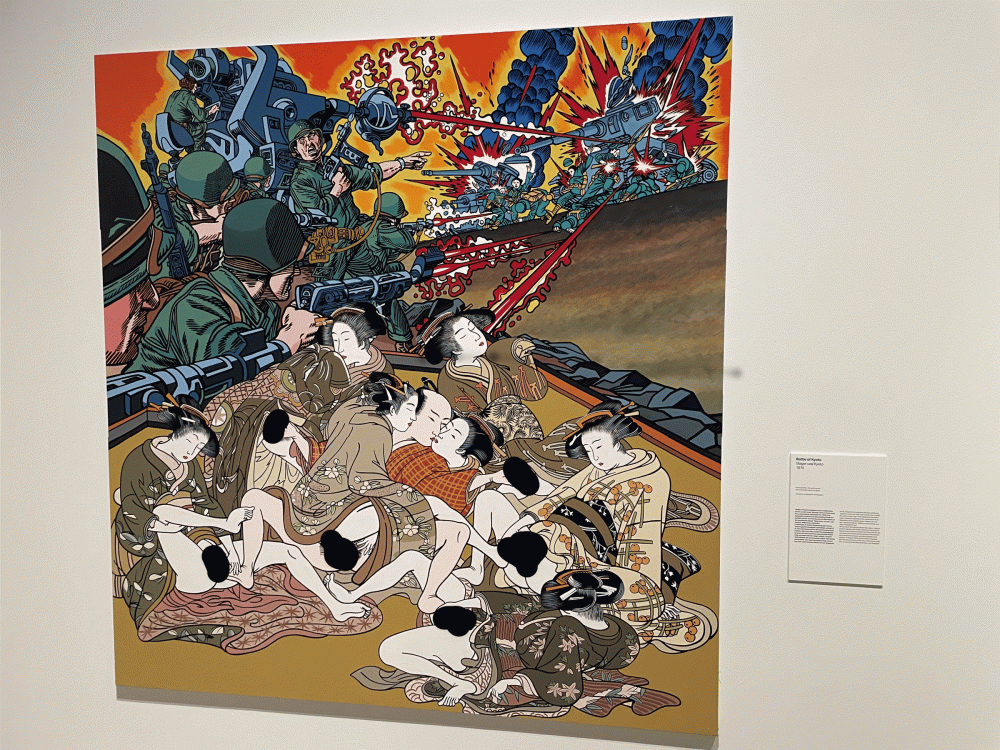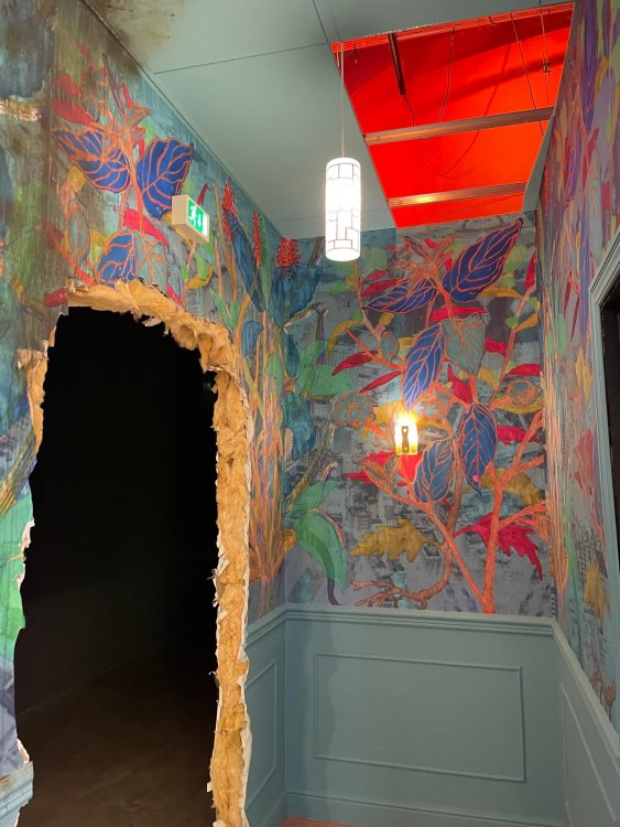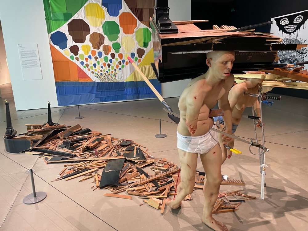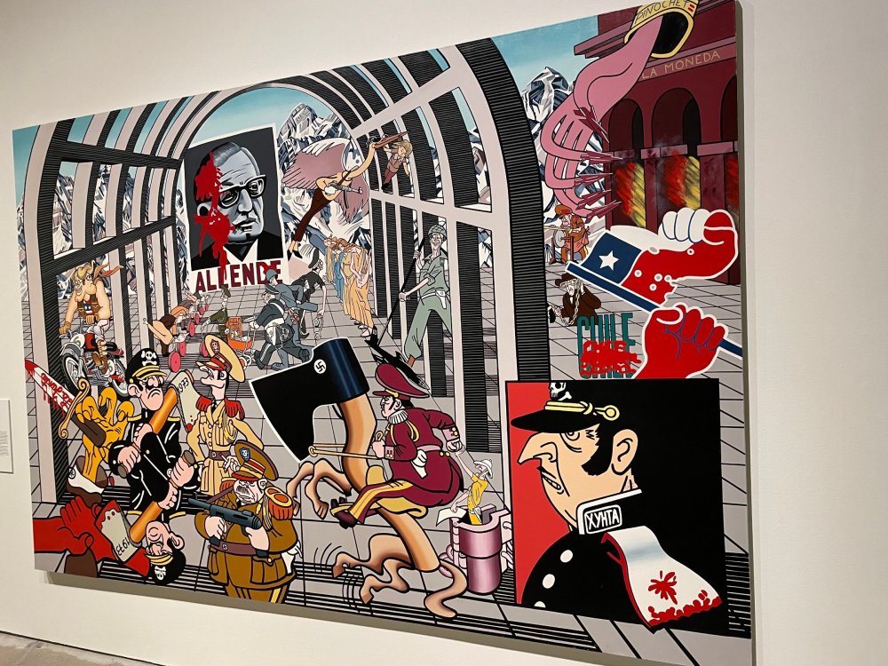 Day 7, June 9th part 2 (of 3): afternoon/evening: How about some Culture? the group I had ended up closing out Tivoli Friedhen with wasn't he only group that also wanted to check out some of the stuff in Aarhus - in particular the ARoS Aarhus Art Museum (which was open until 9pm). but i think we might be the only group that looked at a map, said "nope, that's too far to walk" and Uber-ed it not exactly sure what this building was across the street from the museum, but I thought the architecture was interesting, and so snapped a couple of pics. here is the main entrance to ARoS. . . with a glimpse of the permanent installation on the roof, that made this a "must stop" when I was in town: "Your Rainbow Panorama" by Danish-Icelandic artist Olafur Eliasson. once up the long steps into the main entrance to the museum, one is greeted by this stunning circular staircase - very reminiscent of the Guggenheim in Manhattan. I didn't check, but would venture a guess that this museum is by the same designer. In addition to the "rainbow bridge" installation, what sold the museum for me, was this special exhibit that took the entire 5th floor. basically Propaganda Images as seen thru the lens of Pop Art. as a huge fan of Pop Art, I was very excited for this (and as a comics fan, seeing characters I know in the art is a huge burst of excitement). but first we were headed to the roof (at the recommendation of the security guard by the elevator, who VERY RIGHTLY pointed out that the "Your Rainbow Panorama" gets very humid as it absorbs the sun, so do that one first and then enjoy the rest of the cooler museum. up on the top floor, this installation is very, very cool. it's a 150 metre long circular walkway that gives fantastic views of the city, thru panels that are shaded in the colors of the rainbow. looking out thru the one clear panel, at the walkway around the roof. this is construction for a new wing of the museum. . I believe they said it's going to be a planetarium. this pic is courtesy of Andy - who had walked to the museum with his group and was out on the roof itself taking pictures of the city and the port. He saw me in the exhibit and waved and took a pic it really was rather hot in the artwork, so I stepped down to the roof, proper, to get some pics of the city. and some birds, just hanging out. it really is a lovely city. . with lots and lots of really neat architecture. I really love how with the correct angle of the sun, the rainbow from the installation shows up on the surrounding buildings. floor 10 done, we went to Floor 8, for the "Human Nature" works from the museum collection: very very interesting. . a tree made from leaves pressed between panes of glass then hung as a mobile. that this neon is in a museum made me giggle. . .I think most everyone snapped a pic of this. we then headed down to floor 6, titled "Far From Home II" more works from the museum collection - including the piece that the museum is most well known for: Boy - by Australian artist Ron Mueck this is a huge, and VERY realistic sculpture, and has an entire space (mirrored) in the gallery to itself. down on this floor was more my type of "pop art" stuff, and I started taking more pictures - tho not as many as I'd take of the actual Propoganda as Pop Art on level 5 regardless, I didn't understand this one at all. . but I found it beautiful and disturbing at the same time. and I just adored this 5 pic sculpture progression of "Melt" they even had one piece of Proper "Pop Art" on display up here, using Jack Kirby Panels from Captain America. not quite as successful as what Lichetenstein was doing with the comic panels. . but I do like it. . . then going down to the main Exhibit I was interested in, the very first thing greeted by is a huge canvas titled "Fucky-Strike Bureau of propoganda". .and I already knew I was gonna love this exhibit, and spend more time here than Doug, Hawk, or Big Mike cared to (I was correct. . eventually Doug and Hawk split off to get food and Big Mike hung in there with me to finish the museum and do a few other things). this multimedia piece against stark walls, in a dead end - was very much like watching a classic Nine Inch Nails video. fantastic. . as a temporary exhibition they didn't really have any magnets avail with these (only some prints). lucky me, as I saved a ton of $$. (no wall space for prints unless I simply MUST have them. . and was able to pass on these, as much a I loved some of them) hey. . I recognize that Chipmunk with Santa! seriously. . all of these are just amazing. (and full of easter eggs for a comic book/ comic strip nerd like myself) this was one of my favorite pieces, mixing war with the Kama Sutra. . . I have the original pic, but for sharing here, I've edited. HUGE multi panel mural. . featuring many comic book character likenesses blended in I'll say again. . luckily I dont' have much wall space (and wasn't gonna spend a bunch of $$ on prints to schlep around for the rest of the trip). . so I just enjoyed here and took lots of pics heavy R. Crumb influence/borrowing in these. . . even the Powerpuff Girls showed up! to be concluded. . .