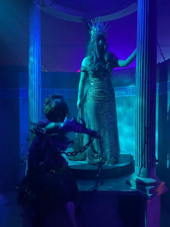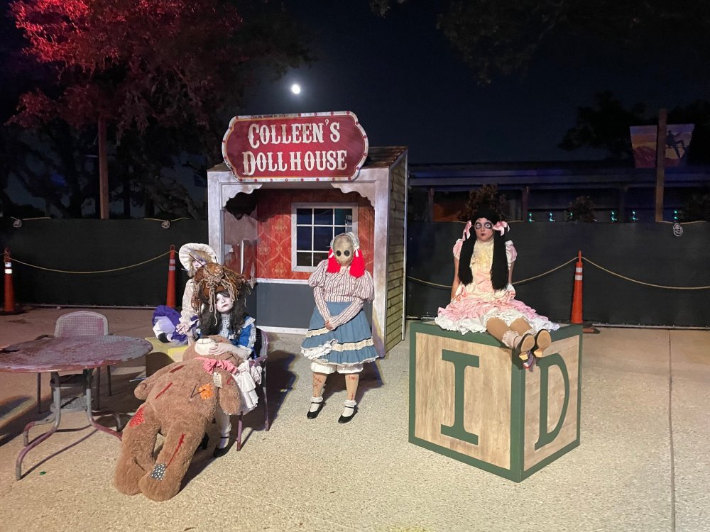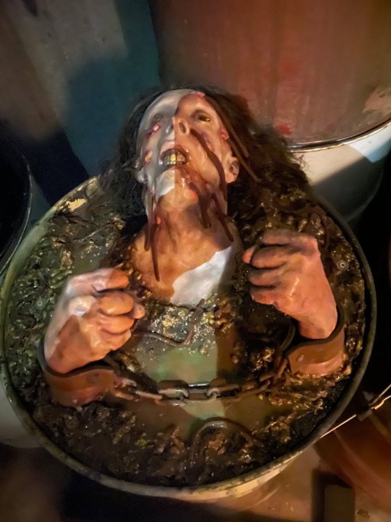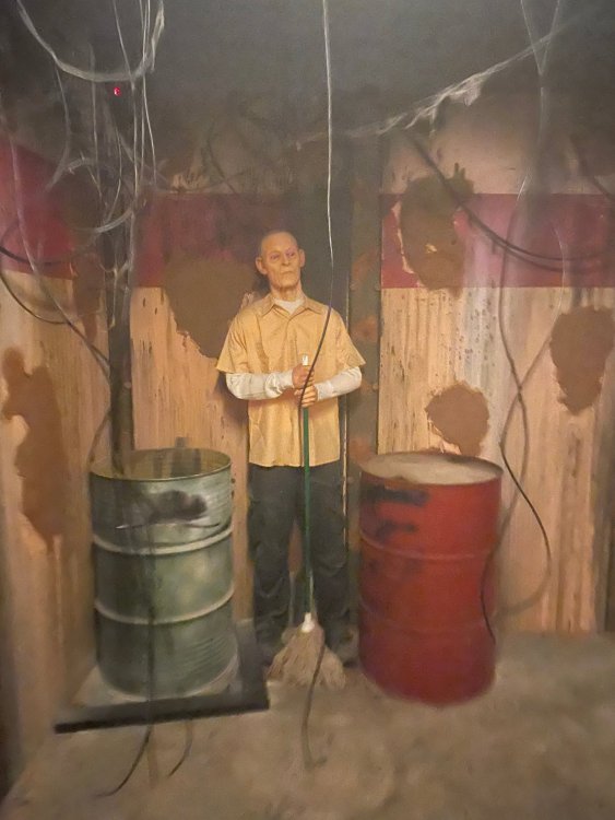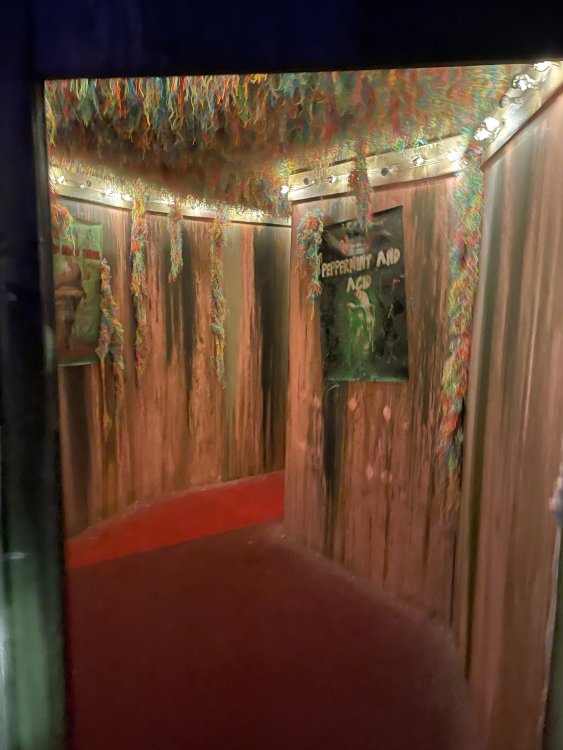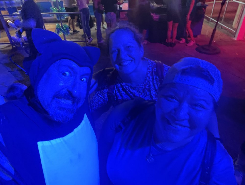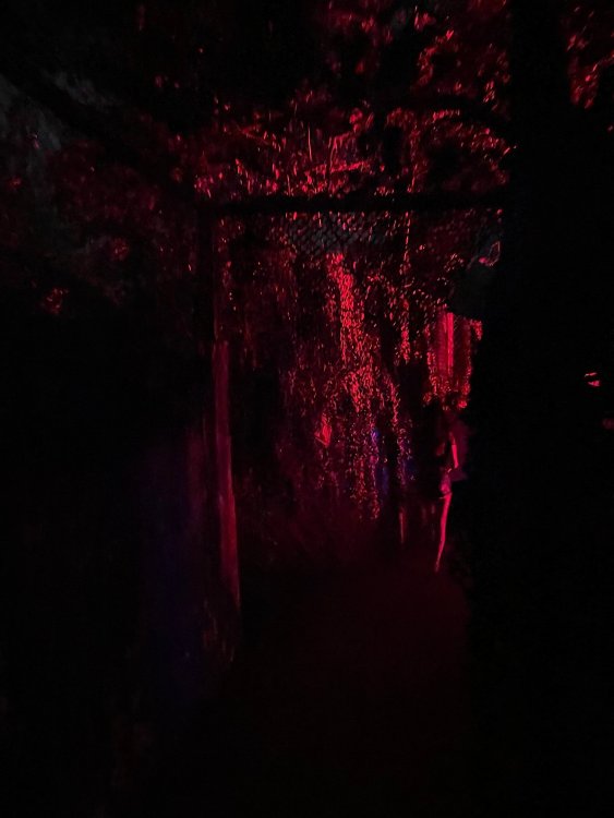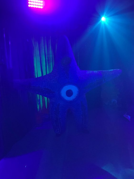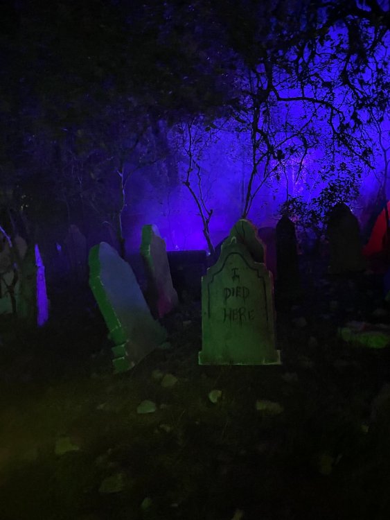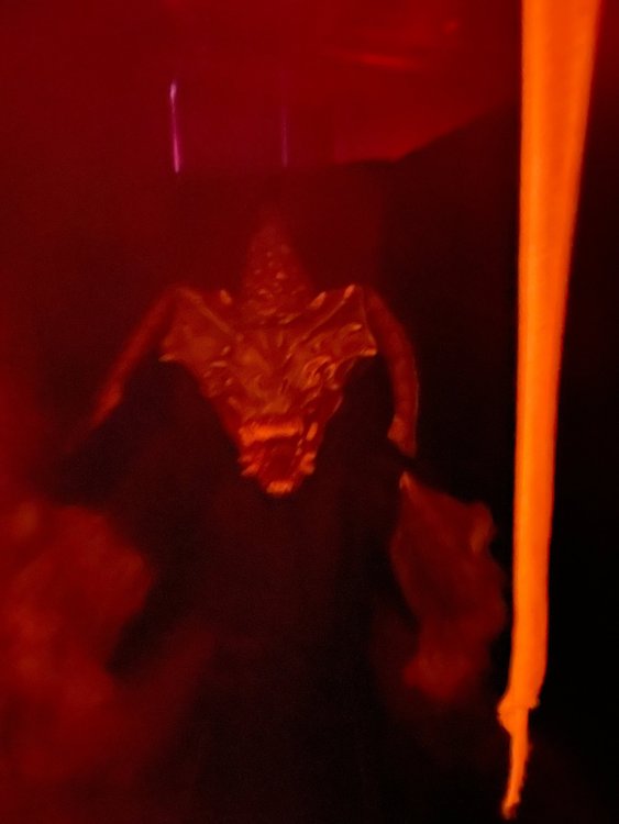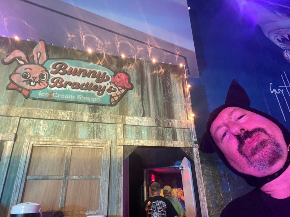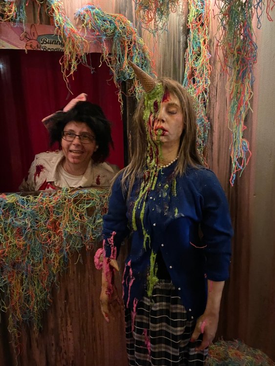 Made a trip to SeaWorld San Antonio yesterday to experience this year's "Howl-O-Scream" event. pretty crowded (wonder if that had to do with SW parks winning best Halloween event in a recent poll?). Regardless, superbly well run. With lines moving thru the 6 (free) houses fairly well, TONS of walkway actors/spooks in the fright zones, bar service pretty well staffed, and lots of entertainment. I also noticed (not tons, but enough to note their presence, which I appreciated greatly, some police officers sprinkled thruout the event, keeping watchful eyes on things. I had a wonderful time, and highly recommend. y'all wanna see some pictures and read some commentary? sure you do! I wore my "bat hat" all day. . kept my bald spot from sunburn. . . .LOL. .tho I got a lot of "I like your costume" comments, and kept saying, this is just from my closet! Even tho the house lines move pretty well? it's SO worth the $$ to pick up some version of the Fright Pass to use the "skip the line" option. With six houses, it's really the only way to get to do everything in one night (I mean, including shows, scare-zones, etc). we got the version that was one trip thru each house, but there are multiple options avail - that also include show seating, ride skip as well as houses, and one with multiple visits to houses. since SeaWorld insists on using these dang paper tickets tho? do what I did - take a pic of it. That way they can just scan it on your phone each time, and you'll probably have your phone out for pictures anyways (yes, phone and video filming IS allowed.. just not flash photography). even before the bars opened (at 5, tho some opened a bit earlier), or the houses opened (at 7), there were street performers out. lol. .and this is why I take so many selfies instead of asking folks to take pics of me. . sorry about that finger. . SWSA does have the Offrenda set up. . .it's just in a different location, around the corner from where it used to be, on the stage area. i think it looks SO much better over here. . and love the tables full of fruit and sugar skulls on the sides. a bar that opened a little early? (Bloodthirsty in the vampire scare zone area)? 1st drinks of the afternoon in hand. . and drinks from Bloodthirsty come with gummy worms and glow in the dark fangs! walking the "Howl o Scream" area, to check out the decorations, even tho the creatures don't really come out until 6:30. At SWSA, the Howl O Scream area is basically all around the lagoon. From Beluga Stadium to the Sesame Street kids area. stopping to take a peek over the construction walls at Catapult Falls. they'd added a ton of signage and some slight theming. The ride does look ready to go. . it must simply be delayed due to some minor issue, or delay getting the inspections done. But I can't wait to ride this. some of the flume vehicles are in the station. . so they HAVE been testing it, even if the flume itself is drained at the moment. we stopped in at the Voodoo Lounge bar for another drink. . this is the Texas Tea frozen drink. as we were sitting directly across from "the Swamp" house, we just decided to join the forming line while we were drinking (and would come back and use the skip the line to go thru again later). so we were in a great position when the denizens of the Swamp scare-zone started coming out: the Swamp |this was the new house two years ago, and tho I enjoyed it, it was pretty lame (I thought), last year as it hadn't aged well. But I had heard rumors that all the houses had made some changes, so was eager to check out. my take on it this year? 1000% improvement over last year. I love that SWSA basically has a "total dark" house now. I know some complained it was too dark, but so what. . I LOVED it. when I say it's dark in there? I mean PITCH BLACK, CANNOT SEE WHERE YOU ARE GOING. They have someone with a light standing over a large prop on the floor as folks kept tripping on it. and the few sections that are a little lighter? yup, fog. . . so it's basically a blackout house. my phone/camera takes excellent night photos, that's the only reason you can make out some of these images. some of the Swamp scare actors on the walkways (we compared ears) we decided to walk back to the front of the Howl-o-Scream area and start at the Atlantis house (over by Journey to Atlantis). . so here's some pics along the way as we headed over there and it started to get darker. this is the "Sindustry" area, in front of Penguin encounters. it was a bit more "family friendly" this year, but still has the DJ, the acrobat, and the Trampoline troupe. and of course, the DO have a bar there for the adults. my favorite area of the park is over near the brand new haunt this year. . .Bunny Bradley's Ice Cream Parlor. . with so many street scarers out. . all as evil clowns. tho I loved this ringmaster outfit too. full 360 creepy as hell costume we'll hit this when we come back this way. . . but here's the queue line (already pretty long, and it was only ~8pm) SWSA was firing on all cylinders yesterday. . .every ride (but Sea Rescue troika) was open, and lines were almost non existent. Note if you're going: the water rides DO close when the houses open (Atlantis uses part of Journey's queue). . so if you want to ride Rio Loco, or Journey to Atlantis? come early enough to get them in before the Howl-O-Scream event starts. but even during the event, all the coasters kept running. We got two walk on rides on Texas Stingray (day & night), and a walk on ride on Journey earlier in the day. we absolutely COULD have done ton more rides, but we were here for the houses. as usual, the only thing with even close to a line was WaveBreaker, which kept a steady 30+ minute or so line the entire day/night. Paid photo op with a werewolf if you wanted to wait in line for that. . . Bloodthirsty was busy when we walked back by. . Atlantis - unfortunately, the weakest house, and a big reason is that it's just so bright in there. The props, and effects are great, a