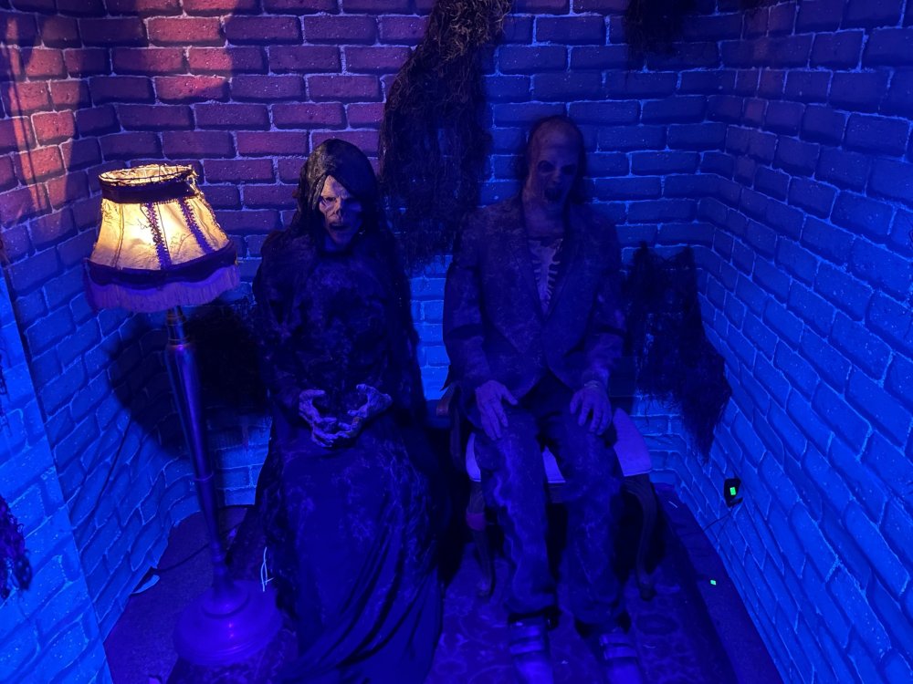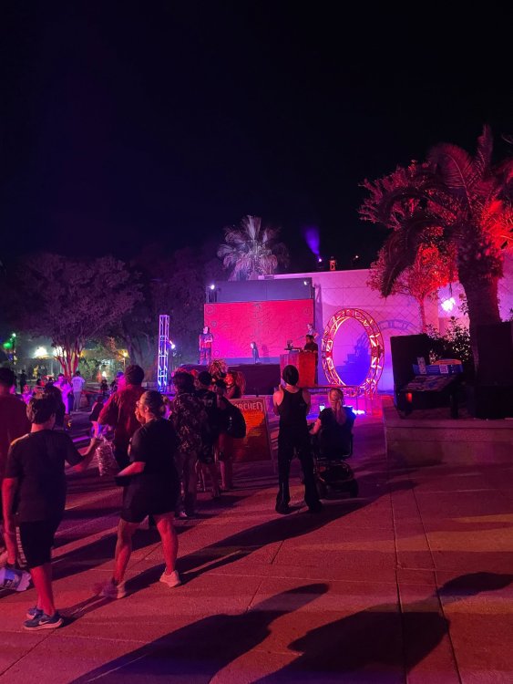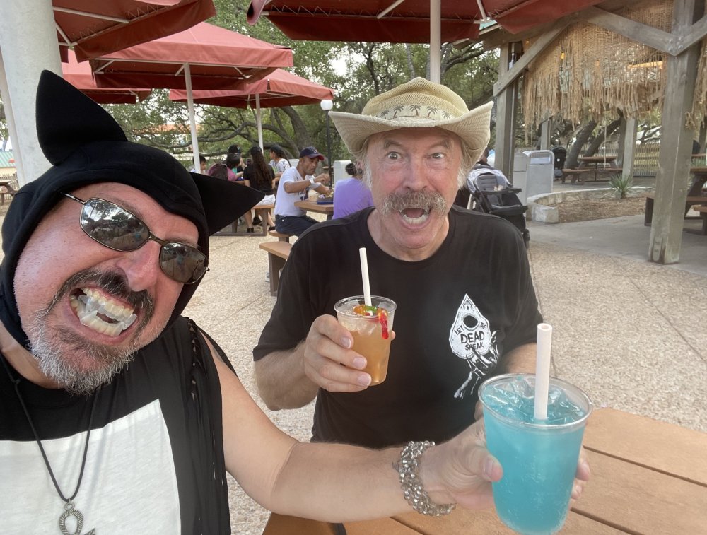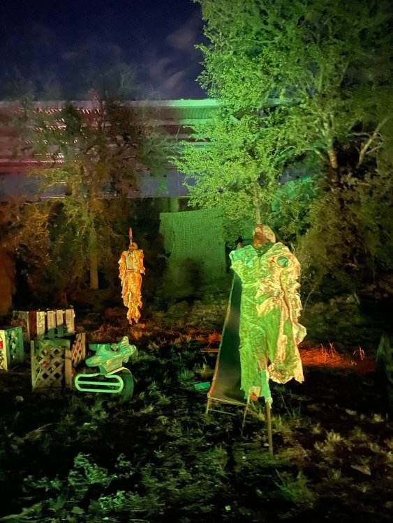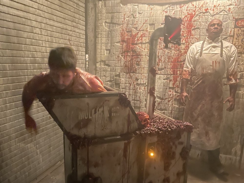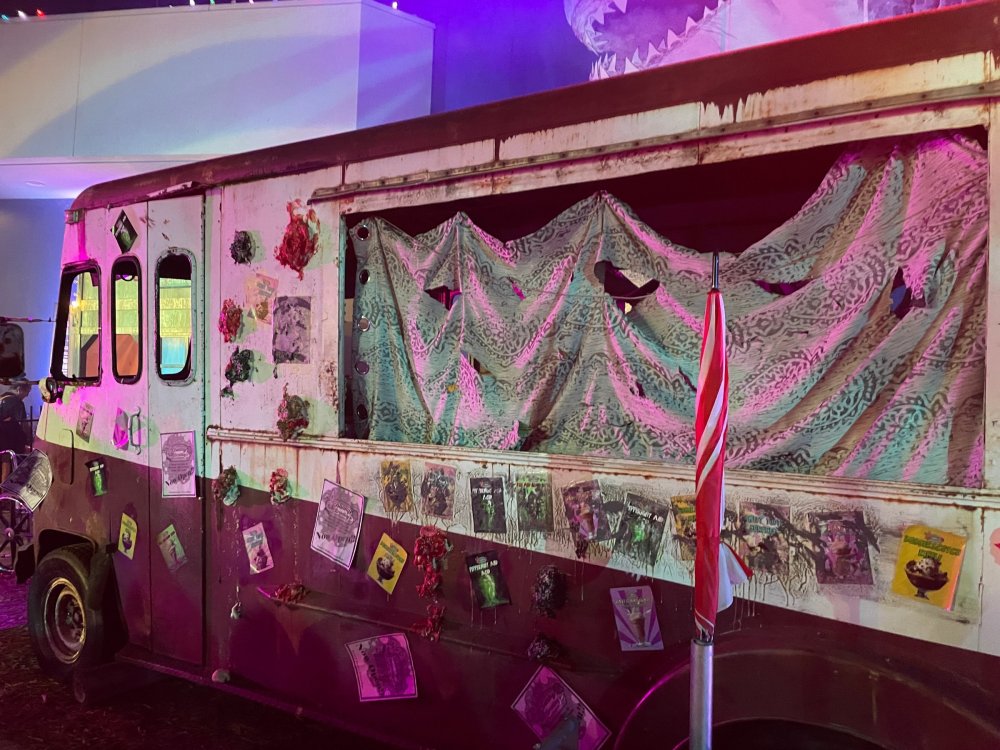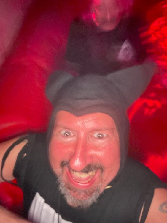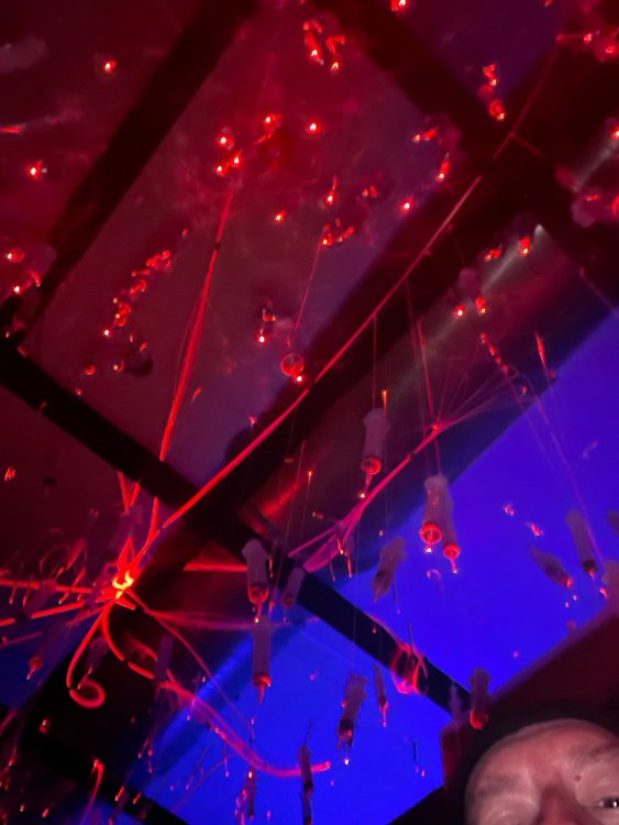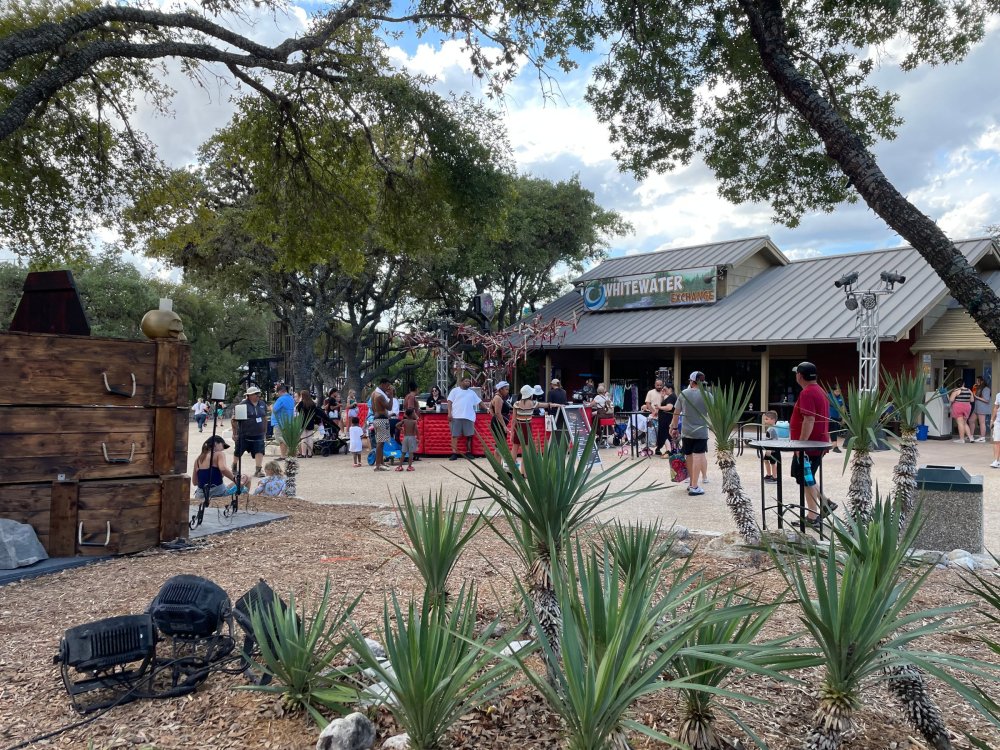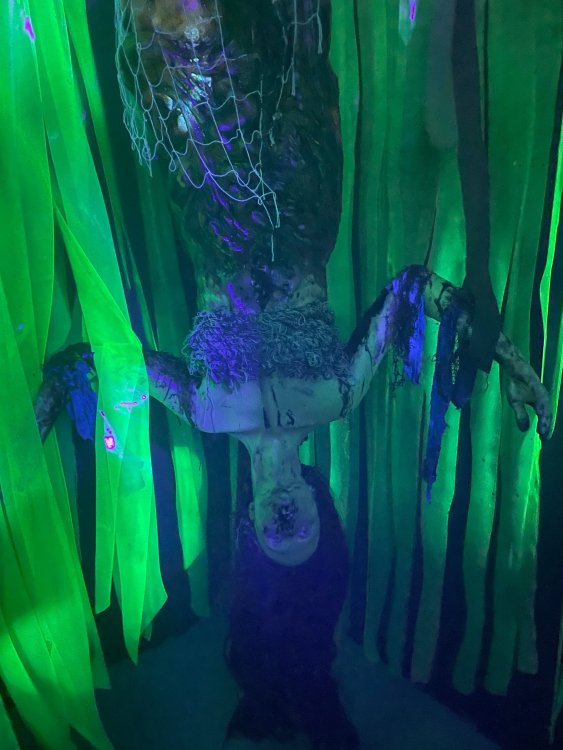 Made a trip to SeaWorld San Antonio yesterday to experience this year's "Howl-O-Scream" event. pretty crowded (wonder if that had to do with SW parks winning best Halloween event in a recent poll?). Regardless, superbly well run. With lines moving thru the 6 (free) houses fairly well, TONS of walkway actors/spooks in the fright zones, bar service pretty well staffed, and lots of entertainment. I also noticed (not tons, but enough to note their presence, which I appreciated greatly, some police officers sprinkled thruout the event, keeping watchful eyes on things. I had a wonderful time, and highly recommend. y'all wanna see some pictures and read some commentary? sure you do! I wore my "bat hat" all day. . kept my bald spot from sunburn. . . .LOL. .tho I got a lot of "I like your costume" comments, and kept saying, this is just from my closet! Even tho the house lines move pretty well? it's SO worth the $$ to pick up some version of the Fright Pass to use the "skip the line" option. With six houses, it's really the only way to get to do everything in one night (I mean, including shows, scare-zones, etc). we got the version that was one trip thru each house, but there are multiple options avail - that also include show seating, ride skip as well as houses, and one with multiple visits to houses. since SeaWorld insists on using these dang paper tickets tho? do what I did - take a pic of it. That way they can just scan it on your phone each time, and you'll probably have your phone out for pictures anyways (yes, phone and video filming IS allowed.. just not flash photography). even before the bars opened (at 5, tho some opened a bit earlier), or the houses opened (at 7), there were street performers out. lol. .and this is why I take so many selfies instead of asking folks to take pics of me. . sorry about that finger. . SWSA does have the Offrenda set up. . .it's just in a different location, around the corner from where it used to be, on the stage area. i think it looks SO much better over here. . and love the tables full of fruit and sugar skulls on the sides. a bar that opened a little early? (Bloodthirsty in the vampire scare zone area)? 1st drinks of the afternoon in hand. . and drinks from Bloodthirsty come with gummy worms and glow in the dark fangs! walking the "Howl o Scream" area, to check out the decorations, even tho the creatures don't really come out until 6:30. At SWSA, the Howl O Scream area is basically all around the lagoon. From Beluga Stadium to the Sesame Street kids area. stopping to take a peek over the construction walls at Catapult Falls. they'd added a ton of signage and some slight theming. The ride does look ready to go. . it must simply be delayed due to some minor issue, or delay getting the inspections done. But I can't wait to ride this. some of the flume vehicles are in the station. . so they HAVE been testing it, even if the flume itself is drained at the moment. we stopped in at the Voodoo Lounge bar for another drink. . this is the Texas Tea frozen drink. as we were sitting directly across from "the Swamp" house, we just decided to join the forming line while we were drinking (and would come back and use the skip the line to go thru again later). so we were in a great position when the denizens of the Swamp scare-zone started coming out: the Swamp |this was the new house two years ago, and tho I enjoyed it, it was pretty lame (I thought), last year as it hadn't aged well. But I had heard rumors that all the houses had made some changes, so was eager to check out. my take on it this year? 1000% improvement over last year. I love that SWSA basically has a "total dark" house now. I know some complained it was too dark, but so what. . I LOVED it. when I say it's dark in there? I mean PITCH BLACK, CANNOT SEE WHERE YOU ARE GOING. They have someone with a light standing over a large prop on the floor as folks kept tripping on it. and the few sections that are a little lighter? yup, fog. . . so it's basically a blackout house. my phone/camera takes excellent night photos, that's the only reason you can make out some of these images. some of the Swamp scare actors on the walkways (we compared ears) we decided to walk back to the front of the Howl-o-Scream area and start at the Atlantis house (over by Journey to Atlantis). . so here's some pics along the way as we headed over there and it started to get darker. this is the "Sindustry" area, in front of Penguin encounters. it was a bit more "family friendly" this year, but still has the DJ, the acrobat, and the Trampoline troupe. and of course, the DO have a bar there for the adults. my favorite area of the park is over near the brand new haunt this year. . .Bunny Bradley's Ice Cream Parlor. . with so many street scarers out. . all as evil clowns. tho I loved this ringmaster outfit too. full 360 creepy as hell costume we'll hit this when we come back this way. . . but here's the queue line (already pretty long, and it was only ~8pm) SWSA was firing on all cylinders yesterday. . .every ride (but Sea Rescue troika) was open, and lines were almost non existent. Note if you're going: the water rides DO close when the houses open (Atlantis uses part of Journey's queue). . so if you want to ride Rio Loco, or Journey to Atlantis? come early enough to get them in before the Howl-O-Scream event starts. but even during the event, all the coasters kept running. We got two walk on rides on Texas Stingray (day & night), and a walk on ride on Journey earlier in the day. we absolutely COULD have done ton more rides, but we were here for the houses. as usual, the only thing with even close to a line was WaveBreaker, which kept a steady 30+ minute or so line the entire day/night. Paid photo op with a werewolf if you wanted to wait in line for that. . . Bloodthirsty was busy when we walked back by. . Atlantis - unfortunately, the weakest house, and a big reason is that it's just so bright in there. The props, and effects are great, a