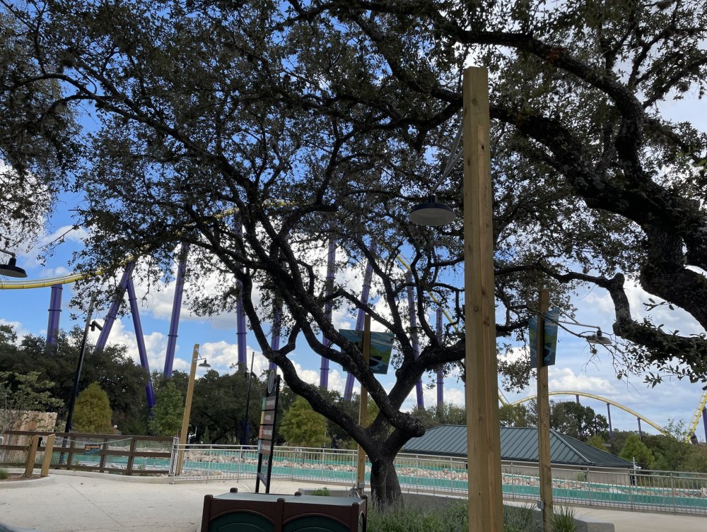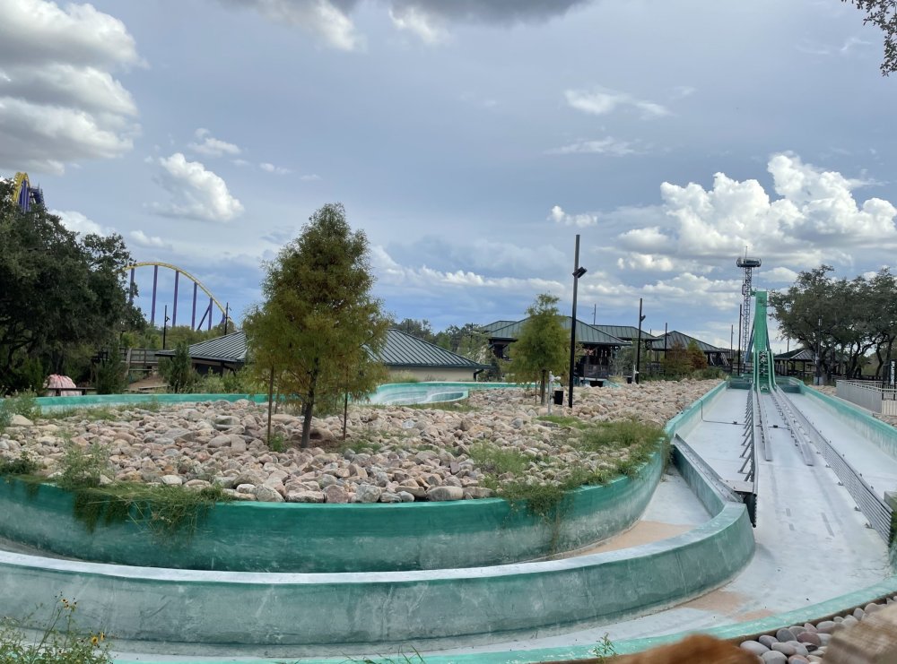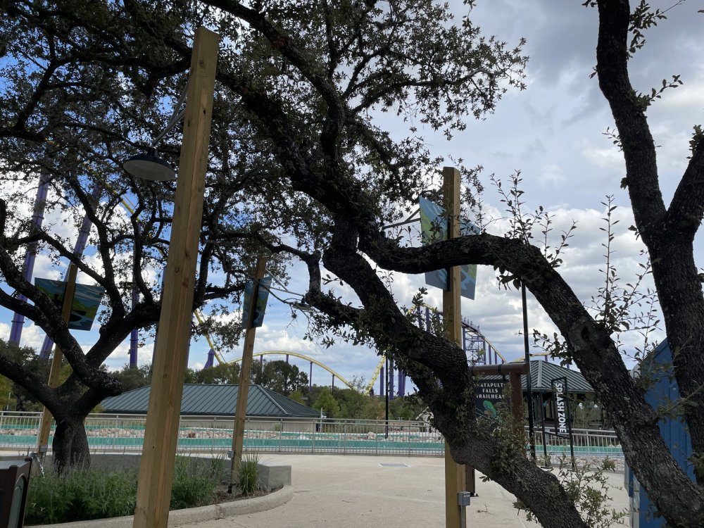 it used to be one big park (it's by far the largest of the SeaWorld parks. . there's a lot of unused land). the waterpark used to be in the middle of the park (included free), and the arches were the main entrance - with the Porpoise pool and "Discovery Cove" area included. many years ago, when they decided to charge separate admission for the improved waterpark, the moved the entrances to in front of each park - and the main entrance/archways just became a scenic thing. what many don't realize is that you do NOT need a ticket to go to Discovery Point - with the porpoises, and Sharks (and the Shark Aquarium). Sometimes when I'm with friends from out of town and we've popped up to San Antonio, we'll stop in, as my pass gets us parking, and Discovery Cove is a beautiful area. you likely discovered that SWSA is not really a "rides" park.. people come for the shows if they aren't there for Aquatica. the only rides that ever do have a line, are Wavebreaker (the only true "Family" coaster in the park, and the two water rides (Rio Loco, and Journey to Atlantis). but hey, it's Texas, so makes sense. But that's why I never buy quick queue. . . except for the Haunts (because during Howl O Scream the Haunts are free. .and paying for quick queue scare pass lets you do all in one night) -