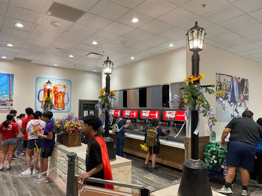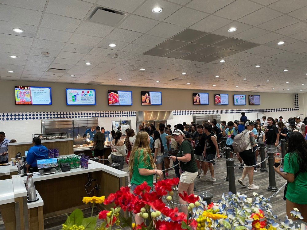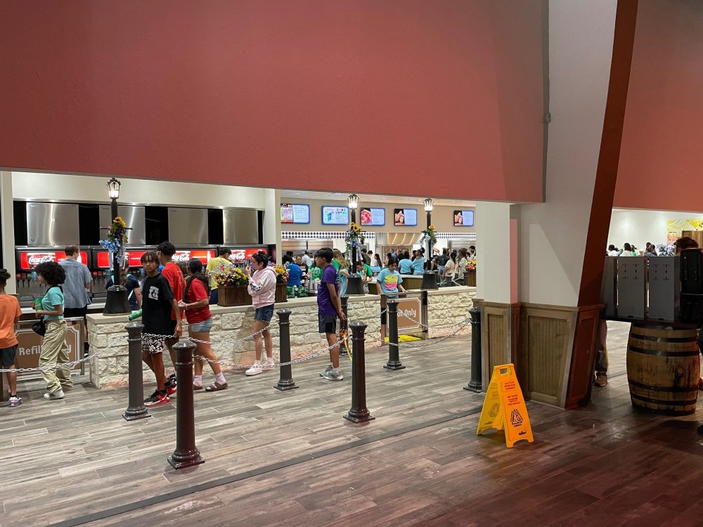the refurbished Sangerfest Halle is now officially open. not only looks great, but the new layout VASTLY improved wait times - with the line splitting at the front for two sides with same options, and then 4 cashiers on each side. The Beverage station is also now on the same side (looks like what was the beverage station across the dining room area is going to be refurbed - if I had to guess, it will be a beer/alcohol stand, but at the moment it's all blocked off). the new food options are excellent, and this is NOT "theme park food" - other than the pizza and chicken fingers option that I guess they must offer for the picky eaters and kiddos. I DO wish some of the options that went away - such as my beloved Chicken Schnitzel Sandwich - will come back, as I feel they could use a few more options. opening options are: (all are Meal options on dining plan, and both deserts are Snack options) Salad (good size comes with grilled chicken chunks) Pizza plate - one large slize (cheese or Peperoni) with a pretzel bread stick Chicken Tenders - with a pretzel breadstick Sangerfest Platter - I entree, 1 side (+6.99 for additional sides) Entree Options: Traditional Braised Beef with Spaetzle, Grilled Brats, German Pork Loin, Chicken Tenders Side Options: Macaroni & Cheese, Fried Brussel Sprouts, Steak Fries, Fried Apples Deserts: Cinnamon Streusel Coffee Cake, Parfaits Everything we tried was excellent, and the serving size for the pork loin was big enough that could easily be shared. I always bring along baggies, and took home leftover pork and Brussells that made a great lunch today.