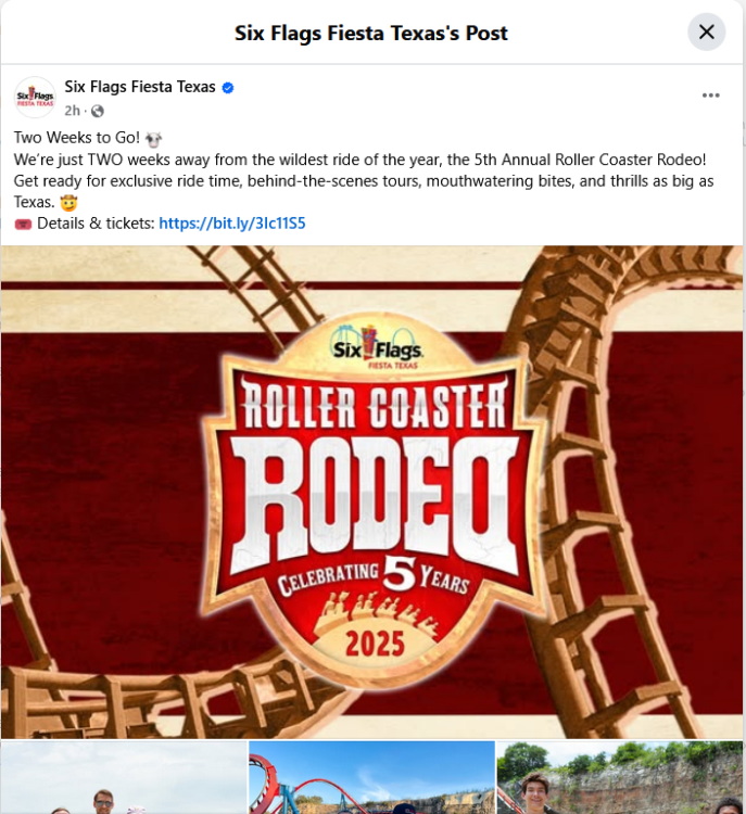 Cutting it a little close, but SFFT finally released the schedule for the upcoming Roller Coaster Rodeo this morning. this is an EXCELLENT event (with, honestly, the biggest selling point being that your badge works as VIP Flash Pass Access *all* day Friday & Sunday too. . . .so while you'll be too busy to use it on Saturday, it works all day before the event officially starts Friday, and all day after the event ends Sunday at Noon). some changes this year and I'm a little bit sad they seem to have gotten rid of some of the "rodeo games" / "scavenger hunt". . . but mostly, I'll miss the Friday night "Frightfest" they had been doing for attendees in prior years, complete with two houses. But I can get over that, as we're having an ERT DCU party instead. (and it looks like Saturday morning ERT has been added to allow day time rides on the Crackaxle rides. . if i'm correct in my guess that's what "wild west sunrise shindig" is. it's a great event, and so worth the cost!