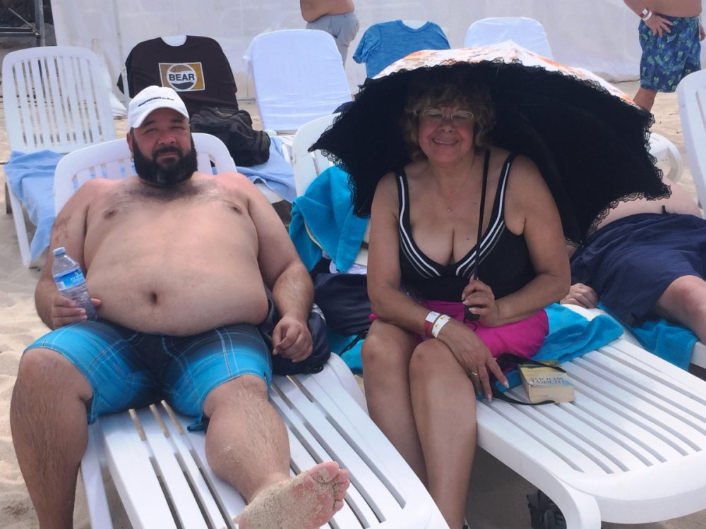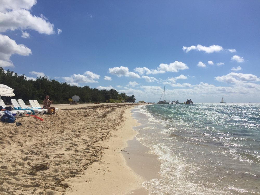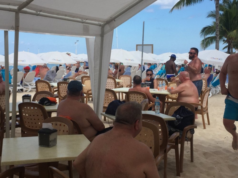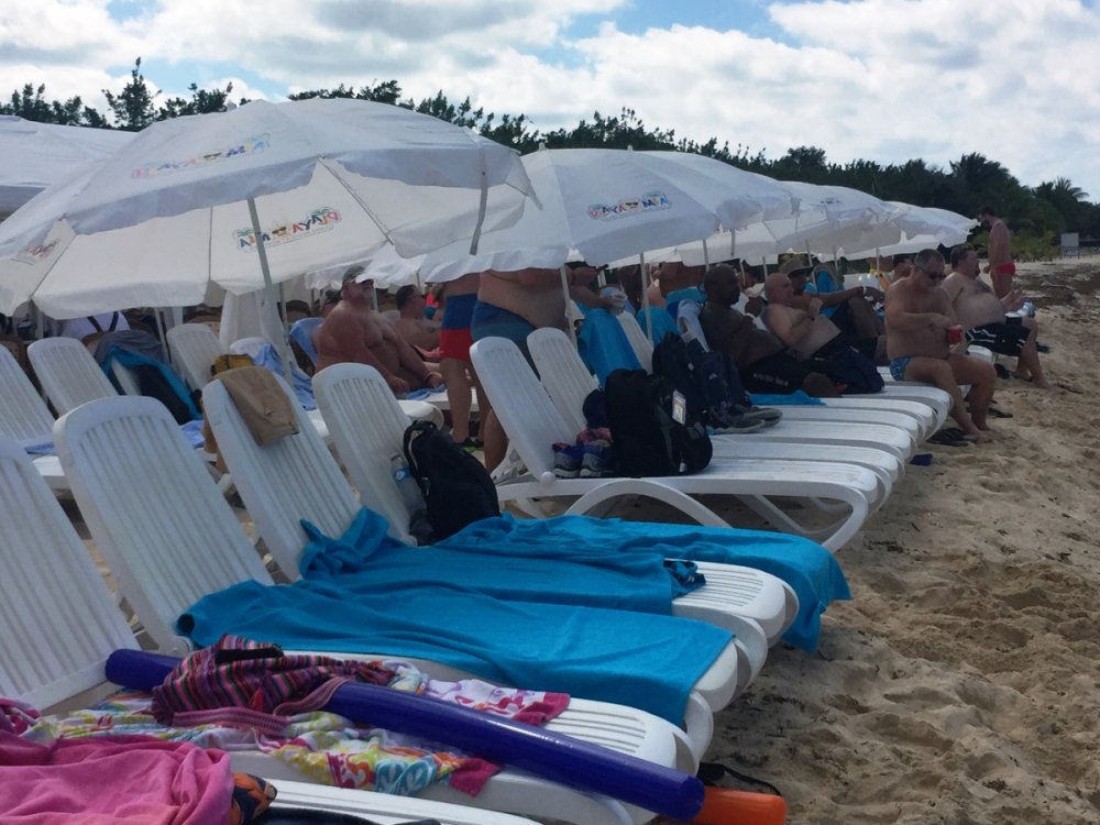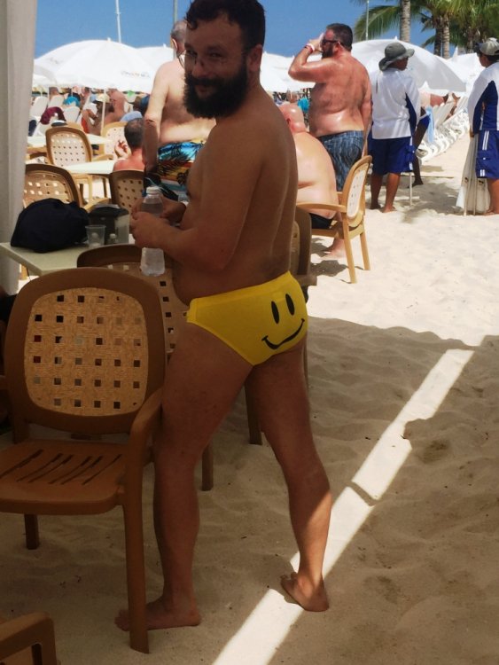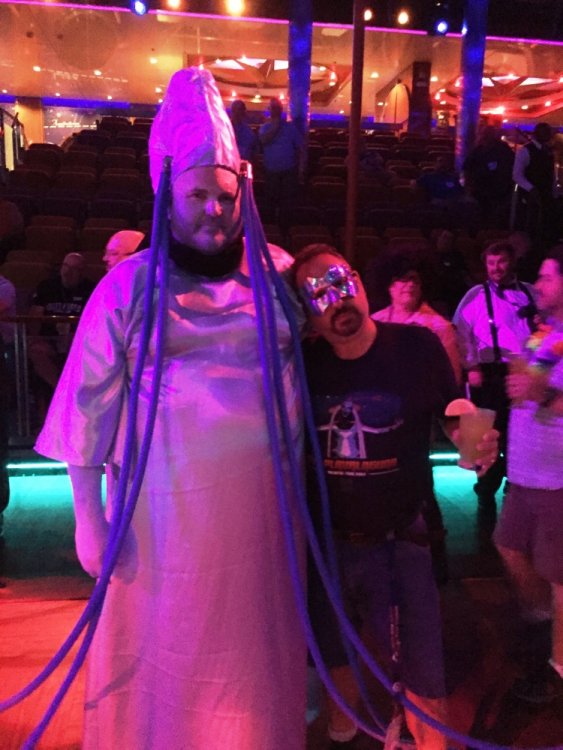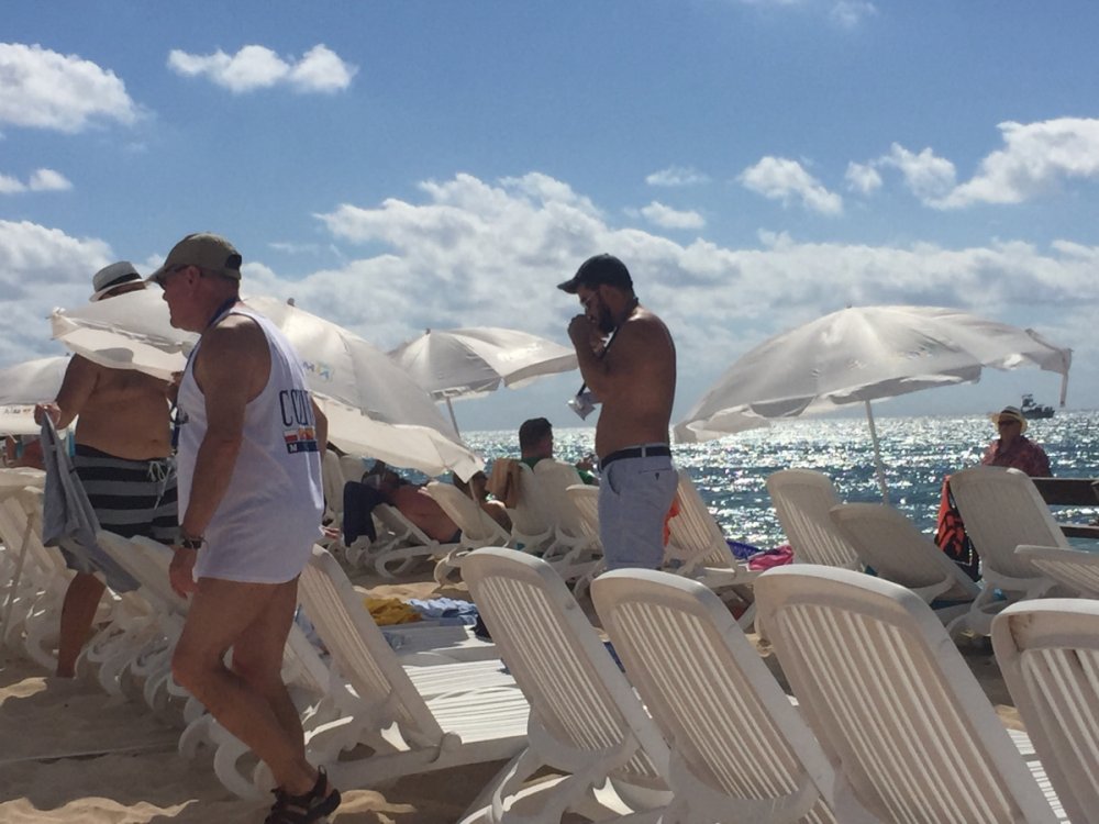 Day 6 (Cozumel) For the last port, we actually had a meet up at a sensible 9:30 (on the dock even), so there was no reason to get up early. But as usual, when on vacation, I was up pretty early, and was out on the balcony as we started to pull into the port – alongside 3 other ships that were already docked. and when I say “along side”, I mean really/really along side – we were so close to the Celebrity ship, we could see into the rooms easily, although there was no reason to look into the rooms, since almost all of the passengers seemed to be sitting out on their balconies staring at us as we pulled into the dock (in robes, that WE didn’t get, as we only had balcony cabin, not a suite..sheesh, RCCL, really?). Luckily, we had pants on, because yeah, they all seemed to be trying to get a peek at what was going on over on our ship. . . There was also some time-change screwery going on, that even tho we gained an hour when we pulled into Cozumel, the ship asked everyone to stay on ship time, which was an hour behind. . so that seemed to have messed up a lot of people in terms of waking up. For sure, there were way more people down in the MDR for breakfast this day than any other time we went. Nick was kind of awake, and was feeling pretty good, considering how much walking we had done yesterday at the ruins. . but him turning in early-ish had helped a lot and he woke up feeling OK. So I got him to go down to MDR, and we bumped into Adric in the hall who joined us for breakfast - where once again my eggs benedict were overcooked. Then we headed to get our Vanilla Mocha Lattes, and back up to the room to change for the Cozumel excursion (a “beach party”). . . . We were still well over an hour before it was time to meet up, but decided that we’d go ashore and do some shopping for a while before we had to meet up. Even at the early hour, there were already people drinking at the Senor Frog’s on the dock (I think that’s what it’s called), but we bypassed that, other than posing w/ some pics of the Liberty behind us, and decided to do a bit of shopping for Magnets and such. Now remember at the very start of this trip report, we dropped the dog, Roxxi, off for Medical boarding? (she’s diabetic and needs insulin shots twice a day (21 units each), as well as *completely* blind, and needs 3 different eyedrops each day (to keep the swelling/glaucoma in check). She’s going deaf in her right ear. . . She also has a number of tumors (we call her “lumpy” sometimes) which we’ve never had biopsied, as we don’t plan to treat them as long as her quality of life is good – which it really is still, she loves her walks (tho I walk her on a short leash so she doesn’t trip on curbs or sidewalk uneven-ness) she plays with her squeaky toys (tho when she flings them she can’t find them and runs back to her box to get more. . so we end up with squeaky-apocolypse on the living room floor if she’s been playful that day), and she still eats and poops with regularity.. she’s adjusted to the blindness/deafness and has a good quality of life still. So when we dropped her off, we gave them Nick’s number, since his phone is international, and mine is not (so mine was basically just a camera for the trip – which is why it was frustrating for Nick that he couldn’t find me sometimes when he turned in early). Anyways.. apparently Nick had (for some reason) turned his phone OFF while we were at sea, and so when we got ashore at Cozumel, he turned it on and had 5 missed calls, and a voicemail from an Austin number. He mentioned to me the calls, and asked “what is the vet’s number?”. .and I recognized it as soon as he read off the number. So I stepped out of the store we were in, and listened to the voicemail, and immediately called the Vet back, speaking to Roxxi’s “regular” vet, since the one who had called multiple times (Dr. Hopper) was a doctor at this clinic whom we hadn’t used in years, switching to Dr. Schubert since she’s always in on the Wed or Friday when we drop Roxxi off for Glucose Curves, check ups, etc. . . . Dr. Schubert told me that Roxxi hadn’t been eating (she’s usually a bit finicky when we board her) and when she did she was throwing up. . and that concerned them, since they couldn’t give her the insulin if she didn’t eat. I told Dr. Schubert that why didn’t they just let her re-eat what she threw up (ew. .but she’s a dog, she licks her butt), and that way the food ends up in her regardless. . .and she told me that’s what they did. But they were worried that she also seemed to be having trouble peeing. . and that they had tried to call us, but couldn’t get hold of us (since Monday, and this was Friday), so they had run cultures, and started her on antibiotics. Dr. Schubert said she was doing much, much better, and that we shouldn’t worry and enjoy the rest of the cruise. We hung up the phone, and I said to Nick, THAT is going to be expensive, even tho we had checked the box on the paperwork to “do not treat unless you contact us first” but there was nothing we could do about it now, and at least she was doing better. So we continued shopping and taking a few more pictures. I got a Day of the Dead magnet for a friend, and a magnet of a monkey masturbating for us (because, why not? It’s Cozumel!. . LOL), and then also bought a T-shirt, and Nick ended up buying a Texans (football team) shoulder bag, that he wasn’t intending to buy, but the cart-guy kept dropping the price, and he got it for something like $20, marked down from $38. . in the port shopping area too! I was shocked they lowered the price like that right on the docks, basically. After shopping a bit more it was time to meet under one of the big Palapas for our excursion. We didn’t know much about it, other than it was a “beach party” with a “semi private” beach for our group. It turned out it was at a pretty well known Tourist spot called “Playa Mia
