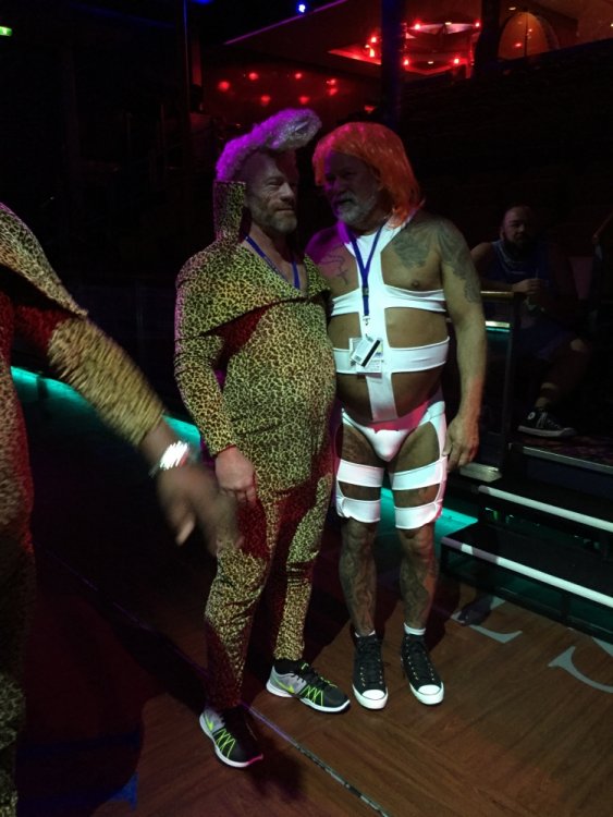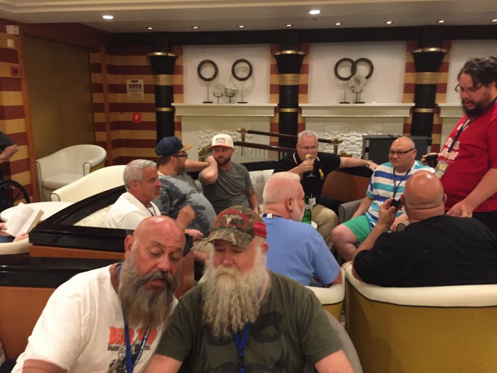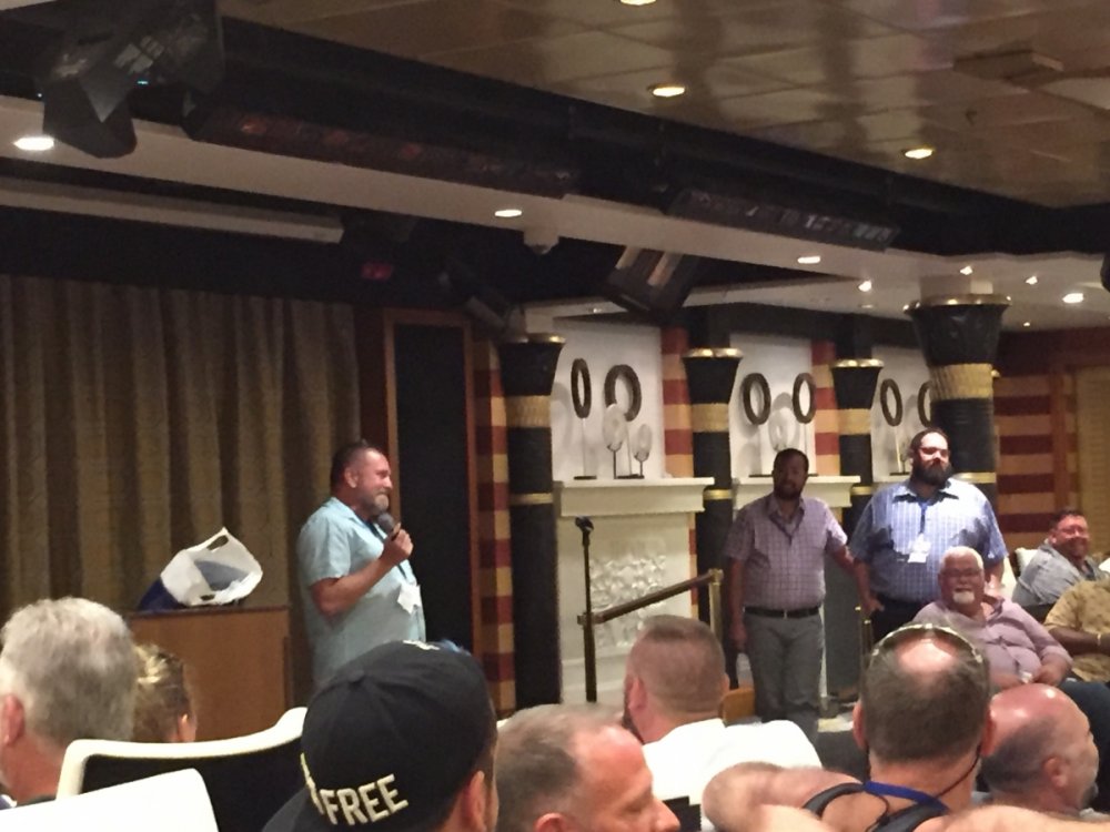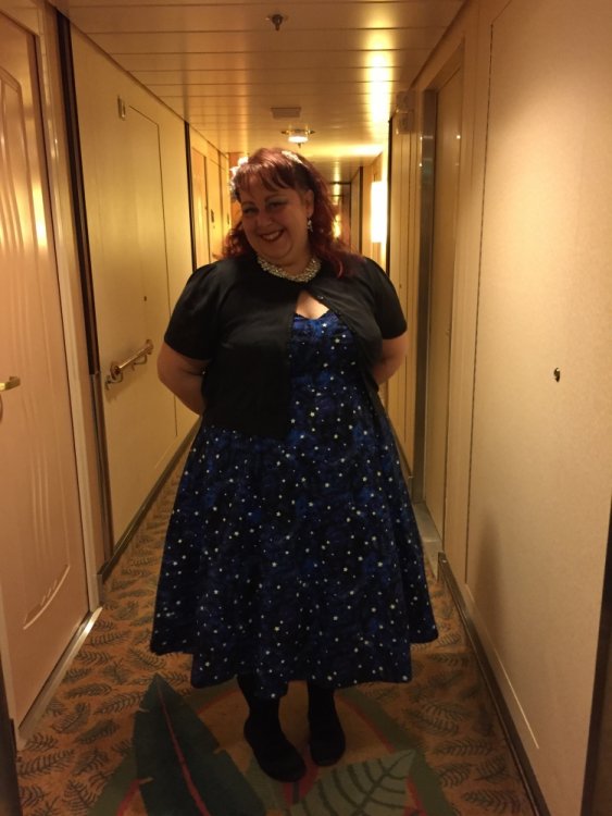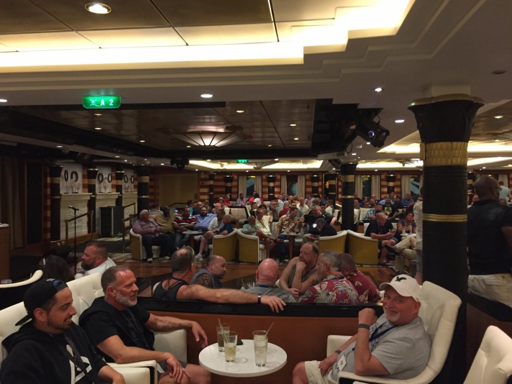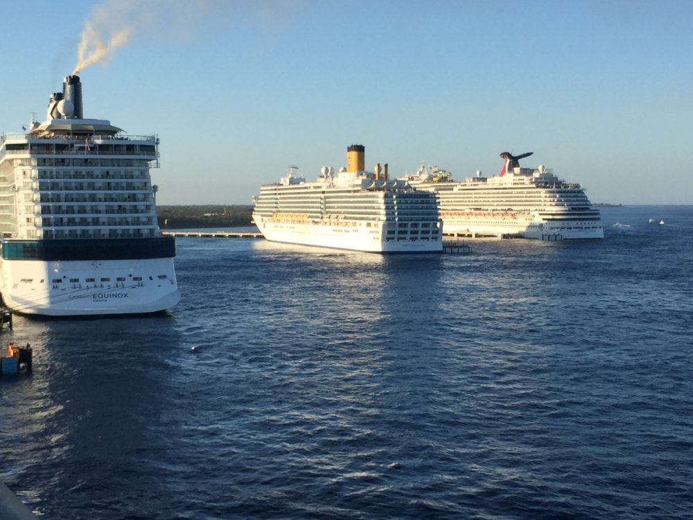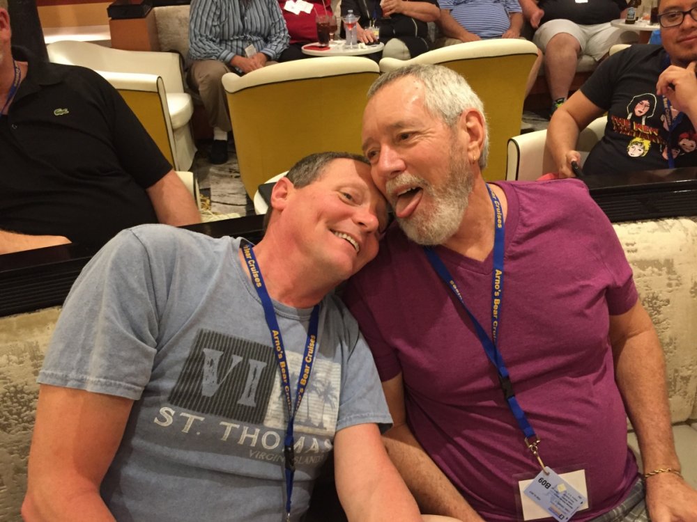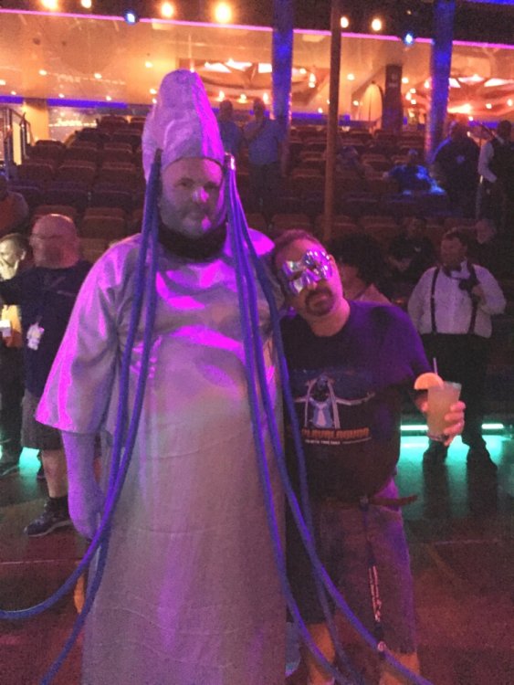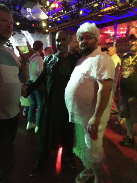 Day 7 (Sea Day) and Day 8 (disembark) On the final day, we both woke up by 9am, despite being able to sleep in. Although there wasn’t much on the agenda today – mainly we had used our OBC to book lunch at Sabor, the Mexican Upcharge restaurant with Anjeanne – we were up, so got out of the room and decided to go to Windjammer (for only the 2nd time for breakfast). We knew we had a big lunch in a few hours, so planned to eat light. That worked out fine, as with the previous breakfast experience at the buffet, the majority of the offerings were pretty disgusting. We ate fairly light, sticking to the pastry and fresh squeezed orange juice – which honestly is SO much better than what is offered for free, RCCL should be embarrassed by what they are serving for “free”. We ended up sitting at a table with some extra seats, and were happy to share with a group of younger (20’s) folks who asked could they sit with us and the table next to us. The younger group was quite entertaining, and we chatted for a while, as they asked us about our lanyards and Arno’s group. They seemed to be enjoying the cruise, but they commented how it looked like our group had been enjoying it more (yep, we had been)! After breakfast, we wandered down to the adult pool to see what was going on, as today was the “singlet ladies’ party, starting at noon. I had brought a leotard that would work as a singlet and had fully expected to participate, but I knew we had Noon lunch reservations, so weren’t gonna be able to do any swimming until after lunch. We still headed down that way, and spent a bit of time visiting with the folks that were out by the pool, before heading down to the Photo area, to purchase the couple of photos (the Hot Tub & the Belieze ones), and to wander the Promenade for a bit for Lattes, and to see if there was *anything* at all we were interested in from the shops, or the last day sales going on. Nope – we didn’t need watches, jewelry, alcohol, or any RCCL clothing. . so we still had quite a bit of OBC left. So we headed over to Schooner bar (across the hall from Sabor) and waited for Anjeanne to meet up with us for our reservations. We were seated pretty quickly, in a nice restaurant with an impressive mural going up one wall and all the way up the ceiling. . but no windows looking out at the ocean at all (odd). They came by with a cart, and made us some fresh guacamole (two versions: spicy for Anjeanne and I and mild for Nick). The Guac was very good. . .and then another cart came by and they made Anjeanne and I fresh Margaritas – mine was a spicy and sweet version. . also very good. We had mentioned to Gerald yesterday that we had reservations at Sabor for lunch, and invited him to join us with the assumption that we were a group of 3, so for sure there would be a 4th seat at the table not being used, so shouldn’t be an issue if he decided to meet us. He did show up, and sure enough, no issue seating him at the table with us. the group ordered a sampling of the Appetizers, and several options of the mains, and I wish I could say the food was ‘good’. . but it wasn’t. Others have had a better experience at Sabor, and I’ve seen raves about it – and yes, as noted the Guac and margaritas were great – but based on what we had? Food ranged from mediocre to terrible. I think Nick Is really the only one who “loved” his dish, he had the Cheese Quesadillas, and my Empanadas were acceptable (not blow me away good, but I finished them). .but Anjeanne ended up sending back her main, Gerald didn’t finish his man, and the sides were uniformly awful – either undercooked (the beans), underseasoned (the rice), or so overcooked that they were inedible (the “fries”, the fish tacos, the flautas, and the house made tortillas that if you didn’t eat immediately turned to concrete). The replacement dish they brought out for Anjeanne (the Red Snapper) was ok, she said, and they also brought out some sort of tacos that were decent but he didn’t’ tell us what they were – we all detected a bit of duck flavor, but when we asked after, were told they were chicken. That was some funky tasting chicken then! the Desert tray was also hit or miss, but the benefit there is that there were a lot of options so even tho some of it was only so-so (the flan, the bread pudding), the good stuff (the churros) counteracted that. Overall, if it hadn’t been the last day anyways? No way in hell would we have gone back there to eat again on the cruise. The saving grace was the company. . we had some wonderful conversations, and ended up hanging around the table talking for a long time among us, and were almost the last folks to leave from the lunch crowd. It was past 2pm by this point, so Nick and I headed up to the pool to check out the scene (with the intention of changing into the singlet and going swimming after). Apparently the Ship had moved far enough out of the Caribbean that the wind had turned a little chilly, and honestly, it was a bit too cold for us to want to swim. We looked and tho there were a few folks braving the singlets, we pussed out and just decided to blow off swimming, and to head back to the Casino for a few hours before the Farewell Meet up/ raffle. We still had over $100 bucks in OBC, so we traded it in at the casino for scratch offs, and we sat at the casino bar and scratched (and “won” a little bit.. something like $30). . . but it ate up a good chunk of time, and we had fun doing it. Not recalling what we did after this, but probably wandered Promenade or Schooners and visited with folks, and then it was time to go meet up for the final gathering. Tonight’s show, was one I wouldn’t have minded seeing, to be honest, “Saturday Night Fever” but the final meet up was at the same time as the earlier show, and the later show was when our dinner reservation was. . and you know by now how I feel about the buffet. . so we blew off this show too (minor comp