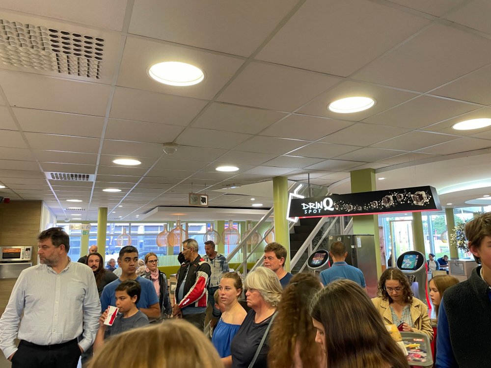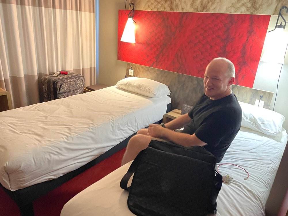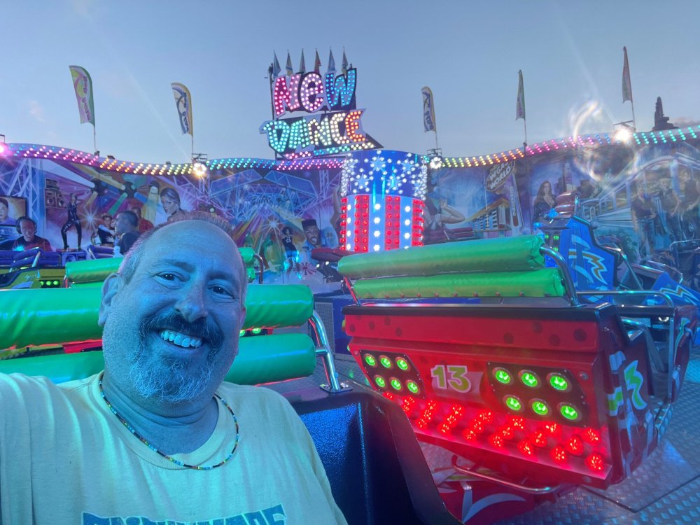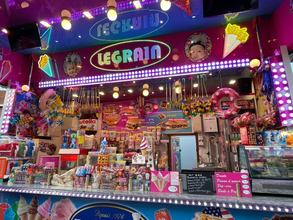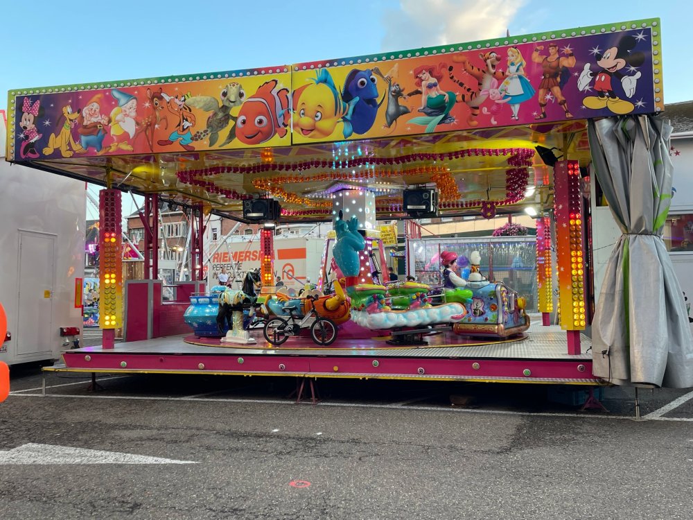 19. Day 7, evening. . . so we loaded up the bus, in the rain, and waved goodbye to Hotel Charles Lindbergh (and Phantasialand), and headed out towards Wavre, Belgium. that would be where our hotel for the night would be - only 1 night, as we were loading up the bus in the morning to spend the whole day at Walibi Belgium. Scenery as we were driving, it's always comforting to see a Nuclear Power plant. . . James and I mostly sat in row 3, so we got a nice view of the road - and this little guy (who's name I can't recall) that Robb purchased at Europa Parc where he's part of the Pirates ride. lovely countryside, as we moved from Germany into Belgium. And the sky had completely cleared up too. as we exited off the main road, into Wavre, the bus made some tight turns down some narrow (and jungle covered) roads towards our hotel for the night. excellent driving by our bus driver another really tight turn - the entrance gate at our hotel seemed REALLY surprised at the size of the bus about to attempt this turn in. but we made it in, and started unloading. our hotel for the night was another Ibis (same brand as the 1st hotel at the airport) with very similar looking rooms. we put our bags up in the room, and made plans to meet some folks down in the lobby. We had left Phantasialand before dinner, but were getting to Wavre by 8pm or so, so many in the group planned on heading out to grab some food and do some exploring in the charming smallish town. while waiting for the group I was going to grab food with, I snapped some pics of the lobby area and the breakfast area of the hotel. the hotel was pretty full - a football (soccer) team, that was passing thru, if I recall - tho we didn't really see any of them tonight. in the morning at breakfast we interacted with them quite a bit tho. Nice guys. and then once we had everyone who wanted to go check out the local fast food place - the Belgium version of McDonalds. . we headed out for the short walk into town. and here it is. . . not sure if it's specific to Beligum, or a European chain. Tho I can't recall if I ever saw another one on the trip, so maybe it *is* Belgium specific? basically a McDonalds: "Quick" for what it's worth? the name LIES. there are no counter folks to take orders. . all orders are placed at the touchscreens by the entrance doors. then you stand and wait until they call your number to go pick up your food from the counter. yeah. .it's *exactly* as much of a clusterfuck as one would think it was. Especially when busy at dinner time (which I guess this time of night was dinner time). it was absolute chaos. . . and, if I'm being honest, I loved every moment of it . . . LOL. . . . Eventually we got our food, and headed upstairs to a "quieter" area to eat. I don't really recall what I got, tho it looks like cheese balls, a poutine of some kind, and a burger that looked like this. it was ok, I suppose. But really no lasting memory of it, so i guess it was just a standard burger from a fast food place? we had planned to walk over to the Supermarket in the parking lot there and get some bottled water, but by the time we finished eating, the market had just closed for the evening. (I think they closed at 9 perhaps?). . . but as we slowly made our way back towards the hotel, someone in the group that had gone towards the city center (in search of nightlife/bars I believe) had posted to the TPR trip group chat that they had stumbled across a random Breakdance in the downtown area. even tho we had just spent a full day at Phantasialand. . . c'mon, I'm on a trip with TPR folks. . of COURSE we immediately detoured towards the center of town to see if we could find said breakdance. I double-taked on this sign at least 3 times, before I decided I just had to take a picture. "Immotheker finotheker". . . .has made it into my cursing lexicon we had passed a parking lot full of what looked like "Carny" vehicles. . and we started to hear music, so we continued heading that way, and finally came across this. (insert angelic singing here) wasn't super busy - but again, it was a Monday night, but it appeared an entire funfair had been plopped down over two city blocks in the center of Wavre. we weren't gonna cross illegally - gotta follow traffic rules in other Countries - so we headed down to the crosswalk. only to be pleasantly surprised that they were Rainbow Crosswalks. yay! Belgian Pride! while most of the games and rides, seemed targeted towards the way younger crowd. . there were a few "big" rides mixed in. (the stuff on the next street over seemed to be mostly closed this night tho, including a small kiddie coaster. . so we stuck to this main intersection for our exploring) Kiddie Bumper Cars - and no, I still didn't ride them. I was mesmerized by the floating kid's heads on the sign for this one (but I believe everything is independently owned, so it must be the owner's kids?). certainly didn't attract me to the place to purchase anything - tho I was full as I had just eaten a lot of fast food. that spotted donut doesn't look too happy tho! a funfair street cart selling Escargot? how intriguing (and a big ol HELL NO from me). . . but Smisty wanted to try them, so she and Erik got some. and to be fair? they SMELLED amazing. . . but . . . nope for me. the guys at the funfair (James, Erik, Andrew and me), waiting for Smisty to finish her snails some pics of the games. . lots and lots of stuffed animals to (attempt) to win. tho some booths had lots of typical American carnival crap on offer (this Duck Game) seemed to offer prizes as one would find at a ticket redemption counter in a Dave & Busters, or Pinballz arcade oooo. . very tempted. A Frozen Mirror Maze! . . I'm sure 100% officially licensed Disneyland Belgium! If I didn't think my fat ass would break it? I would have ridden on Aladdin's carpet. (tho the Woody Woodpecker confused me. maybe Donald broke and they needed a quick replacement?) it really is a Small World after all. ohhh. . . a big
