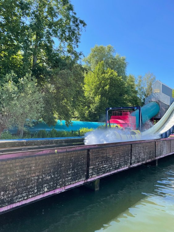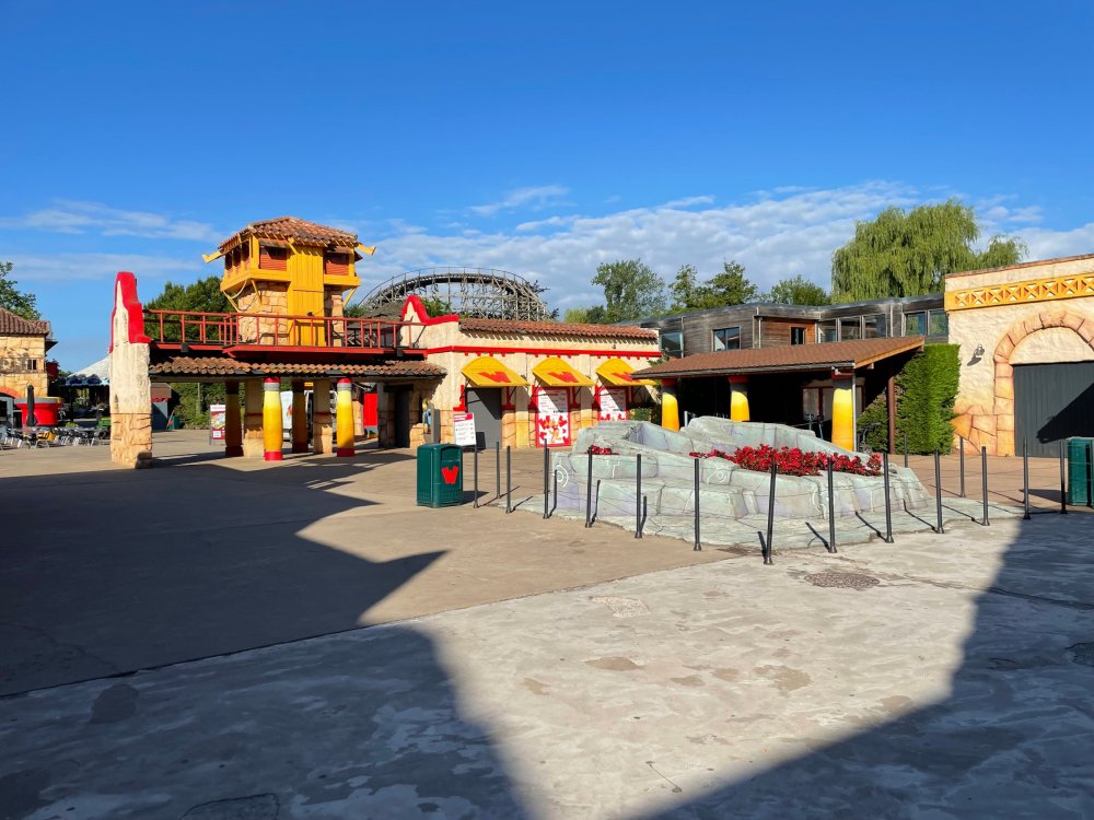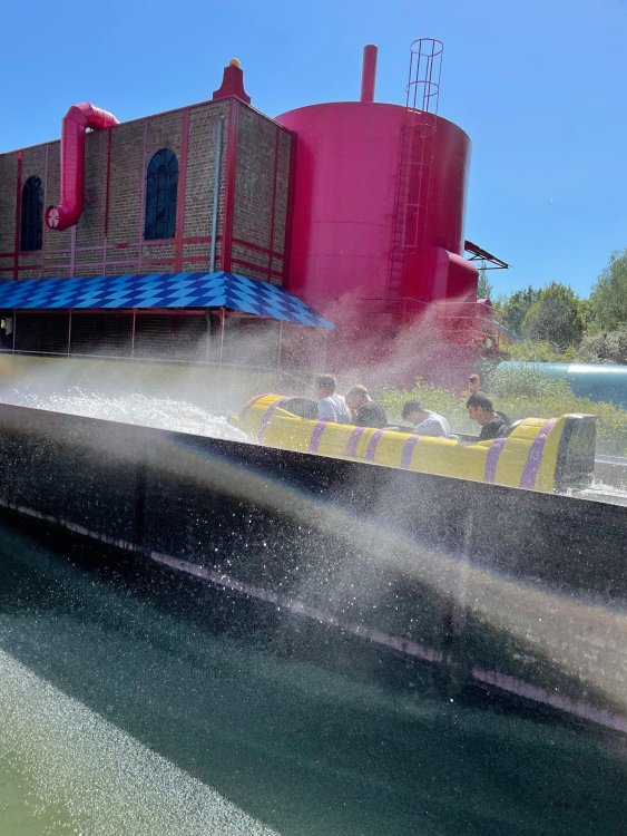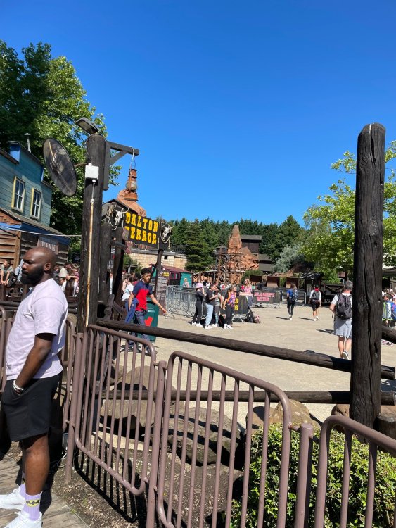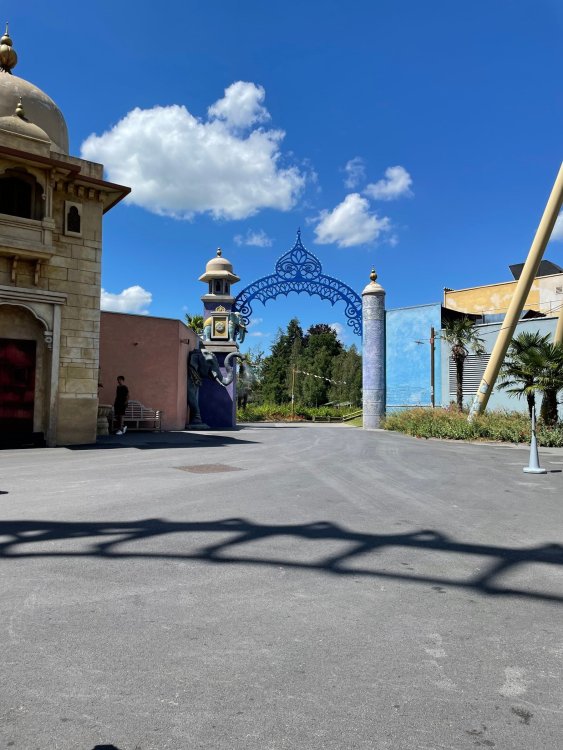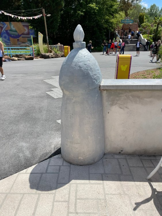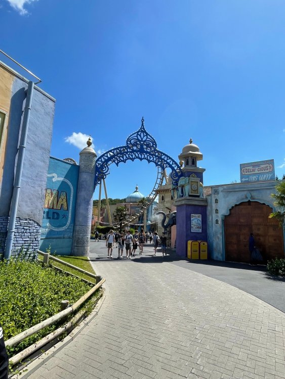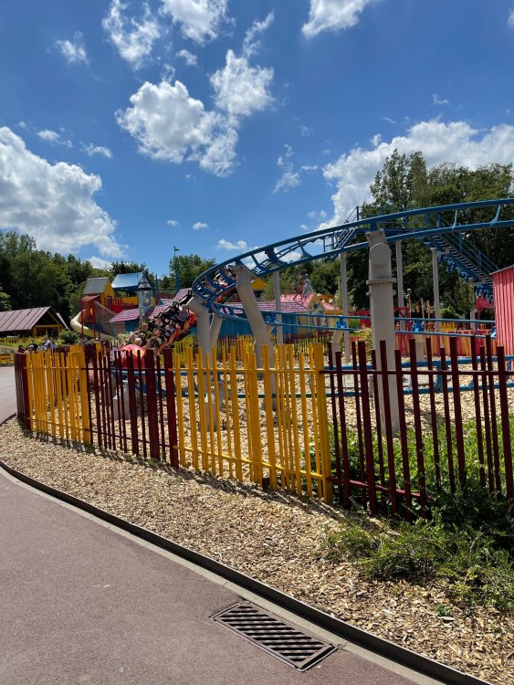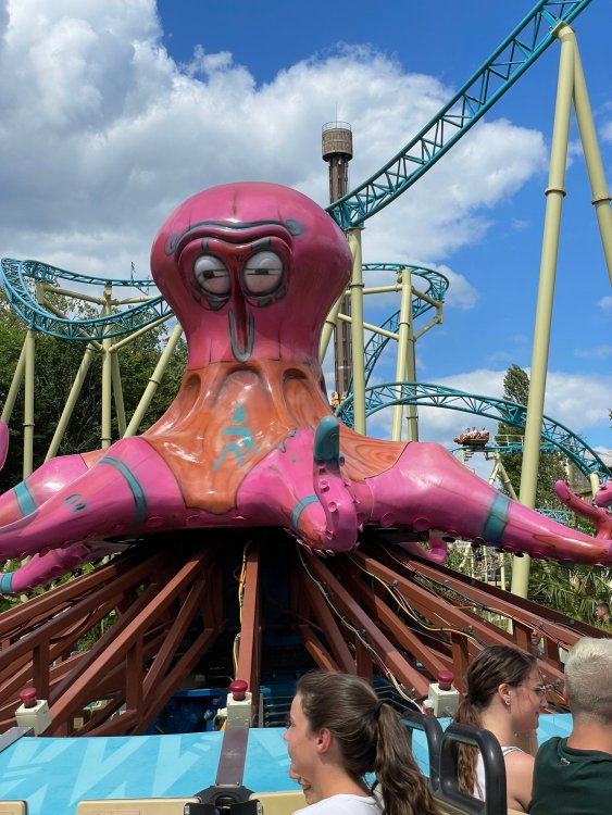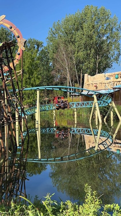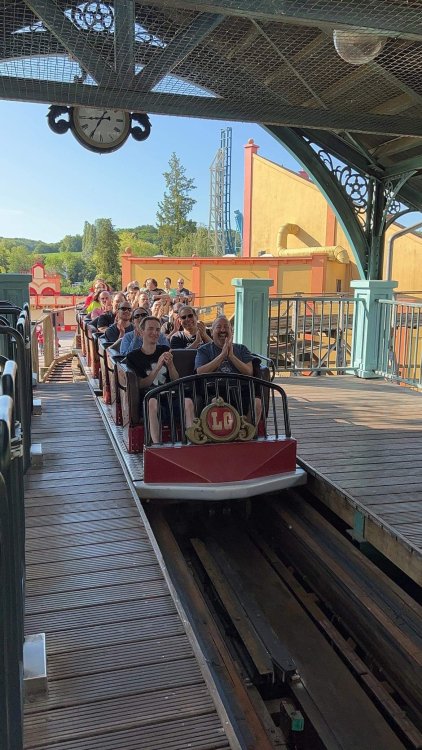 3. Walibi Belgium, part 2: we headed over to the "western" part of the park. . a smallish area, with a bunch of shops, and two rides. . the drop tower, Dalton Terror, and the Vekoma mine train, Calamity Mine. I used to love this at Astroworld, and tho got to ride it at SFStL before it closed. .and earlier in the trip at Holiday Park. .so any chance to ride these, I take. you can see from the lines forming, it was really starting to get busy as we got into early afternoon timeframe. the mine train was only so-so, I thought. . .but I did like the look of this area. and was able to get James to do a photo op with me. i'm so pretty! we headed over to Buzzsaw, and wow.. what a line over here. with the fast lane it still took almost 20 minutes. and the cycle was really pretty bad. I mean, nothing could really compare with Talocan - especially the day right after. But this thing flipped, I think, maybe 3 times total? the rest was just rocking back and forth. i was sadly disappointed in this. tho it was very photogenic. phantom cars!!! it's a g-g-g-ghost driving!! ruh-roh!! we still had 3 coasters left in the parks line up, and I really wasn't looking forward to any of them (and didn't plan to ride two of them anyways, the kiddie and the Boomerang). . but to get up my nerve - and it was on the way - we stopped at the Carousel on the way to Vampire, the parks Vekoma SLC. lovely carousel. and all the effects were working: the spinning cups, the galloping horses, and the rocking carriages. see? my happy place. even rode twice maybe? Unless Jon fell off from the prior pic? while some went for a coffee break, I popped into the store up front to see if there were any shirts I might want later. i was surprised to see them selling merch from everyone in here! DC Superheroes (Six Flags parks), Harry Potter (Universal), Star Wars/Marvel (Disney), even cartoon network stuf fand Nintendo stuff! . . it's a copyright free for all up in here.. . LOL but eventually we had to face it. another "pretty to photograph, but it's gonna suck" ride. Vekoma SLC with some nice theming tho. but yes. . it suuuuuuucked. I haaaaaaated it. the only thing that even made it worthwhile to come over to this part of the park (near the front gates) was the Carousel. oh. .and passing these two inked Bears. . . hello misters! after the crapfest that was Vampire, we were starting to get hungry, but wanted to let stomachs settle. So we headed across the park to the one section we hadn't been in yet - and to ride Popcorn's Revenge - the other shooting dark ride. nature will find a way: although this seems like a huge waste of space - like SOMETHING should be in here for use? - it really is lovely to have a lake in the center of the park. and allows for some great views. this Elephant sculpture was adorable. and it "mists" you as you walk by. . LOL before we got to Popcorn tho.. most of the guys wanted to ride the boomerang. why? I dunno. .to get the credit I guess? I decided to just wait for them and watch. the best seat on a Vekoma Boomerang? the bench out front of the entrance THIS is what I was interested in. I had called this Mediterranean section. .but I think it's more going for an India street vibe, right? huge queueline, that was almost completely empty. for such a fun shooting dark ride. I think maybe just a lot of people don't realize it's over here? if you ever go to Walibi Belgium? don't miss this one. .it's great. and so well themed. (yes, it's basically Toystory Mania. . but it's still a good ride) this is all just the queueline theming! exit thru the gift shop. . . so you can buy a stuffed Popcorn. . . LOL he was cute - and it smelled wonderfully of buttered popcorn in here - but I couldn't fit that in my bag to get back home. this lil magnet tho, i could. . so grabbed him. Pink, of course. so photogenic. . .but so. . . boomerang-y the park has a flying carpet over here.. but no one was really riding it other than some small kids. i asked if adults were allowed, and the operator said "sure! come on aboard!" he said we could have cameras out so I got on with a couple of others, figuring I could get some good pics from the ride. catching Loup-Garou over the lake - and thru the trees and catching Kondaa on the 1st drop. for such a huge splash, it's so fun not more . . . wet. But I really liked Pulsar, and it too is very photogenic we sat to have a drink in the cafe across from the magic carpet and noticed these water jets. what's this? oh. .it's the parks rapids ride, "Radja River" - which I hadn't realized they had. I noticed this too over there.. . oh my! I convinced a couple of folks to ride with me. . but can't recall if we got really wet or not. I don't think we did? it was well done tho. . and like the rapids rides we saw in other parks? never in USA. . the boats were sent pretty closely together, making for a more fun time. across from it was the kiddie. and since I had talked some into riding the rapids - and the kiddie was a walk on basically.. . yeah. . I rode "Fun Pilot" oooo. .another Mad House? yes please.. I've gotten to like these, and happy that so many parks we visited had one. sorry so many pics of Pulsar. . I really DID edit out a lot of them! it's just so pretty with the sky behind it. it was time to eat. No idea what this was. I do remember it was good, tho the desert was a bit too chocolatly. but it was good. pic from Robb, that he sent out while we were stopped for lunch, so it saved in my camera in this spot. I guess from the top of the drop tower? But showing the full layout of Kondaa after lunch, we all wanted something "relaxing". . so we headed to that "slow boat" ride that's nearby Tiki-Waka feeeeed meeeeeeeee really do love how closely this ride interacts with the coaster (and vice versa) awww. . a pony ride, similar to what I got to ride at Dollywood (tho on bears there). we couldn't ride tho, as we were all too tall. so instead we went and rode the angry giant vagina monster ride. at least I'm 