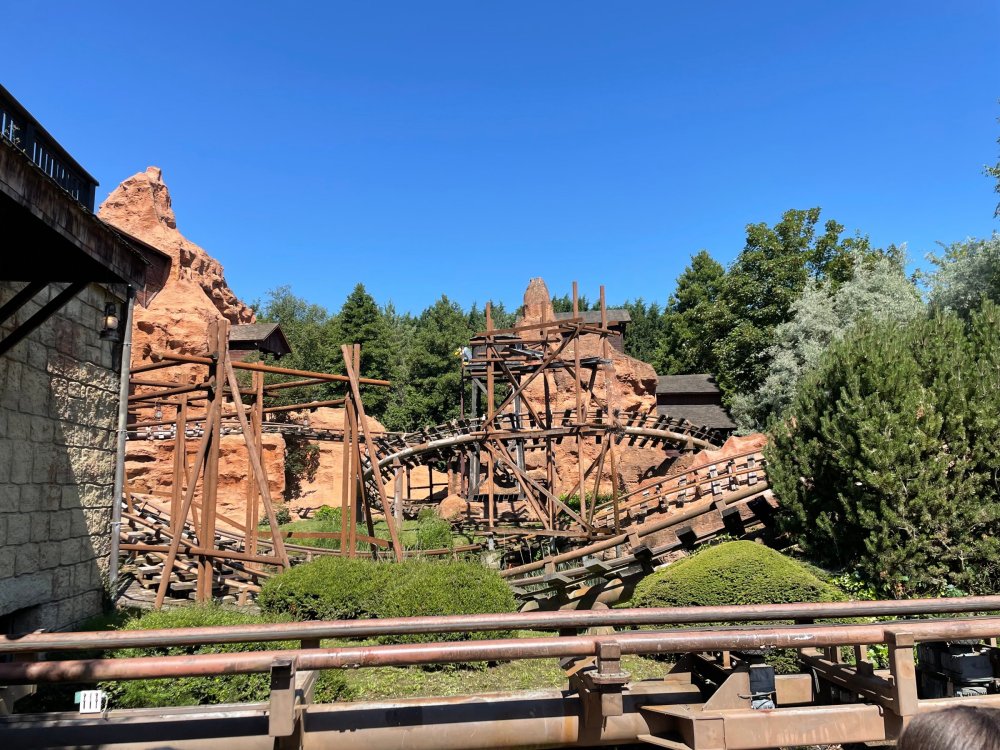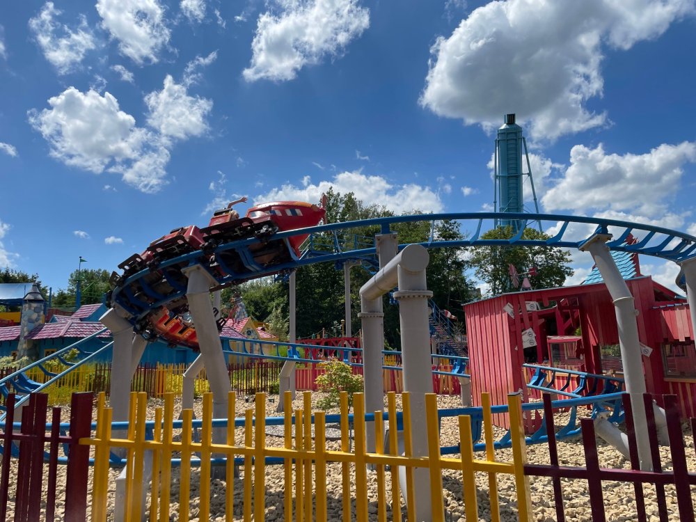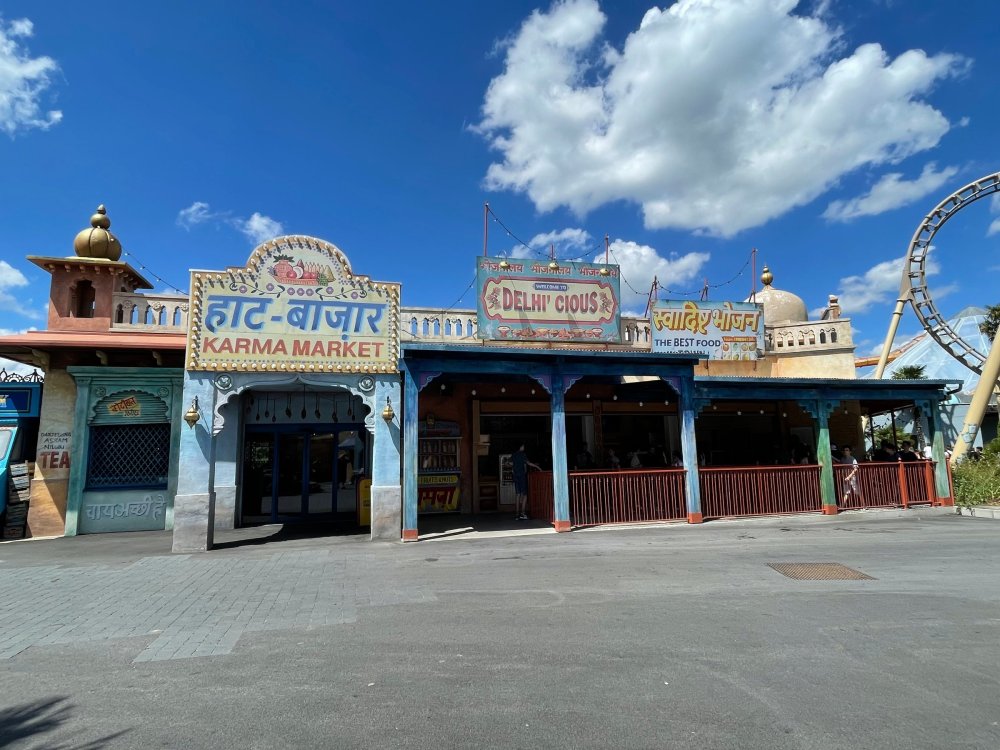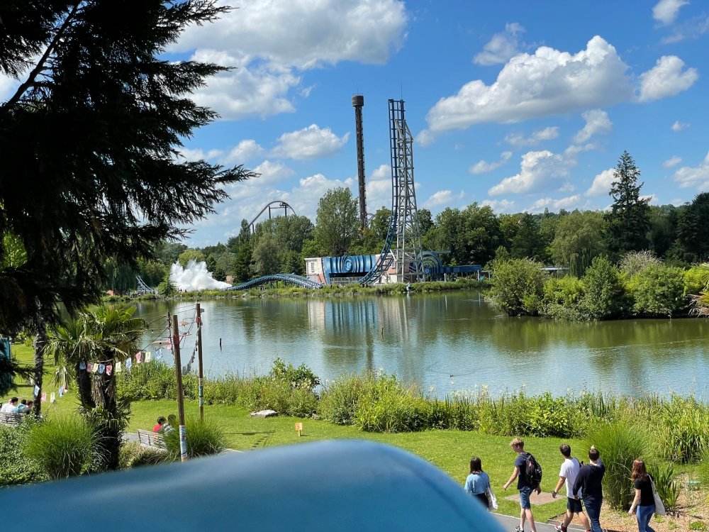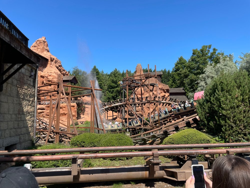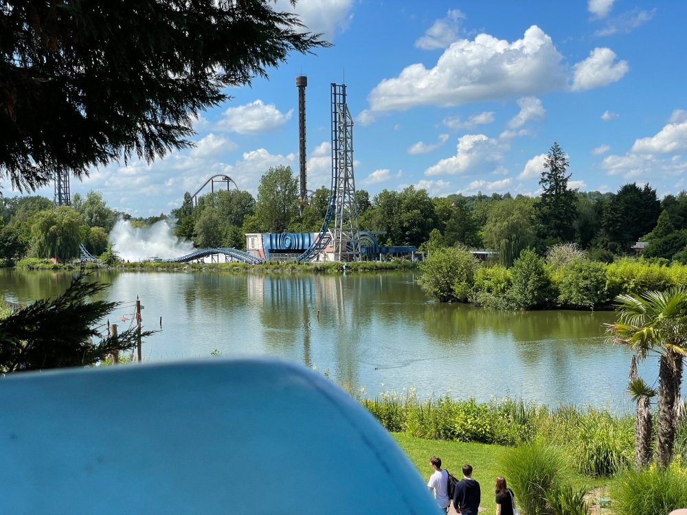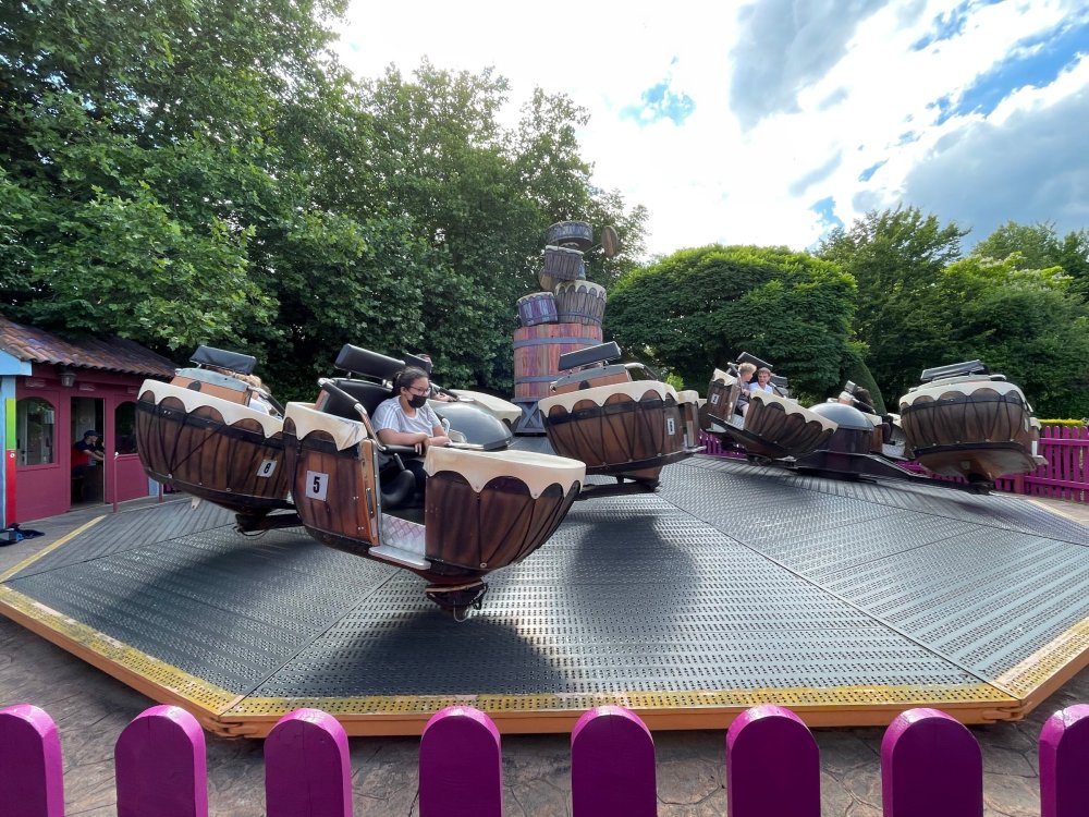 3. Walibi Belgium, part 2: we headed over to the "western" part of the park. . a smallish area, with a bunch of shops, and two rides. . the drop tower, Dalton Terror, and the Vekoma mine train, Calamity Mine. I used to love this at Astroworld, and tho got to ride it at SFStL before it closed. .and earlier in the trip at Holiday Park. .so any chance to ride these, I take. you can see from the lines forming, it was really starting to get busy as we got into early afternoon timeframe. the mine train was only so-so, I thought. . .but I did like the look of this area. and was able to get James to do a photo op with me. i'm so pretty! we headed over to Buzzsaw, and wow.. what a line over here. with the fast lane it still took almost 20 minutes. and the cycle was really pretty bad. I mean, nothing could really compare with Talocan - especially the day right after. But this thing flipped, I think, maybe 3 times total? the rest was just rocking back and forth. i was sadly disappointed in this. tho it was very photogenic. phantom cars!!! it's a g-g-g-ghost driving!! ruh-roh!! we still had 3 coasters left in the parks line up, and I really wasn't looking forward to any of them (and didn't plan to ride two of them anyways, the kiddie and the Boomerang). . but to get up my nerve - and it was on the way - we stopped at the Carousel on the way to Vampire, the parks Vekoma SLC. lovely carousel. and all the effects were working: the spinning cups, the galloping horses, and the rocking carriages. see? my happy place. even rode twice maybe? Unless Jon fell off from the prior pic? while some went for a coffee break, I popped into the store up front to see if there were any shirts I might want later. i was surprised to see them selling merch from everyone in here! DC Superheroes (Six Flags parks), Harry Potter (Universal), Star Wars/Marvel (Disney), even cartoon network stuf fand Nintendo stuff! . . it's a copyright free for all up in here.. . LOL but eventually we had to face it. another "pretty to photograph, but it's gonna suck" ride. Vekoma SLC with some nice theming tho. but yes. . it suuuuuuucked. I haaaaaaated it. the only thing that even made it worthwhile to come over to this part of the park (near the front gates) was the Carousel. oh. .and passing these two inked Bears. . . hello misters! after the crapfest that was Vampire, we were starting to get hungry, but wanted to let stomachs settle. So we headed across the park to the one section we hadn't been in yet - and to ride Popcorn's Revenge - the other shooting dark ride. nature will find a way: although this seems like a huge waste of space - like SOMETHING should be in here for use? - it really is lovely to have a lake in the center of the park. and allows for some great views. this Elephant sculpture was adorable. and it "mists" you as you walk by. . LOL before we got to Popcorn tho.. most of the guys wanted to ride the boomerang. why? I dunno. .to get the credit I guess? I decided to just wait for them and watch. the best seat on a Vekoma Boomerang? the bench out front of the entrance THIS is what I was interested in. I had called this Mediterranean section. .but I think it's more going for an India street vibe, right? huge queueline, that was almost completely empty. for such a fun shooting dark ride. I think maybe just a lot of people don't realize it's over here? if you ever go to Walibi Belgium? don't miss this one. .it's great. and so well themed. (yes, it's basically Toystory Mania. . but it's still a good ride) this is all just the queueline theming! exit thru the gift shop. . . so you can buy a stuffed Popcorn. . . LOL he was cute - and it smelled wonderfully of buttered popcorn in here - but I couldn't fit that in my bag to get back home. this lil magnet tho, i could. . so grabbed him. Pink, of course. so photogenic. . .but so. . . boomerang-y the park has a flying carpet over here.. but no one was really riding it other than some small kids. i asked if adults were allowed, and the operator said "sure! come on aboard!" he said we could have cameras out so I got on with a couple of others, figuring I could get some good pics from the ride. catching Loup-Garou over the lake - and thru the trees and catching Kondaa on the 1st drop. for such a huge splash, it's so fun not more . . . wet. But I really liked Pulsar, and it too is very photogenic we sat to have a drink in the cafe across from the magic carpet and noticed these water jets. what's this? oh. .it's the parks rapids ride, "Radja River" - which I hadn't realized they had. I noticed this too over there.. . oh my! I convinced a couple of folks to ride with me. . but can't recall if we got really wet or not. I don't think we did? it was well done tho. . and like the rapids rides we saw in other parks? never in USA. . the boats were sent pretty closely together, making for a more fun time. across from it was the kiddie. and since I had talked some into riding the rapids - and the kiddie was a walk on basically.. . yeah. . I rode "Fun Pilot" oooo. .another Mad House? yes please.. I've gotten to like these, and happy that so many parks we visited had one. sorry so many pics of Pulsar. . I really DID edit out a lot of them! it's just so pretty with the sky behind it. it was time to eat. No idea what this was. I do remember it was good, tho the desert was a bit too chocolatly. but it was good. pic from Robb, that he sent out while we were stopped for lunch, so it saved in my camera in this spot. I guess from the top of the drop tower? But showing the full layout of Kondaa after lunch, we all wanted something "relaxing". . so we headed to that "slow boat" ride that's nearby Tiki-Waka feeeeed meeeeeeeee really do love how closely this ride interacts with the coaster (and vice versa) awww. . a pony ride, similar to what I got to ride at Dollywood (tho on bears there). we couldn't ride tho, as we were all too tall. so instead we went and rode the angry giant vagina monster ride. at least I'm 